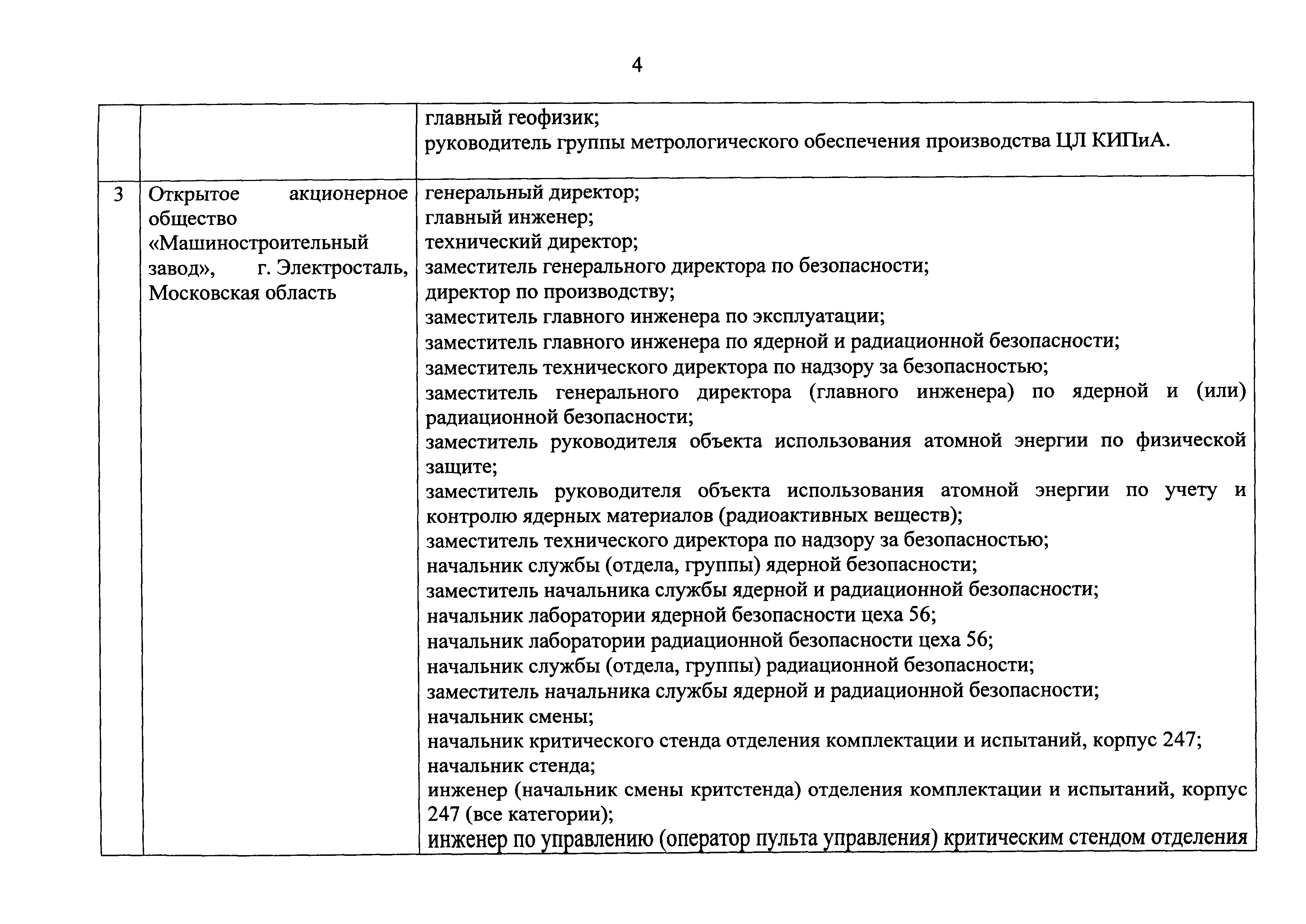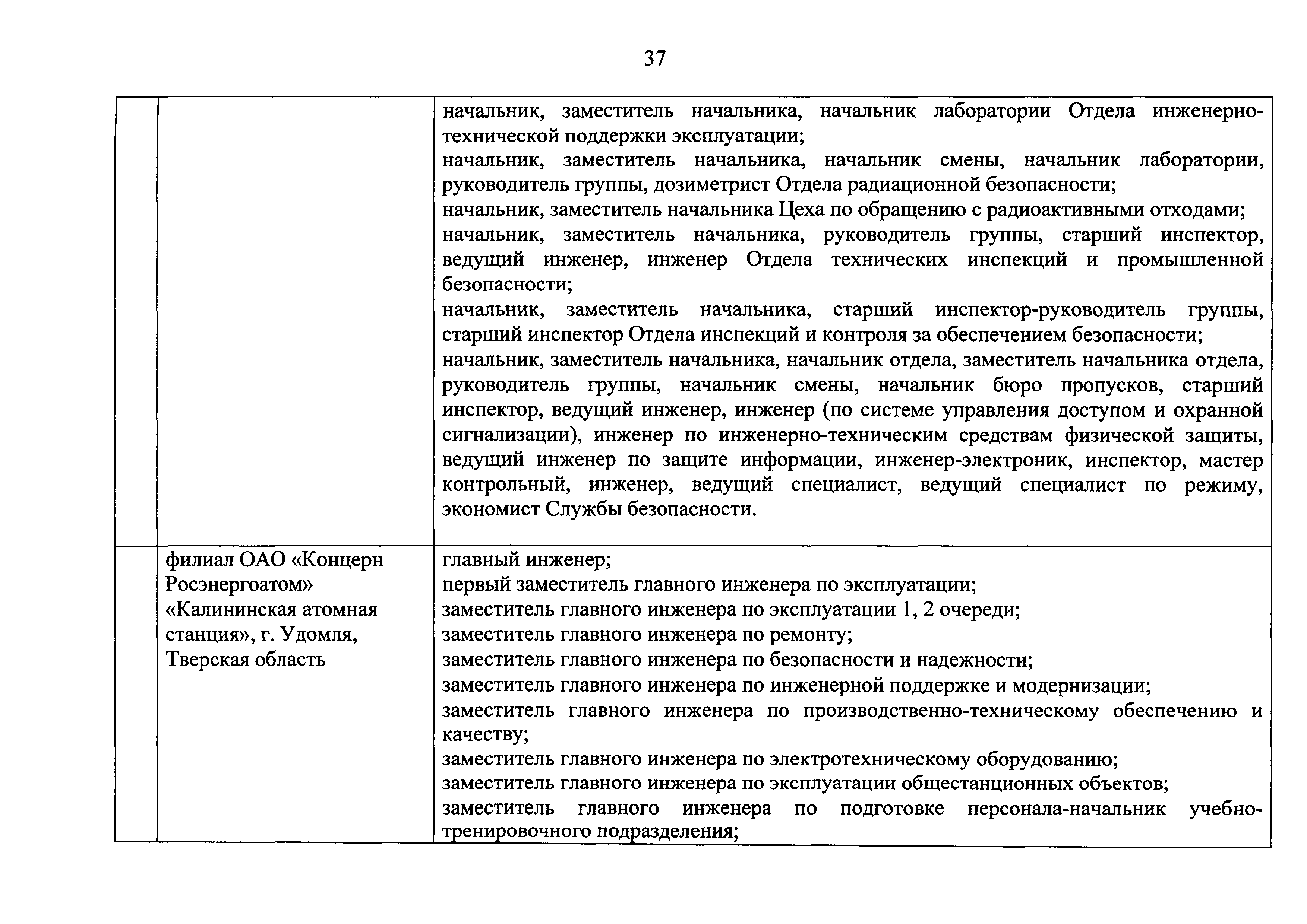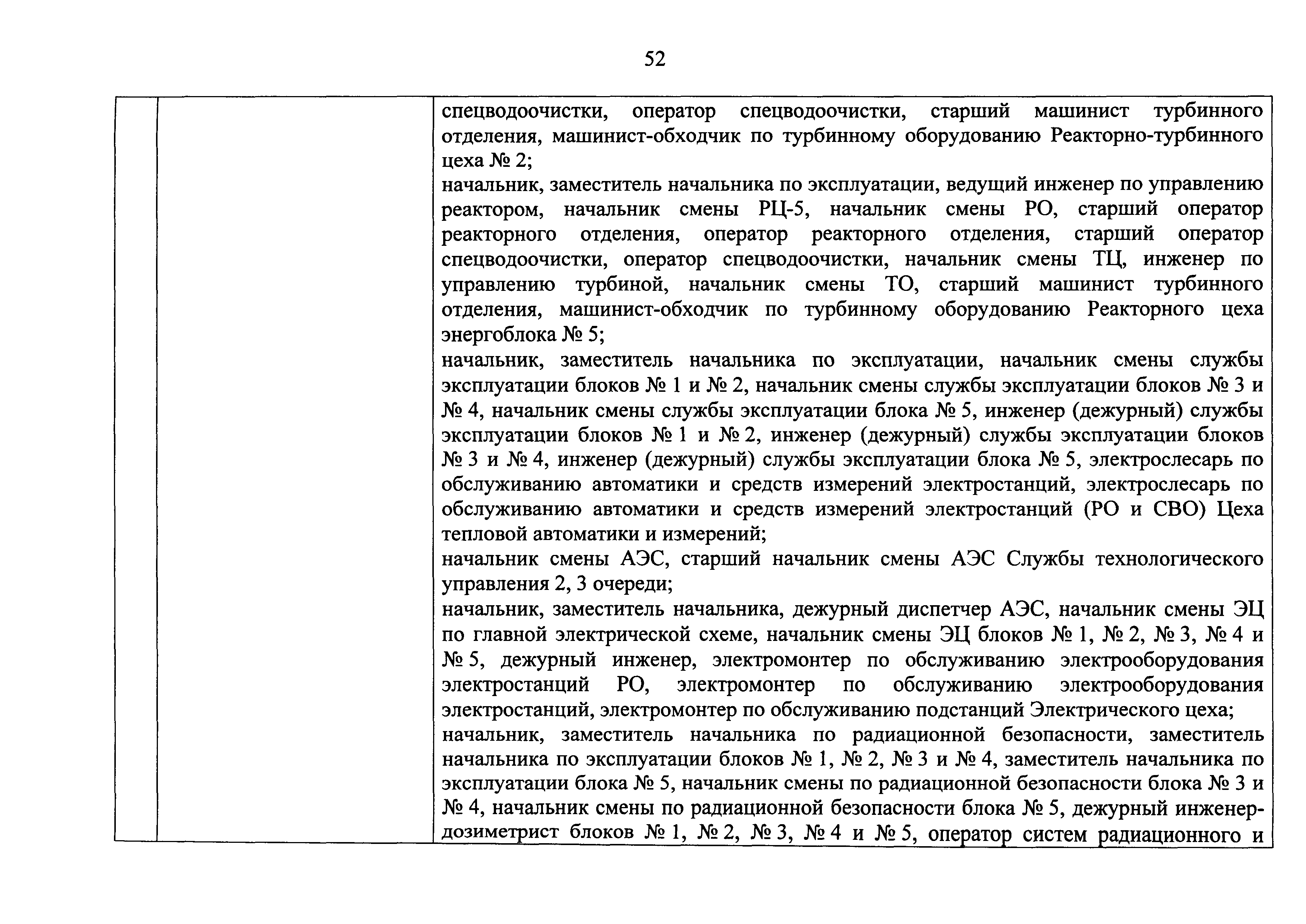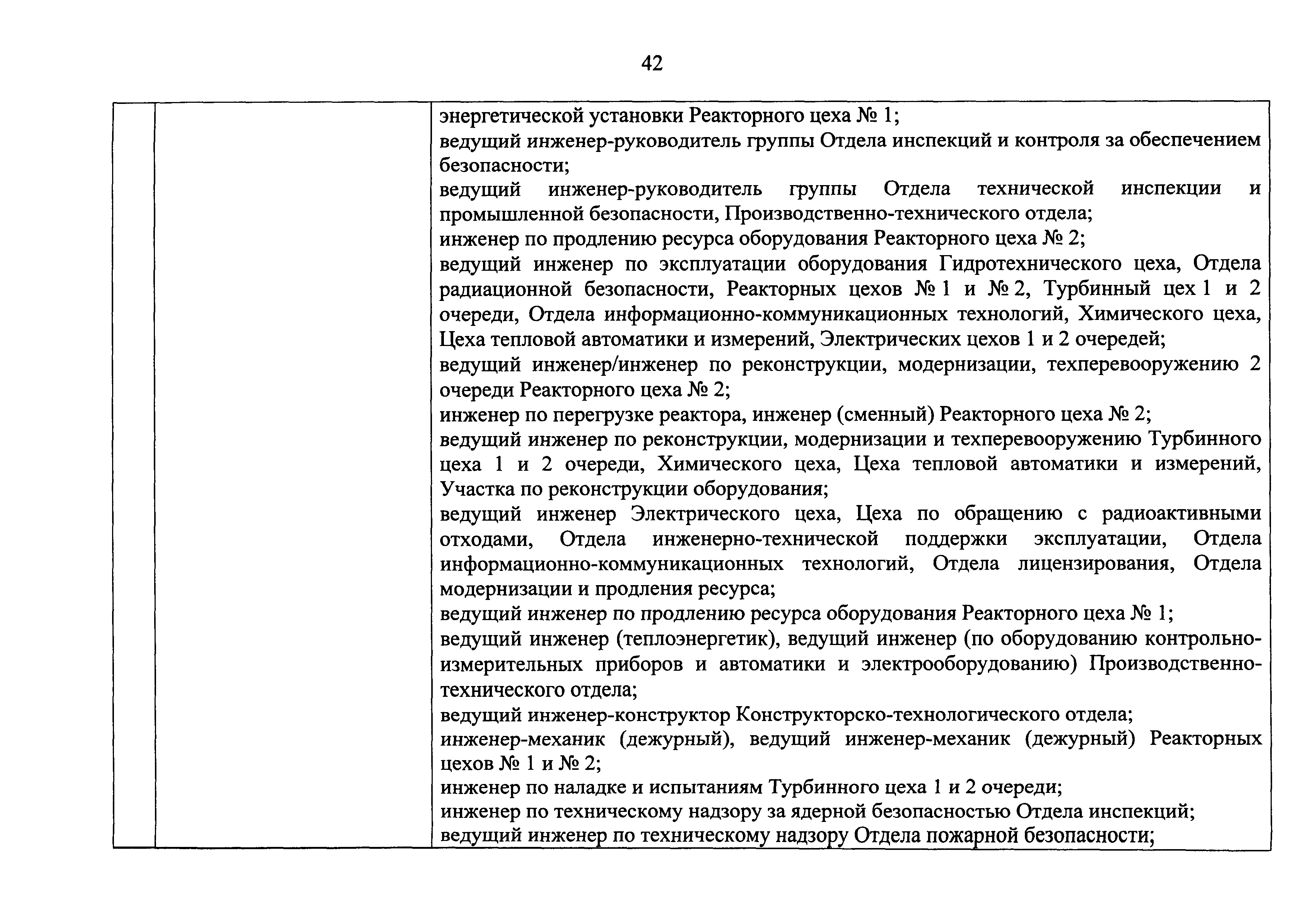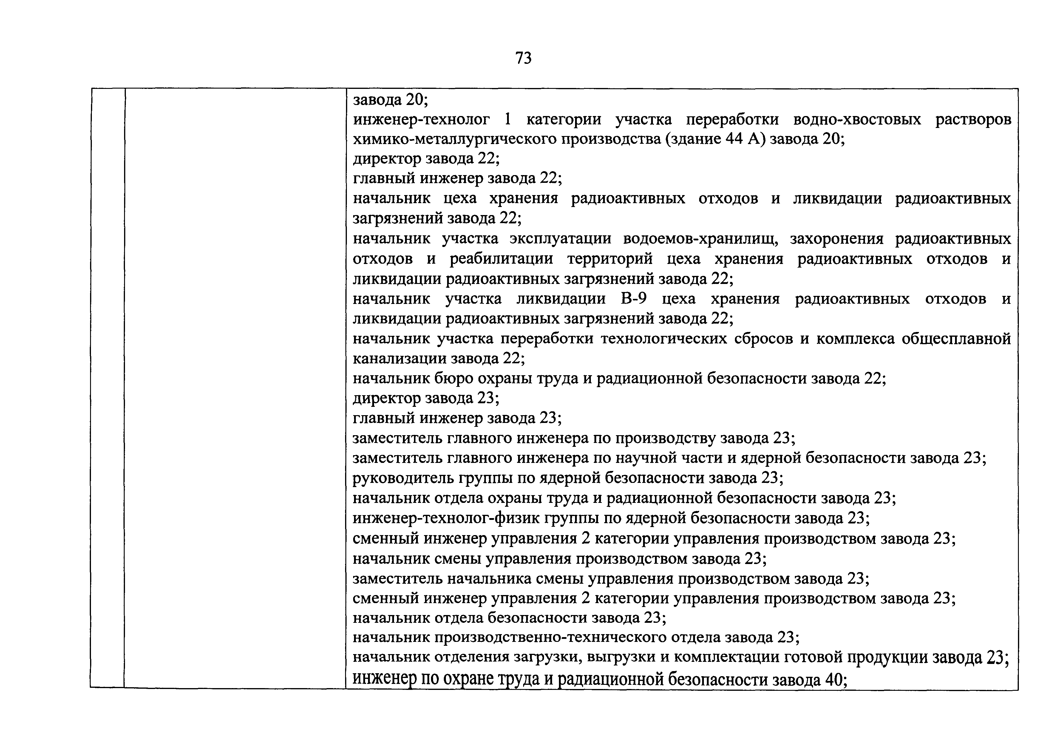 Перечень должностей (профессий) работников эксплуатирующих организаций, в том числе работников, непосредственно обеспечивающих безопасность особо радиационно опасных и ядерно опасных производств и объектов в области использования атомной энергии| Статус: | действует | | Название рус.: | Перечень должностей (профессий) работников эксплуатирующих организаций, в том числе работников, непосредственно обеспечивающих безопасность особо радиационно опасных и ядерно опасных производств и объектов в области использования атомной энергии | | Дата добавления в базу: | 01.02.2020 | | Дата актуализации: | 01.01.2021 | | Дата введения: | 04.04.2014 | | Утверждён: | 18.12.2013 Государственная корпорация по атомной энергии РОСАТОМ (1/21-НПА)