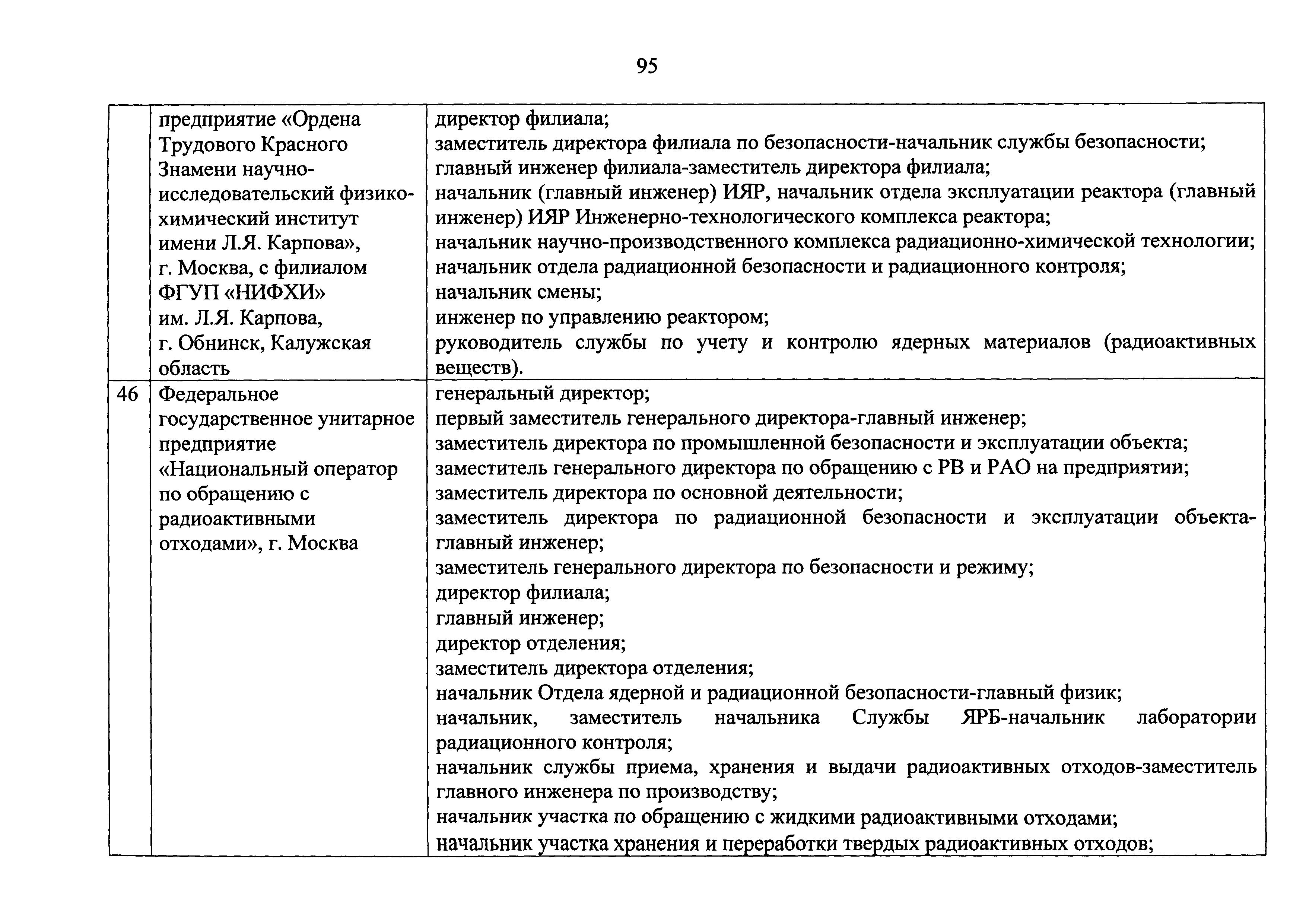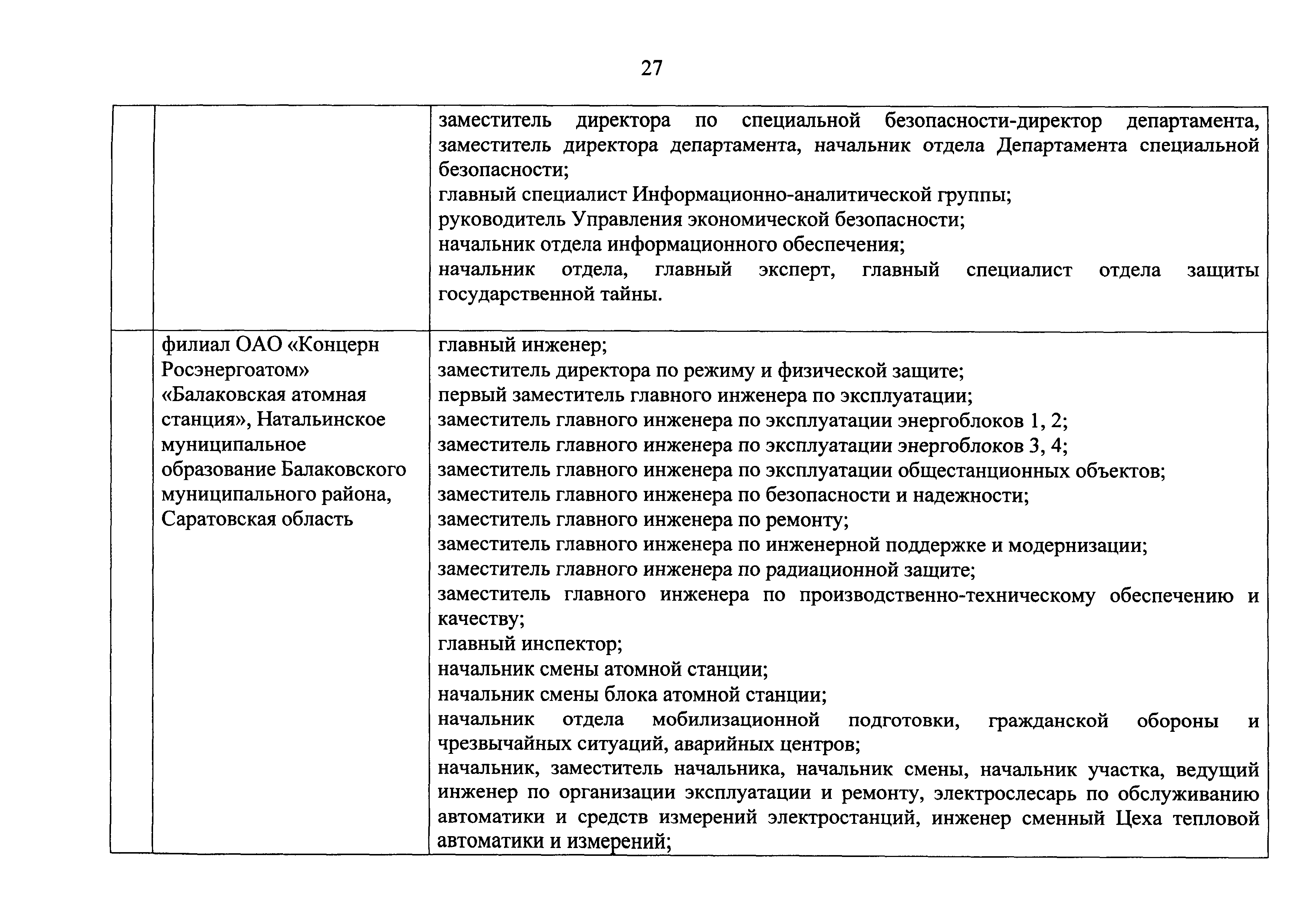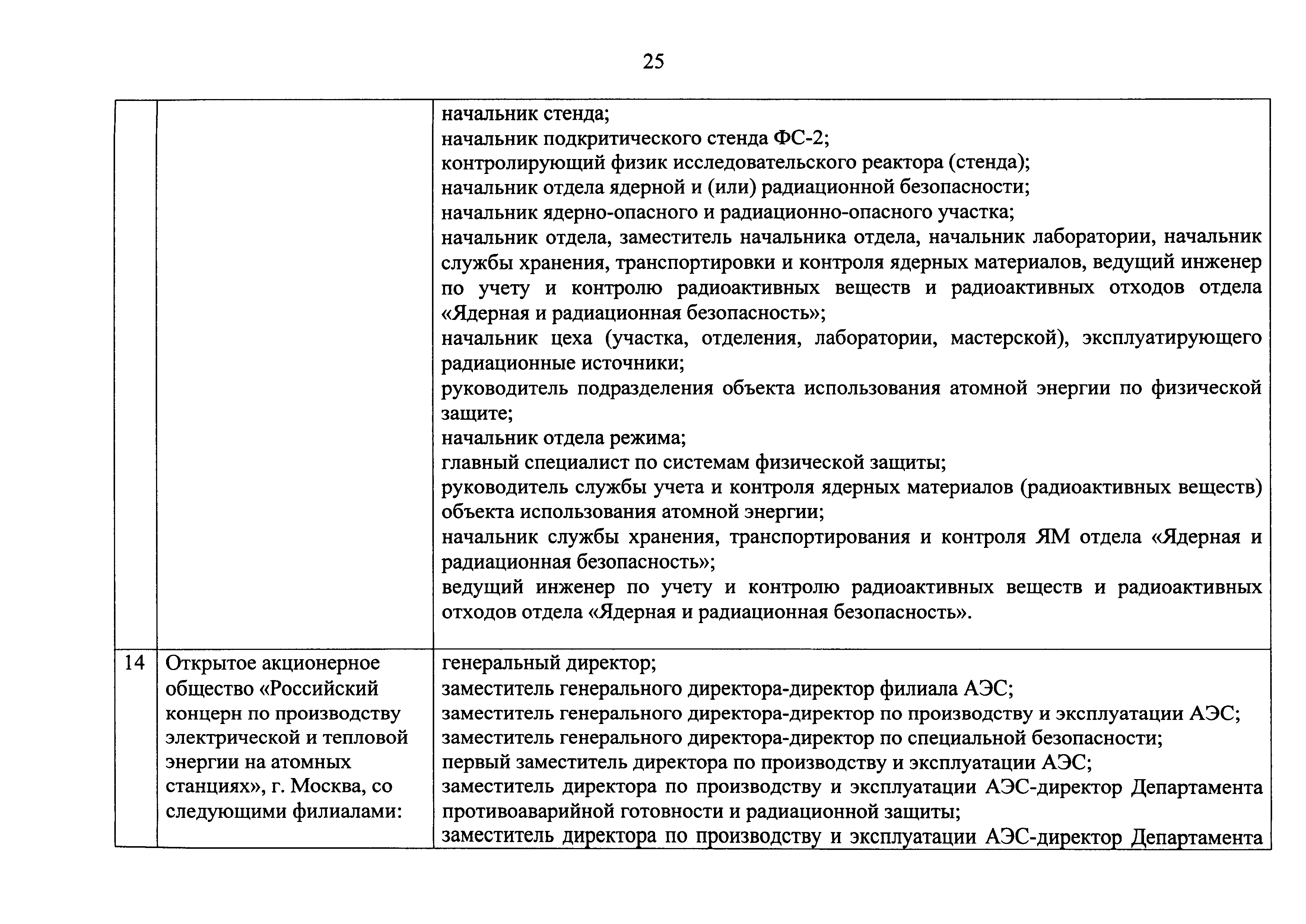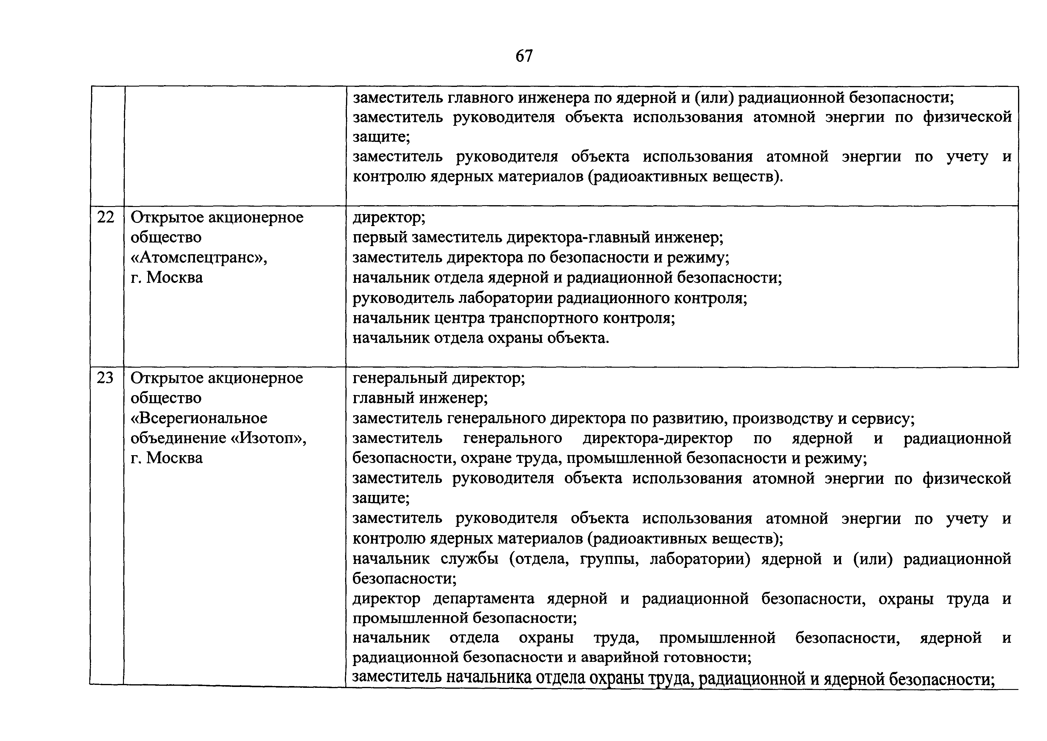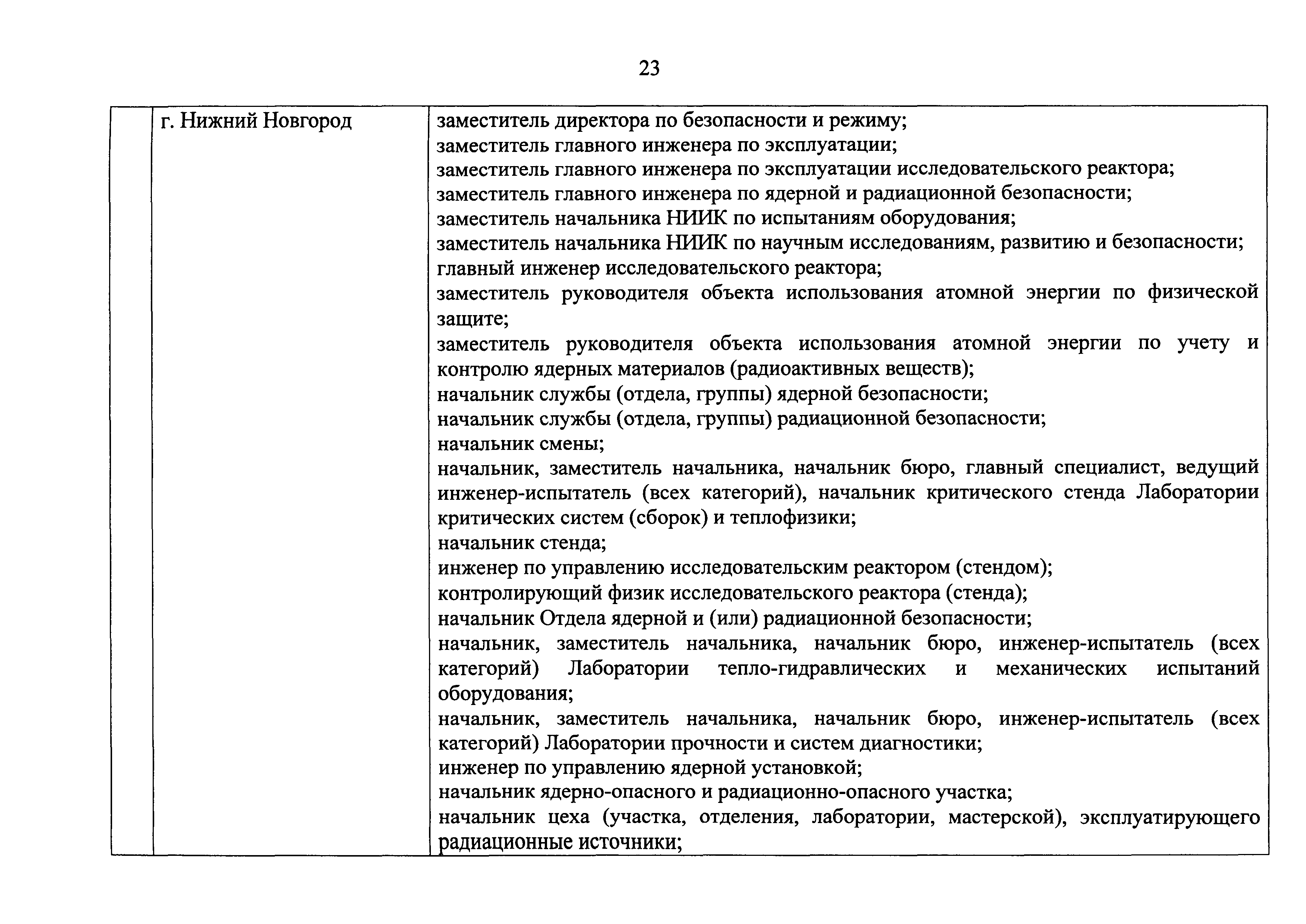 Перечень должностей (профессий) работников эксплуатирующих организаций, в том числе работников, непосредственно обеспечивающих безопасность особо радиационно опасных и ядерно опасных производств и объектов в области использования атомной энергии| Статус: | действует | | Название рус.: | Перечень должностей (профессий) работников эксплуатирующих организаций, в том числе работников, непосредственно обеспечивающих безопасность особо радиационно опасных и ядерно опасных производств и объектов в области использования атомной энергии | | Дата добавления в базу: | 01.02.2020 | | Дата актуализации: | 01.01.2021 | | Дата введения: | 04.04.2014 | | Утверждён: | 18.12.2013 Государственная корпорация по атомной энергии РОСАТОМ (1/21-НПА)