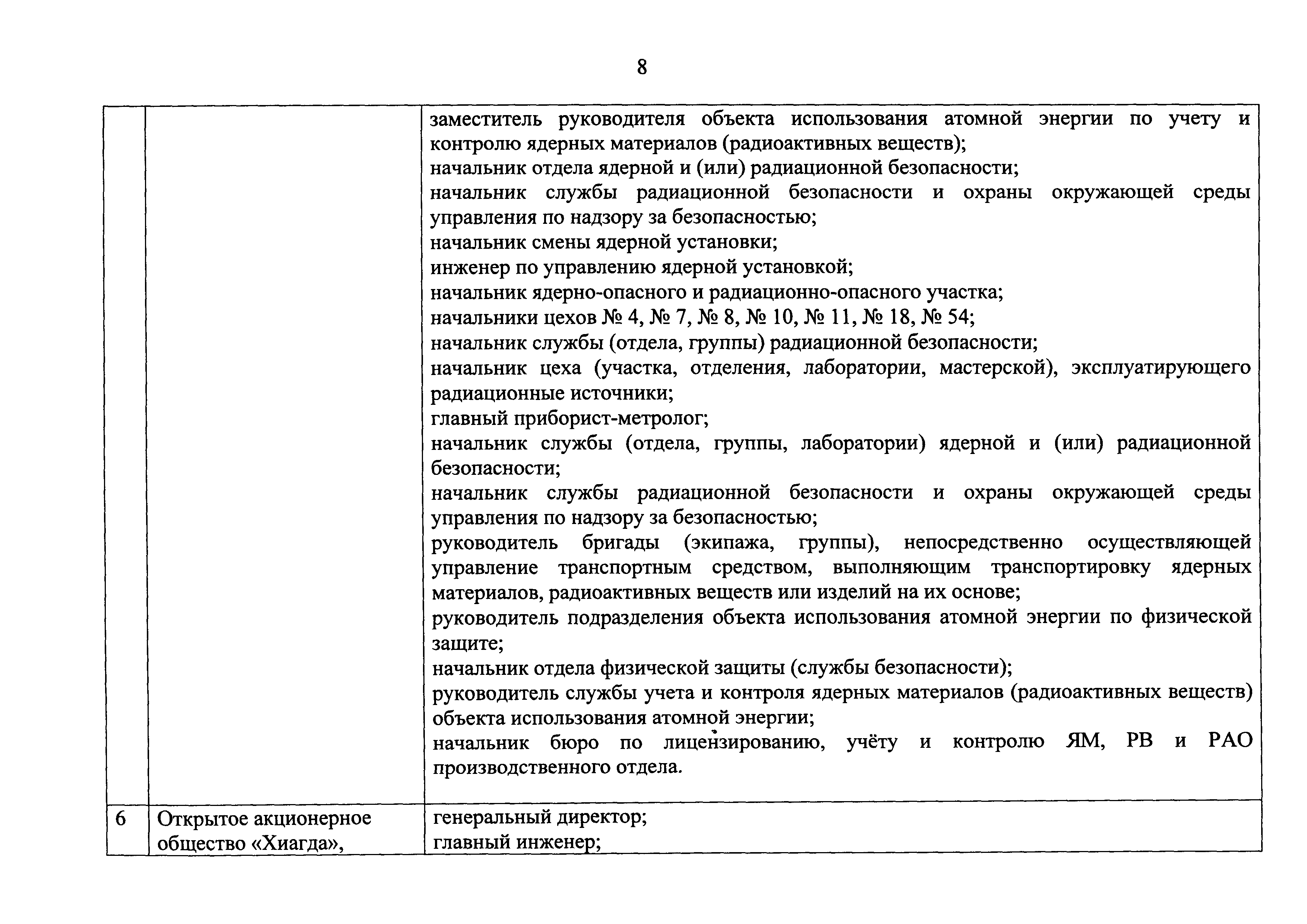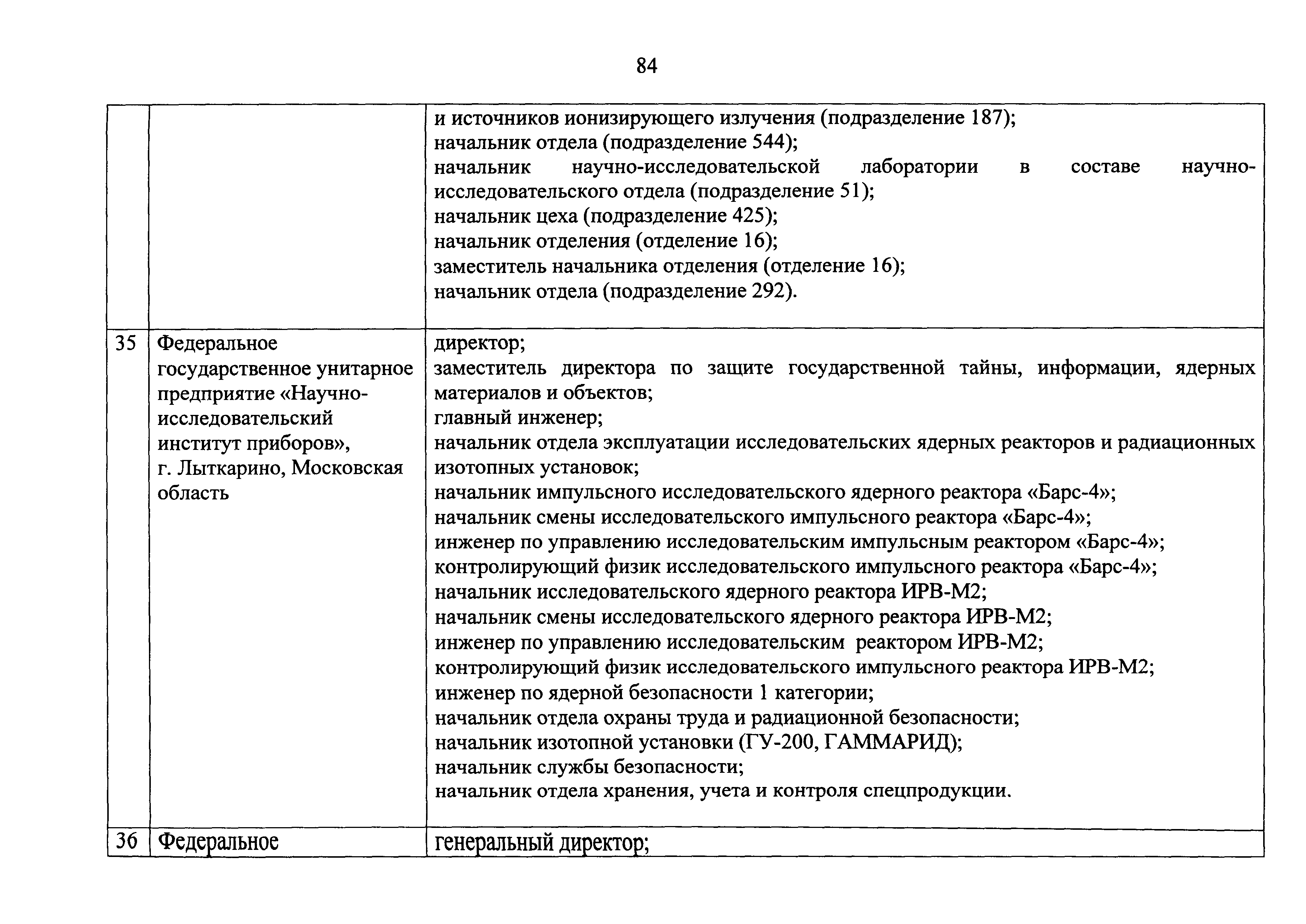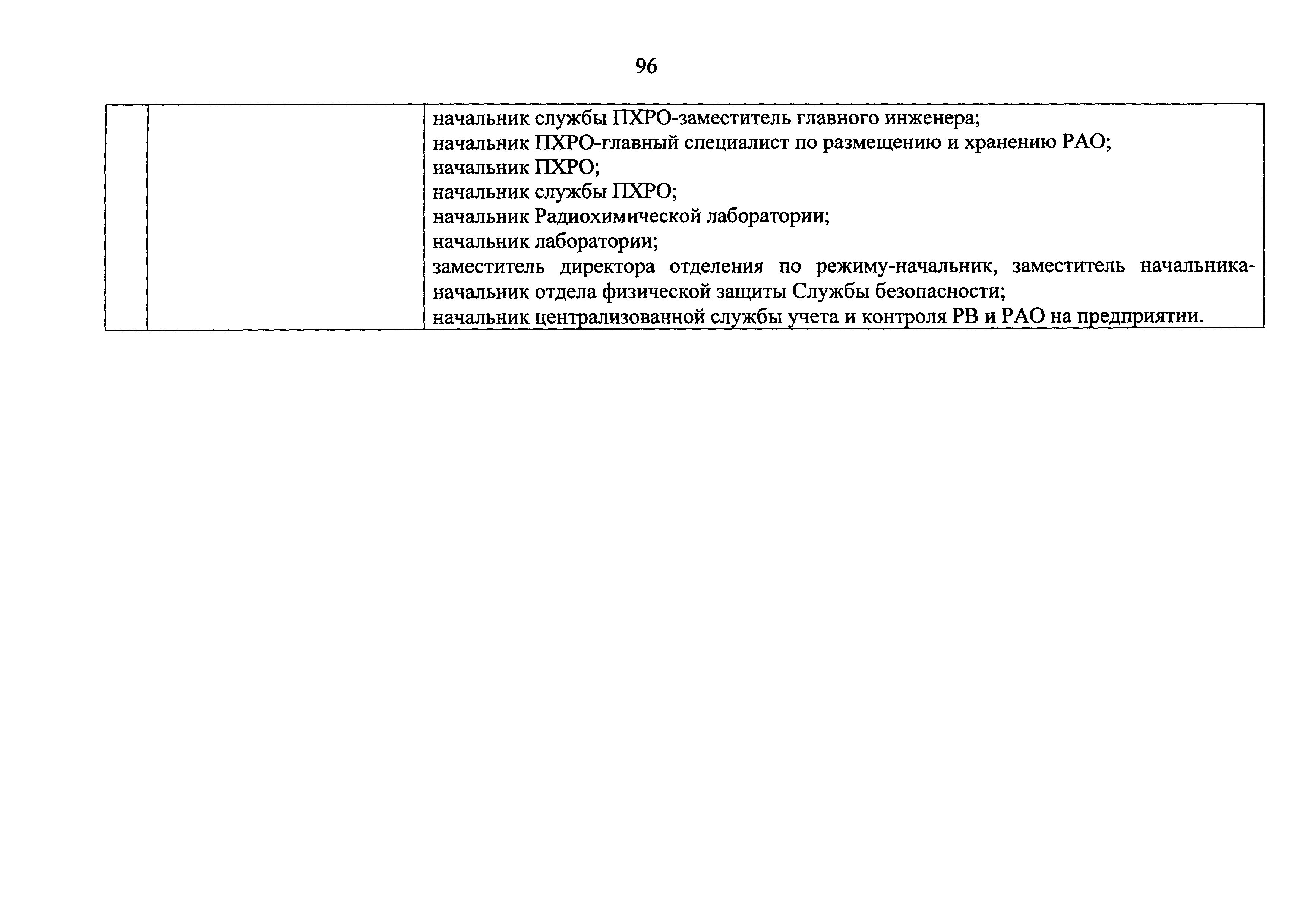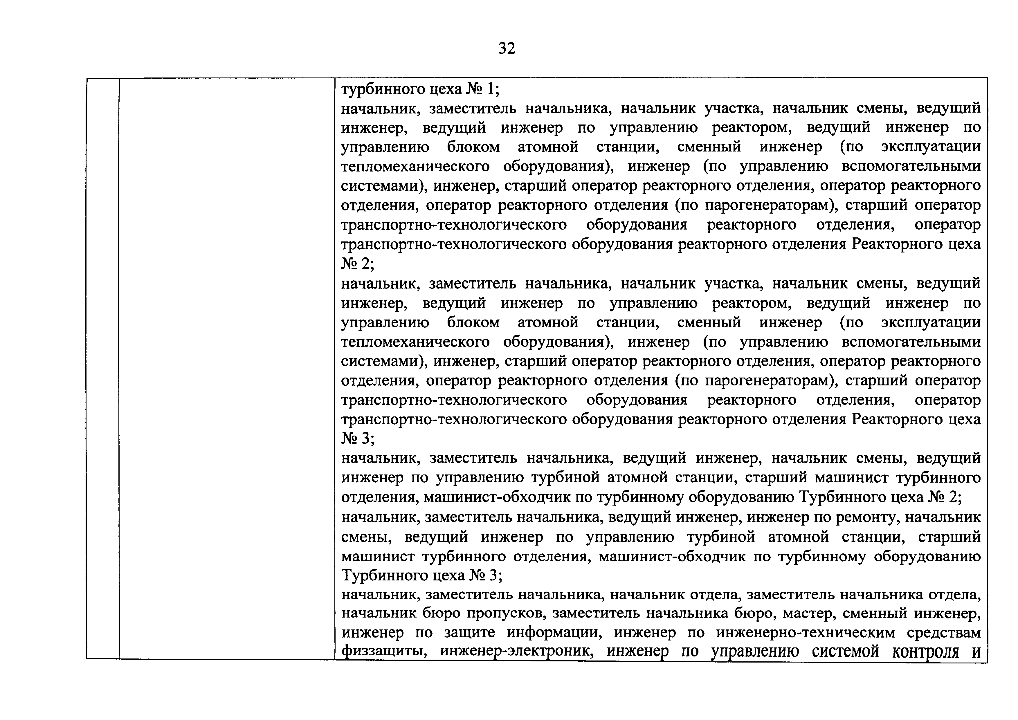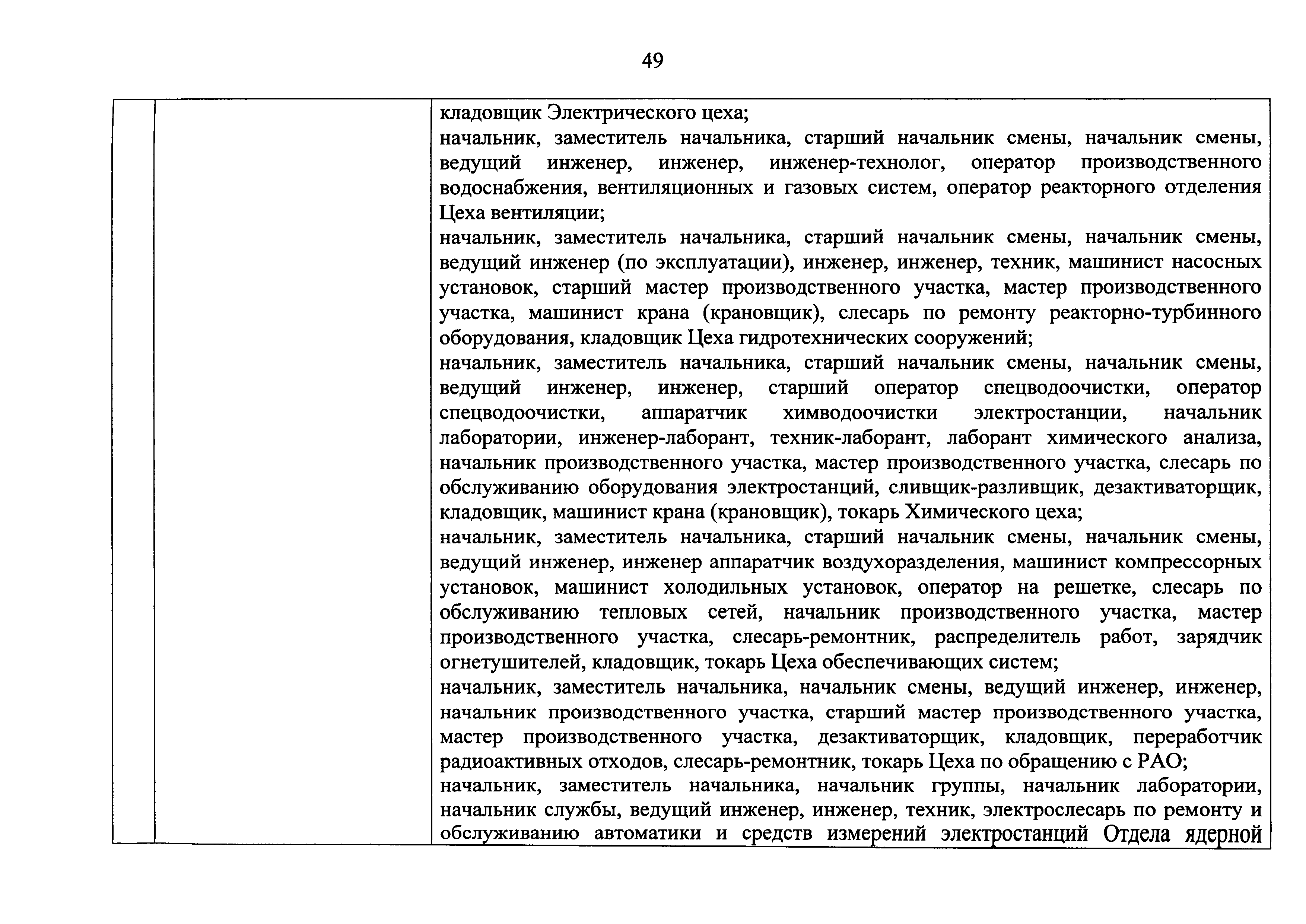 Перечень должностей (профессий) работников эксплуатирующих организаций, в том числе работников, непосредственно обеспечивающих безопасность особо радиационно опасных и ядерно опасных производств и объектов в области использования атомной энергии| Статус: | действует | | Название рус.: | Перечень должностей (профессий) работников эксплуатирующих организаций, в том числе работников, непосредственно обеспечивающих безопасность особо радиационно опасных и ядерно опасных производств и объектов в области использования атомной энергии | | Дата добавления в базу: | 01.02.2020 | | Дата актуализации: | 01.01.2021 | | Дата введения: | 04.04.2014 | | Утверждён: | 18.12.2013 Государственная корпорация по атомной энергии РОСАТОМ (1/21-НПА)