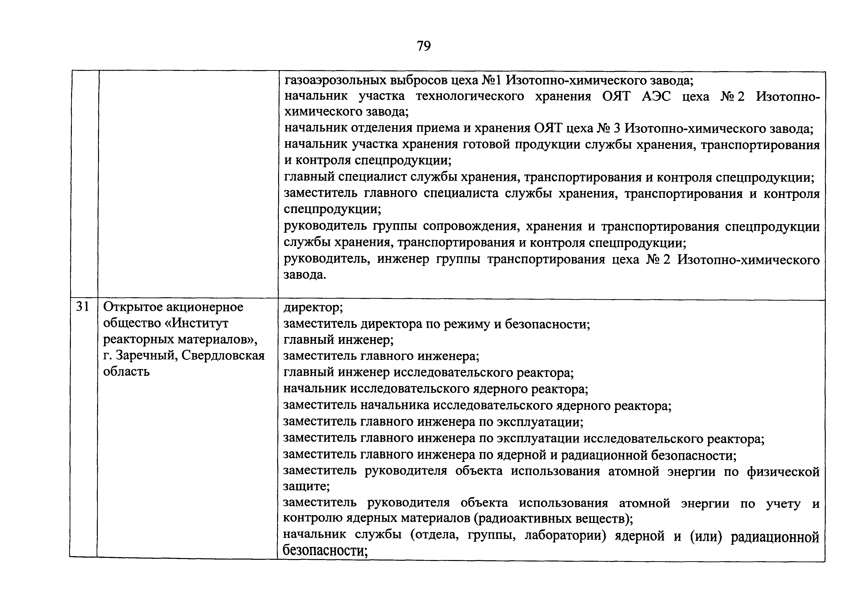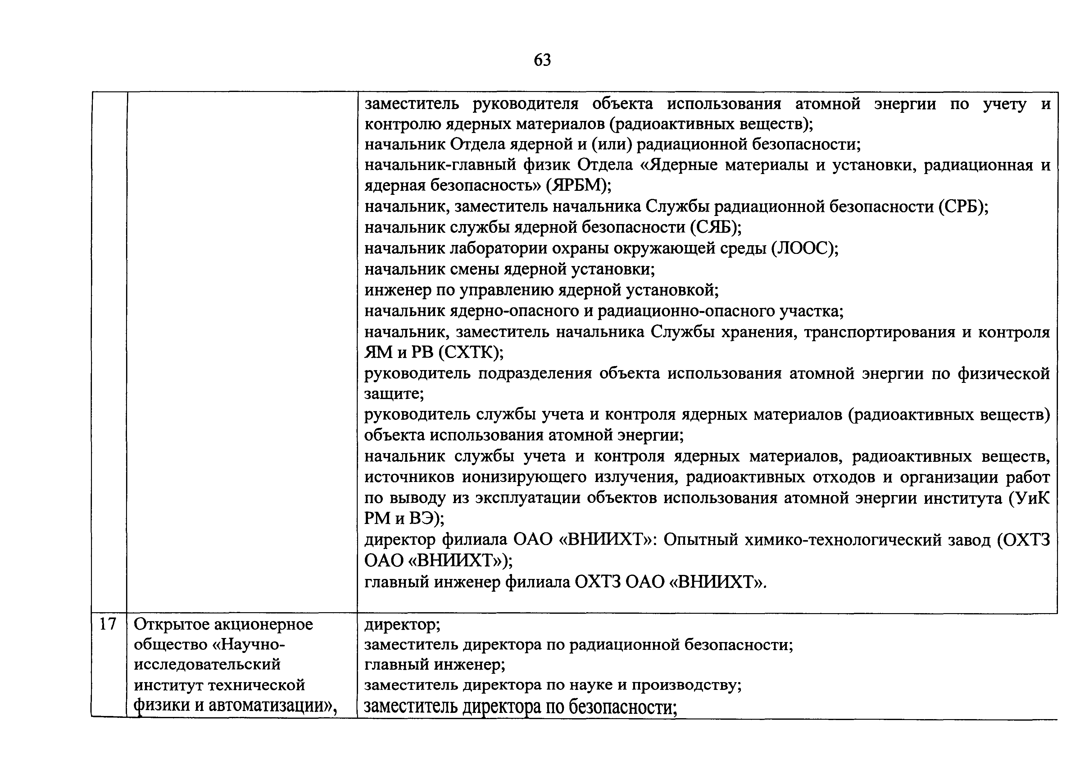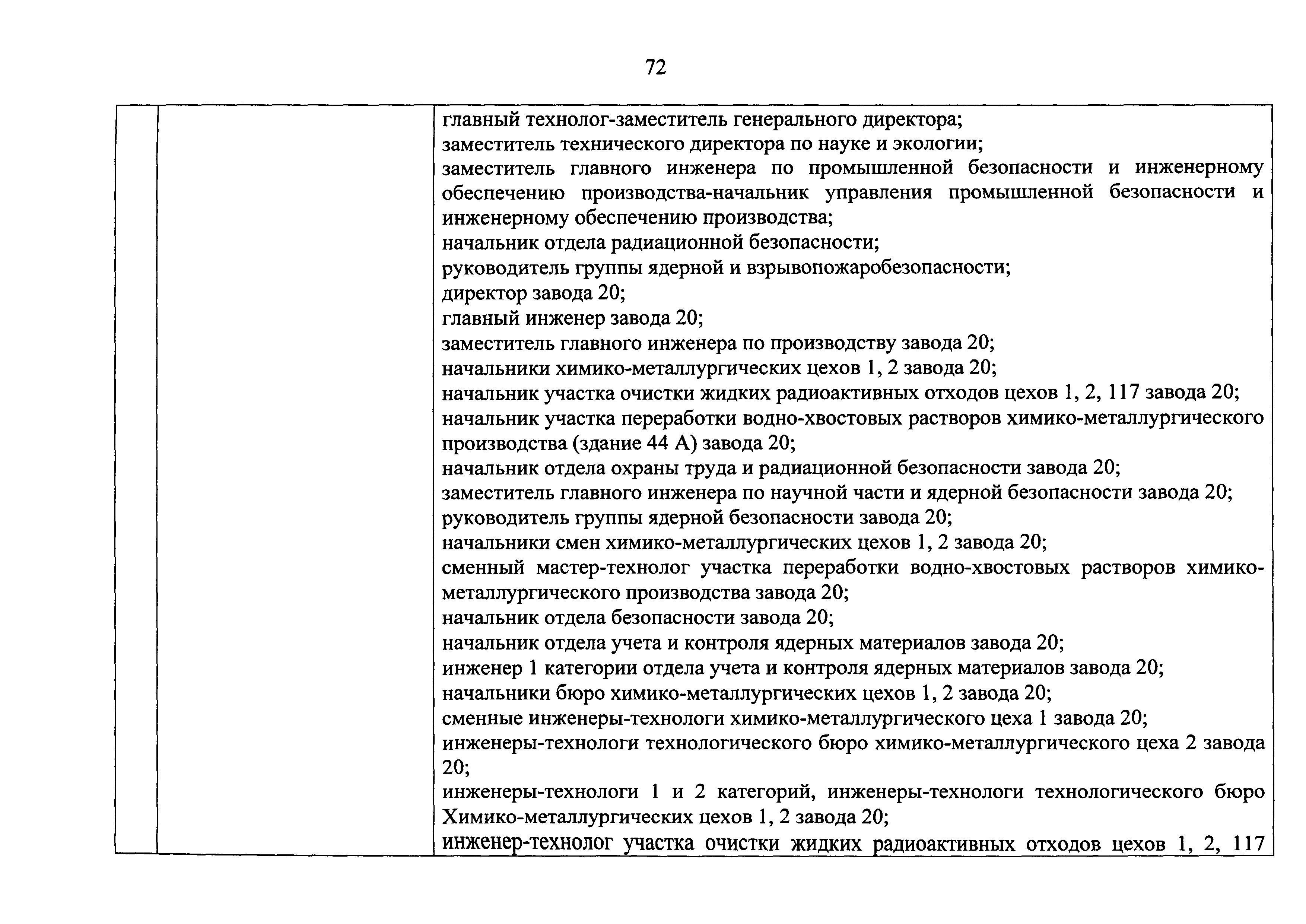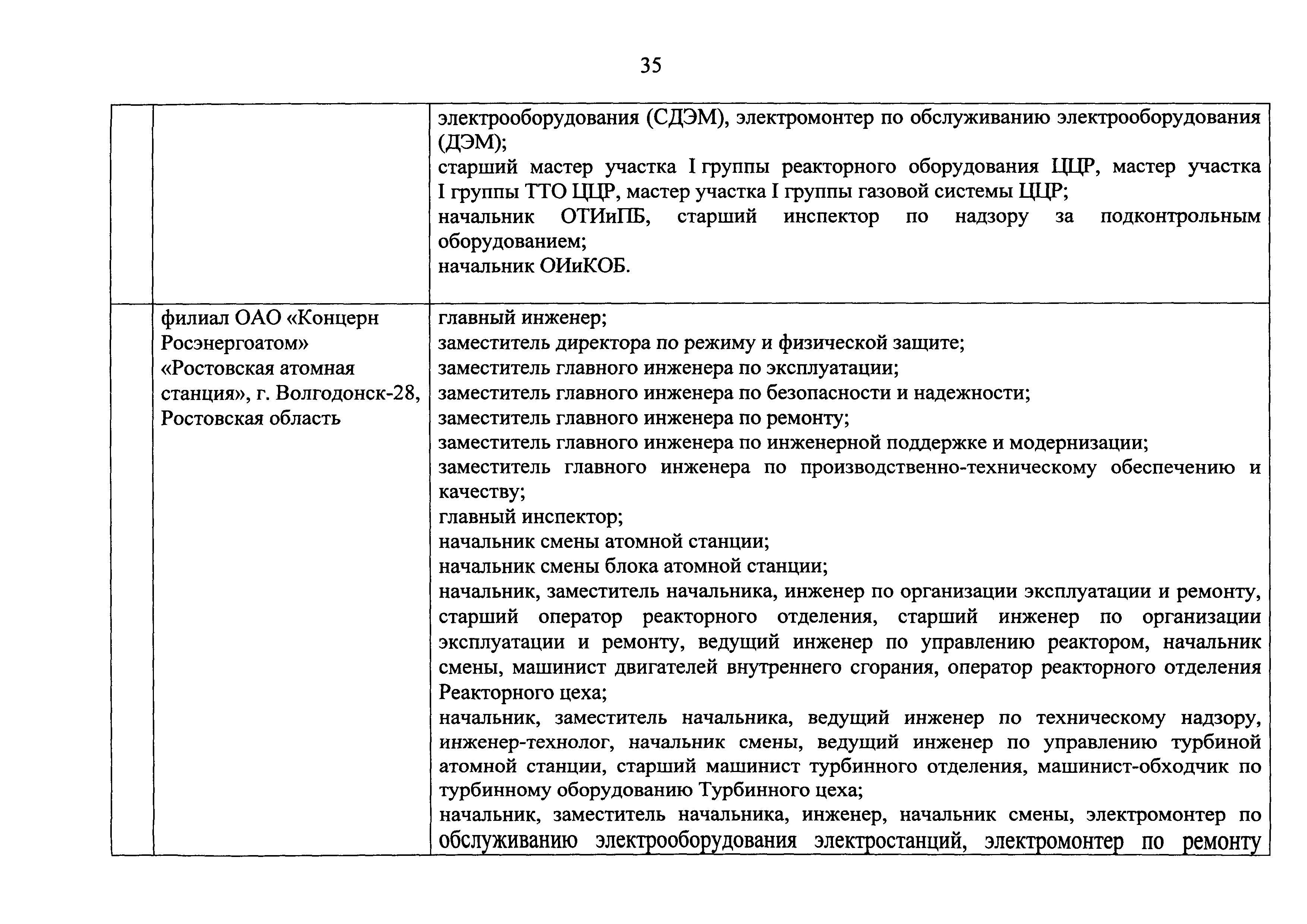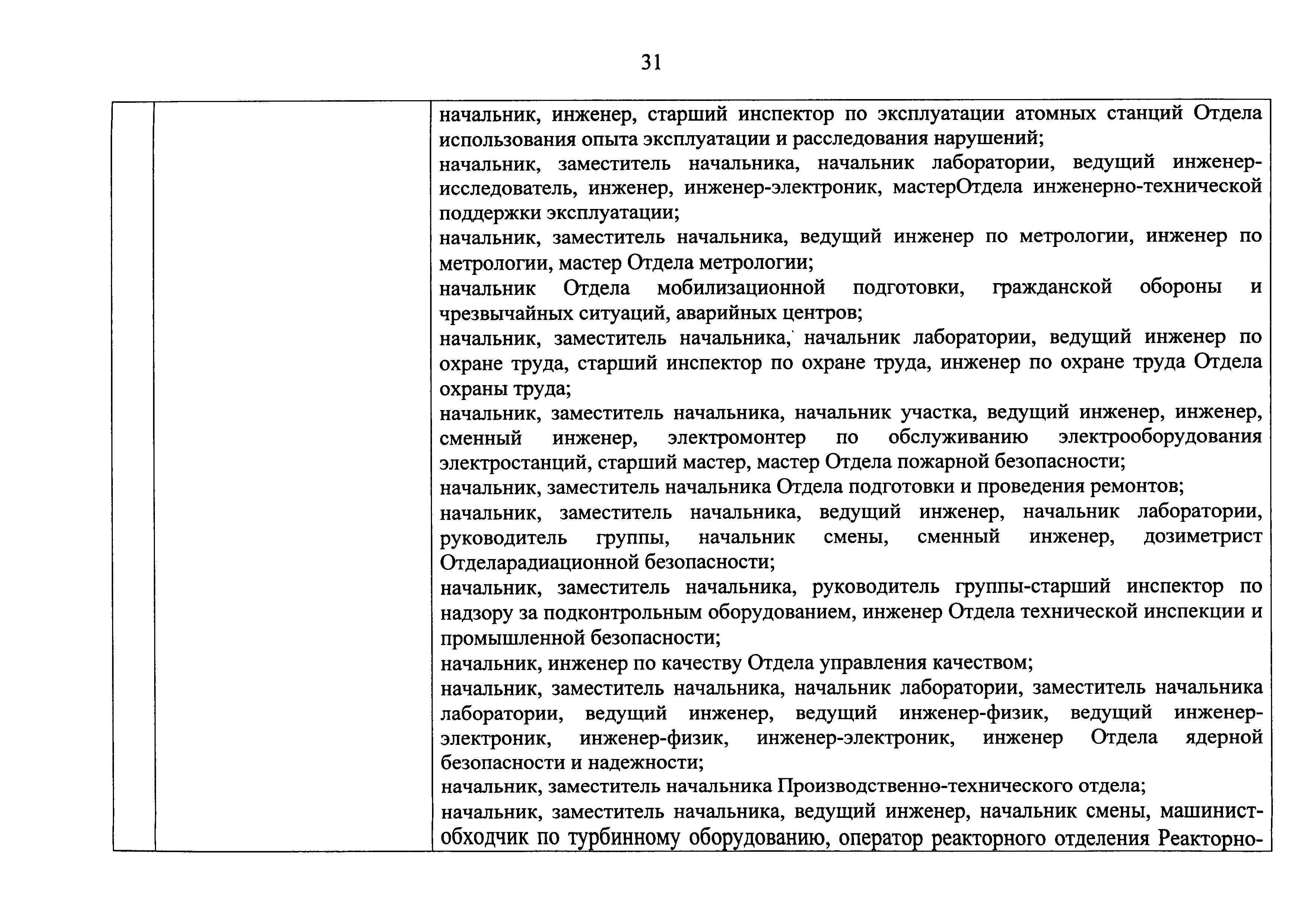 Перечень должностей (профессий) работников эксплуатирующих организаций, в том числе работников, непосредственно обеспечивающих безопасность особо радиационно опасных и ядерно опасных производств и объектов в области использования атомной энергии| Статус: | действует | | Название рус.: | Перечень должностей (профессий) работников эксплуатирующих организаций, в том числе работников, непосредственно обеспечивающих безопасность особо радиационно опасных и ядерно опасных производств и объектов в области использования атомной энергии | | Дата добавления в базу: | 01.02.2020 | | Дата актуализации: | 01.01.2021 | | Дата введения: | 04.04.2014 | | Утверждён: | 18.12.2013 Государственная корпорация по атомной энергии РОСАТОМ (1/21-НПА)