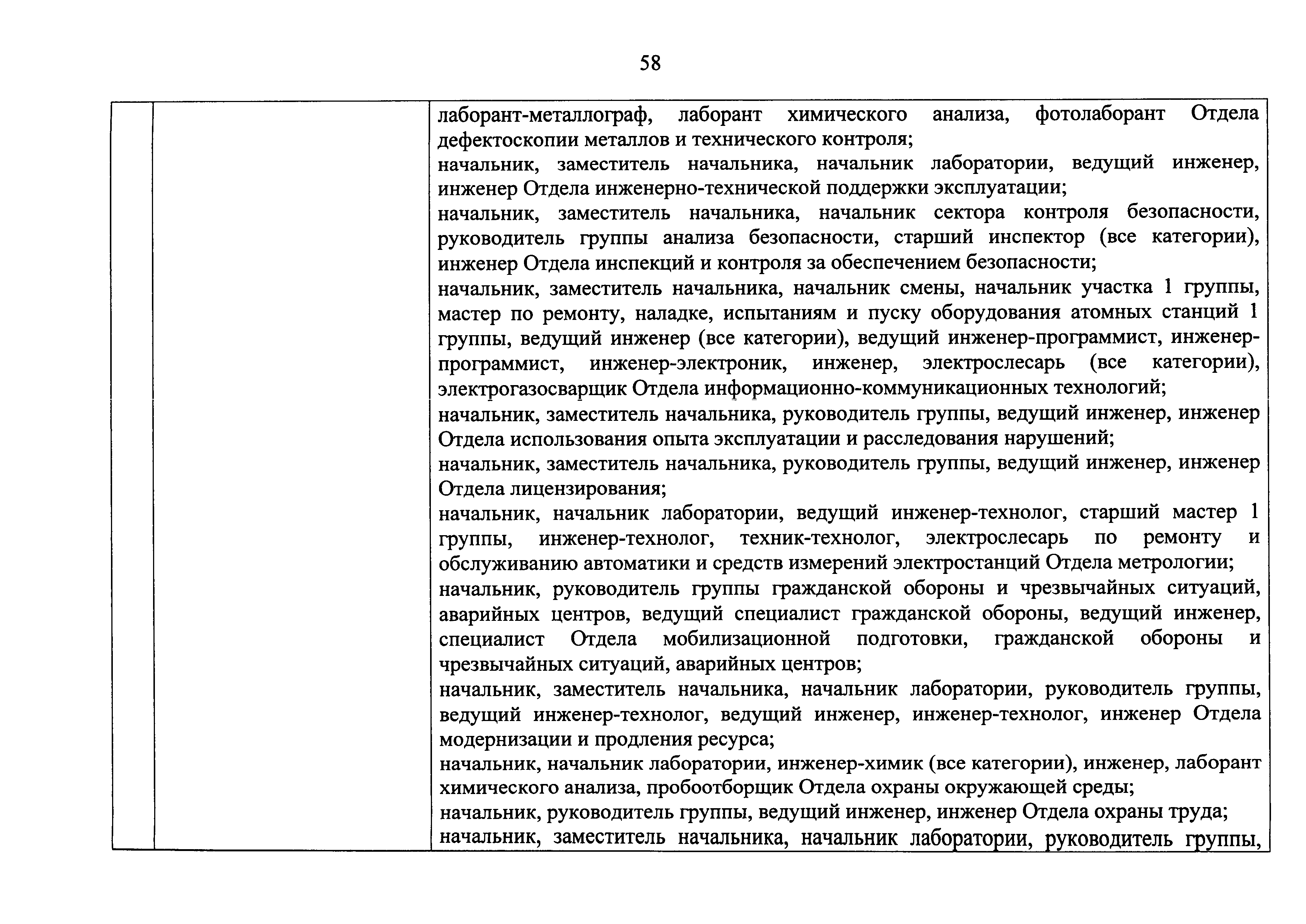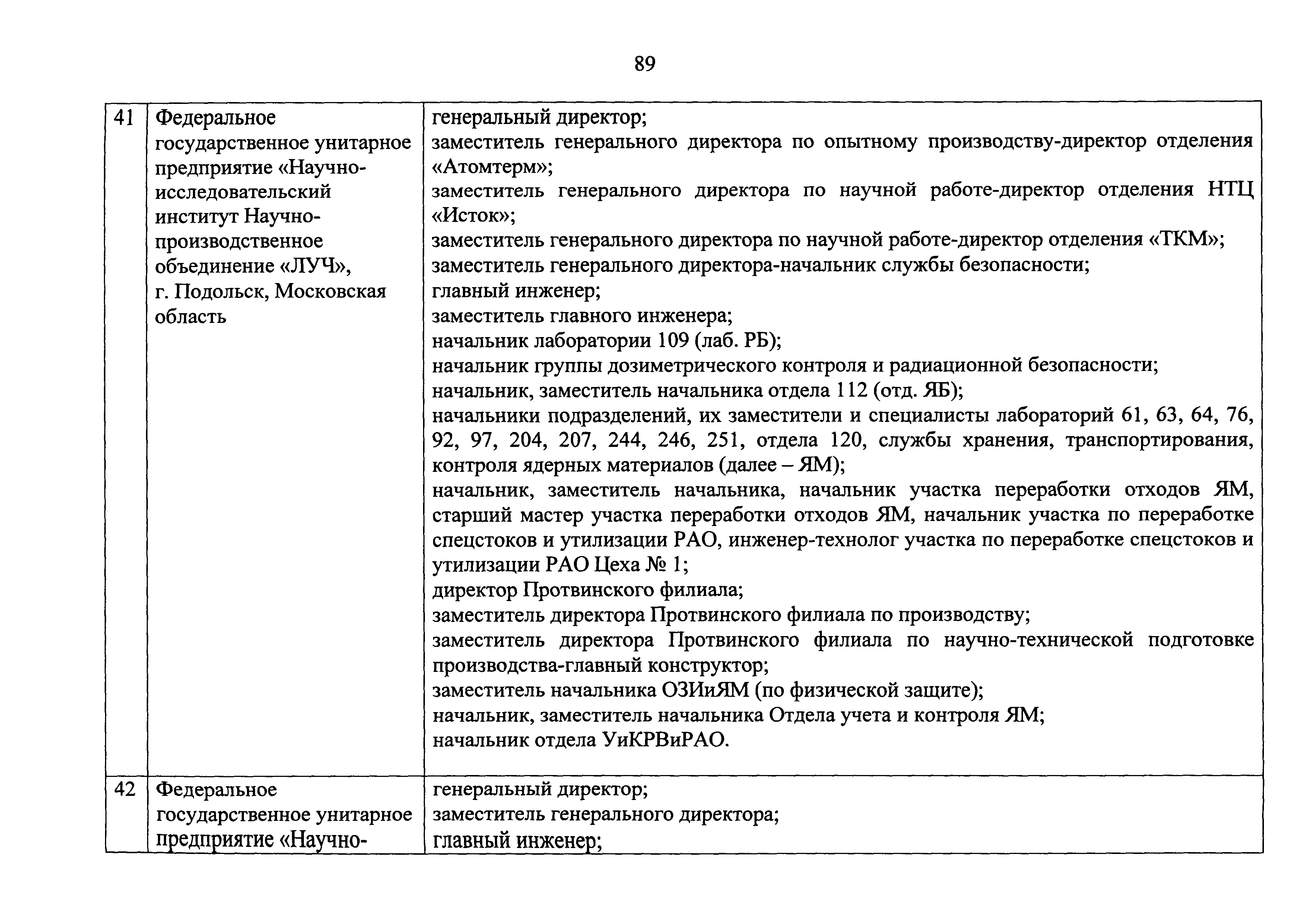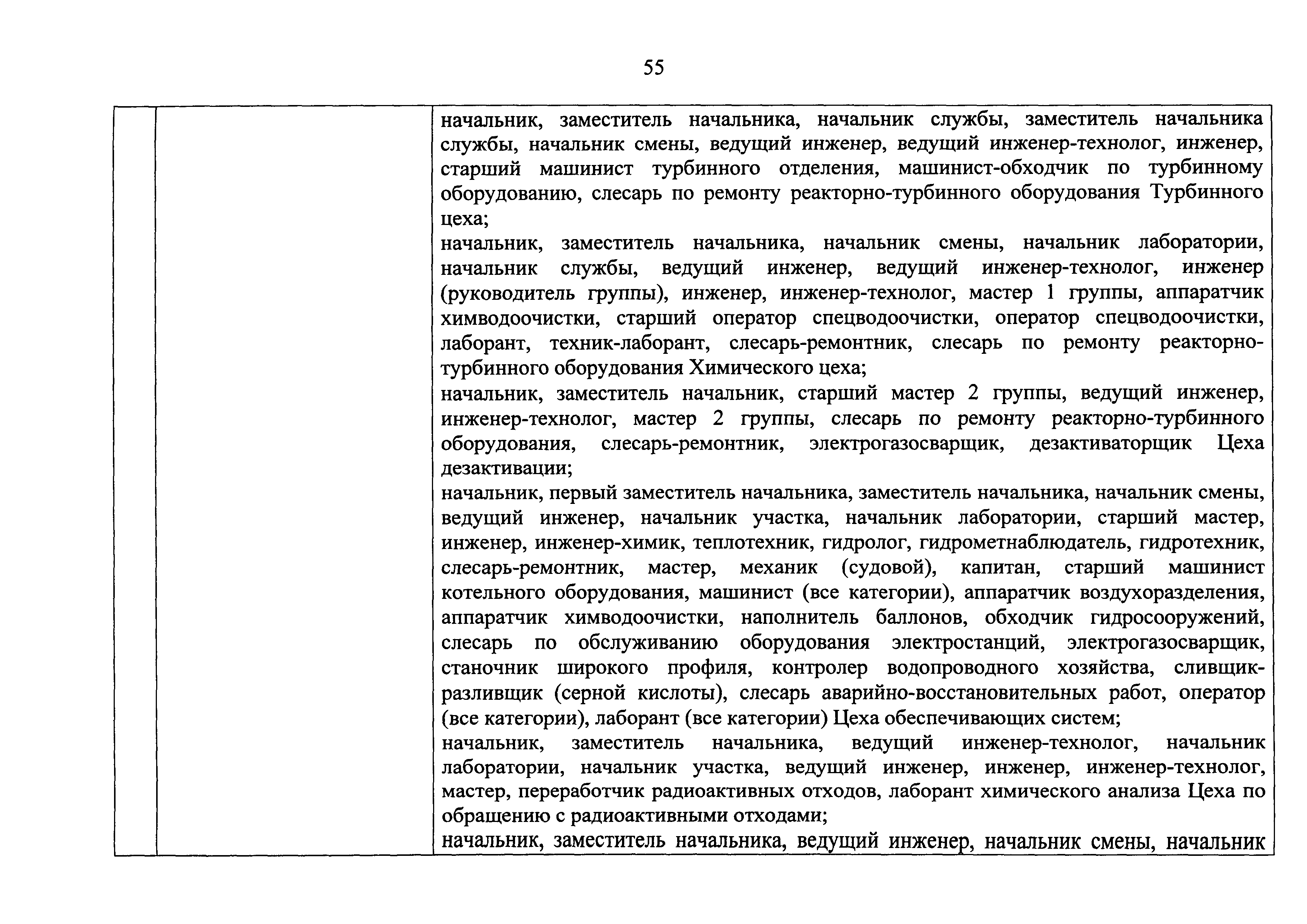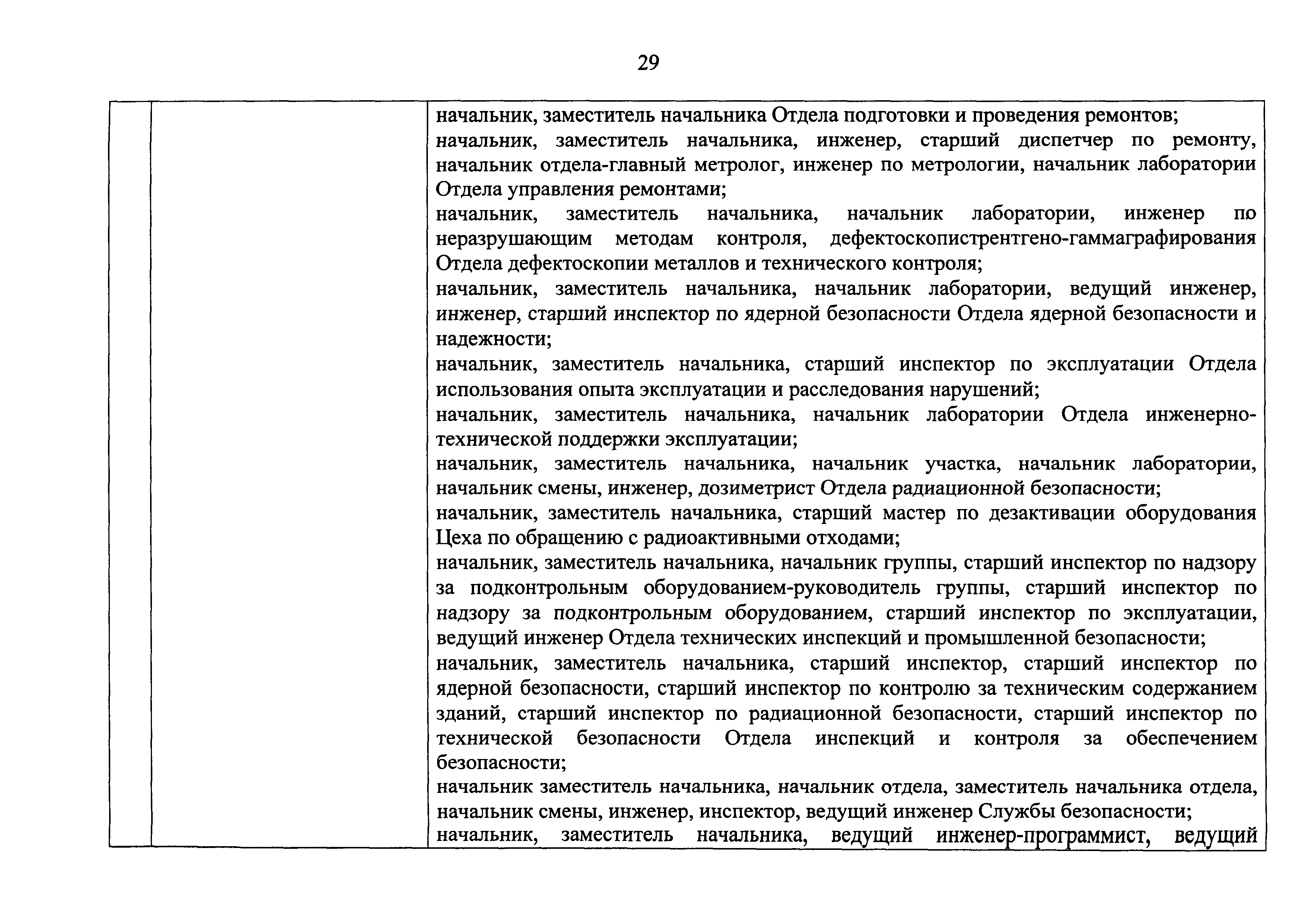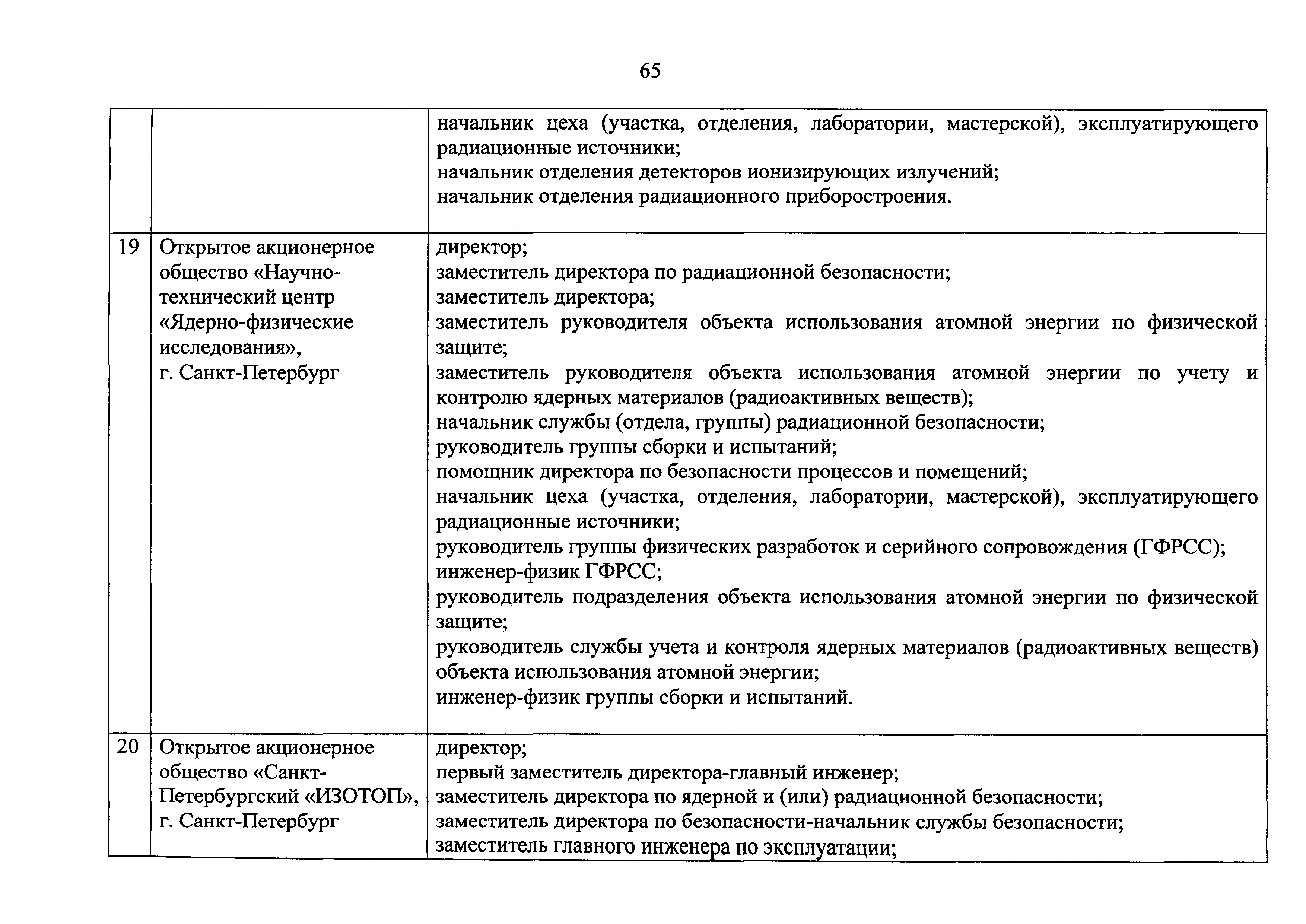 Перечень должностей (профессий) работников эксплуатирующих организаций, в том числе работников, непосредственно обеспечивающих безопасность особо радиационно опасных и ядерно опасных производств и объектов в области использования атомной энергии| Статус: | действует | | Название рус.: | Перечень должностей (профессий) работников эксплуатирующих организаций, в том числе работников, непосредственно обеспечивающих безопасность особо радиационно опасных и ядерно опасных производств и объектов в области использования атомной энергии | | Дата добавления в базу: | 01.02.2020 | | Дата актуализации: | 01.01.2021 | | Дата введения: | 04.04.2014 | | Утверждён: | 18.12.2013 Государственная корпорация по атомной энергии РОСАТОМ (1/21-НПА)