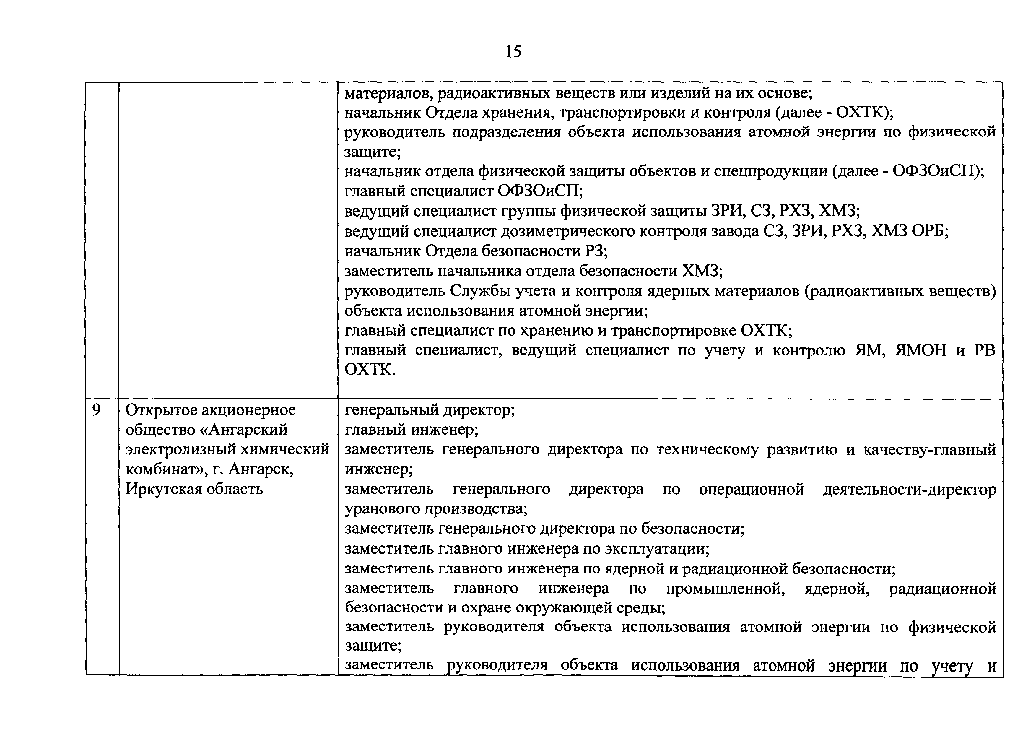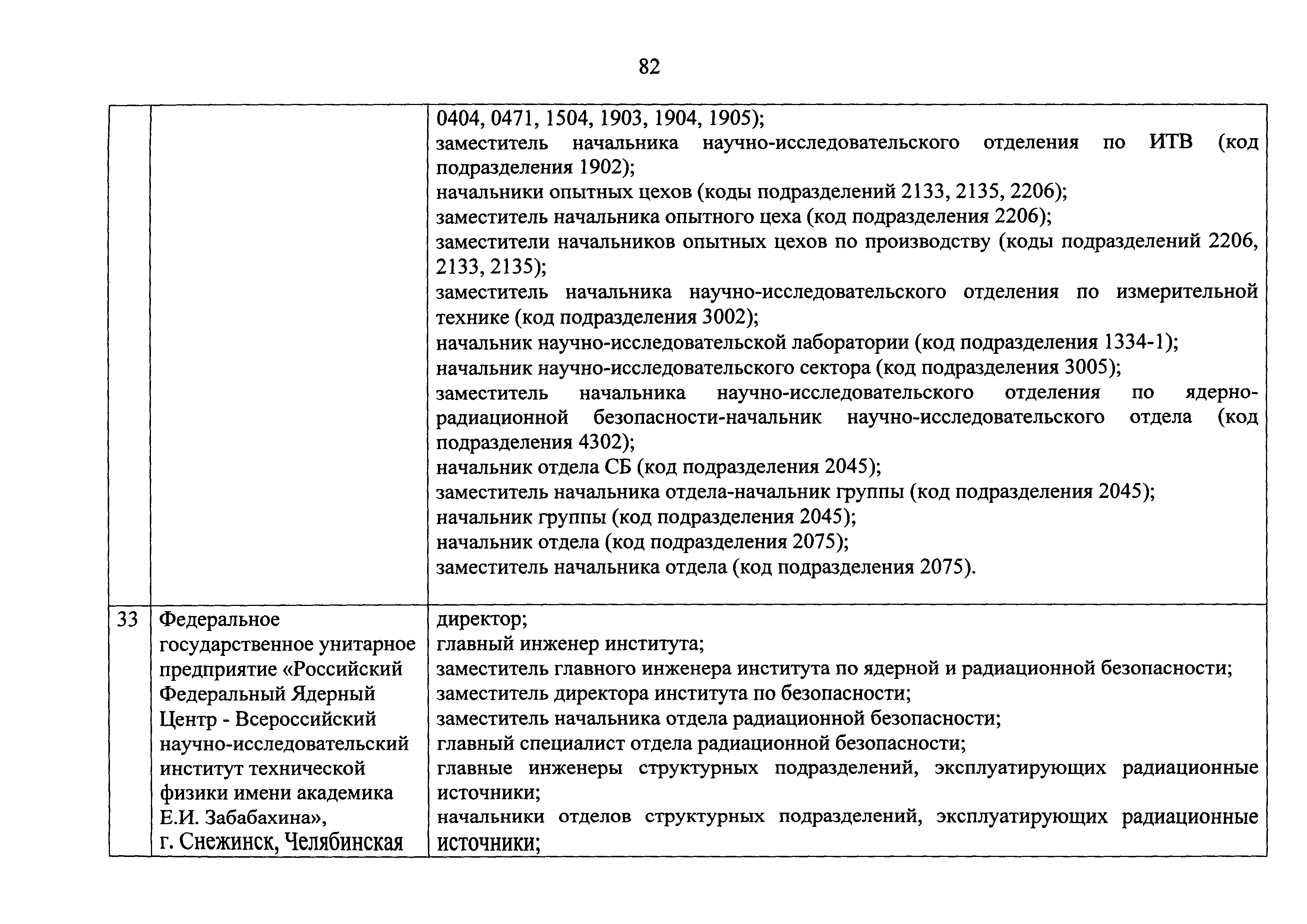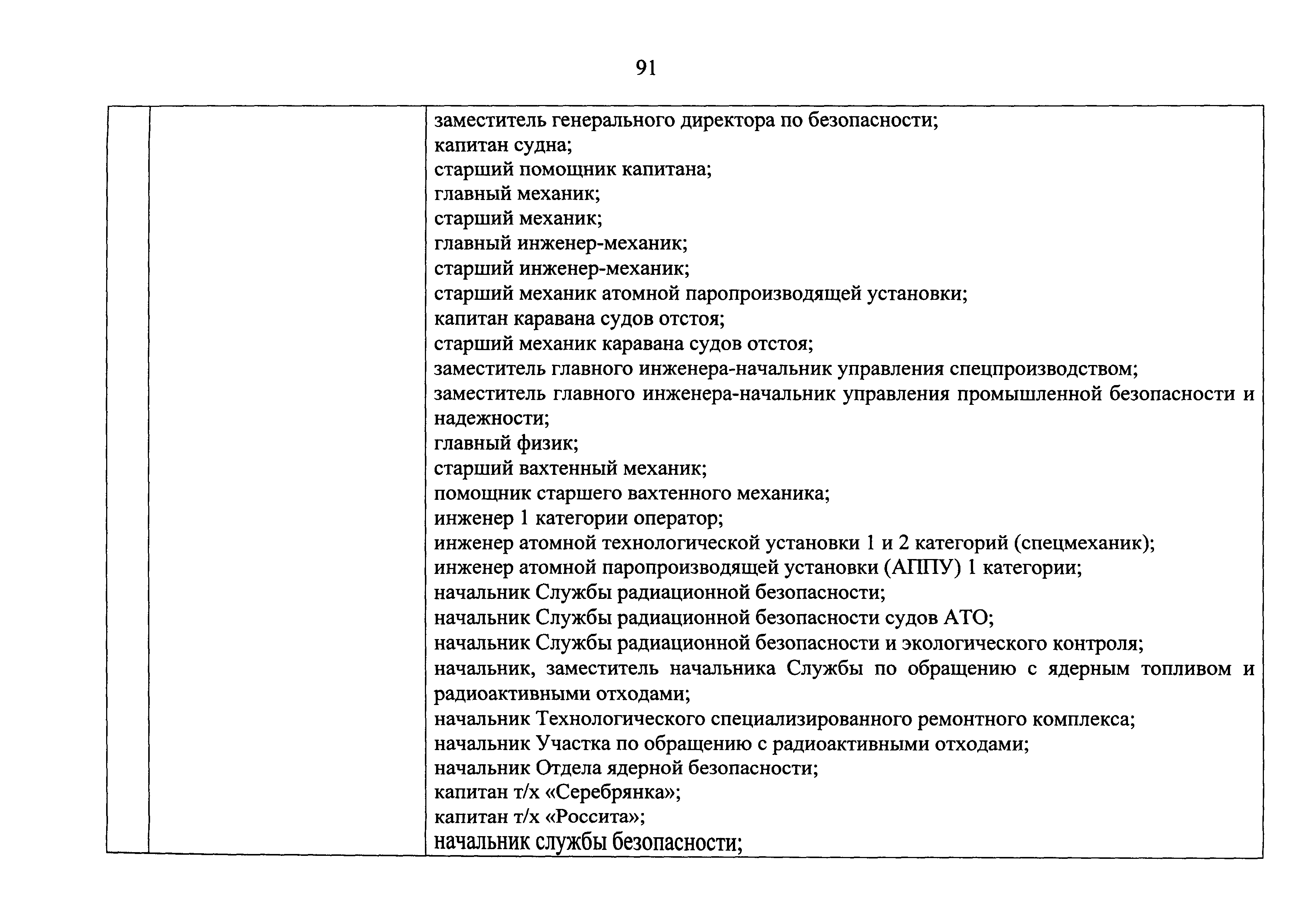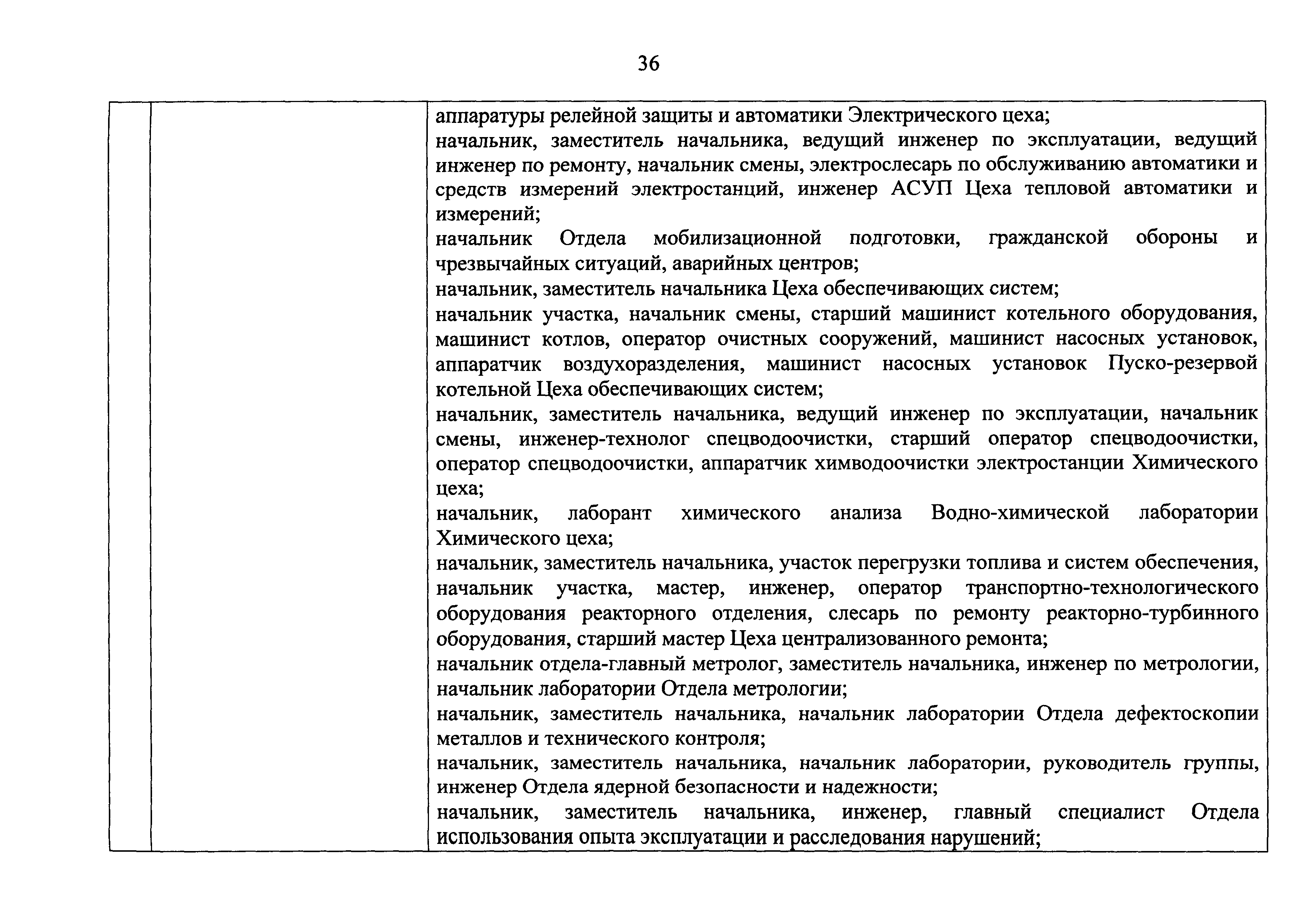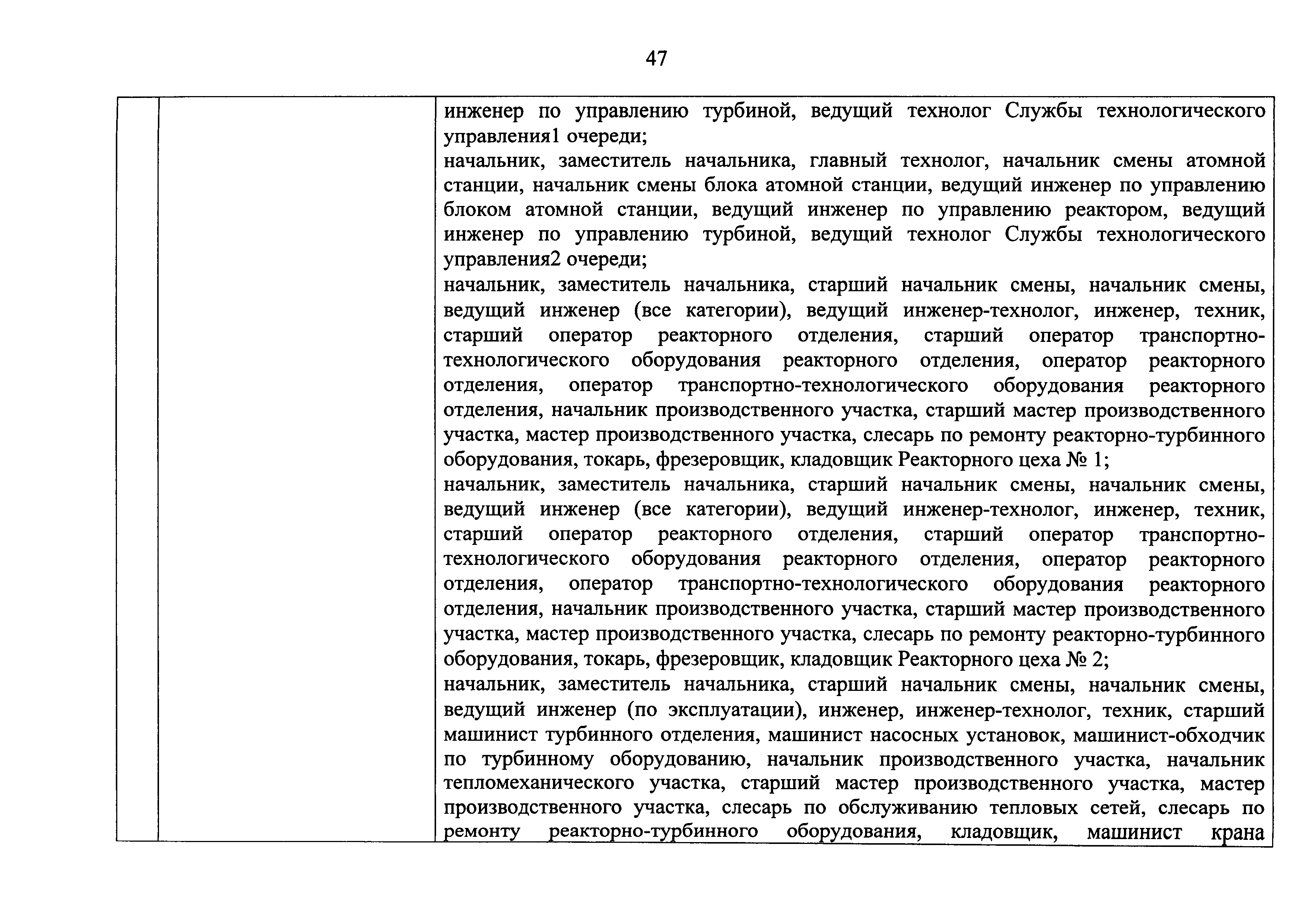 Перечень должностей (профессий) работников эксплуатирующих организаций, в том числе работников, непосредственно обеспечивающих безопасность особо радиационно опасных и ядерно опасных производств и объектов в области использования атомной энергии| Статус: | действует | | Название рус.: | Перечень должностей (профессий) работников эксплуатирующих организаций, в том числе работников, непосредственно обеспечивающих безопасность особо радиационно опасных и ядерно опасных производств и объектов в области использования атомной энергии | | Дата добавления в базу: | 01.02.2020 | | Дата актуализации: | 01.01.2021 | | Дата введения: | 04.04.2014 | | Утверждён: | 18.12.2013 Государственная корпорация по атомной энергии РОСАТОМ (1/21-НПА)