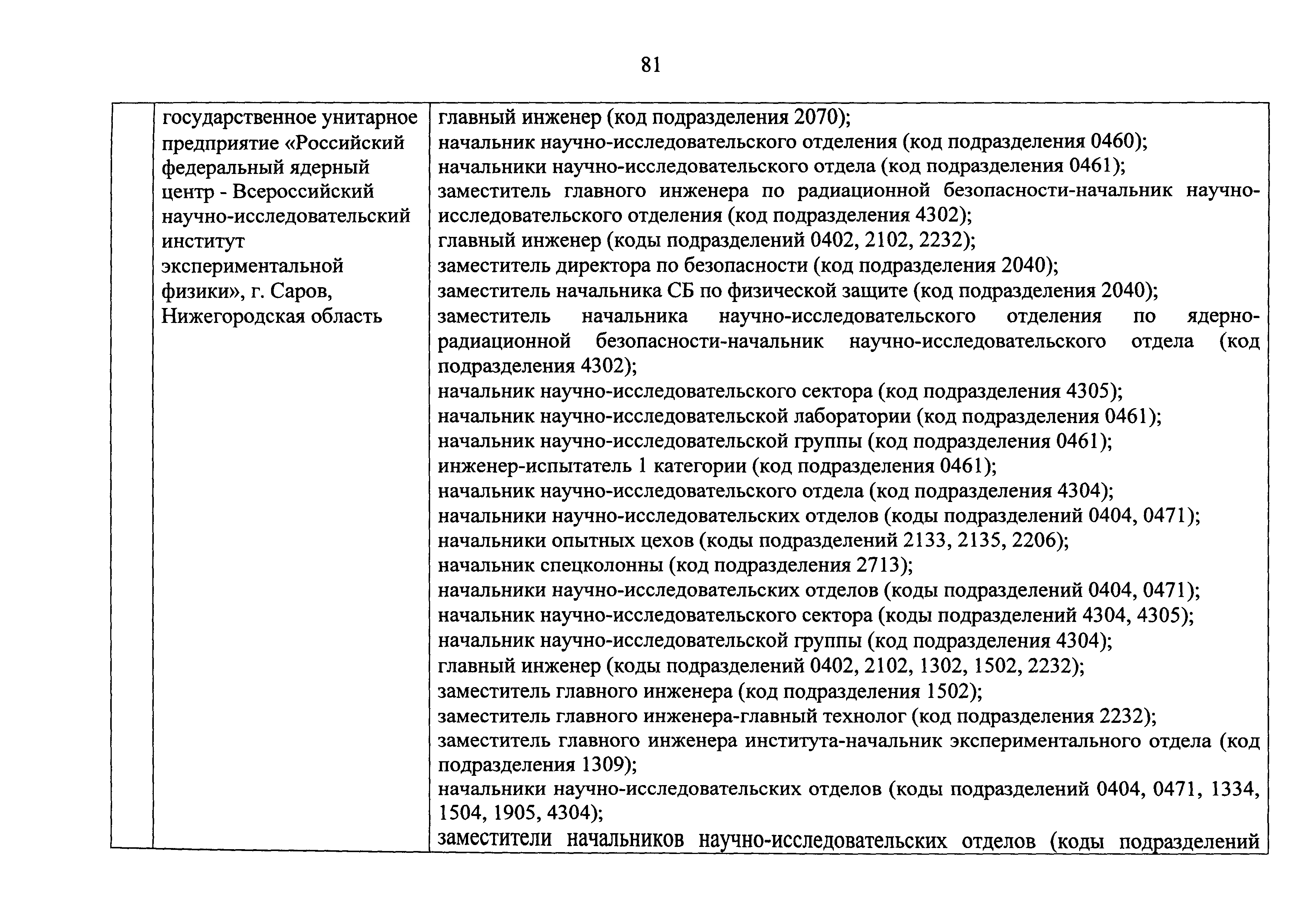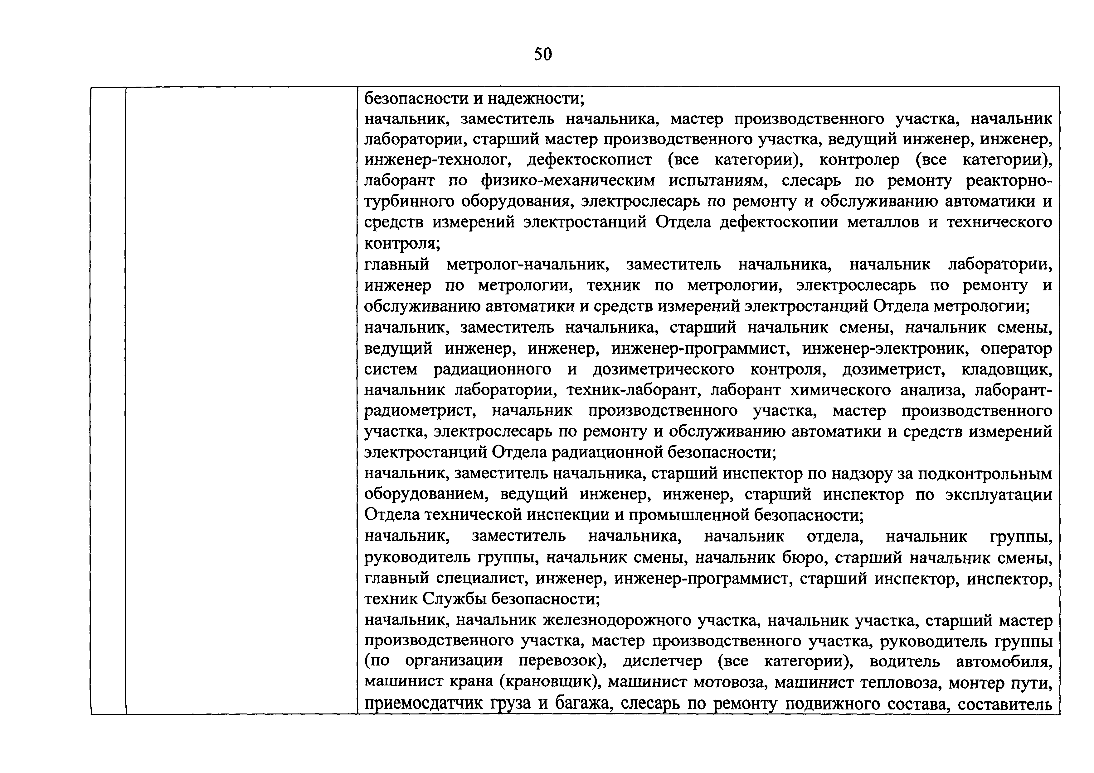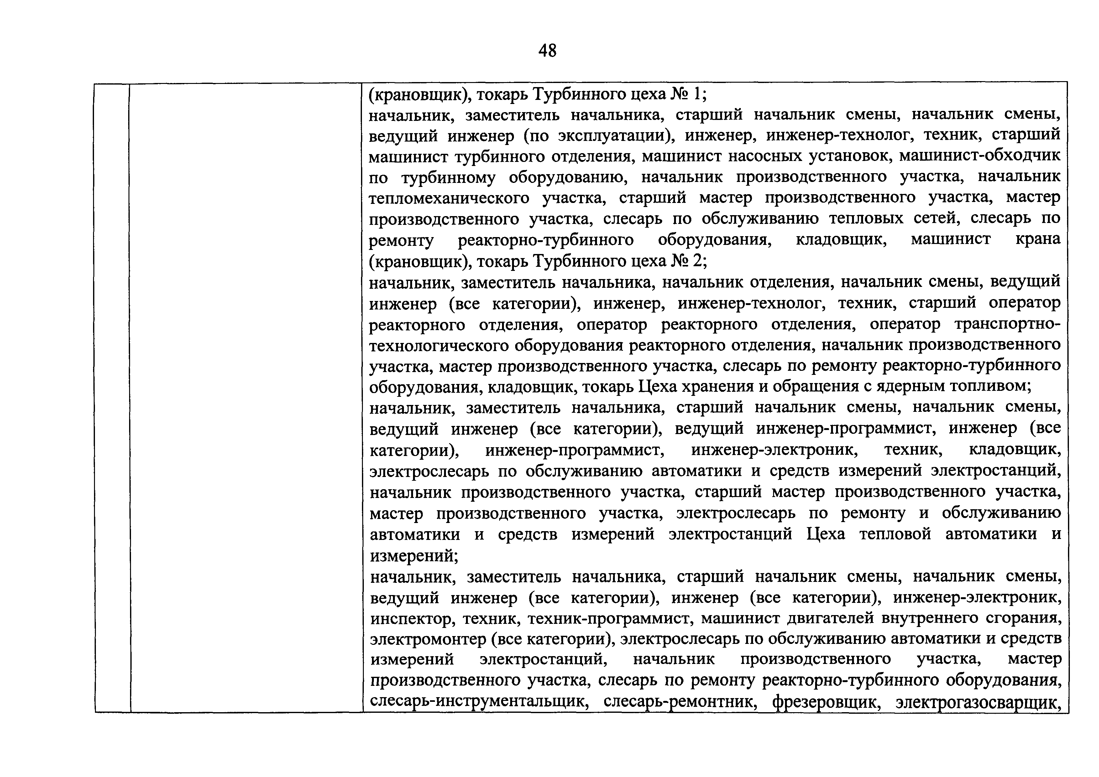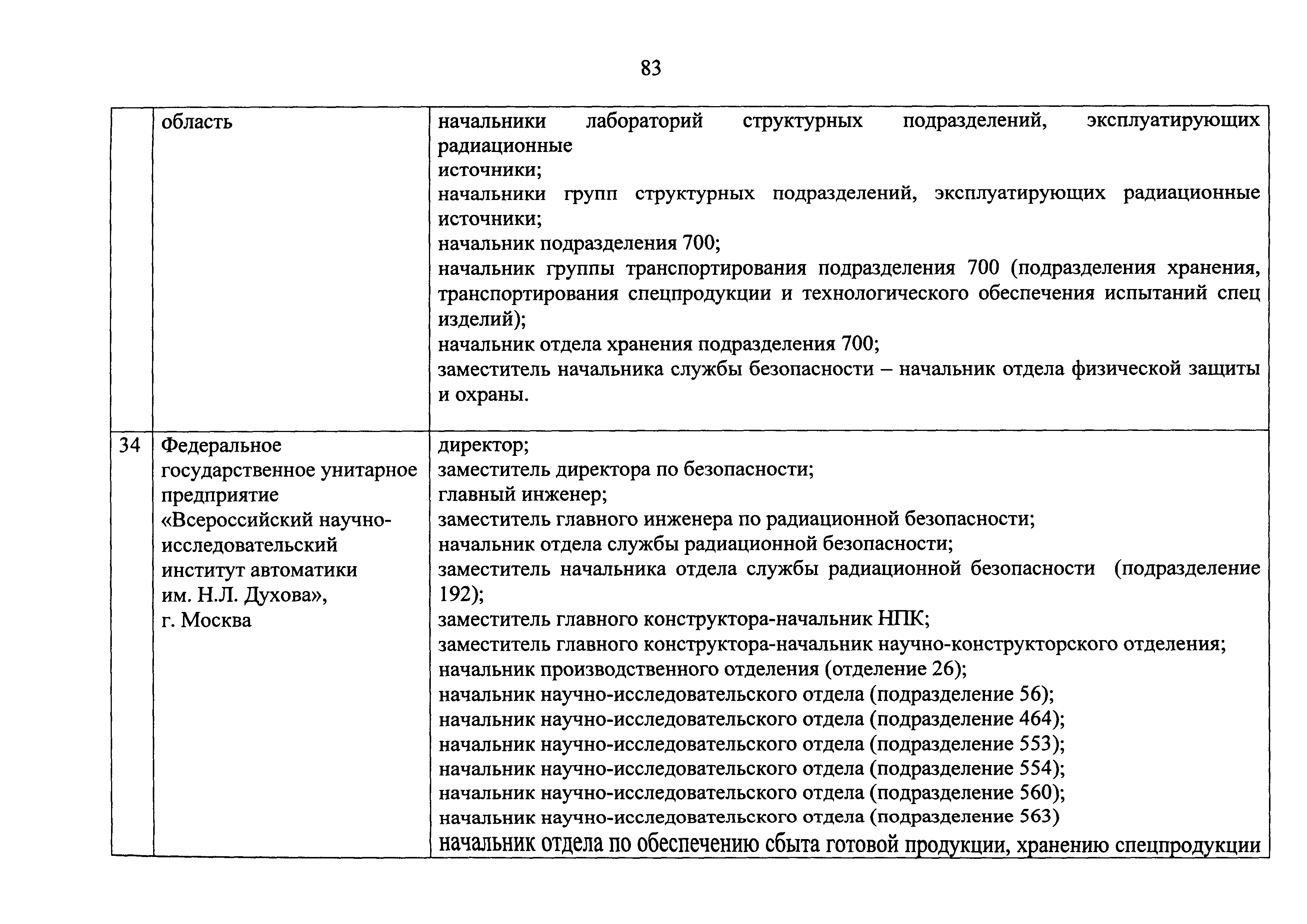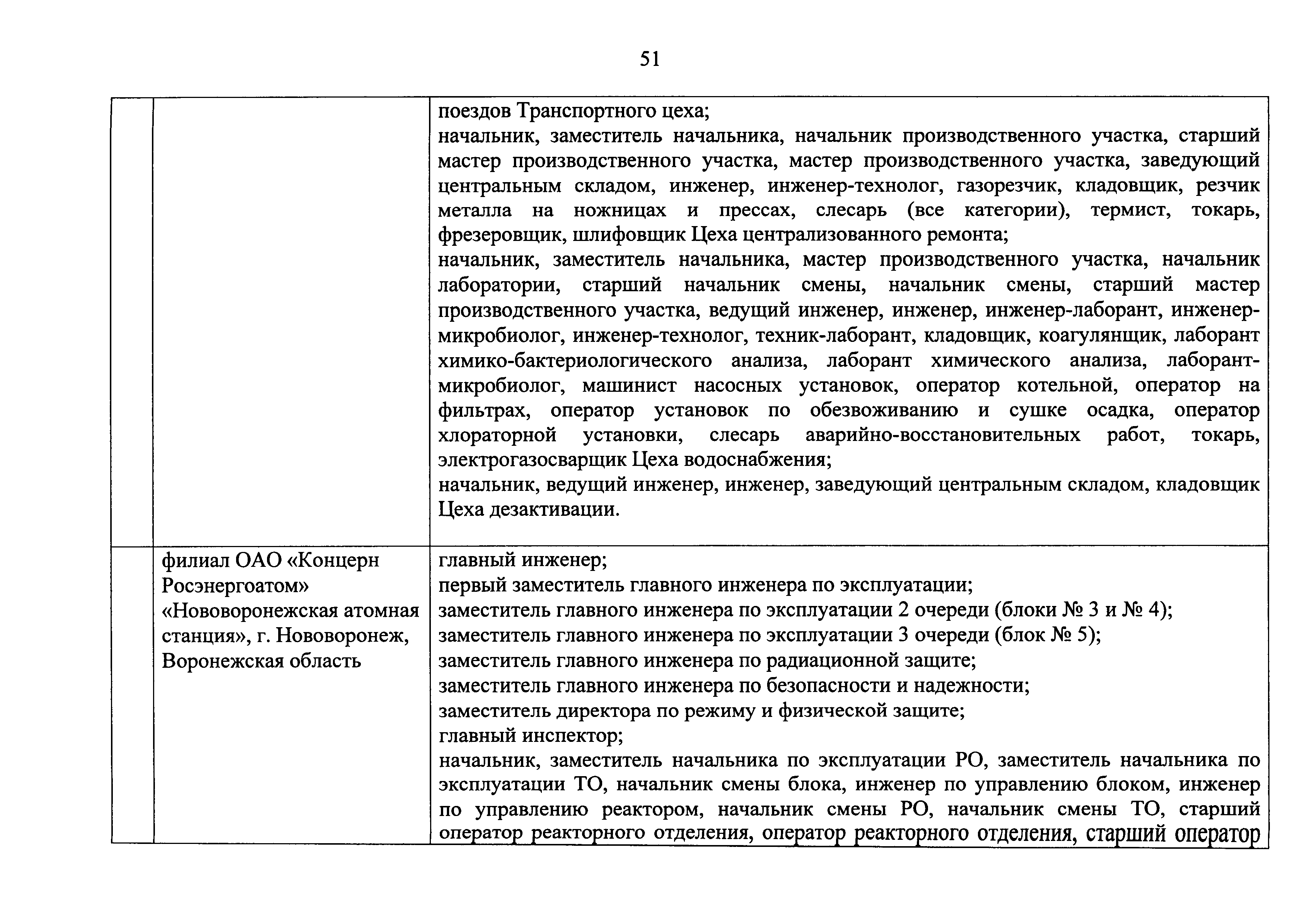 Перечень должностей (профессий) работников эксплуатирующих организаций, в том числе работников, непосредственно обеспечивающих безопасность особо радиационно опасных и ядерно опасных производств и объектов в области использования атомной энергии| Статус: | действует | | Название рус.: | Перечень должностей (профессий) работников эксплуатирующих организаций, в том числе работников, непосредственно обеспечивающих безопасность особо радиационно опасных и ядерно опасных производств и объектов в области использования атомной энергии | | Дата добавления в базу: | 01.02.2020 | | Дата актуализации: | 01.01.2021 | | Дата введения: | 04.04.2014 | | Утверждён: | 18.12.2013 Государственная корпорация по атомной энергии РОСАТОМ (1/21-НПА)