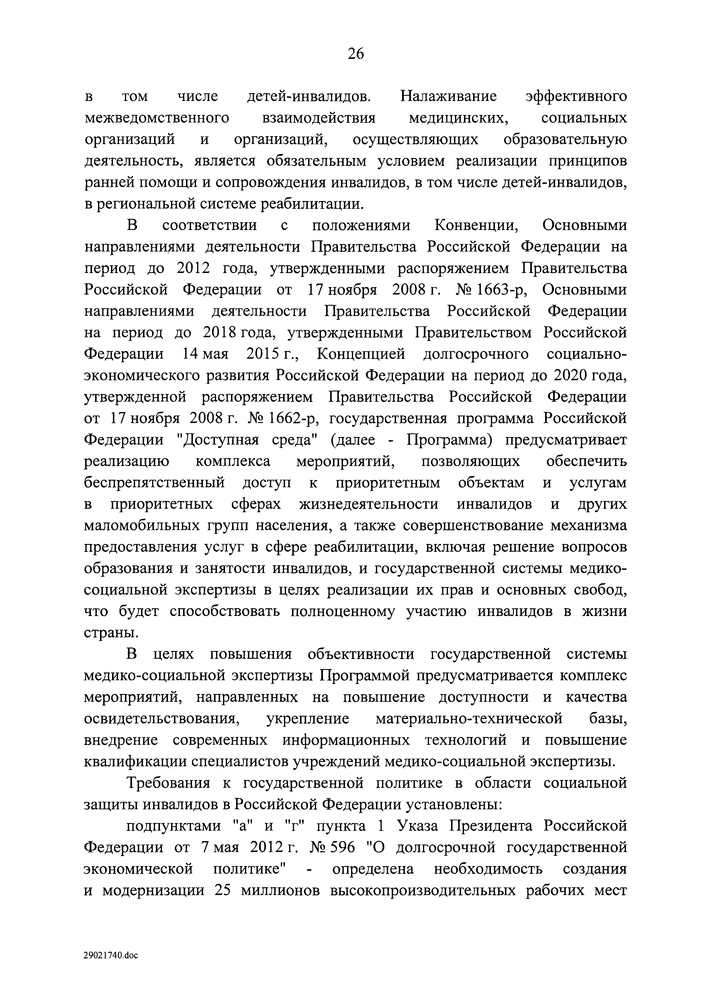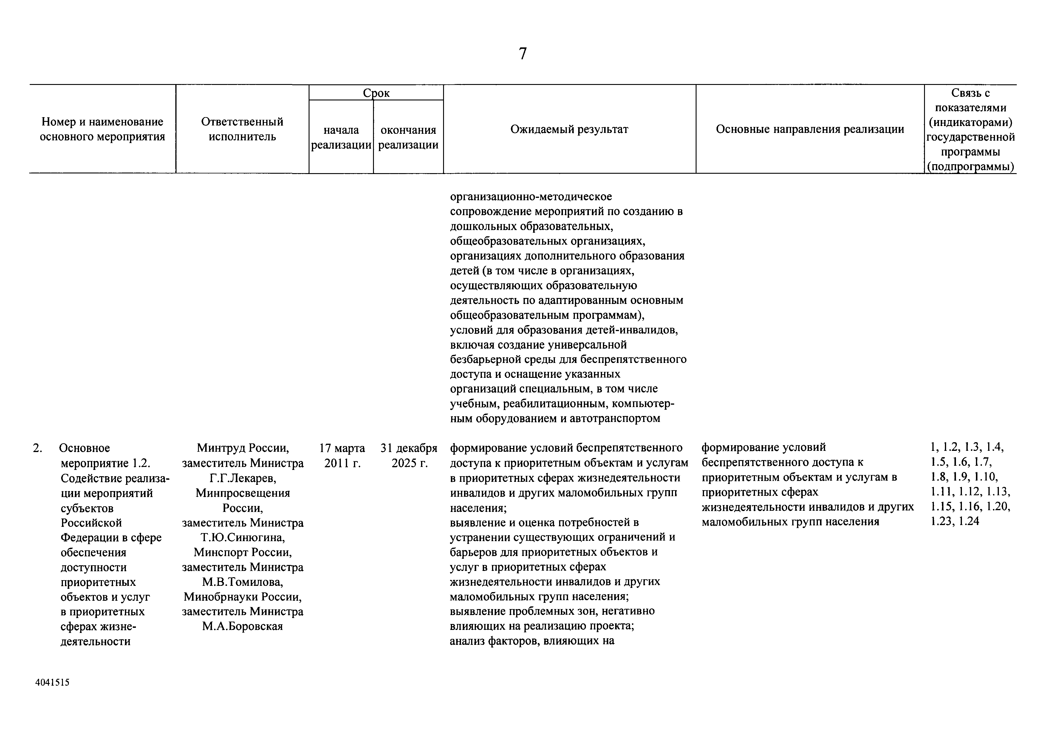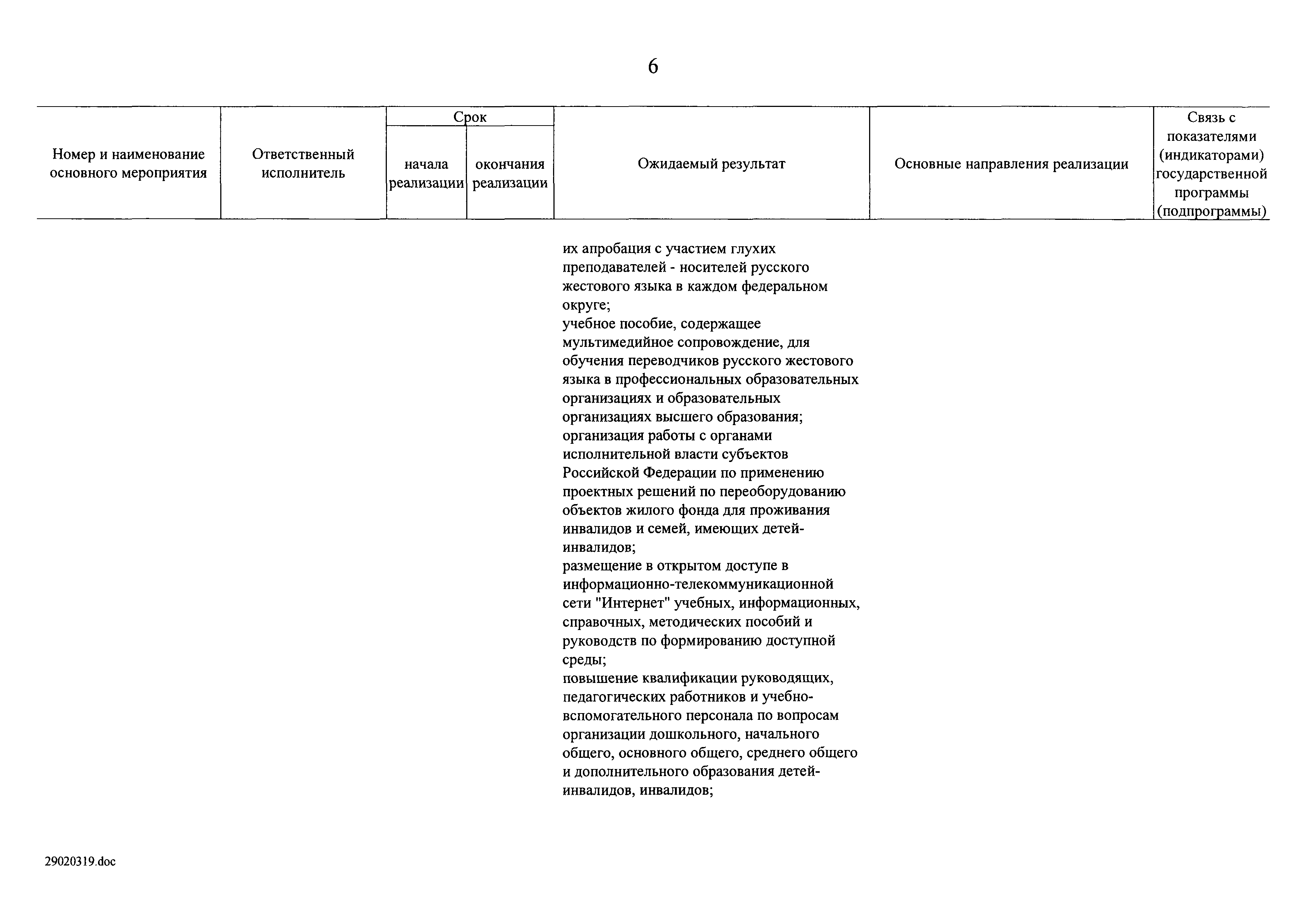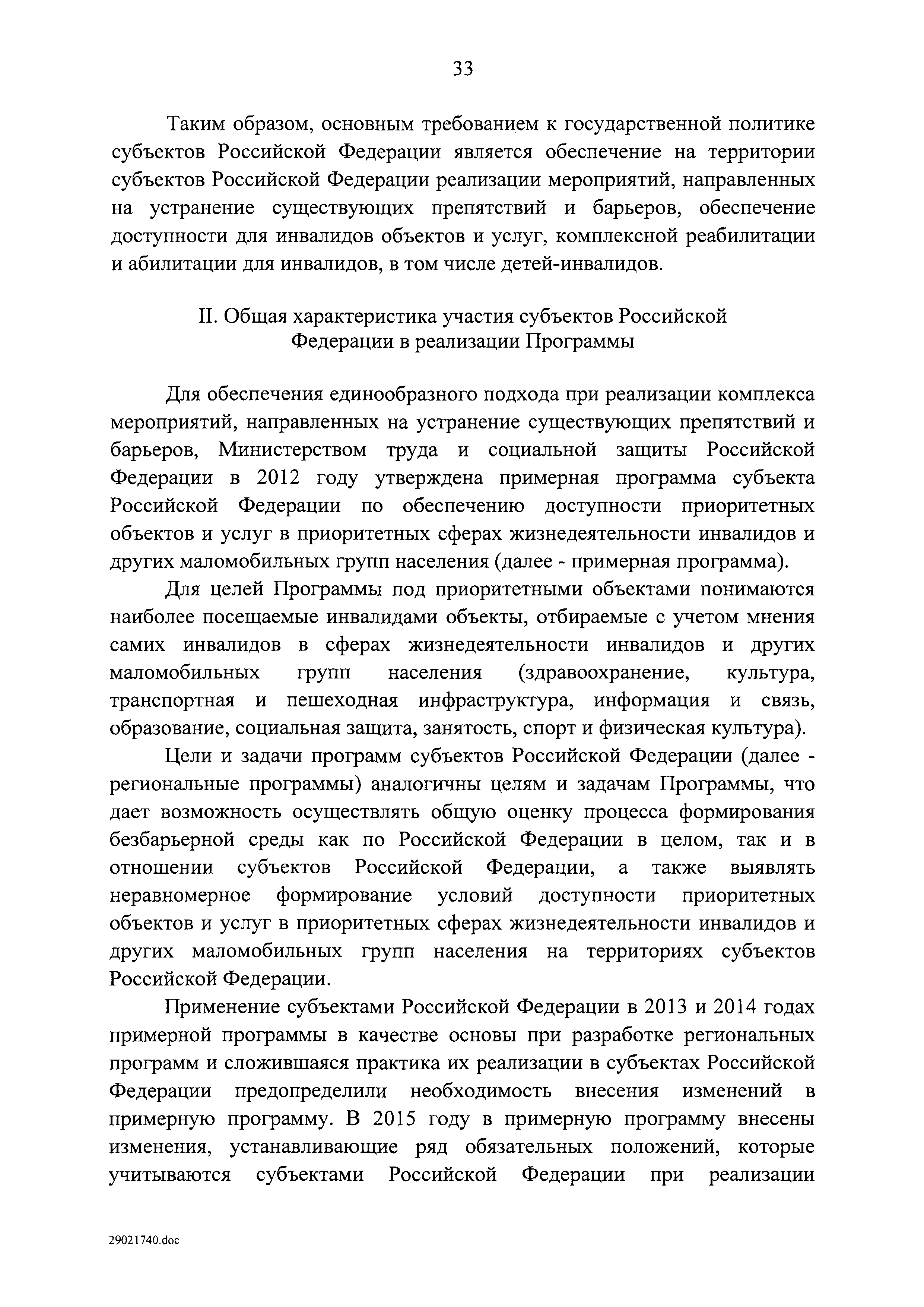 | Оглавление: | I. Приоритеты и цели государственной политики в области социальной защиты инвалидов в Российской Федерации, в том числе общие требования к государственной политике субъектов Российской Федерации II. Общая характеристика участия субъектов Российской Федерации в реализации Программы Приложение № 1. Сведения о целевых показателях и индикаторах государственной программы Российской Федерации "Доступная среда" Приложение № 2. Сведения о целевых показателях и индикаторах государственной программы Российской Федерации "Доступная среда" по субъектам Российской Федерации Приложение № 3. Перечень основных мероприятий государственной программы Российской Федерации "Доступная среда" Приложение № 4. Сведения об основных мерах правового регулирования в сфере реализации государственной программы Российской Федерации "Доступная среда" Приложение № 5. Ресурсное обеспечение реализации государственной программы Российской Федерации "Доступная среда" за счет средств федерального бюджета и бюджетов государственных внебюджетных фондов Российской Федерации Приложение № 6. План реализации на 2019 год и на плановый период 2020 и 2021 годов государственной программы Российской Федерации "Доступная среда" Приложение № 7. Правила предоставления субсидий из федерального бюджета бюджетам субъектов Российской Федерации на реализацию мероприятий в сфере обеспечения доступности приоритетных объектов и услуг в приоритетных сферах жизнедеятельности инвалидов и других маломобильных групп населения и их распределения Приложение № 8. Правила предоставления и распределения субсидий из федерального бюджета бюджетам субъектов Российской Федерации на реализацию мероприятий, включенных в государственные программы субъектов Российской Федерации, разработанные на основе типовой программы субъекта Российской Федерации по формированию системы комплексной реабилитации и абилитации инвалидов, в том числе детей-инвалидов Приложение № 9. Правила предоставления и распределения субсидий из федерального бюджета бюджетам субъектов Российской Федерации на создание в субъектах Российской Федерации базовых профессиональных образовательных организаций, обеспечивающих поддержку региональных систем инклюзивного профессионального образования инвалидов Приложение № 10. Сведения о целях, задачах и целевых показателях (индикаторах) государственной программы Российской Федерации "Доступная среда" на территории Дальневосточного федерального округа Приложение № 11. Сведения о целях, задачах и целевых показателях (индикаторах) государственной программы Российской Федерации "Доступная среда" на территории Байкальского региона Приложение № 12. Сведения о целях, задачах и целевых показателях (индикаторах) государственной программы Российской Федерации "Доступная среда" на территории Северо-Кавказского федерального округа Приложение № 13. Сведения о целях, задачах и целевых показателях (индикаторах) государственной программы Российской Федерации "Доступная среда" на территории Калининградской области Приложение № 14. Сведения о целях, задачах и целевых показателях (индикаторах) государственной программы Российской Федерации "Доступная среда" на территории Арктической зоны Российской Федерации Приложение № 15. Сведения о целях, зад