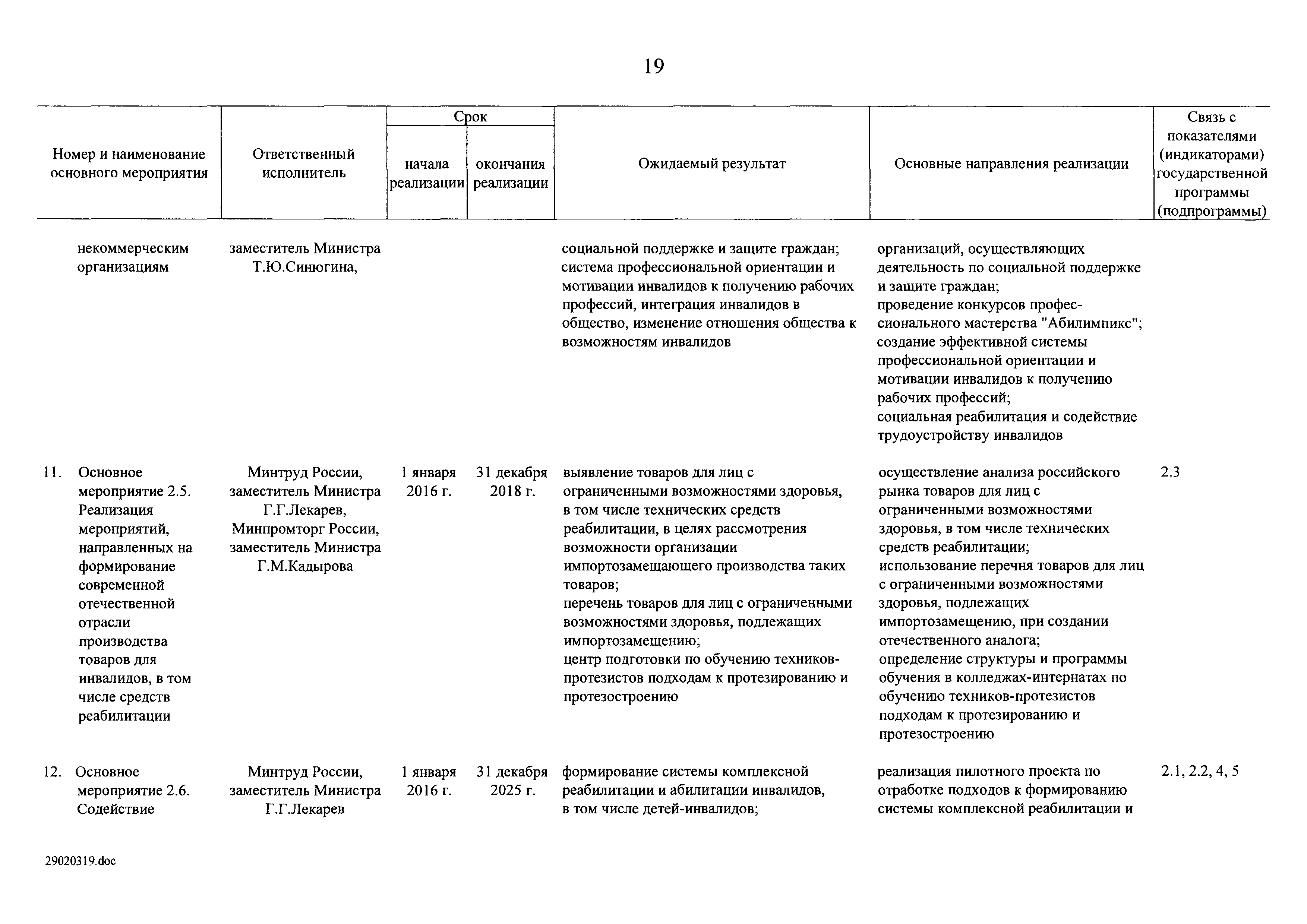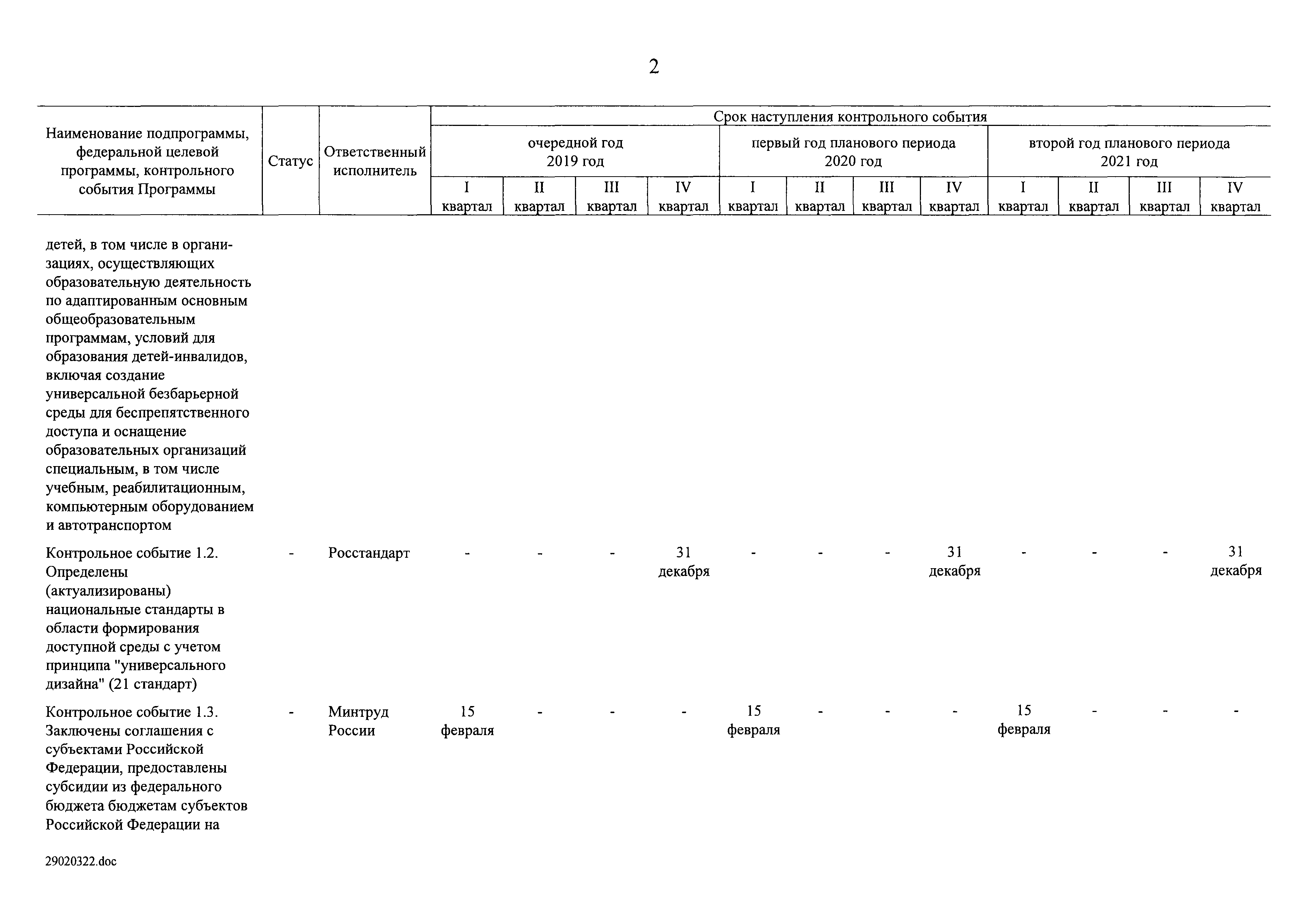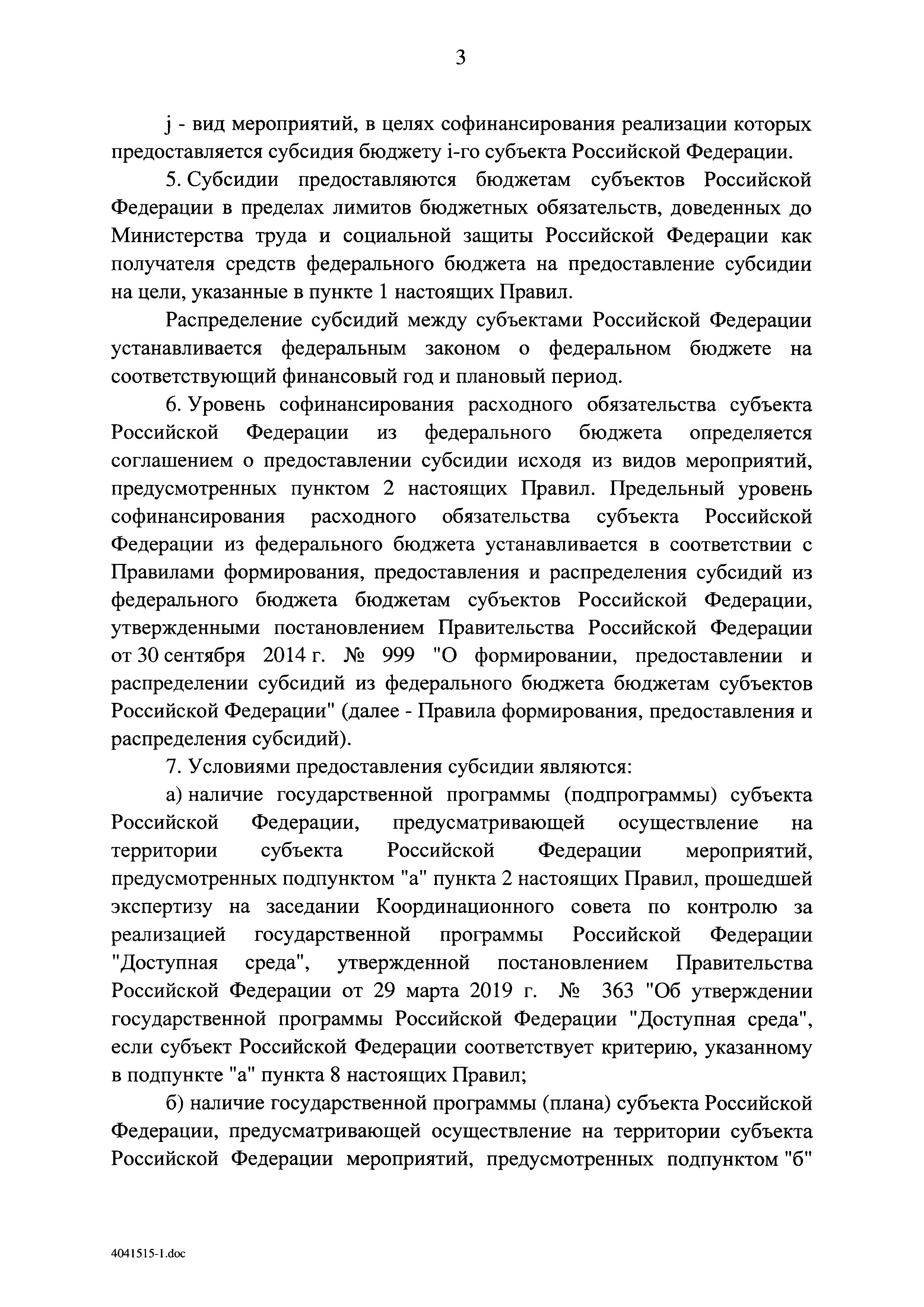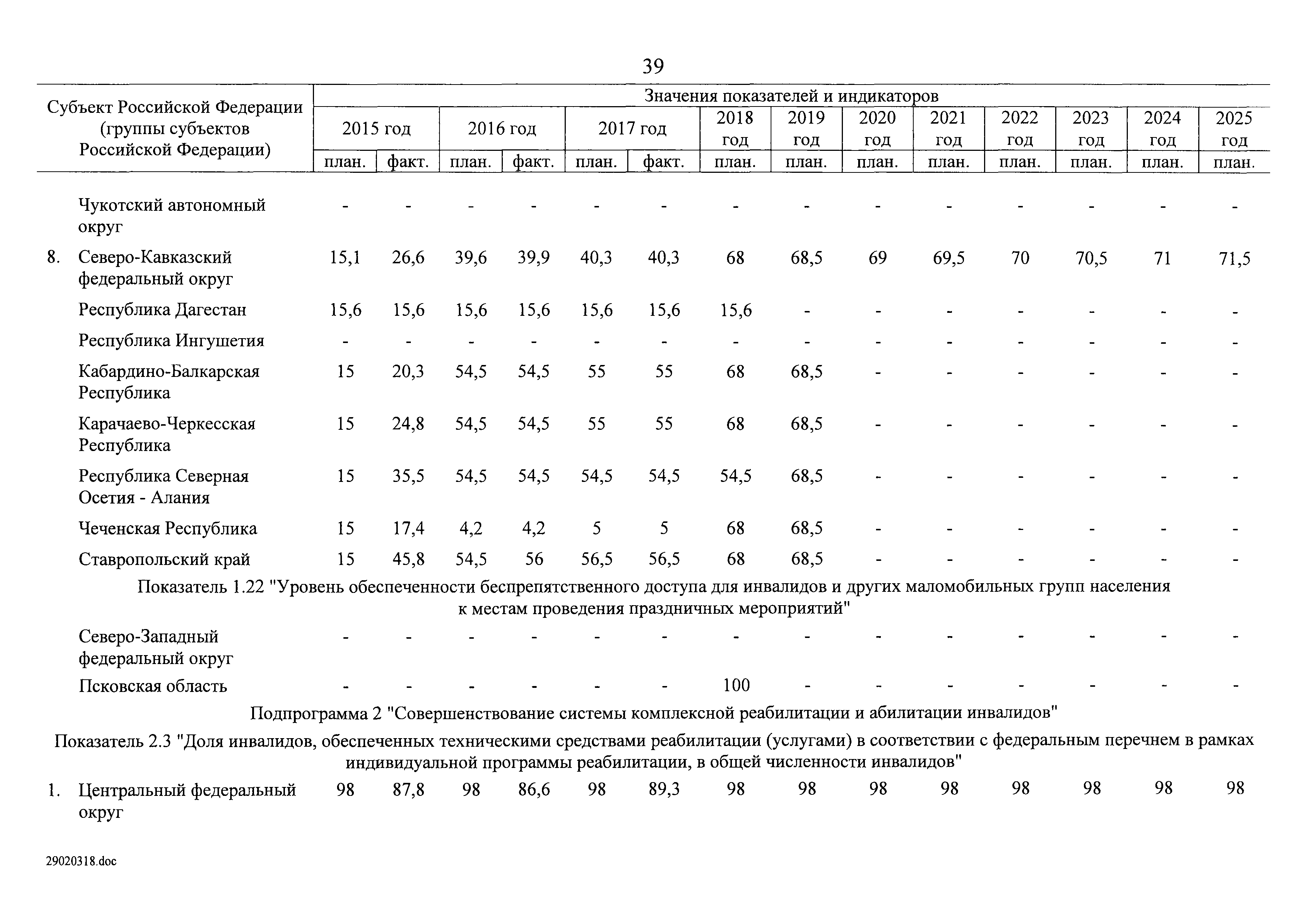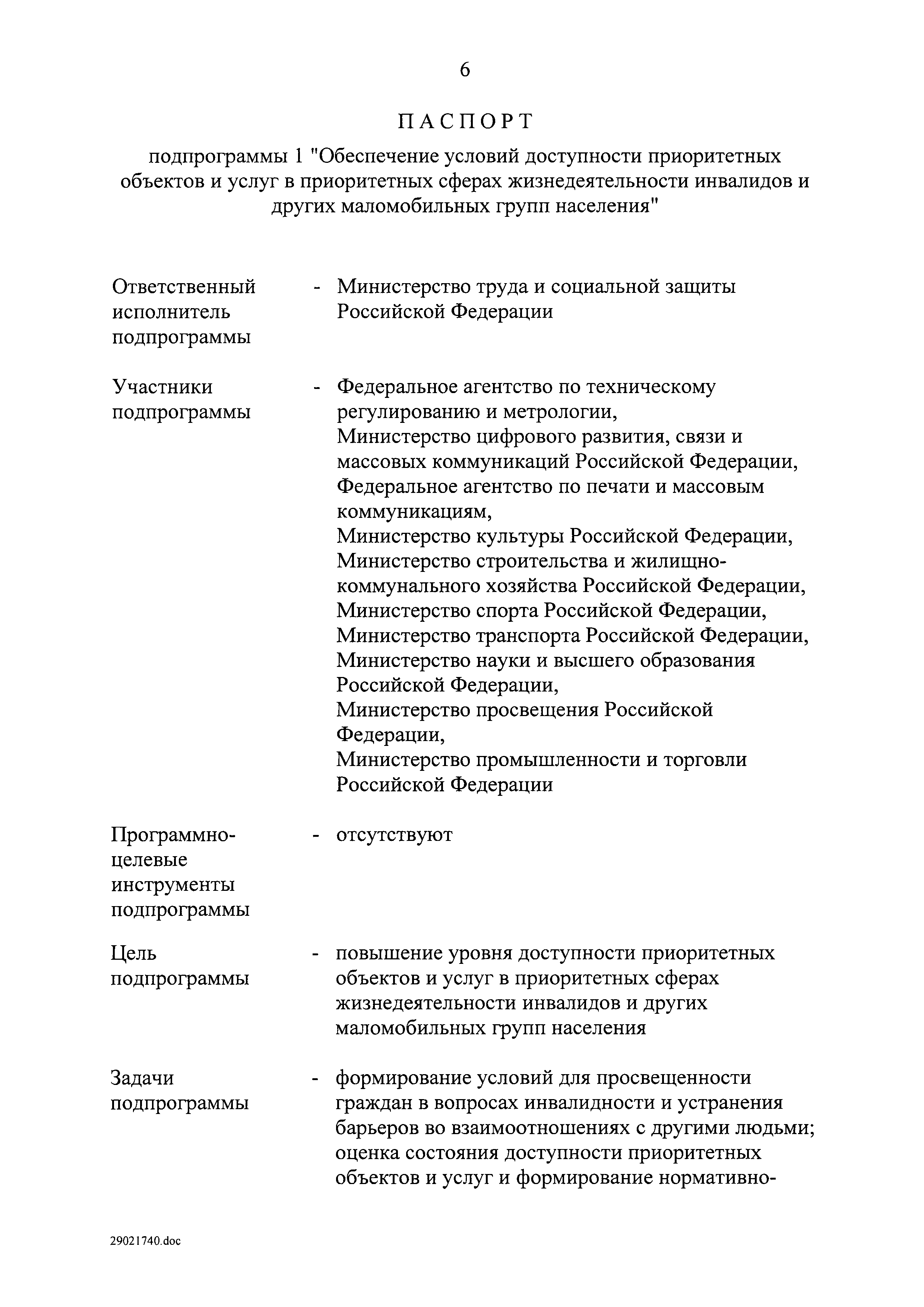 | Оглавление: | I. Приоритеты и цели государственной политики в области социальной защиты инвалидов в Российской Федерации, в том числе общие требования к государственной политике субъектов Российской Федерации II. Общая характеристика участия субъектов Российской Федерации в реализации Программы Приложение № 1. Сведения о целевых показателях и индикаторах государственной программы Российской Федерации "Доступная среда" Приложение № 2. Сведения о целевых показателях и индикаторах государственной программы Российской Федерации "Доступная среда" по субъектам Российской Федерации Приложение № 3. Перечень основных мероприятий государственной программы Российской Федерации "Доступная среда" Приложение № 4. Сведения об основных мерах правового регулирования в сфере реализации государственной программы Российской Федерации "Доступная среда" Приложение № 5. Ресурсное обеспечение реализации государственной программы Российской Федерации "Доступная среда" за счет средств федерального бюджета и бюджетов государственных внебюджетных фондов Российской Федерации Приложение № 6. План реализации на 2019 год и на плановый период 2020 и 2021 годов государственной программы Российской Федерации "Доступная среда" Приложение № 7. Правила предоставления субсидий из федерального бюджета бюджетам субъектов Российской Федерации на реализацию мероприятий в сфере обеспечения доступности приоритетных объектов и услуг в приоритетных сферах жизнедеятельности инвалидов и других маломобильных групп населения и их распределения Приложение № 8. Правила предоставления и распределения субсидий из федерального бюджета бюджетам субъектов Российской Федерации на реализацию мероприятий, включенных в государственные программы субъектов Российской Федерации, разработанные на основе типовой программы субъекта Российской Федерации по формированию системы комплексной реабилитации и абилитации инвалидов, в том числе детей-инвалидов Приложение № 9. Правила предоставления и распределения субсидий из федерального бюджета бюджетам субъектов Российской Федерации на создание в субъектах Российской Федерации базовых профессиональных образовательных организаций, обеспечивающих поддержку региональных систем инклюзивного профессионального образования инвалидов Приложение № 10. Сведения о целях, задачах и целевых показателях (индикаторах) государственной программы Российской Федерации "Доступная среда" на территории Дальневосточного федерального округа Приложение № 11. Сведения о целях, задачах и целевых показателях (индикаторах) государственной программы Российской Федерации "Доступная среда" на территории Байкальского региона Приложение № 12. Сведения о целях, задачах и целевых показателях (индикаторах) государственной программы Российской Федерации "Доступная среда" на территории Северо-Кавказского федерального округа Приложение № 13. Сведения о целях, задачах и целевых показателях (индикаторах) государственной программы Российской Федерации "Доступная среда" на территории Калининградской области Приложение № 14. Сведения о целях, задачах и целевых показателях (индикаторах) государственной программы Российской Федерации "Доступная среда" на территории Арктической зоны Российской Федерации Приложение № 15. Сведения о целях, зад