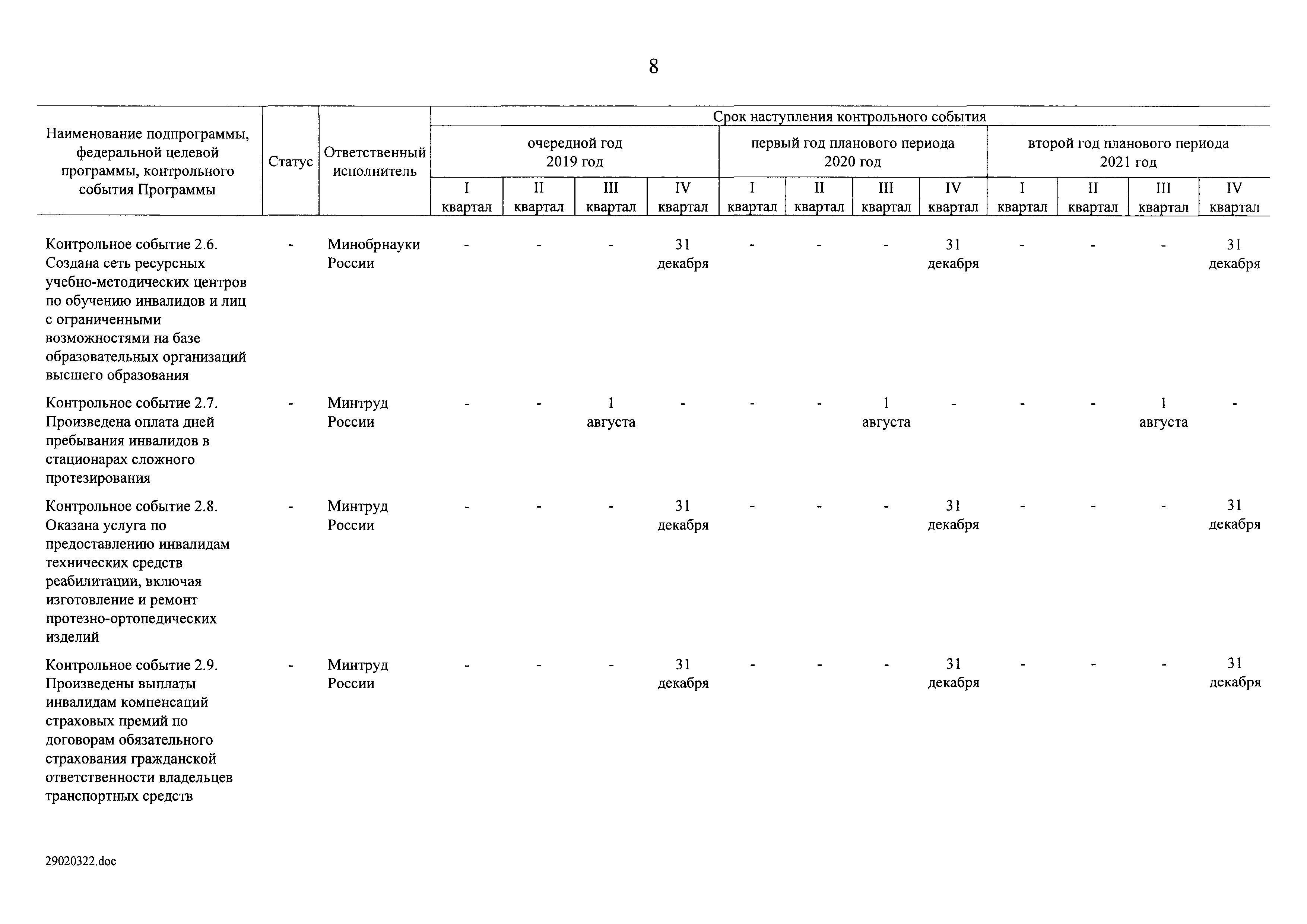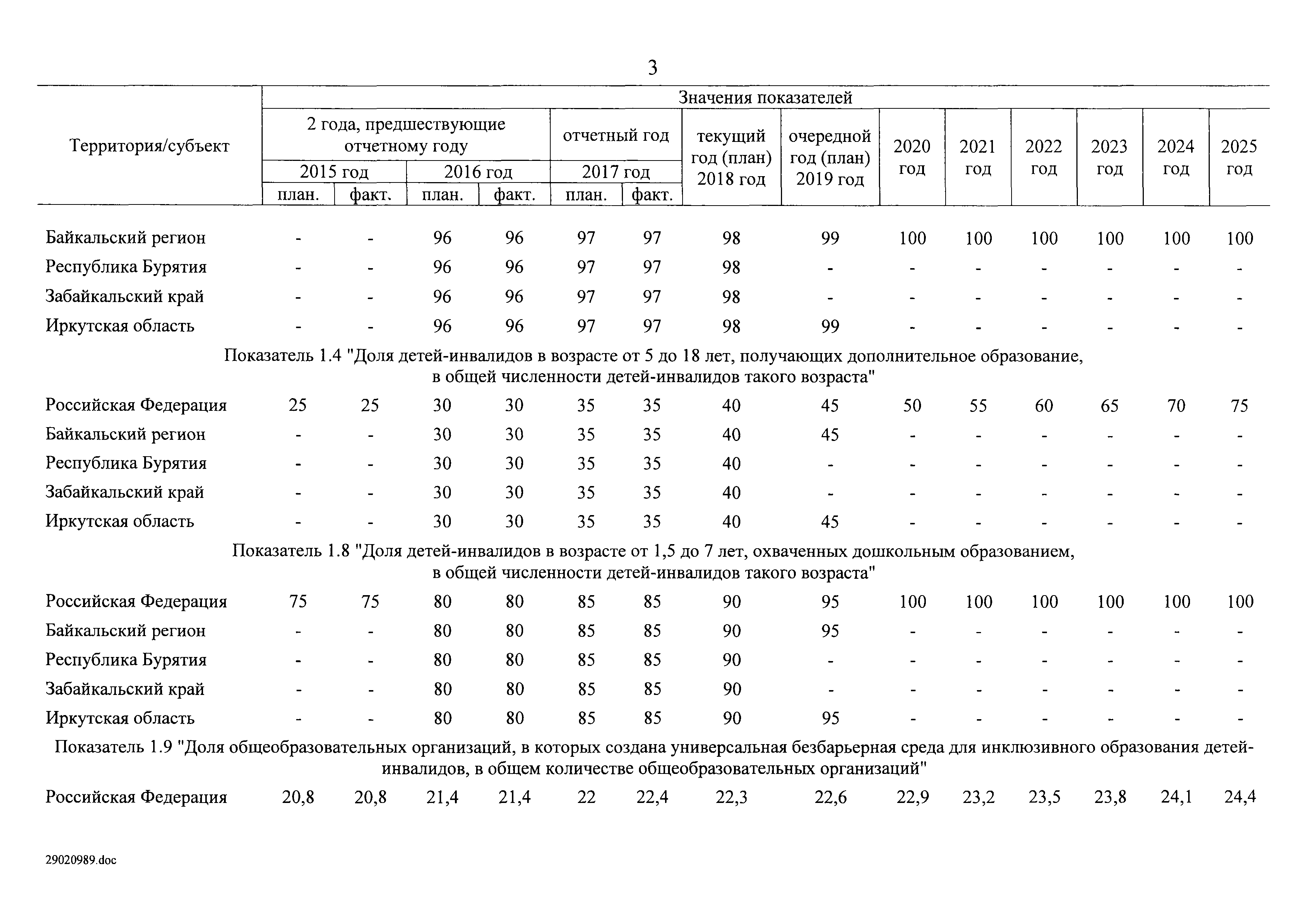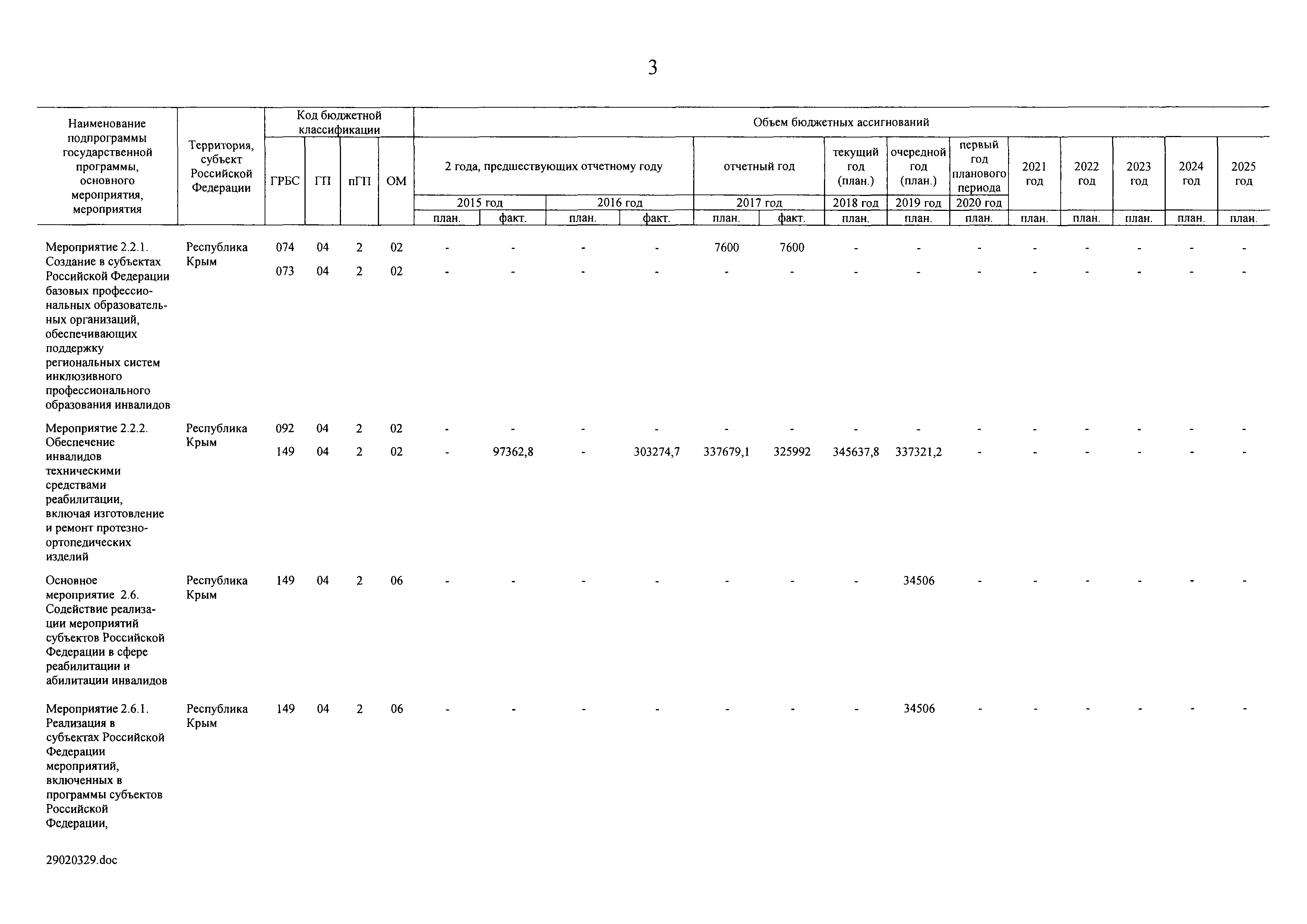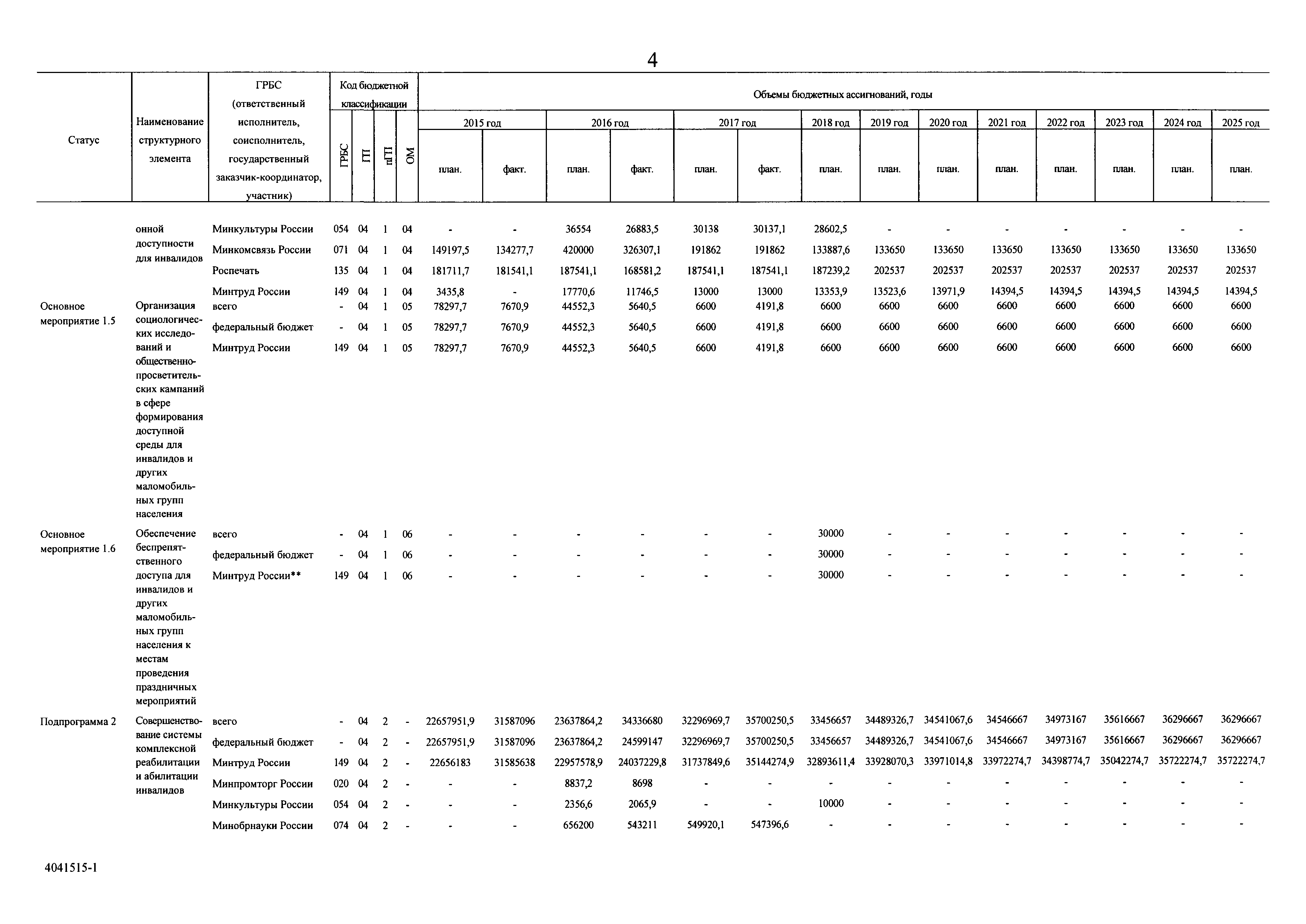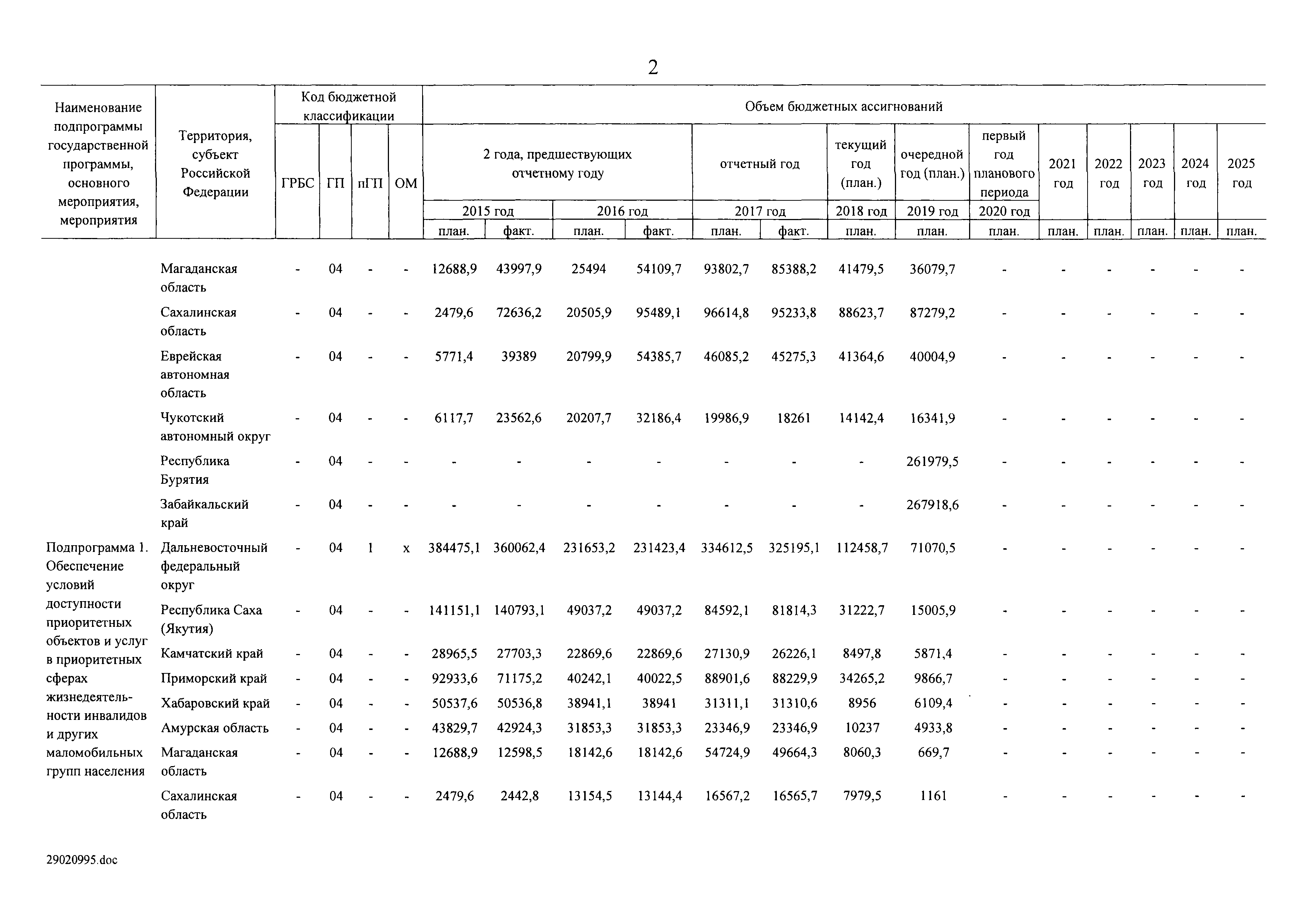 | Оглавление: | I. Приоритеты и цели государственной политики в области социальной защиты инвалидов в Российской Федерации, в том числе общие требования к государственной политике субъектов Российской Федерации II. Общая характеристика участия субъектов Российской Федерации в реализации Программы Приложение № 1. Сведения о целевых показателях и индикаторах государственной программы Российской Федерации "Доступная среда" Приложение № 2. Сведения о целевых показателях и индикаторах государственной программы Российской Федерации "Доступная среда" по субъектам Российской Федерации Приложение № 3. Перечень основных мероприятий государственной программы Российской Федерации "Доступная среда" Приложение № 4. Сведения об основных мерах правового регулирования в сфере реализации государственной программы Российской Федерации "Доступная среда" Приложение № 5. Ресурсное обеспечение реализации государственной программы Российской Федерации "Доступная среда" за счет средств федерального бюджета и бюджетов государственных внебюджетных фондов Российской Федерации Приложение № 6. План реализации на 2019 год и на плановый период 2020 и 2021 годов государственной программы Российской Федерации "Доступная среда" Приложение № 7. Правила предоставления субсидий из федерального бюджета бюджетам субъектов Российской Федерации на реализацию мероприятий в сфере обеспечения доступности приоритетных объектов и услуг в приоритетных сферах жизнедеятельности инвалидов и других маломобильных групп населения и их распределения Приложение № 8. Правила предоставления и распределения субсидий из федерального бюджета бюджетам субъектов Российской Федерации на реализацию мероприятий, включенных в государственные программы субъектов Российской Федерации, разработанные на основе типовой программы субъекта Российской Федерации по формированию системы комплексной реабилитации и абилитации инвалидов, в том числе детей-инвалидов Приложение № 9. Правила предоставления и распределения субсидий из федерального бюджета бюджетам субъектов Российской Федерации на создание в субъектах Российской Федерации базовых профессиональных образовательных организаций, обеспечивающих поддержку региональных систем инклюзивного профессионального образования инвалидов Приложение № 10. Сведения о целях, задачах и целевых показателях (индикаторах) государственной программы Российской Федерации "Доступная среда" на территории Дальневосточного федерального округа Приложение № 11. Сведения о целях, задачах и целевых показателях (индикаторах) государственной программы Российской Федерации "Доступная среда" на территории Байкальского региона Приложение № 12. Сведения о целях, задачах и целевых показателях (индикаторах) государственной программы Российской Федерации "Доступная среда" на территории Северо-Кавказского федерального округа Приложение № 13. Сведения о целях, задачах и целевых показателях (индикаторах) государственной программы Российской Федерации "Доступная среда" на территории Калининградской области Приложение № 14. Сведения о целях, задачах и целевых показателях (индикаторах) государственной программы Российской Федерации "Доступная среда" на территории Арктической зоны Российской Федерации Приложение № 15. Сведения о целях, зад