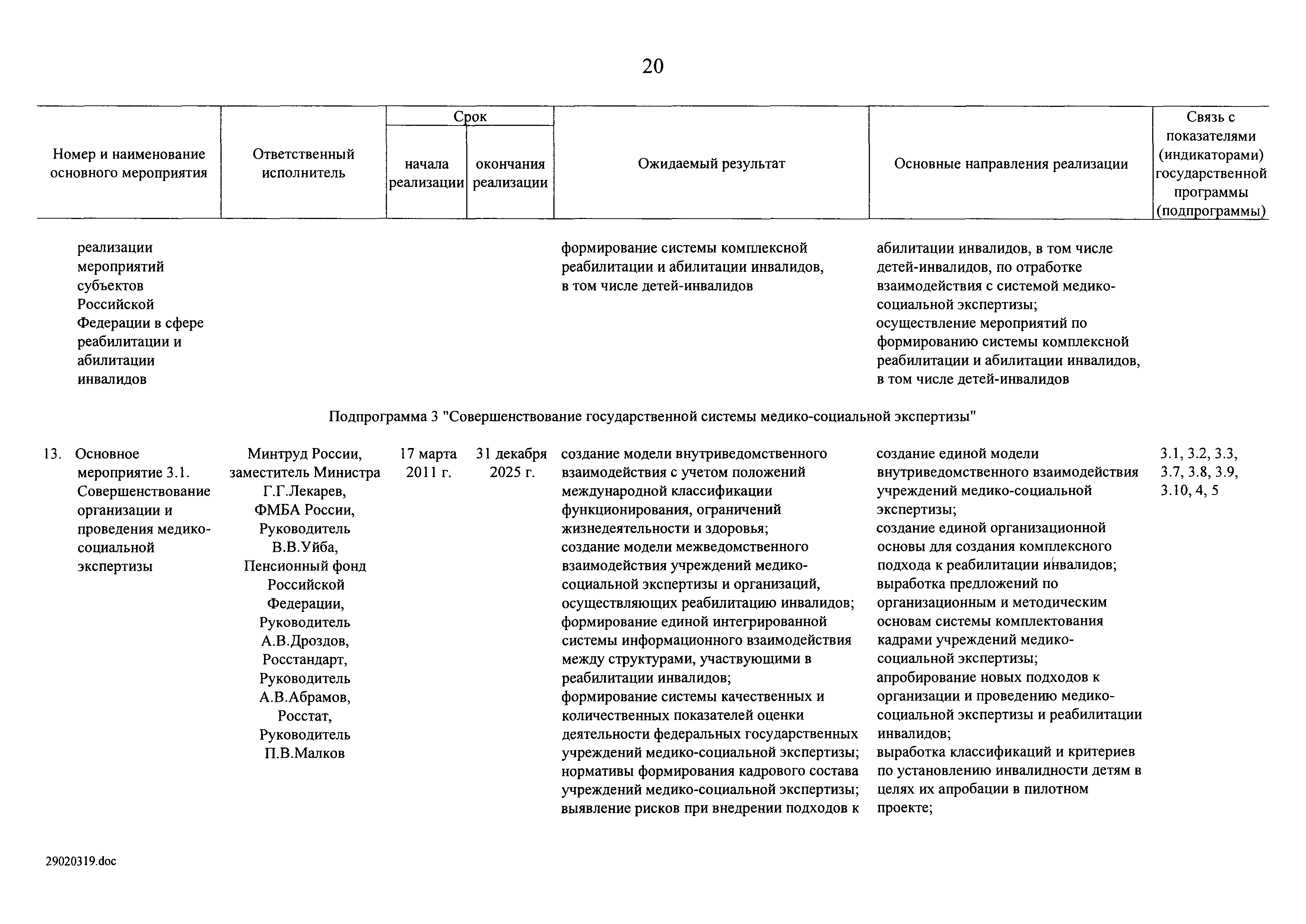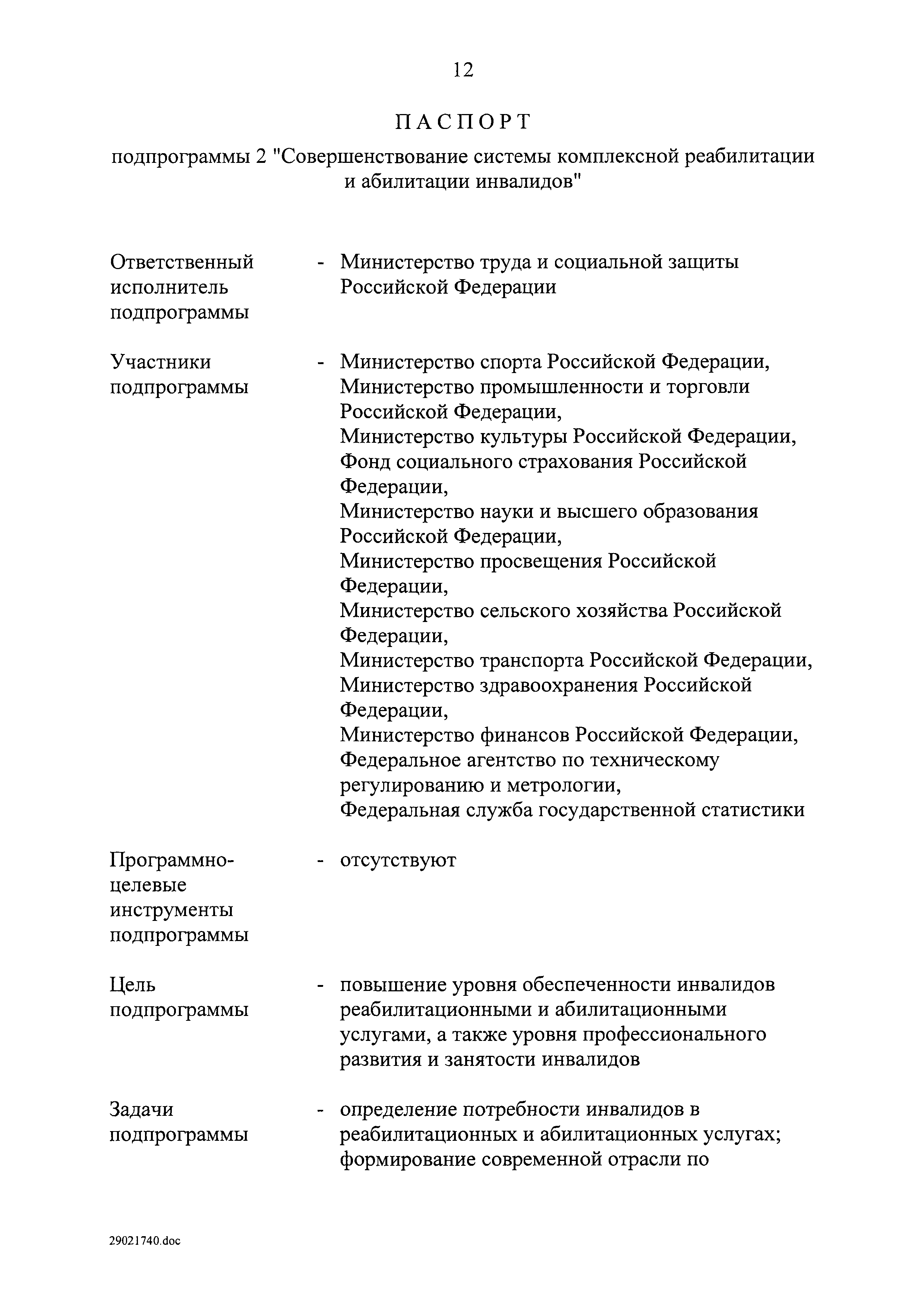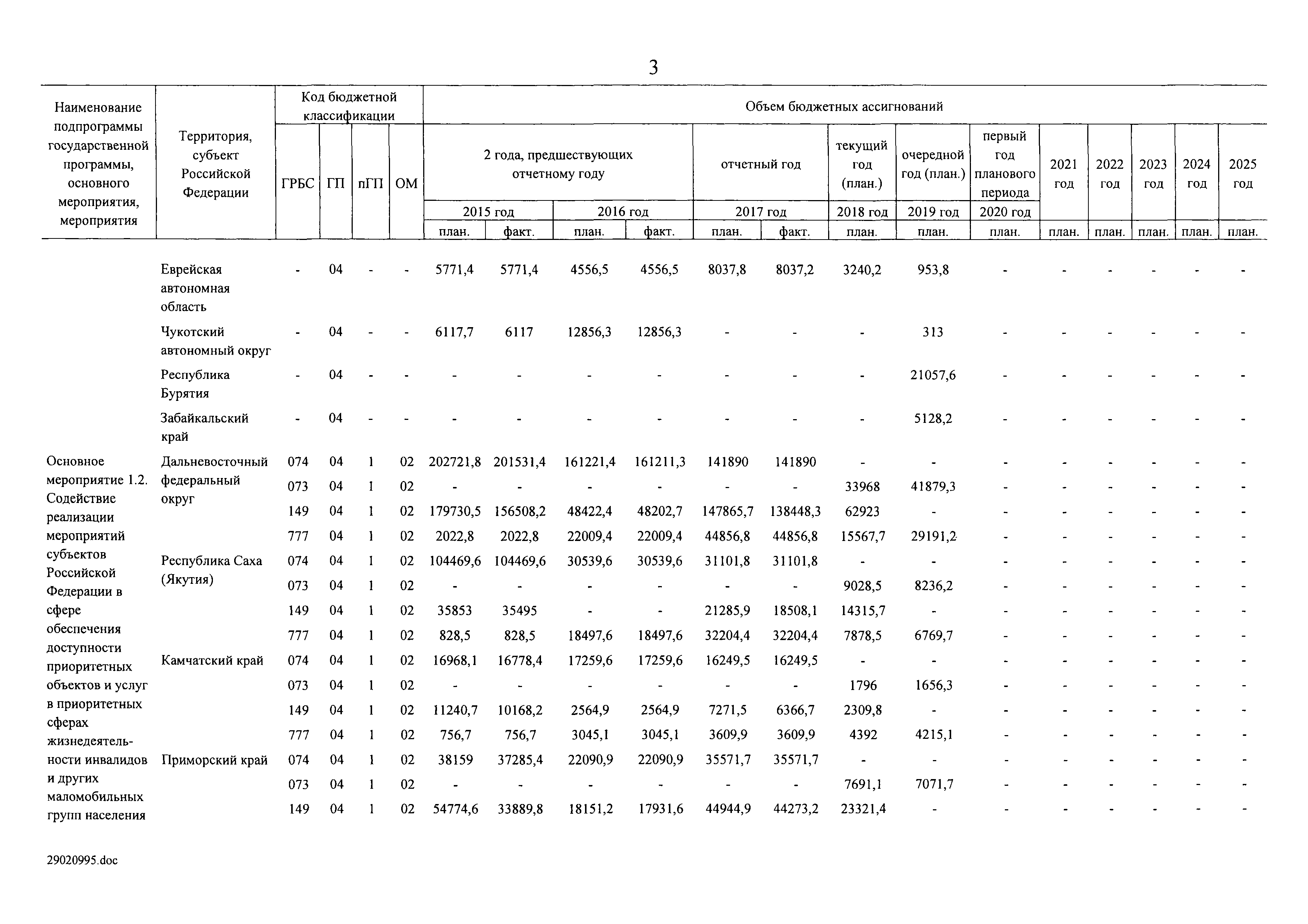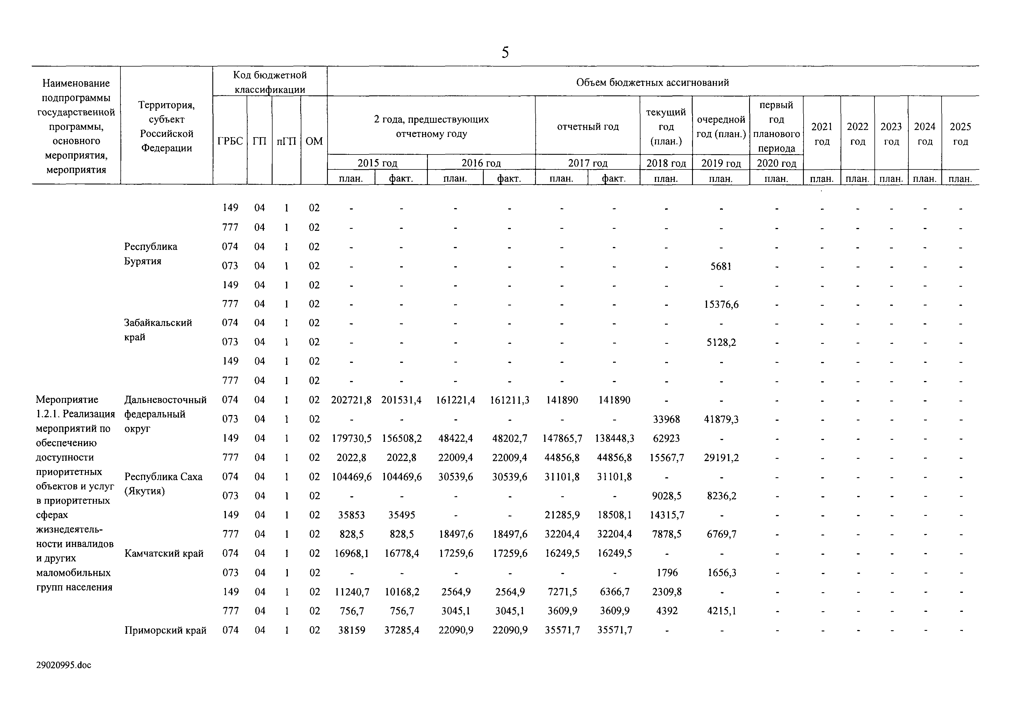 | Оглавление: | I. Приоритеты и цели государственной политики в области социальной защиты инвалидов в Российской Федерации, в том числе общие требования к государственной политике субъектов Российской Федерации II. Общая характеристика участия субъектов Российской Федерации в реализации Программы Приложение № 1. Сведения о целевых показателях и индикаторах государственной программы Российской Федерации "Доступная среда" Приложение № 2. Сведения о целевых показателях и индикаторах государственной программы Российской Федерации "Доступная среда" по субъектам Российской Федерации Приложение № 3. Перечень основных мероприятий государственной программы Российской Федерации "Доступная среда" Приложение № 4. Сведения об основных мерах правового регулирования в сфере реализации государственной программы Российской Федерации "Доступная среда" Приложение № 5. Ресурсное обеспечение реализации государственной программы Российской Федерации "Доступная среда" за счет средств федерального бюджета и бюджетов государственных внебюджетных фондов Российской Федерации Приложение № 6. План реализации на 2019 год и на плановый период 2020 и 2021 годов государственной программы Российской Федерации "Доступная среда" Приложение № 7. Правила предоставления субсидий из федерального бюджета бюджетам субъектов Российской Федерации на реализацию мероприятий в сфере обеспечения доступности приоритетных объектов и услуг в приоритетных сферах жизнедеятельности инвалидов и других маломобильных групп населения и их распределения Приложение № 8. Правила предоставления и распределения субсидий из федерального бюджета бюджетам субъектов Российской Федерации на реализацию мероприятий, включенных в государственные программы субъектов Российской Федерации, разработанные на основе типовой программы субъекта Российской Федерации по формированию системы комплексной реабилитации и абилитации инвалидов, в том числе детей-инвалидов Приложение № 9. Правила предоставления и распределения субсидий из федерального бюджета бюджетам субъектов Российской Федерации на создание в субъектах Российской Федерации базовых профессиональных образовательных организаций, обеспечивающих поддержку региональных систем инклюзивного профессионального образования инвалидов Приложение № 10. Сведения о целях, задачах и целевых показателях (индикаторах) государственной программы Российской Федерации "Доступная среда" на территории Дальневосточного федерального округа Приложение № 11. Сведения о целях, задачах и целевых показателях (индикаторах) государственной программы Российской Федерации "Доступная среда" на территории Байкальского региона Приложение № 12. Сведения о целях, задачах и целевых показателях (индикаторах) государственной программы Российской Федерации "Доступная среда" на территории Северо-Кавказского федерального округа Приложение № 13. Сведения о целях, задачах и целевых показателях (индикаторах) государственной программы Российской Федерации "Доступная среда" на территории Калининградской области Приложение № 14. Сведения о целях, задачах и целевых показателях (индикаторах) государственной программы Российской Федерации "Доступная среда" на территории Арктической зоны Российской Федерации Приложение № 15. Сведения о целях, зад