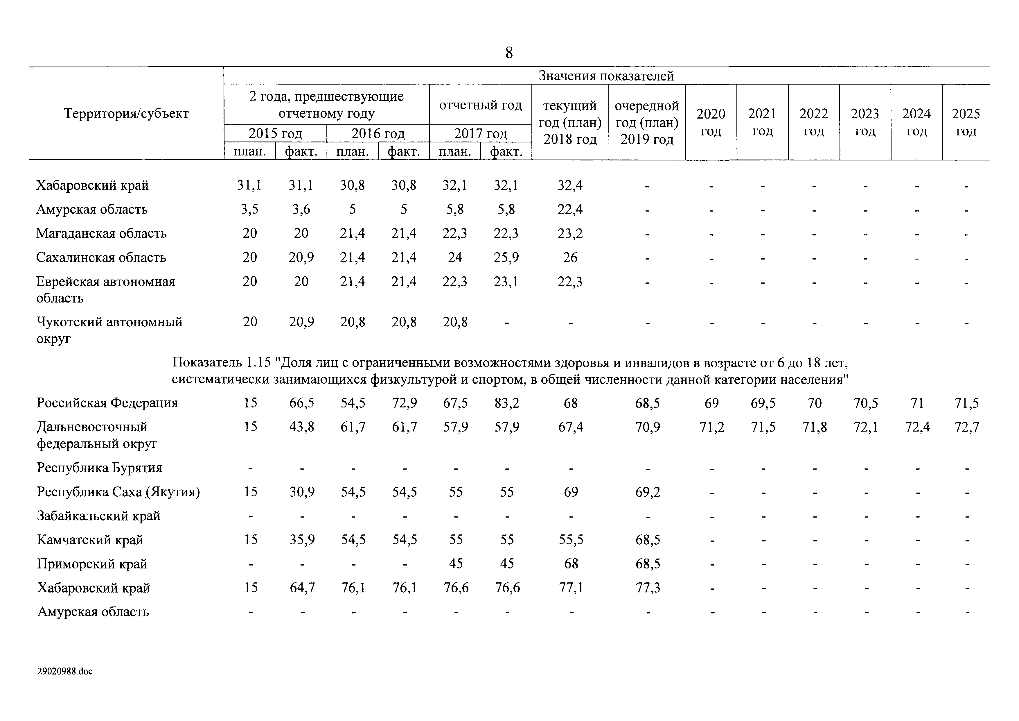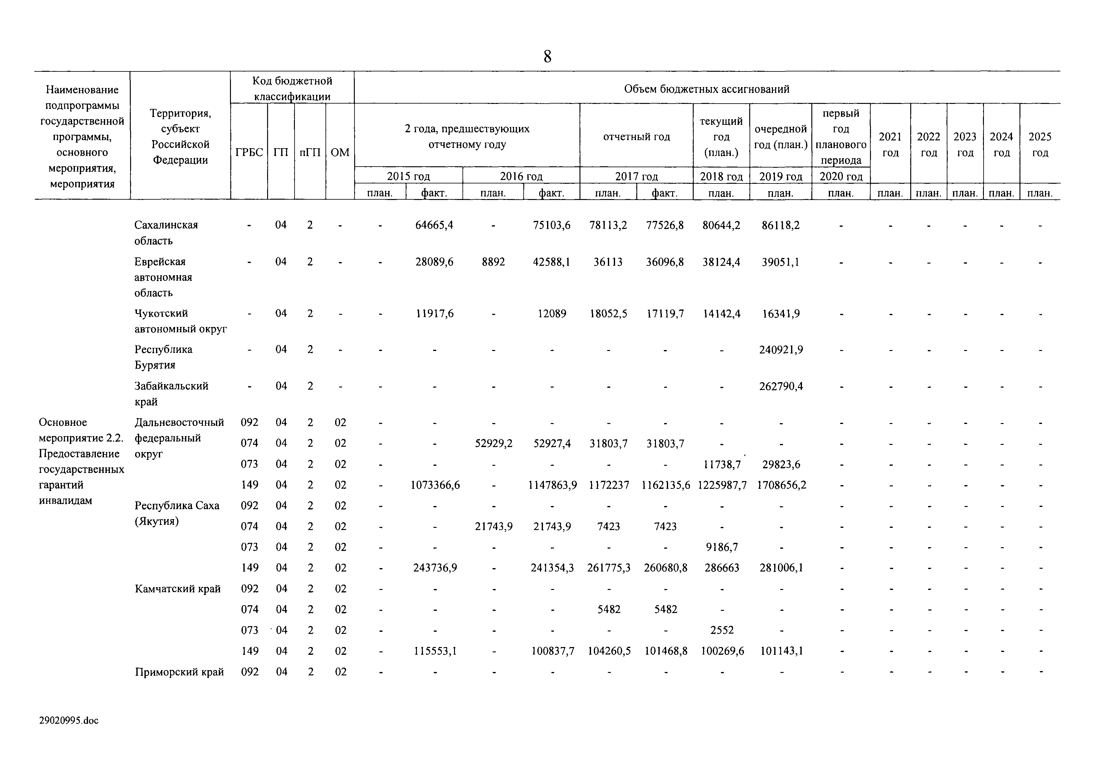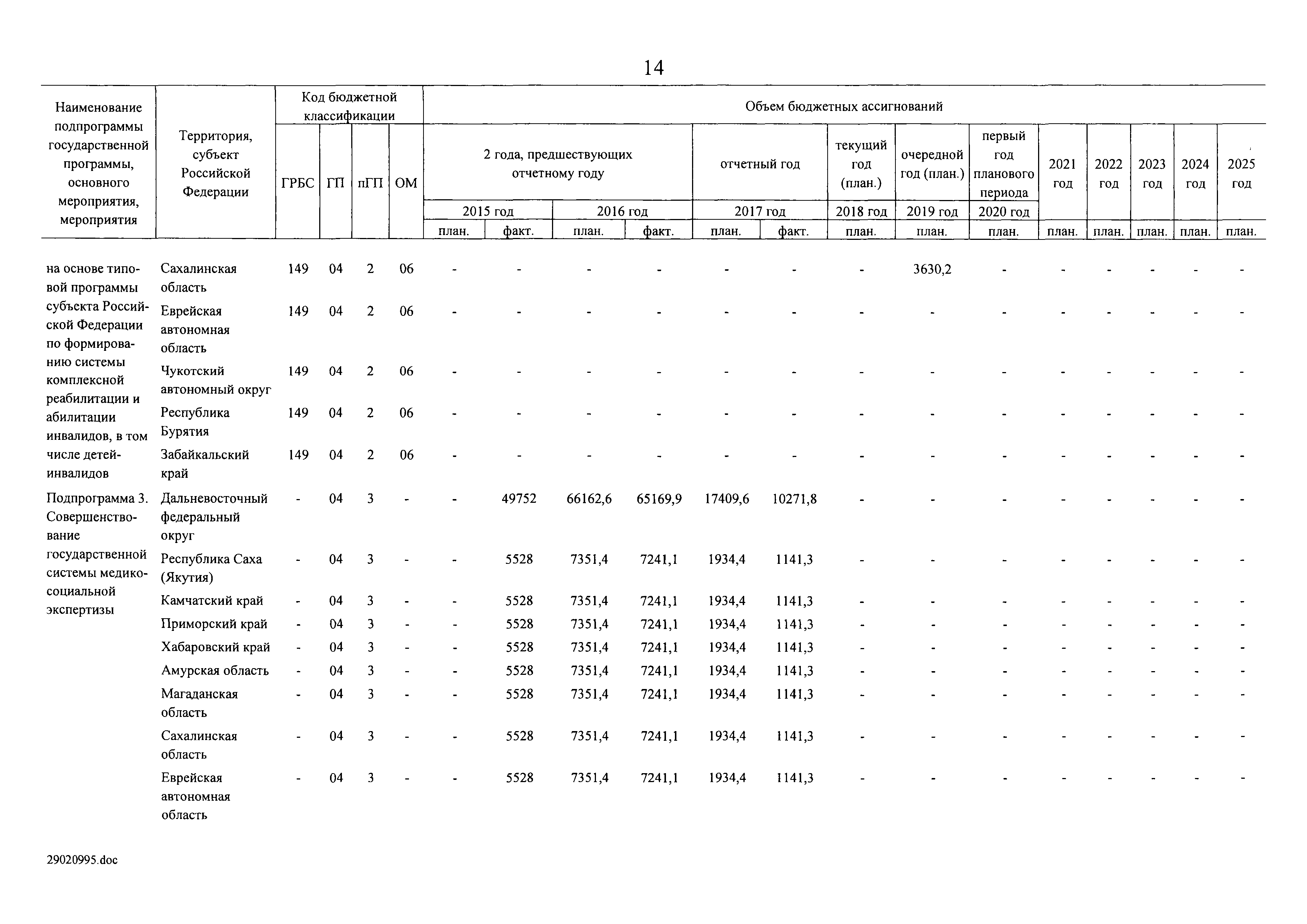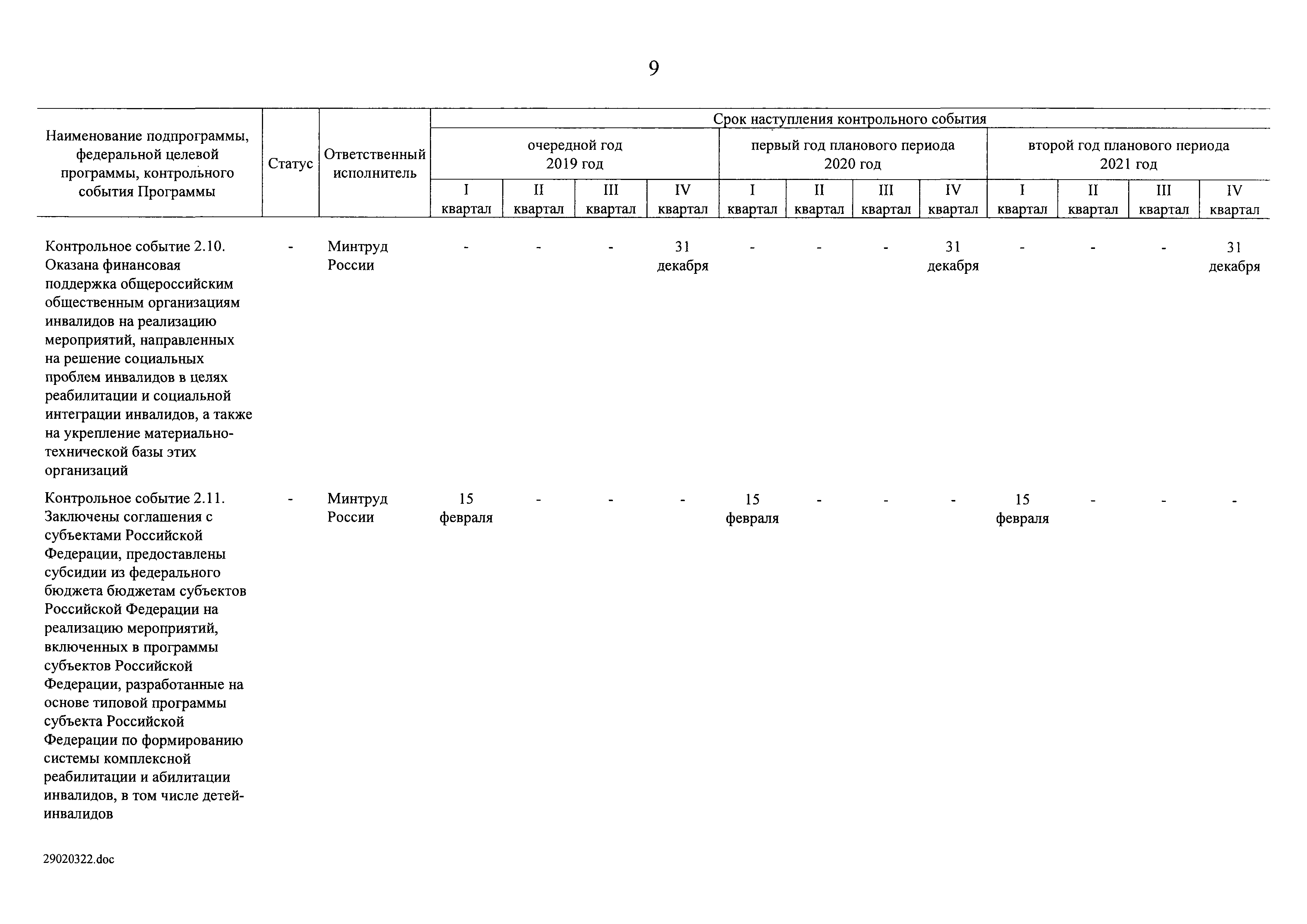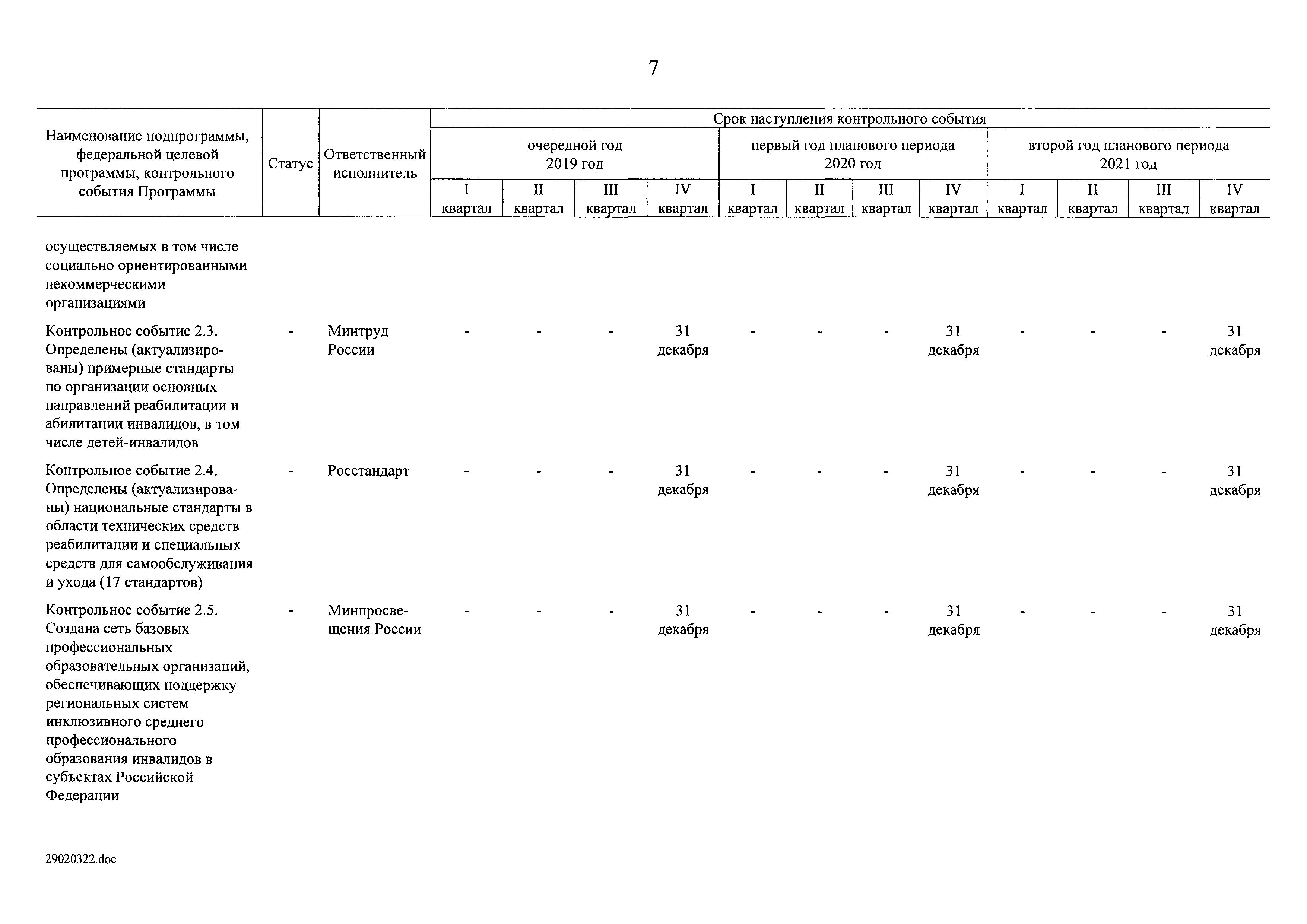 | Оглавление: | I. Приоритеты и цели государственной политики в области социальной защиты инвалидов в Российской Федерации, в том числе общие требования к государственной политике субъектов Российской Федерации II. Общая характеристика участия субъектов Российской Федерации в реализации Программы Приложение № 1. Сведения о целевых показателях и индикаторах государственной программы Российской Федерации "Доступная среда" Приложение № 2. Сведения о целевых показателях и индикаторах государственной программы Российской Федерации "Доступная среда" по субъектам Российской Федерации Приложение № 3. Перечень основных мероприятий государственной программы Российской Федерации "Доступная среда" Приложение № 4. Сведения об основных мерах правового регулирования в сфере реализации государственной программы Российской Федерации "Доступная среда" Приложение № 5. Ресурсное обеспечение реализации государственной программы Российской Федерации "Доступная среда" за счет средств федерального бюджета и бюджетов государственных внебюджетных фондов Российской Федерации Приложение № 6. План реализации на 2019 год и на плановый период 2020 и 2021 годов государственной программы Российской Федерации "Доступная среда" Приложение № 7. Правила предоставления субсидий из федерального бюджета бюджетам субъектов Российской Федерации на реализацию мероприятий в сфере обеспечения доступности приоритетных объектов и услуг в приоритетных сферах жизнедеятельности инвалидов и других маломобильных групп населения и их распределения Приложение № 8. Правила предоставления и распределения субсидий из федерального бюджета бюджетам субъектов Российской Федерации на реализацию мероприятий, включенных в государственные программы субъектов Российской Федерации, разработанные на основе типовой программы субъекта Российской Федерации по формированию системы комплексной реабилитации и абилитации инвалидов, в том числе детей-инвалидов Приложение № 9. Правила предоставления и распределения субсидий из федерального бюджета бюджетам субъектов Российской Федерации на создание в субъектах Российской Федерации базовых профессиональных образовательных организаций, обеспечивающих поддержку региональных систем инклюзивного профессионального образования инвалидов Приложение № 10. Сведения о целях, задачах и целевых показателях (индикаторах) государственной программы Российской Федерации "Доступная среда" на территории Дальневосточного федерального округа Приложение № 11. Сведения о целях, задачах и целевых показателях (индикаторах) государственной программы Российской Федерации "Доступная среда" на территории Байкальского региона Приложение № 12. Сведения о целях, задачах и целевых показателях (индикаторах) государственной программы Российской Федерации "Доступная среда" на территории Северо-Кавказского федерального округа Приложение № 13. Сведения о целях, задачах и целевых показателях (индикаторах) государственной программы Российской Федерации "Доступная среда" на территории Калининградской области Приложение № 14. Сведения о целях, задачах и целевых показателях (индикаторах) государственной программы Российской Федерации "Доступная среда" на территории Арктической зоны Российской Федерации Приложение № 15. Сведения о целях, зад