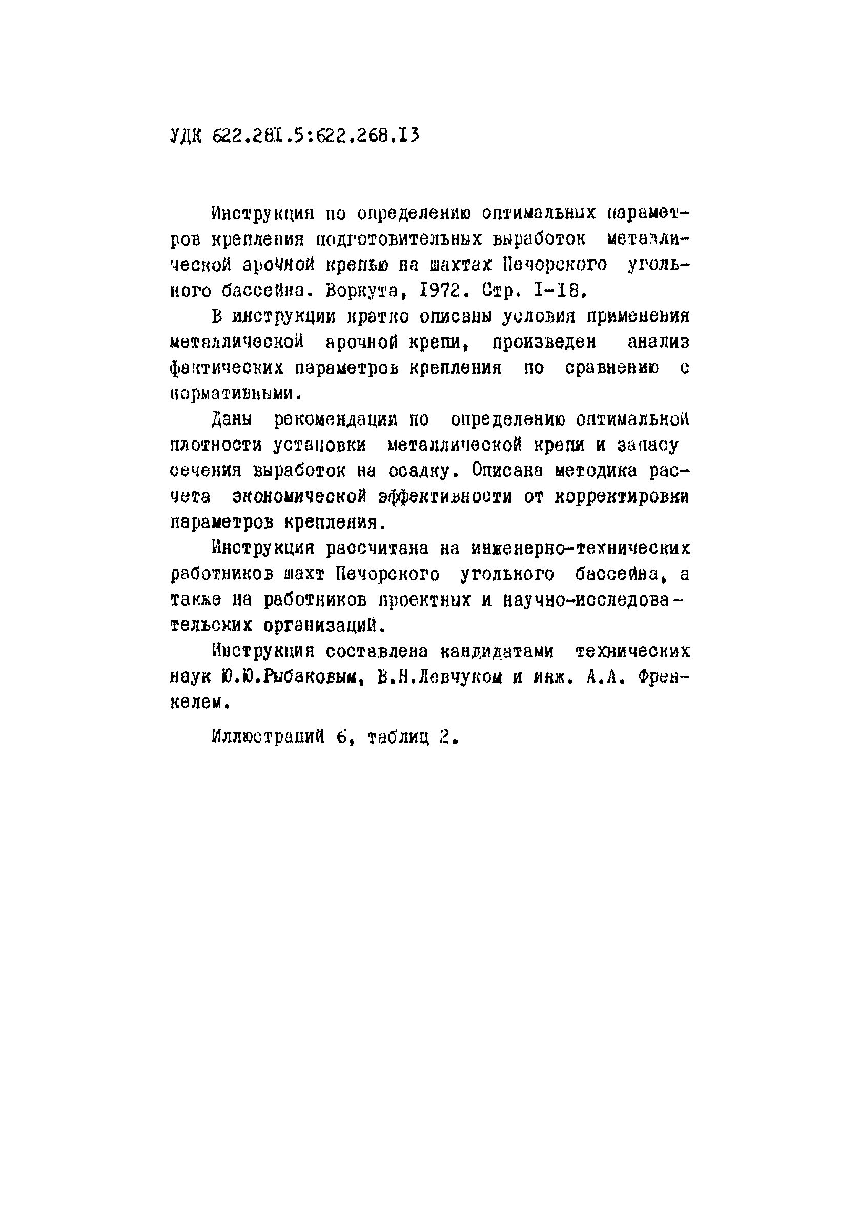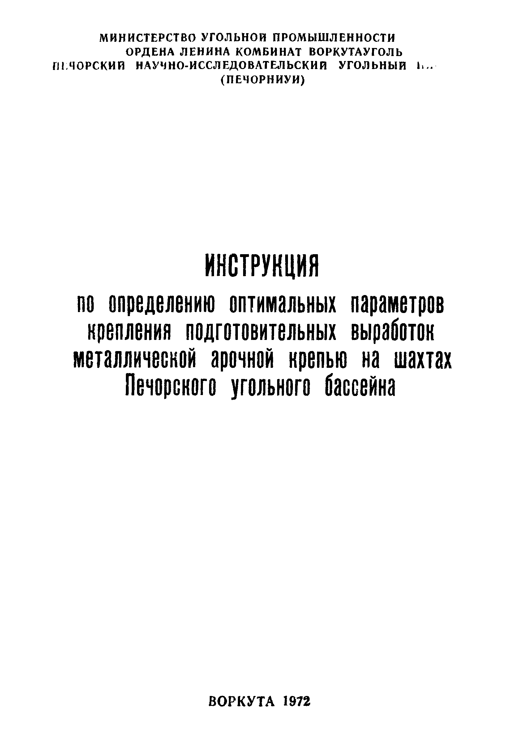 | Название рус.: | Инструкция по определению оптимальных параметров крепления подготовительных выработок металлической арочной крепью на шахтах Печерского угольного бассейна |