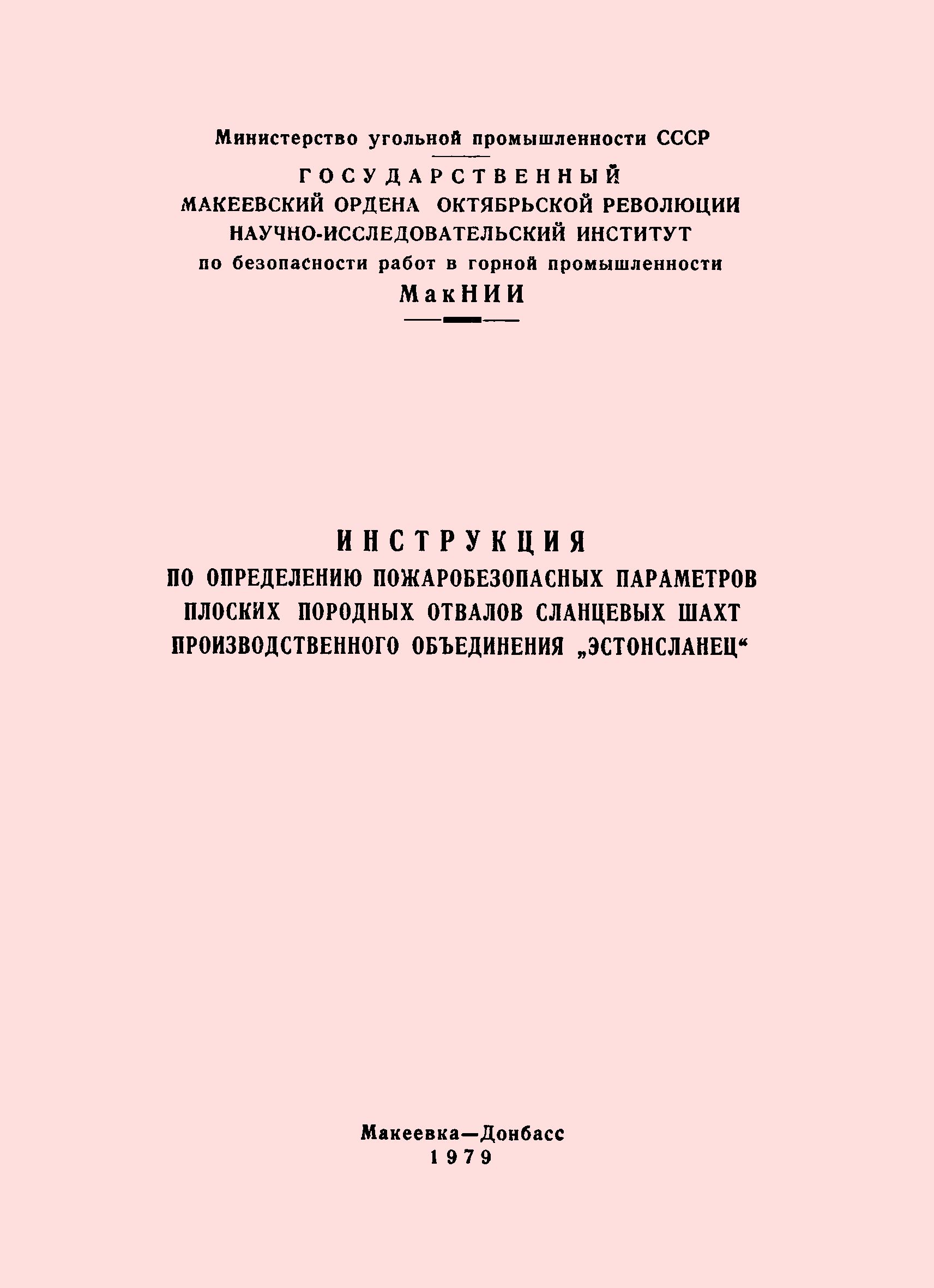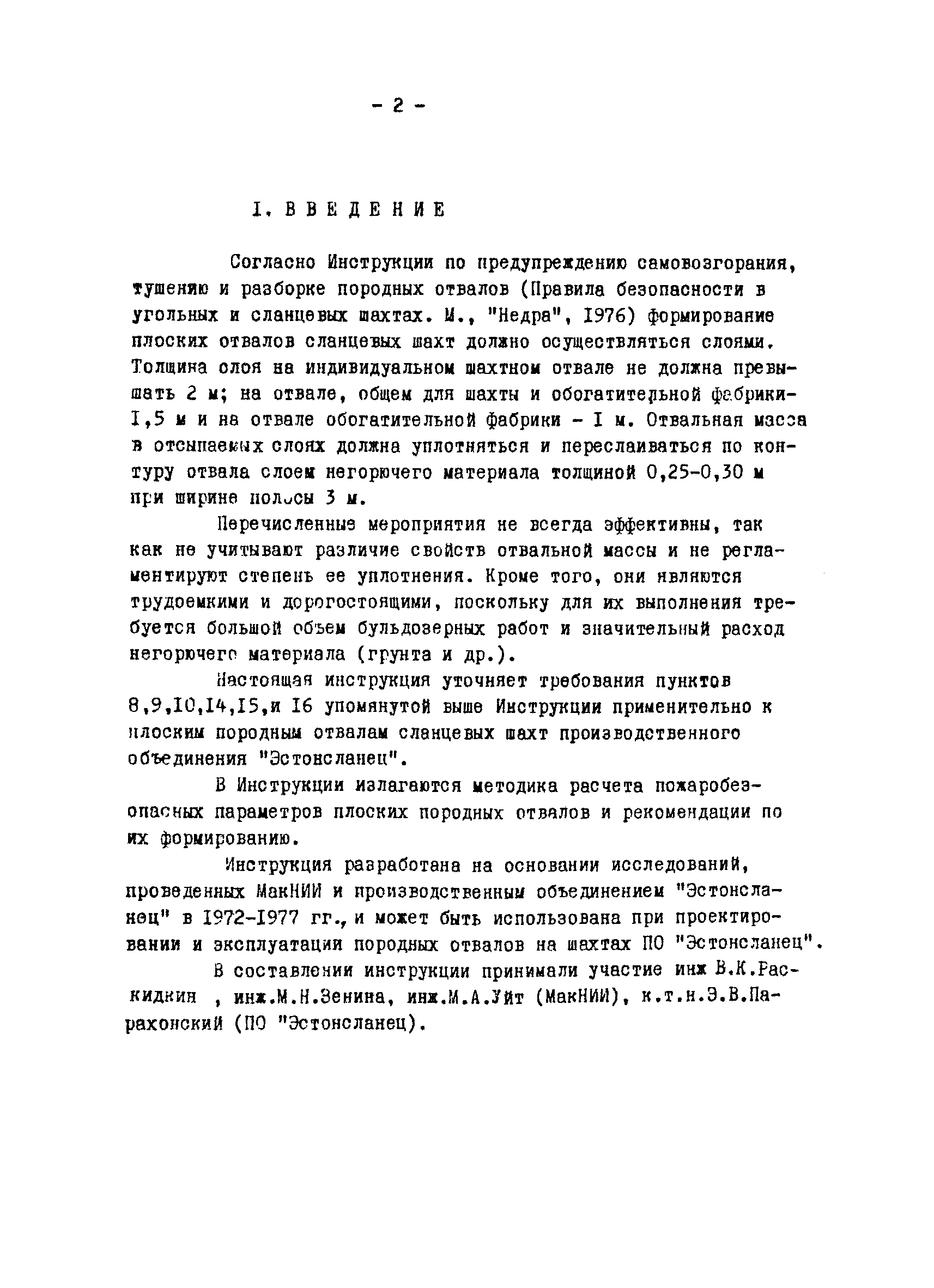 | Название рус.: | Инструкция по определению пожаробезопасных параметров плоских породных отвалов сланцевых шахт производственного объединения "Эстонсланец" |