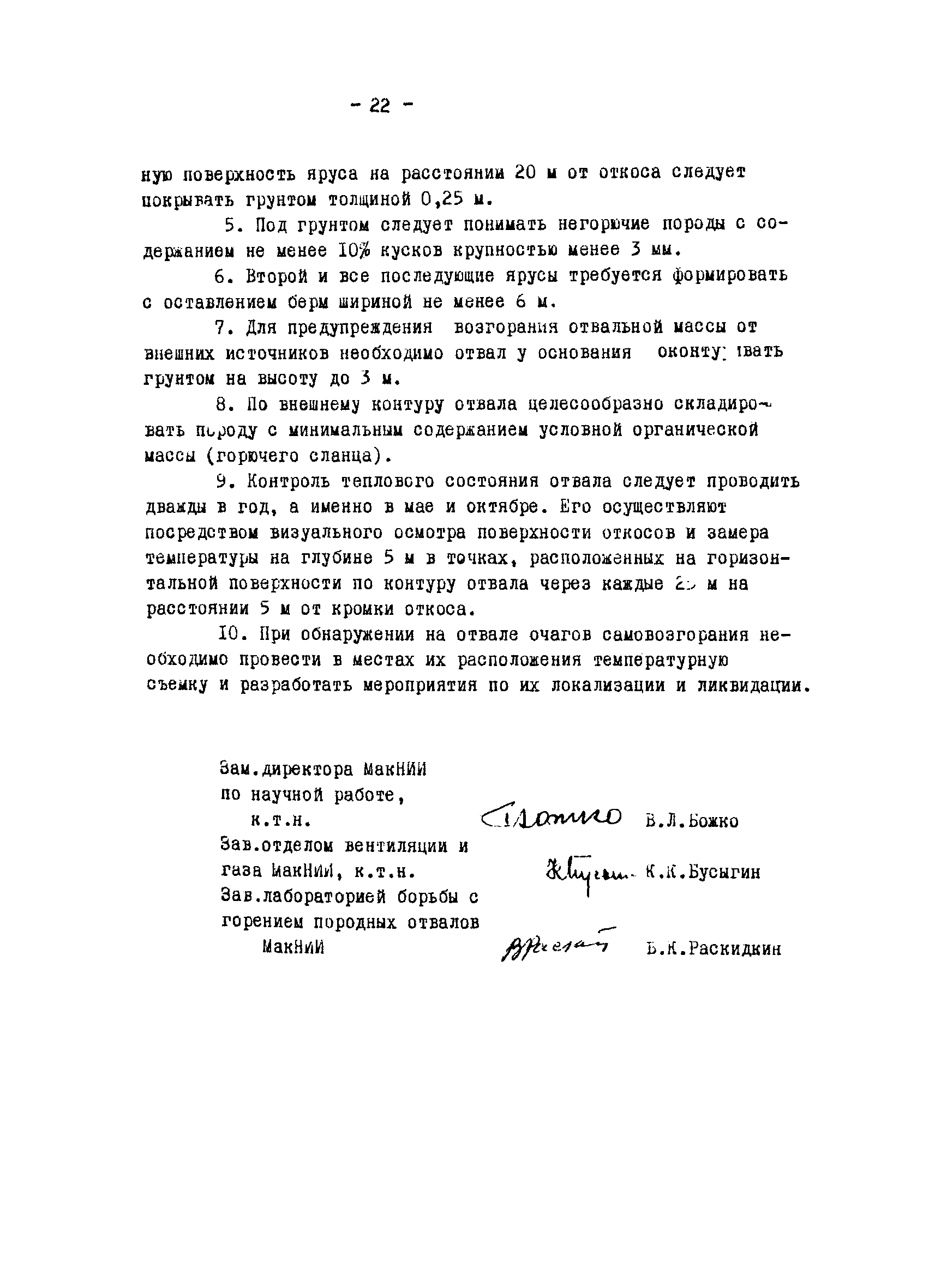 | Оглавление: | 1. Введение 2. Общие положения 3. Методика определения пожаробезопасных параметров плоских породных отвалов сланцевых шахт 4. Пример расчета пожаробезопасных параметров плоского породного отвала шахты "Эстония" 5. Рекомендации по предупреждению самовозгорания плоских породных отвалов сланцевых шахт ПО "Эстонсланец" |