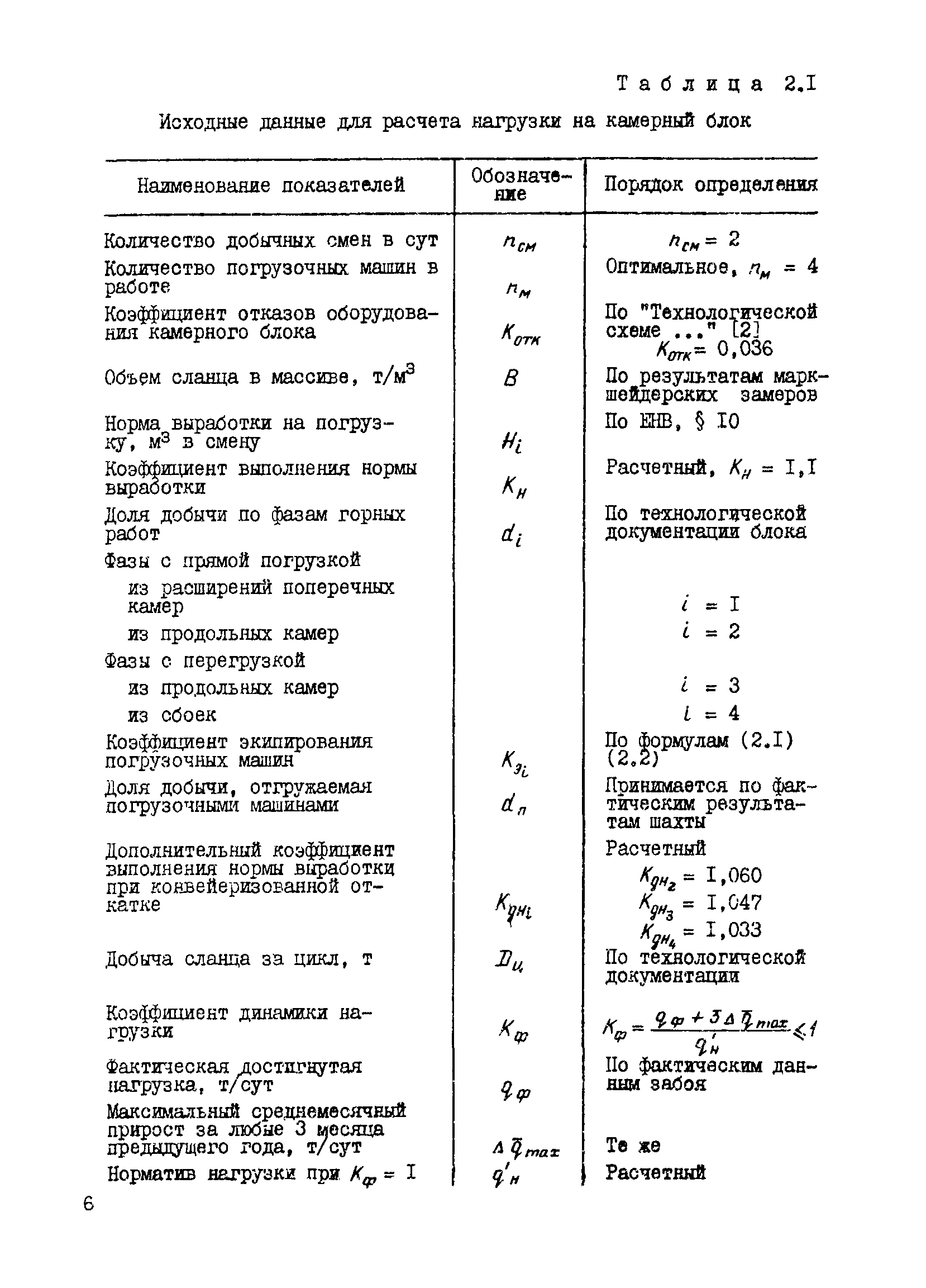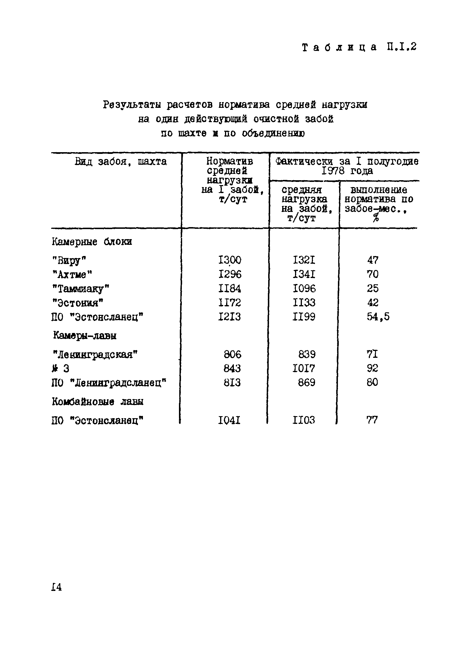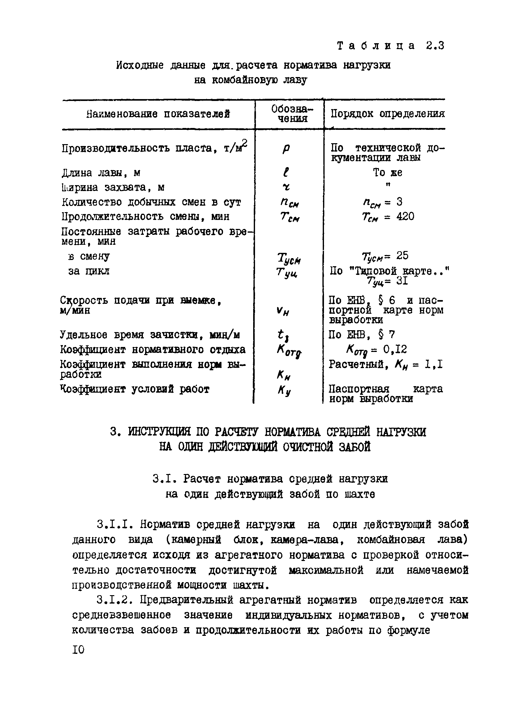 | Оглавление: | 1. Основные положения 2. Инструкция по расчету индивидуальных нормативов нагрузки на очистной забой 2.1. Расчет норматива нагрузки на камерные блоки со столбчатыми целиками 2.2. Расчет норматива нагрузки на спаренную камеру-лаву 2.3. Расчет норматива нагрузки на комбайновую лаву 3. Инструкция по расчету норматива средней нагрузки на один действующий очистной забой 3.1. Расчет норматива средней нагрузки на один действующий забой по шахте 3.2. Расчет норматива средней нагрузки на один действующий забой по объединению Приложение 1. Нормативы нагрузок на очистные забои |