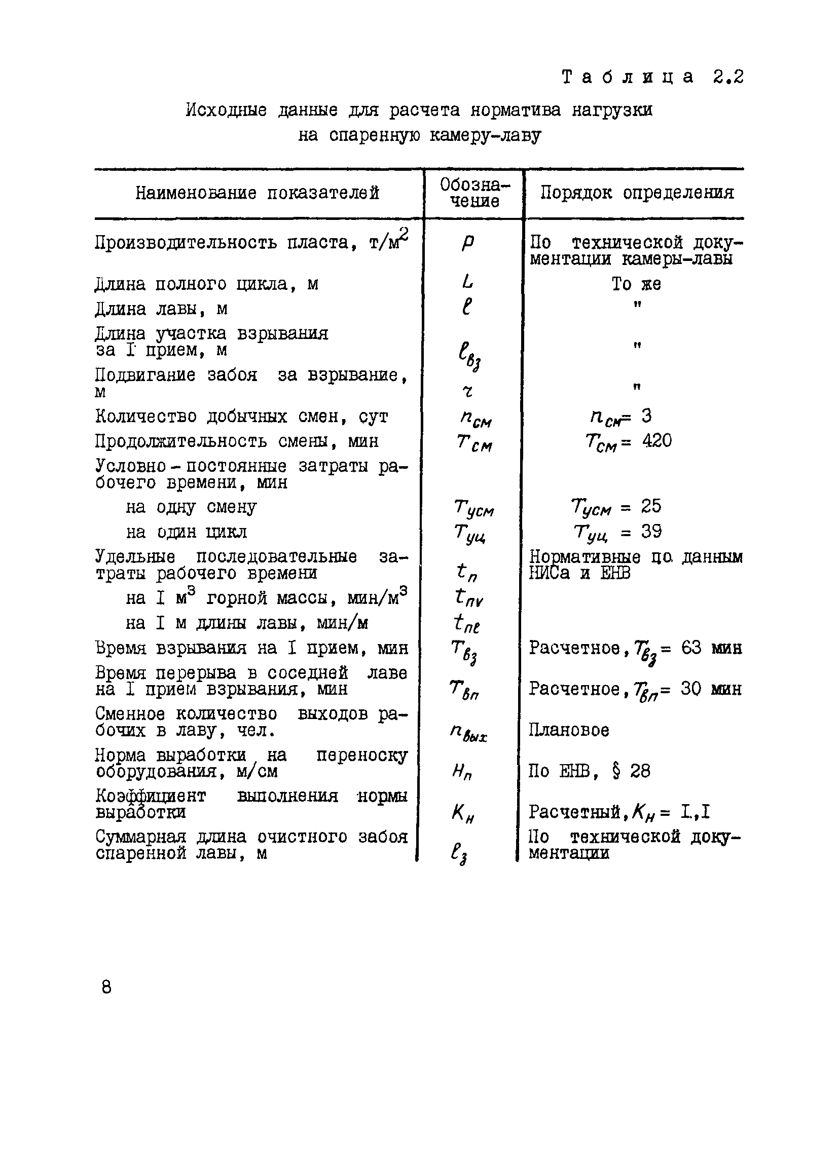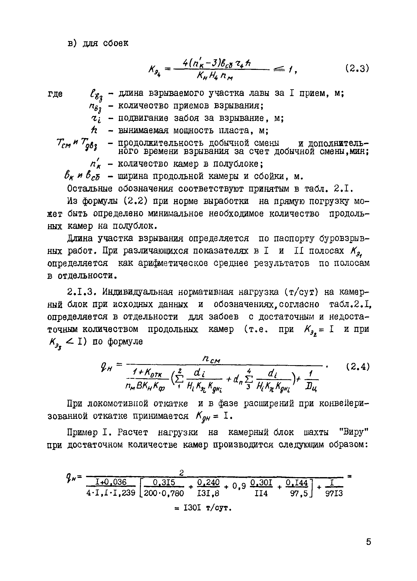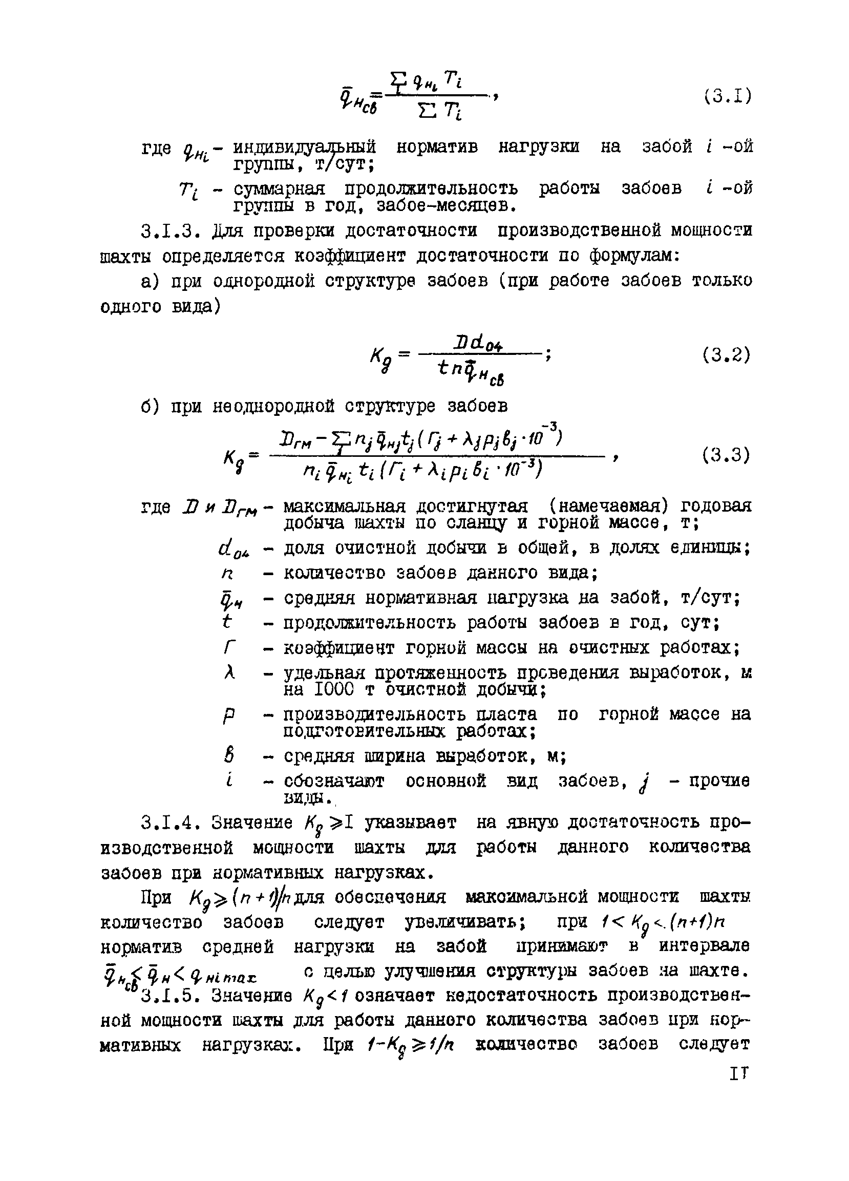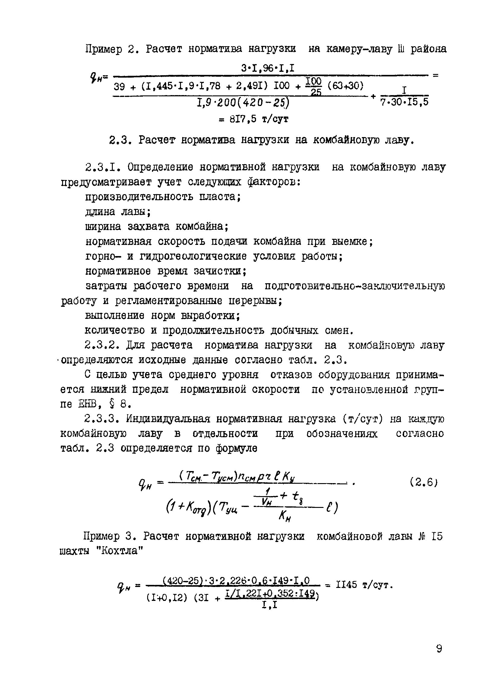 | Оглавление: | 1. Основные положения 2. Инструкция по расчету индивидуальных нормативов нагрузки на очистной забой 2.1. Расчет норматива нагрузки на камерные блоки со столбчатыми целиками 2.2. Расчет норматива нагрузки на спаренную камеру-лаву 2.3. Расчет норматива нагрузки на комбайновую лаву 3. Инструкция по расчету норматива средней нагрузки на один действующий очистной забой 3.1. Расчет норматива средней нагрузки на один действующий забой по шахте 3.2. Расчет норматива средней нагрузки на один действующий забой по объединению Приложение 1. Нормативы нагрузок на очистные забои |