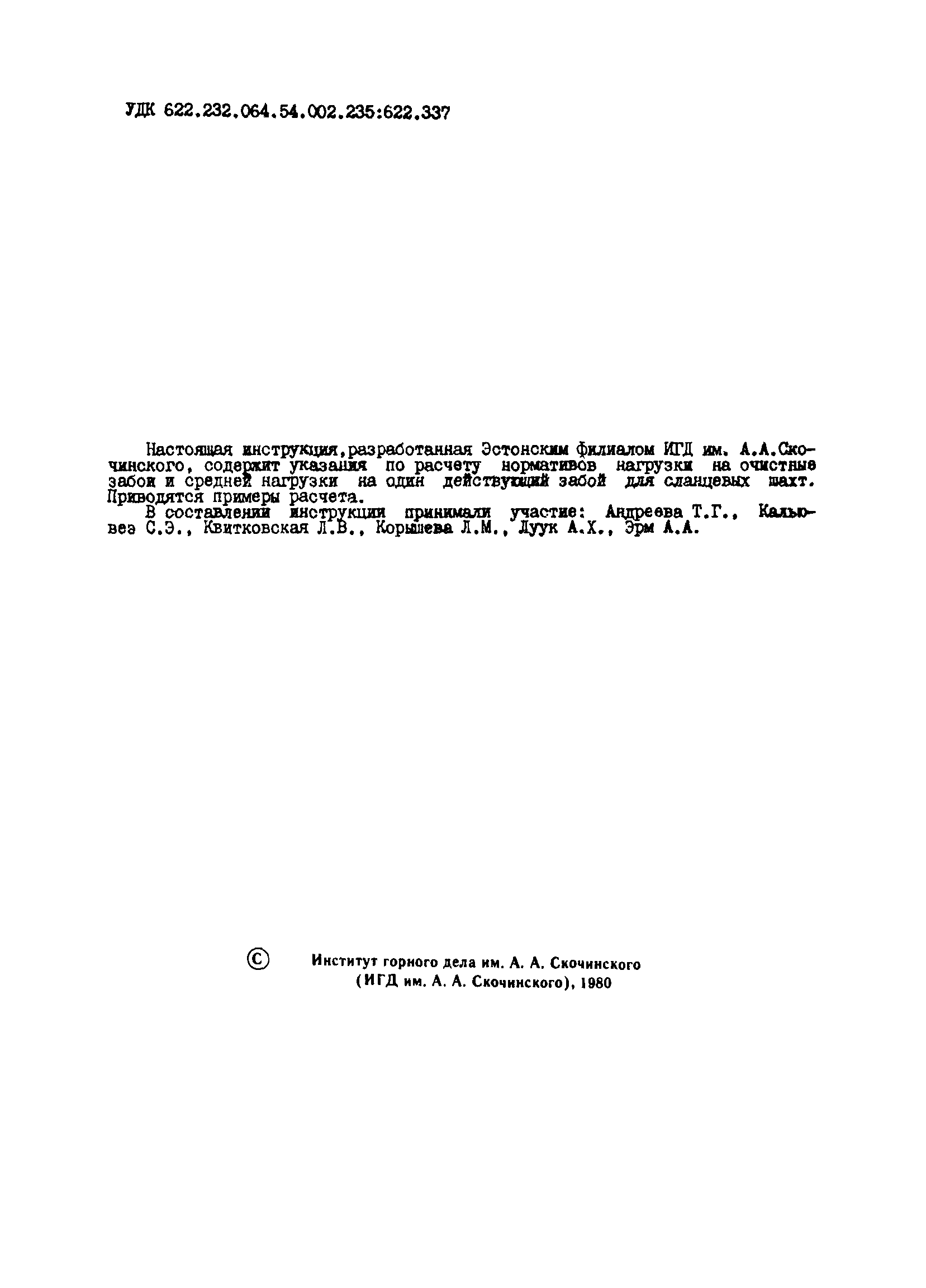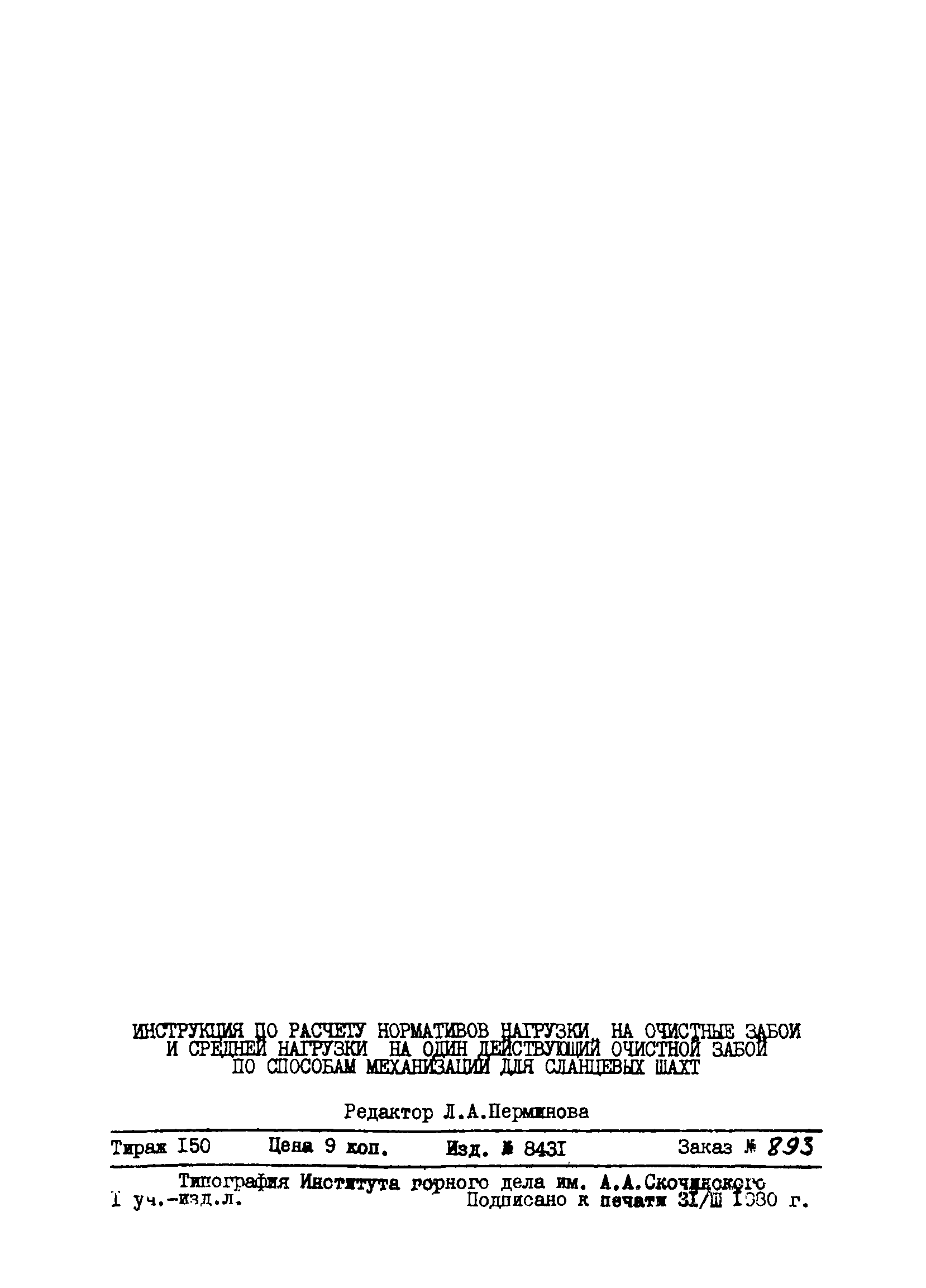 | Название рус.: | Инструкция по расчету нормативов нагрузки на очистные забои и средней нагрузки на один действующий очистной забой по способам механизации для сланцевых шахт |