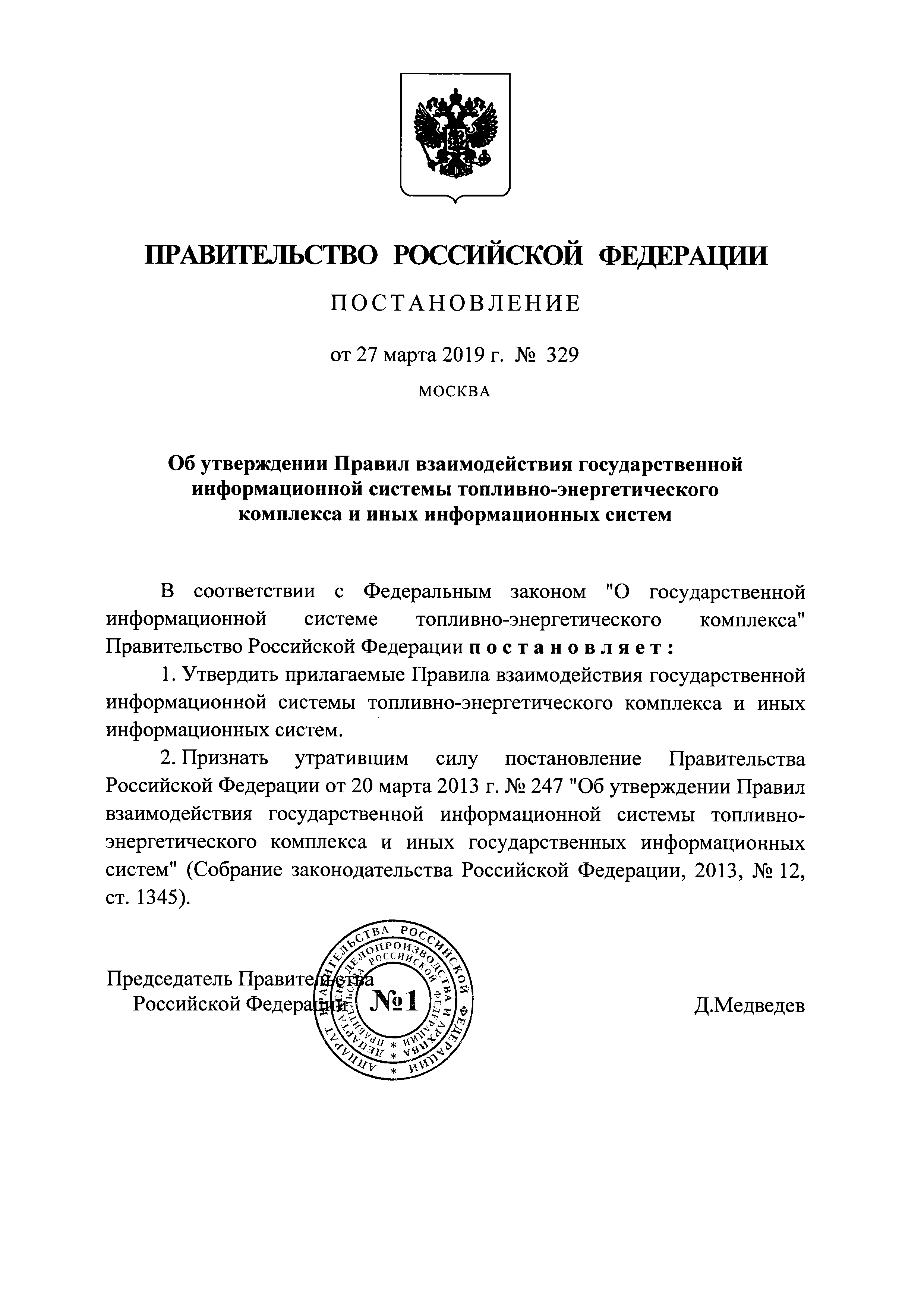 | Заменяет собой: | - Постановление 247 от 20.03.2013 «Об утверждении Правил взаимодействия государственной информационной системы топливно-энергетического комплекса и иных государственных информационных систем»
