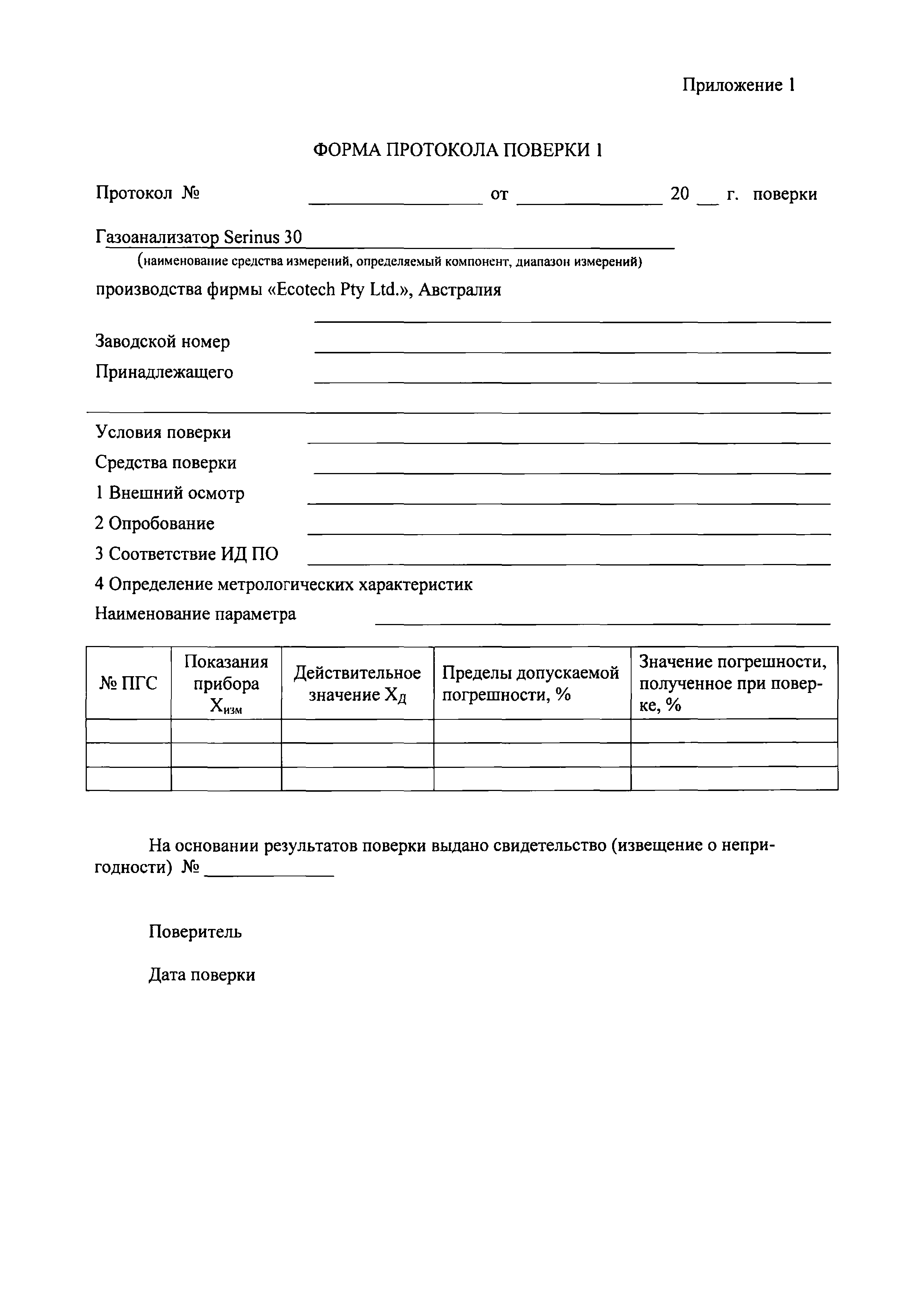 | Оглавление: | 1 Операции поверки 2 Средства поверки 3 Требования безопасности 4 Условия поверки и подготовка к ней 5 Проведение поверки 6 Оформление результатов поверки Приложение 1. Форма протокола поверки |