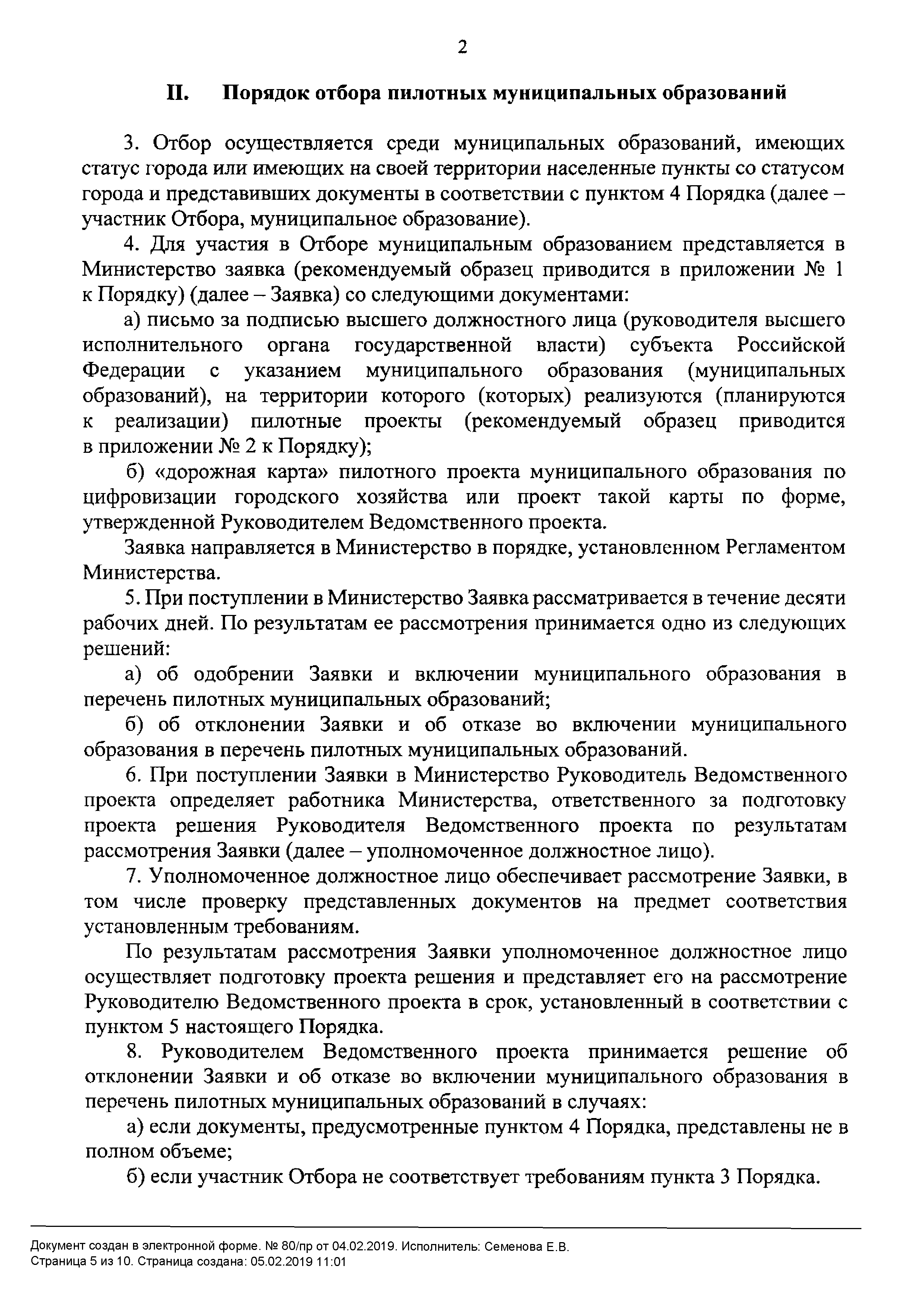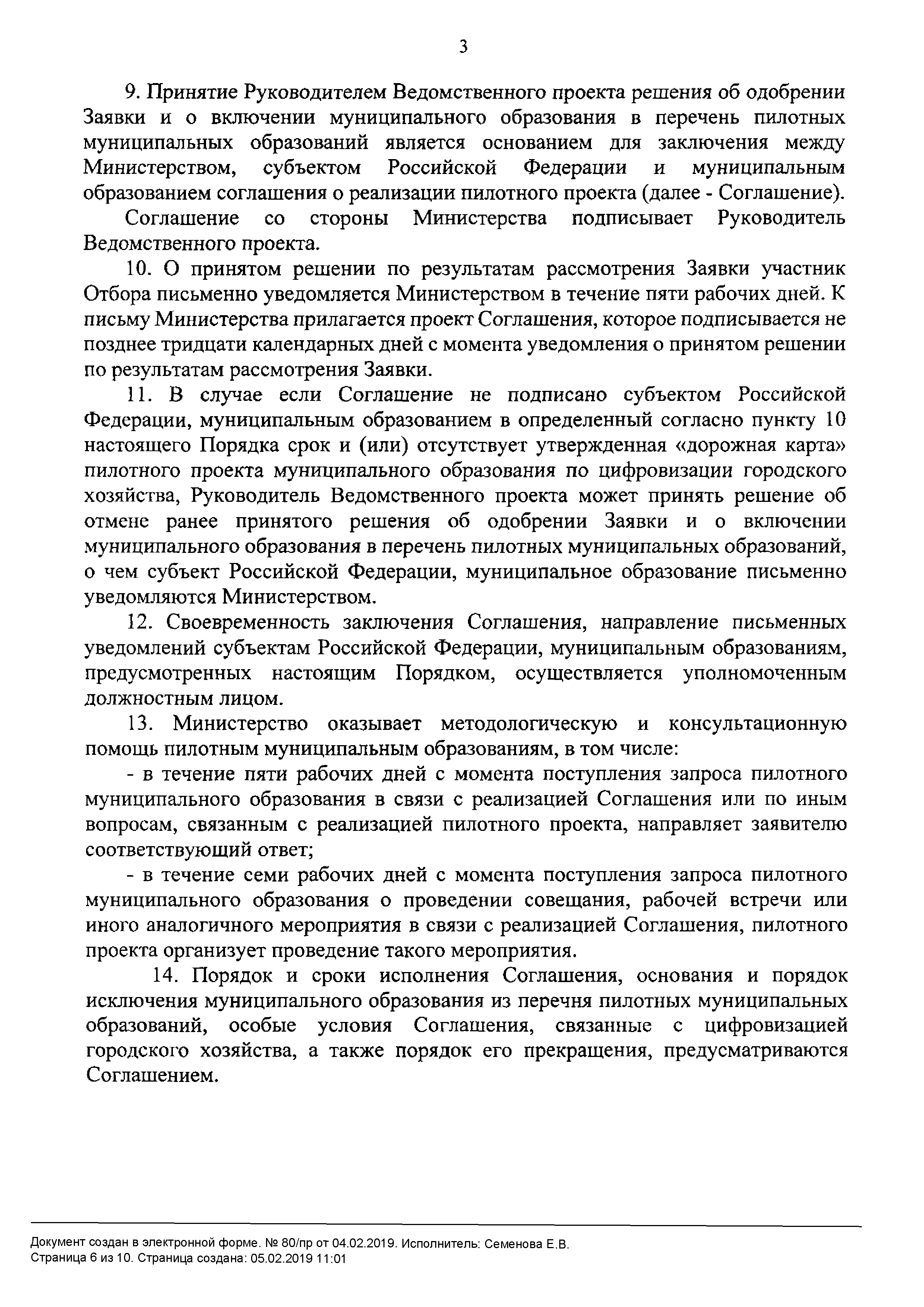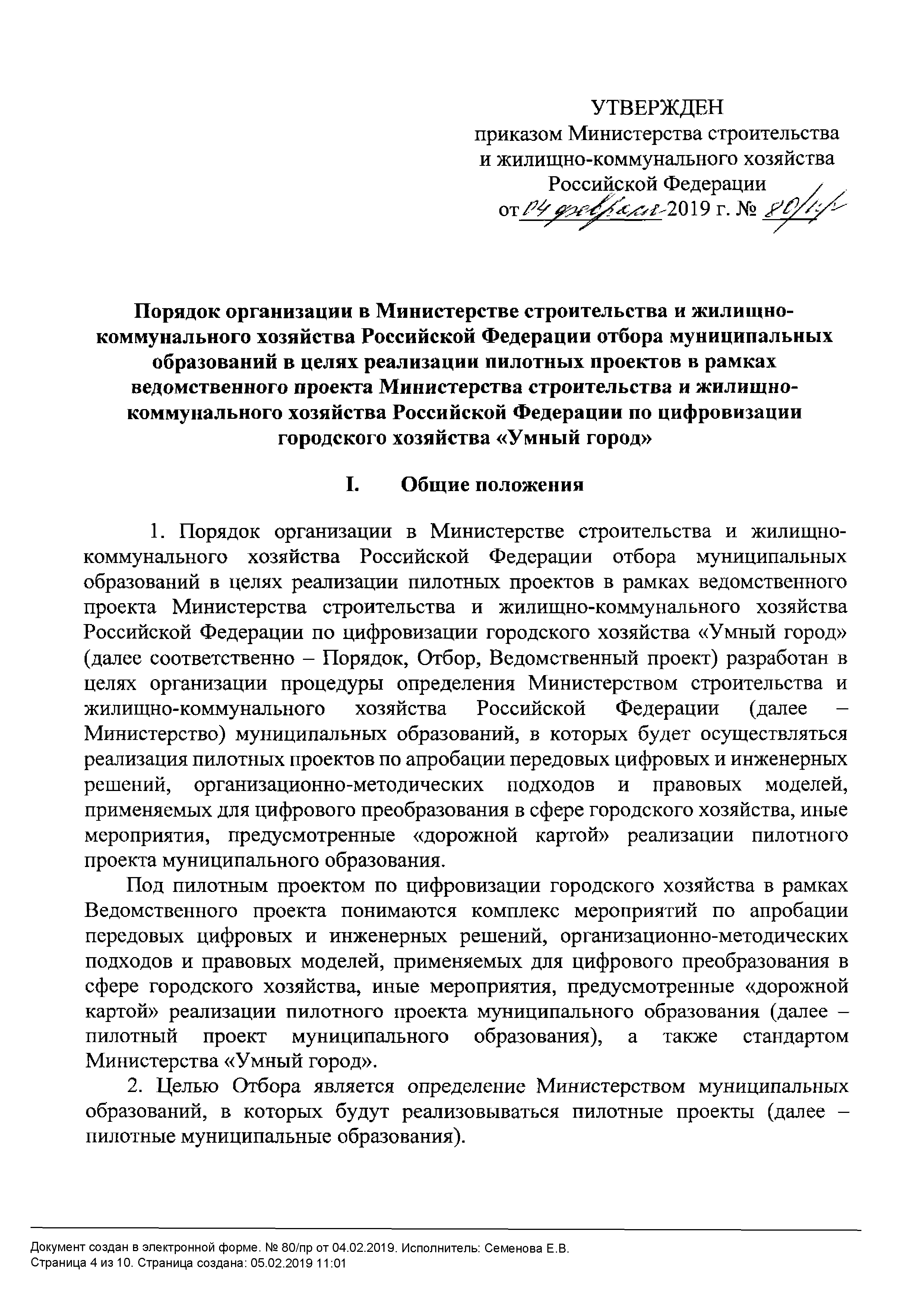 | Оглавление: | I. Общие положения II. Порядок отбора пилотных муниципальных образований Приложение № 1. Рекомендуемый образец заявки для участия в отборе муниципальных образований по реализации пилотных проектов по апробации передовых цифровых и инженерных решений, организационно-методических подходов и правовых моделей, применяемых для цифрового преобразования в сфере городского хозяйства Приложение № 2. Рекомендуемый образец письма о подтверждении участия в отборе муниципальных образований по реализации пилотных проектов по апробации передовых цифровых и инженерных решений, организационно-методических подходов и правовых моделей, применяемых для цифрового преобразования в сфере городского хозяйства |