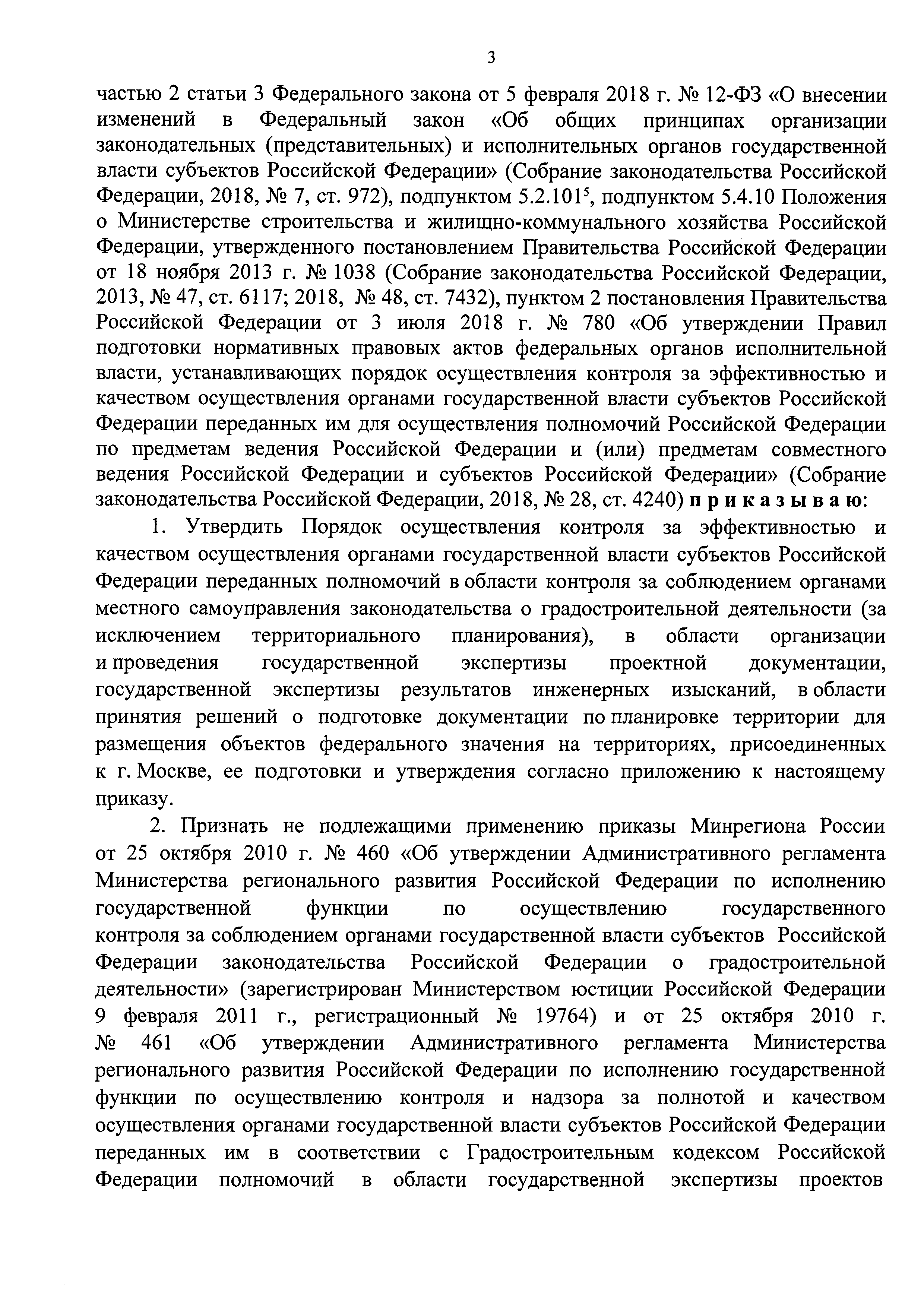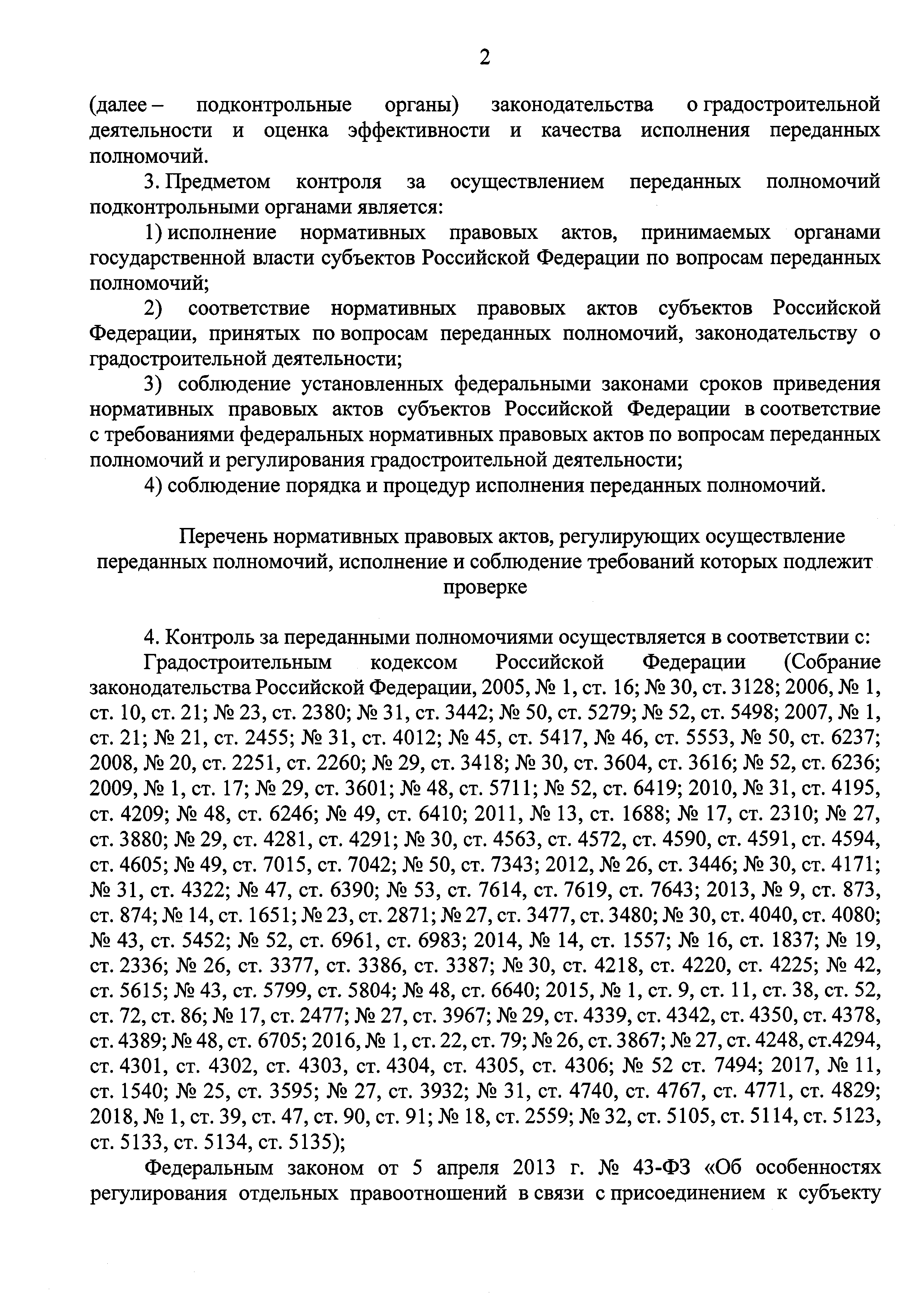 Скачать Порядок осуществления контроля за эффективностью и качеством осуществления органами государственной власти субъектов Российской Федерации переданных полномочий в области контроля за соблюдением органами местного самоуправления законодательства о градостроительной деятельности (за исключением территориального планирования), в области организации и проведения государственной экспертизы проектной документации, государственной экспертизы результатов инженерных изысканий, в области принятия решений о подготовке документации по планировке территории для размещения объектов федерального значения на территориях, присоединенных к г. Москве, ее подготовки и утвержденияДата актуализации: 01.01.2021