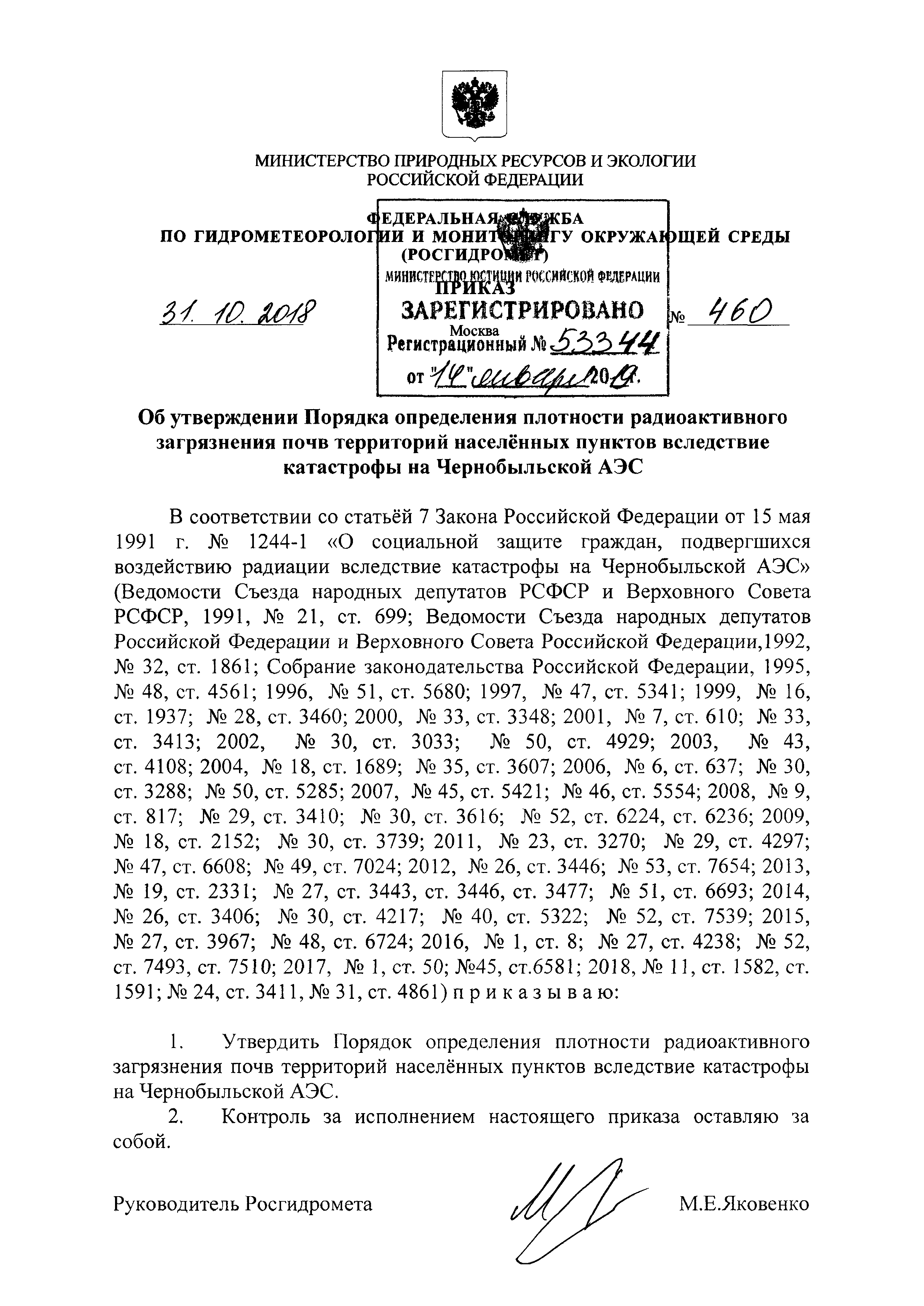 | Утверждён: | 31.10.2018 Федеральная служба по гидрометеорологии и мониторингу окружающей среды (460)
