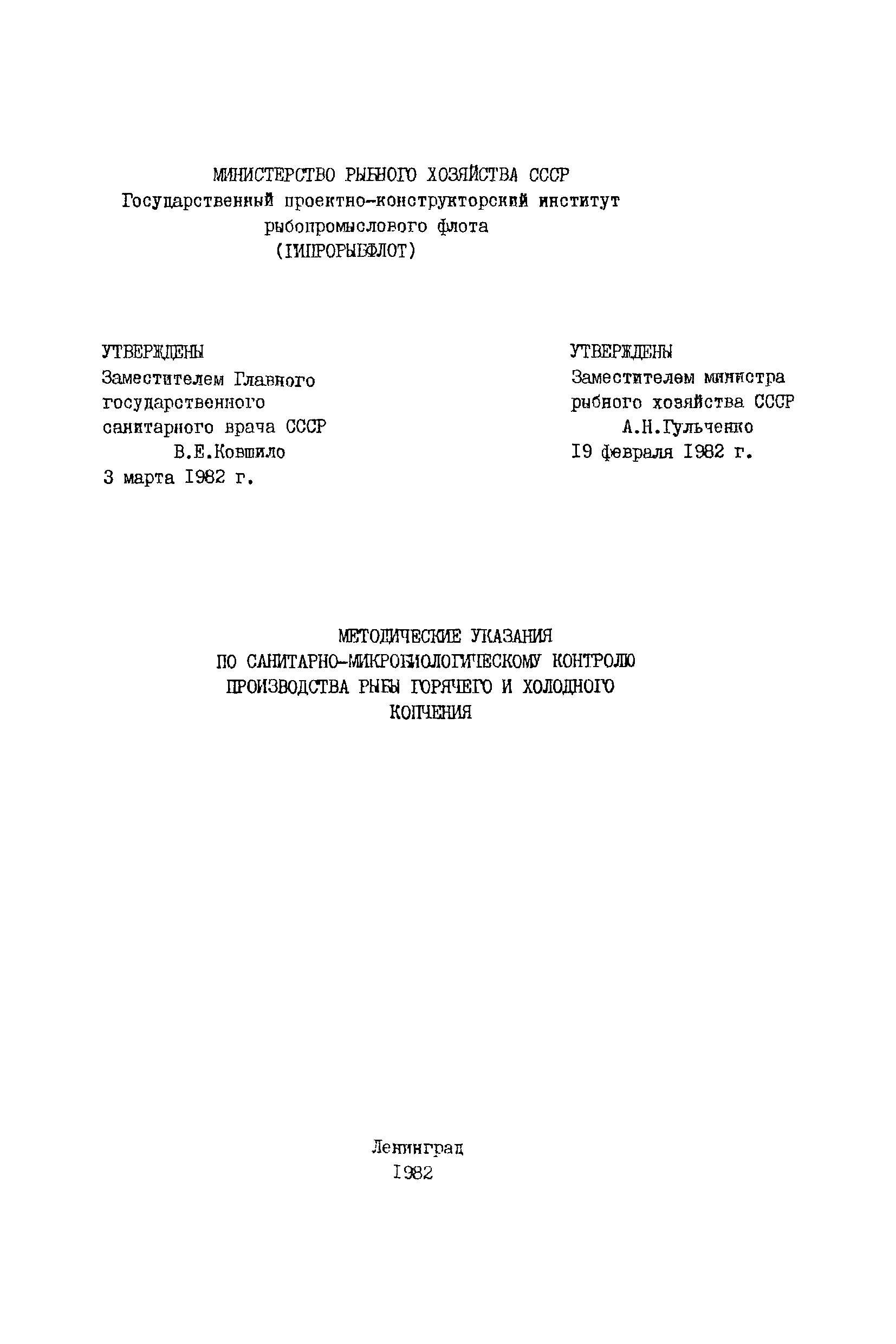 | Утверждён: | 03.03.1982 Зам. Главного Государственного санитарного врача СССР (USSR Deputy Chief Public Health Officer ) 19.02.1982 Зам. Министра рыбного хозяйства СССР