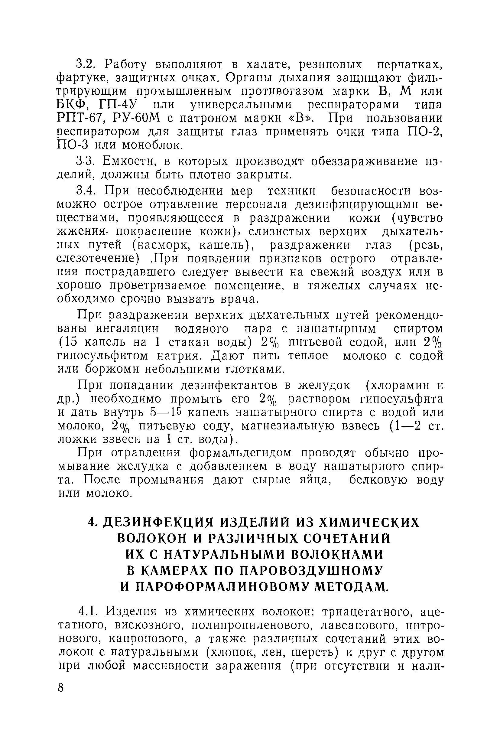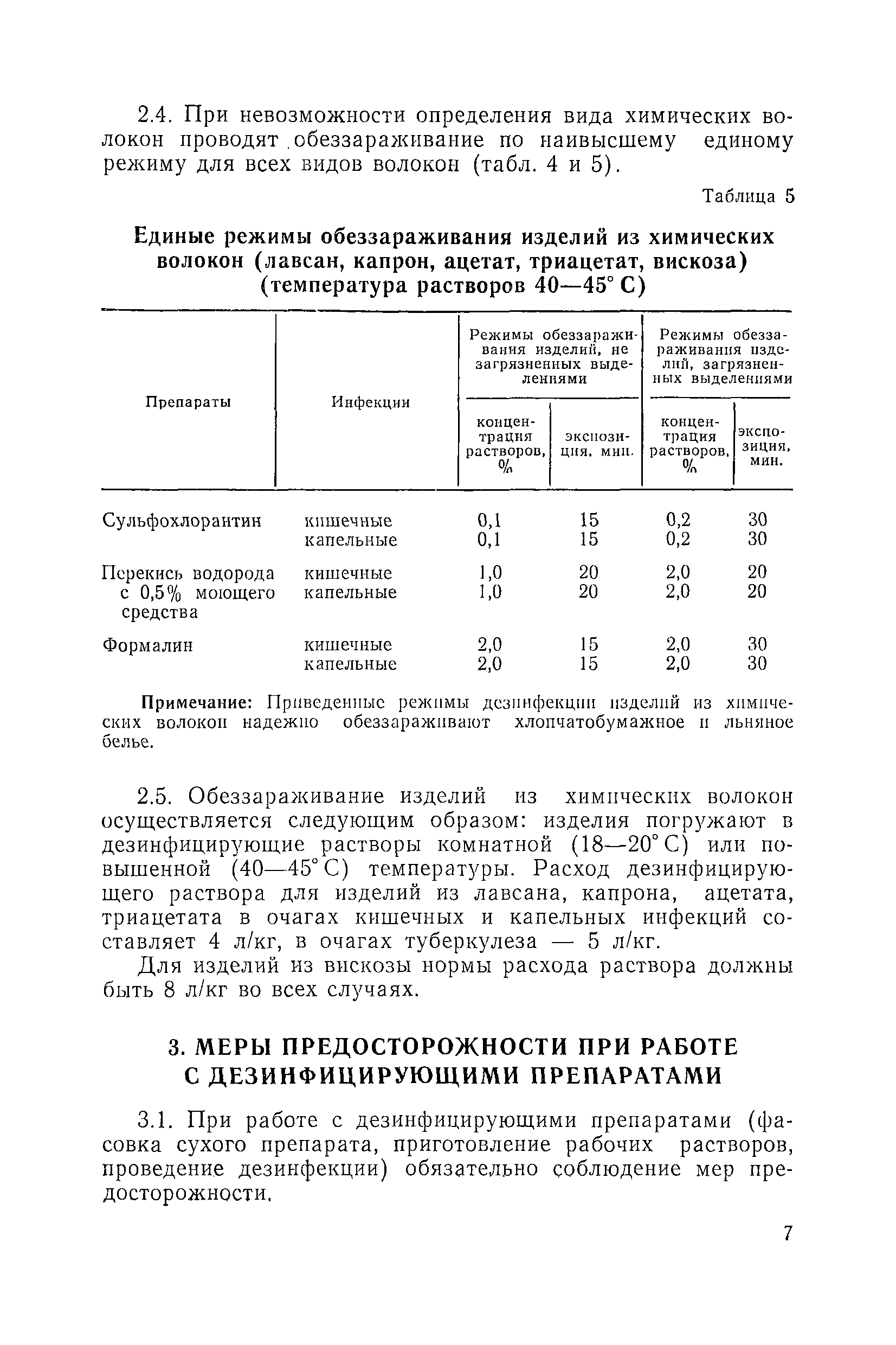 | Оглавление: | 1. Общие положения 2. Дезинфекция изделий из химических волокон и различных сочетаний их с натуральными волокнами растворами дезинфицирующих средств 3. Меры предосторожности при работе с дезинфицирующими препаратами 4. Дезинфекция изделий из химических волокон и различных сочетаний их с натуральными волокнами в камерах по паровоздушному и пароформалиновому методам Приложение 1. Приготовление рабочих растворов дезинфицирующих препаратов |