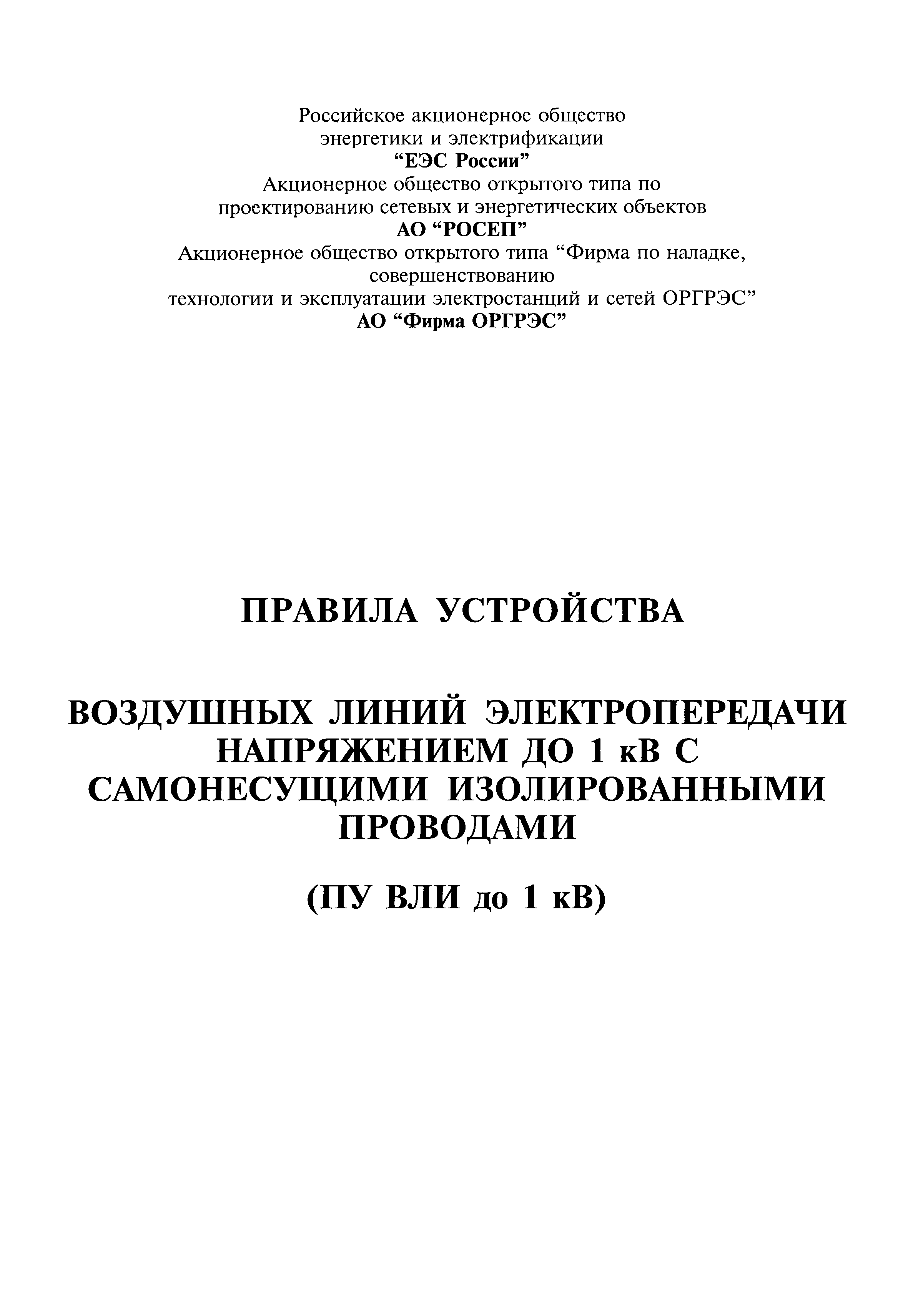 | Название рус.: | Правила устройства воздушных линий электропередачи напряжением до 1 кВ с самонесущими изолированными проводами (ПУ ВЛИ до 1 кВ) |