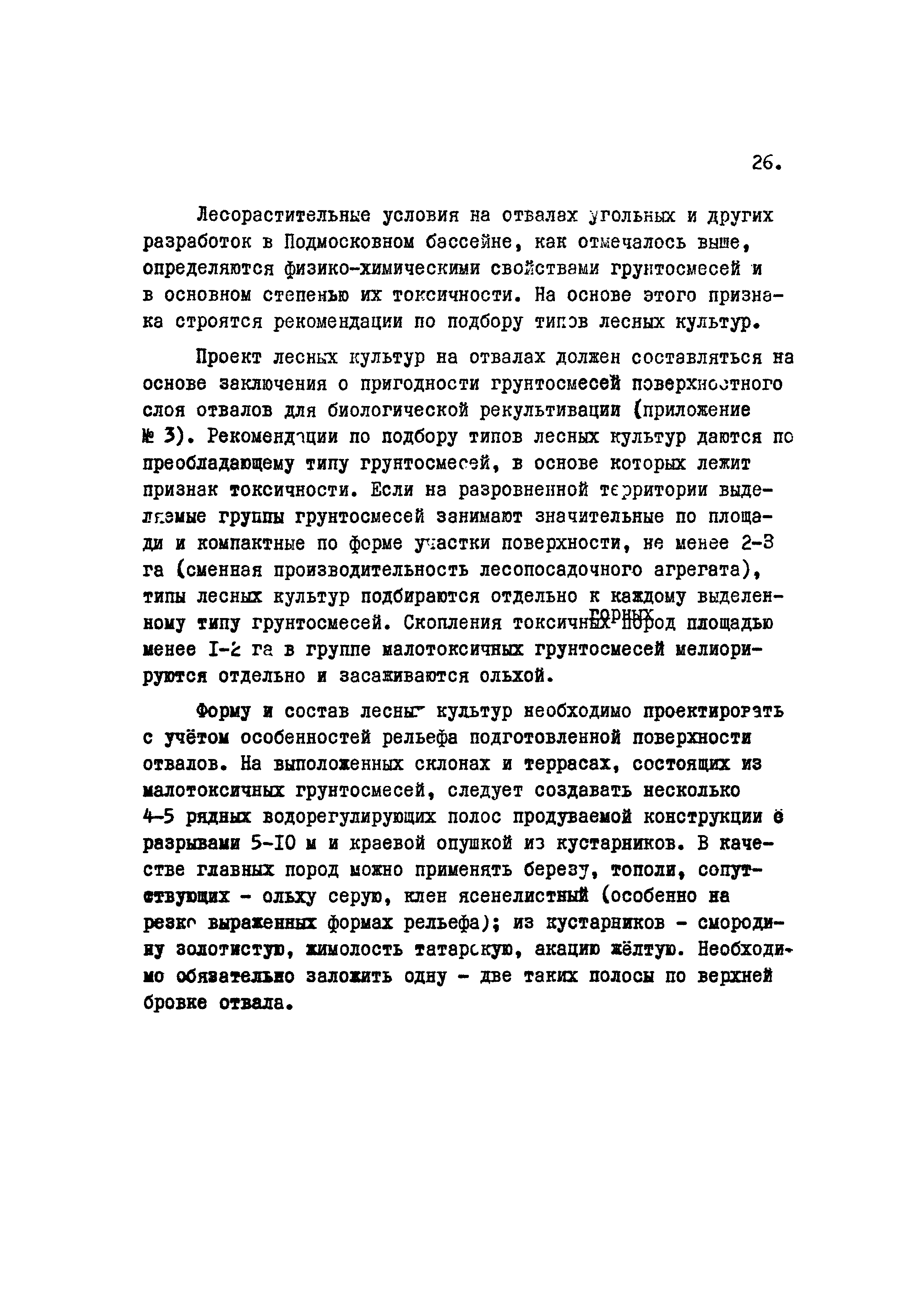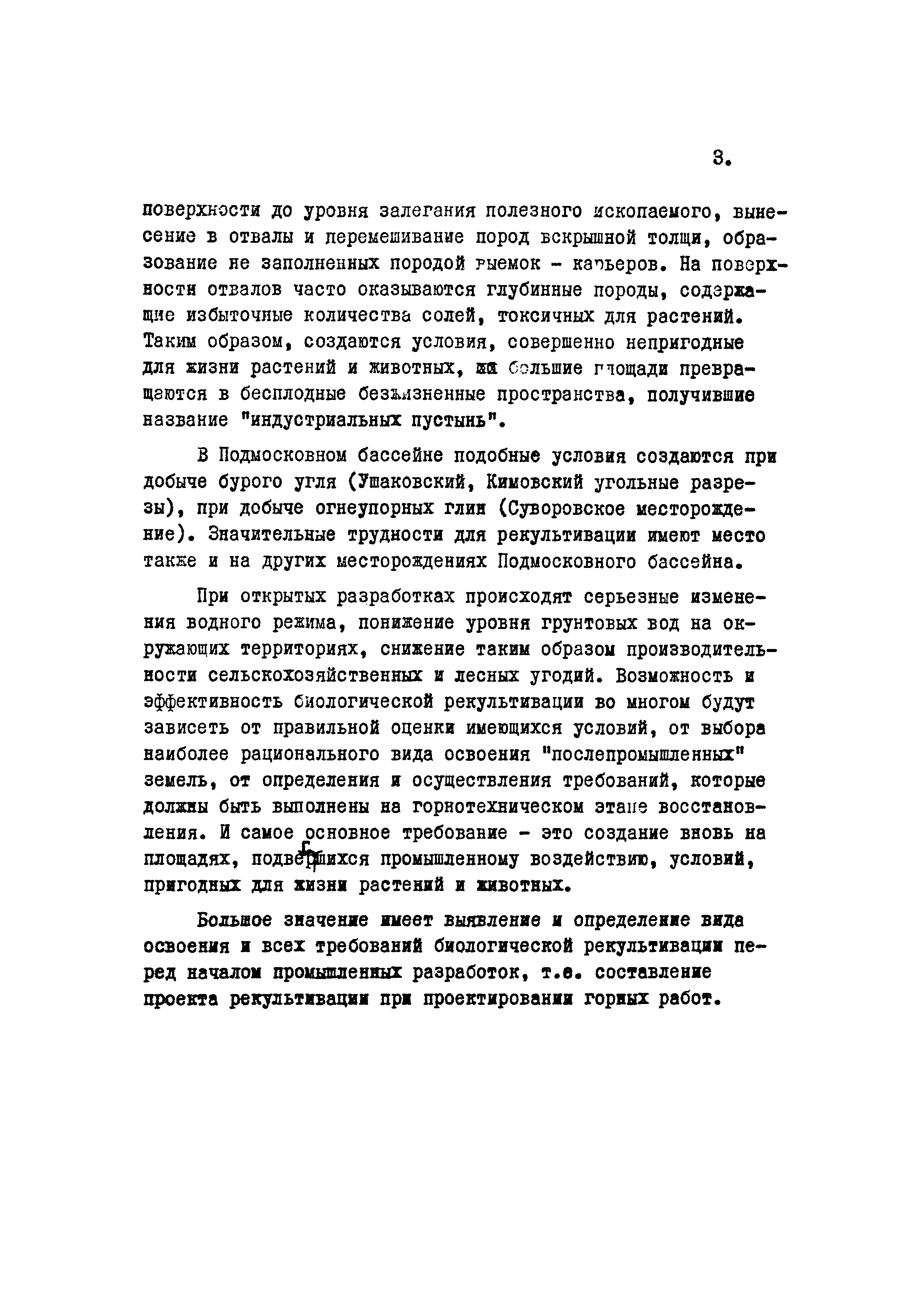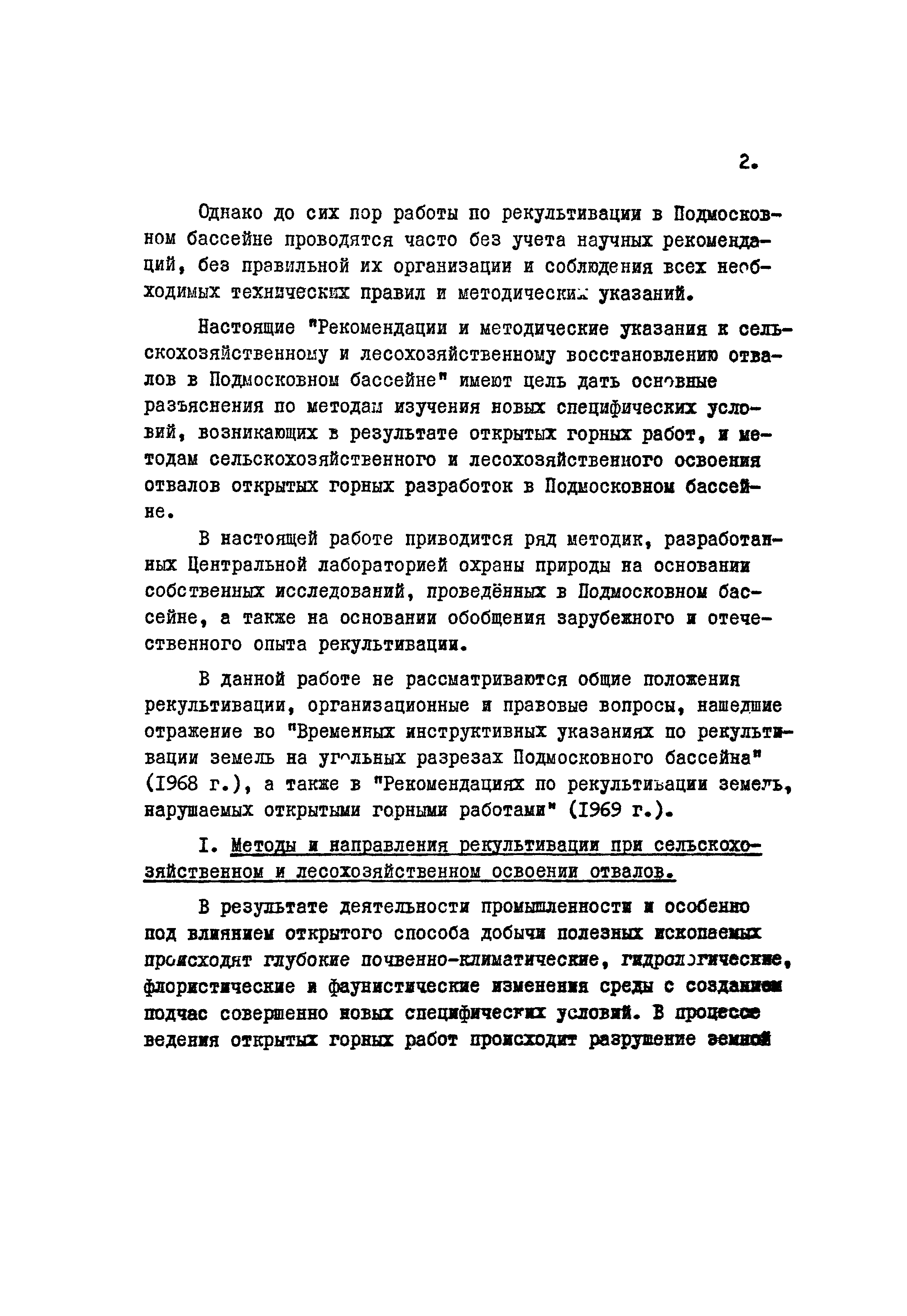 | Область применения: | Рекомендации имеют цель дать основные разъяснения по методам изучения новых специфических условий, возникающих в результате открытых горных работ, и методам сельскохозяйственного и лесохозяйственного освоения отвалов открытых горных разработок в Подмосковном бассейне. В работе приводится ряд методик, разработанных Центральной лабораторией охраны природы на основании собственных исследований, проведенных в Подмосковном бассейне, а также на основании обобщения зарубежного и отечественного опыта рекультивации. В данной работе не рассматриваются общие положения рекультивации, организационные и правовые вопросы |
