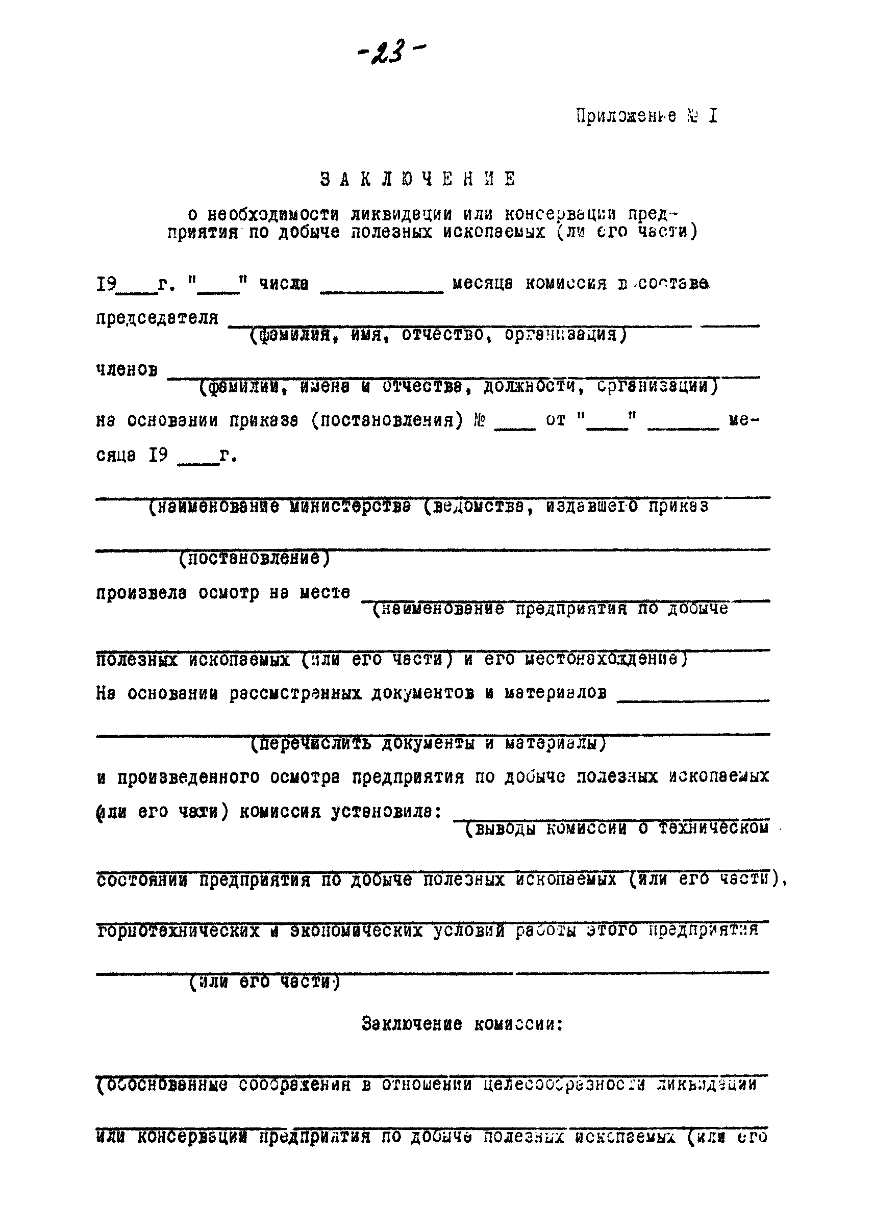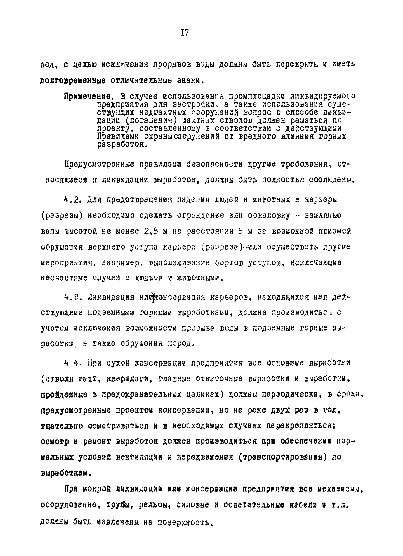 | | Заменяет собой: | - «Инструкция о порядке консервации и ликвидации горнодобывающих предприятий» (в части утв. Госгортехнадзором СССР 30.08.1968 г.)