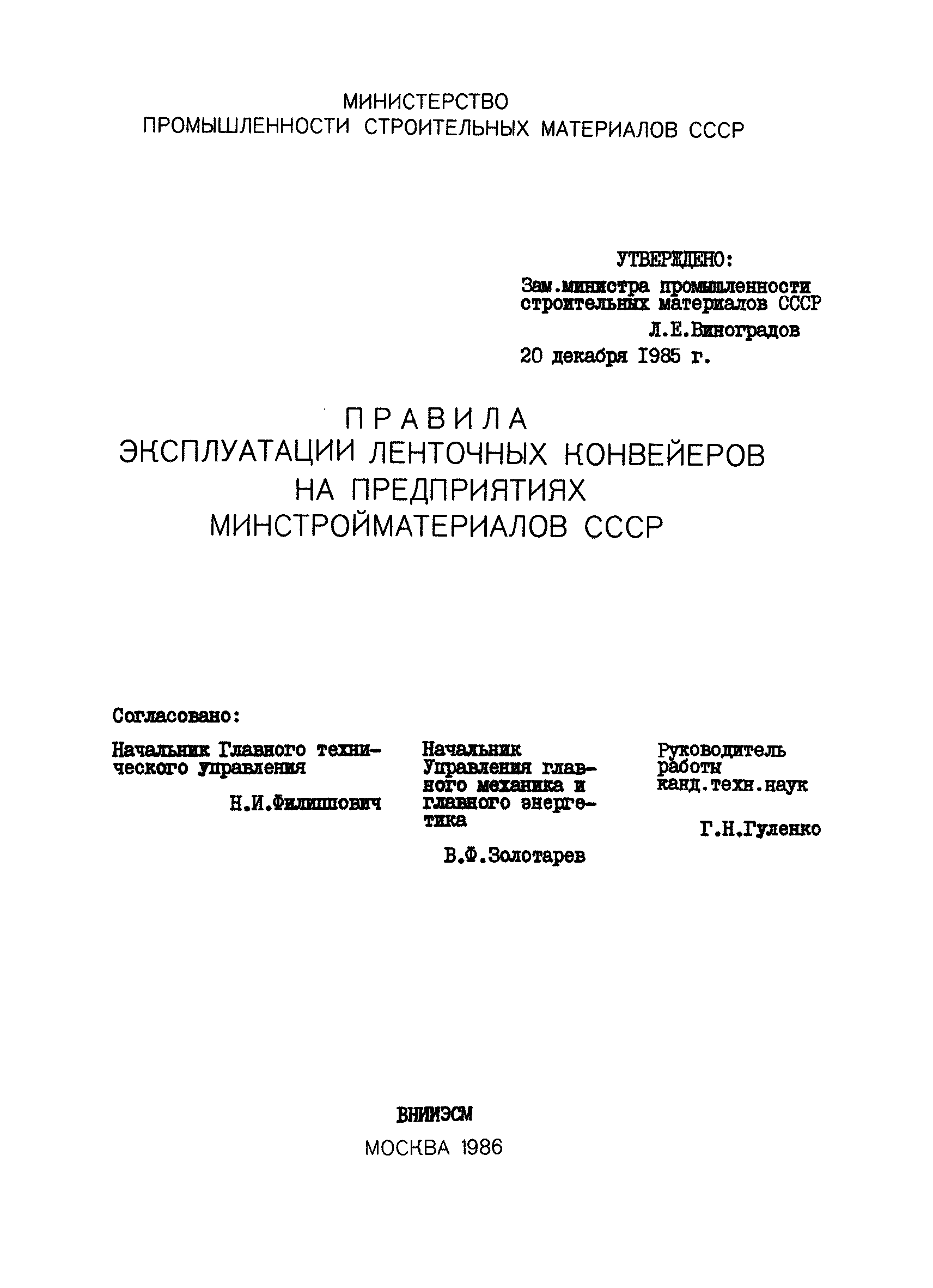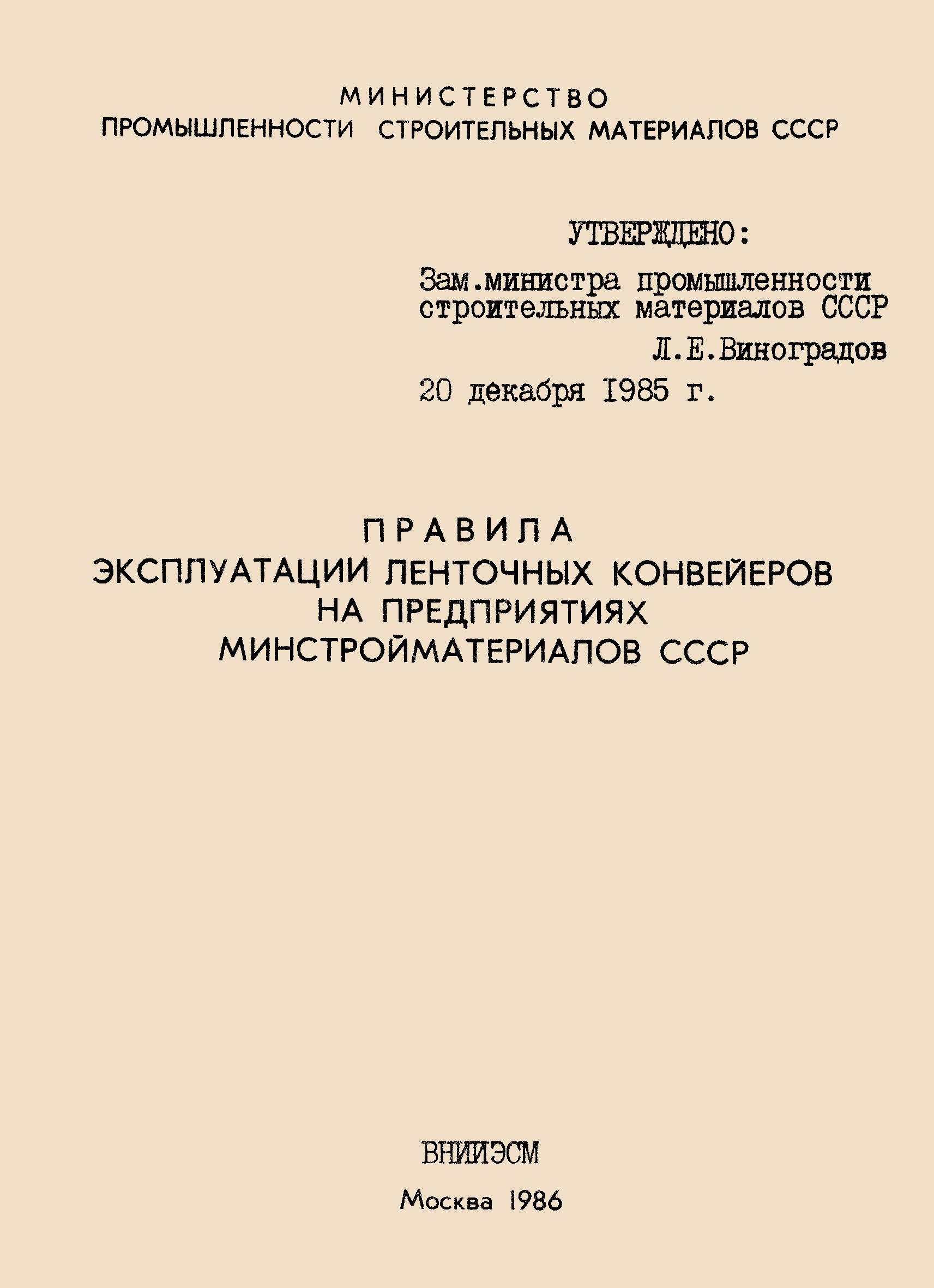 | Название рус.: | Правила эксплуатации ленточных конвейеров на предприятиях Минстройматериалов СССР |