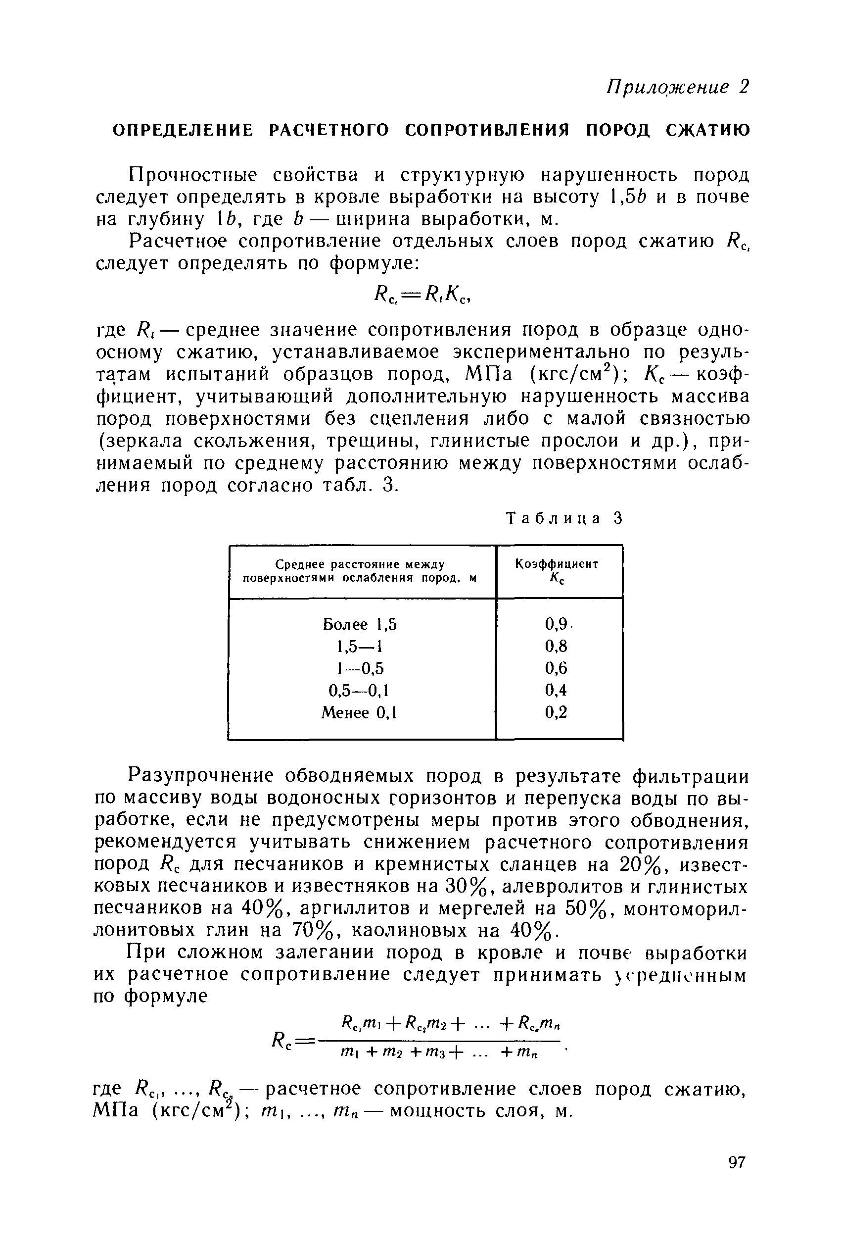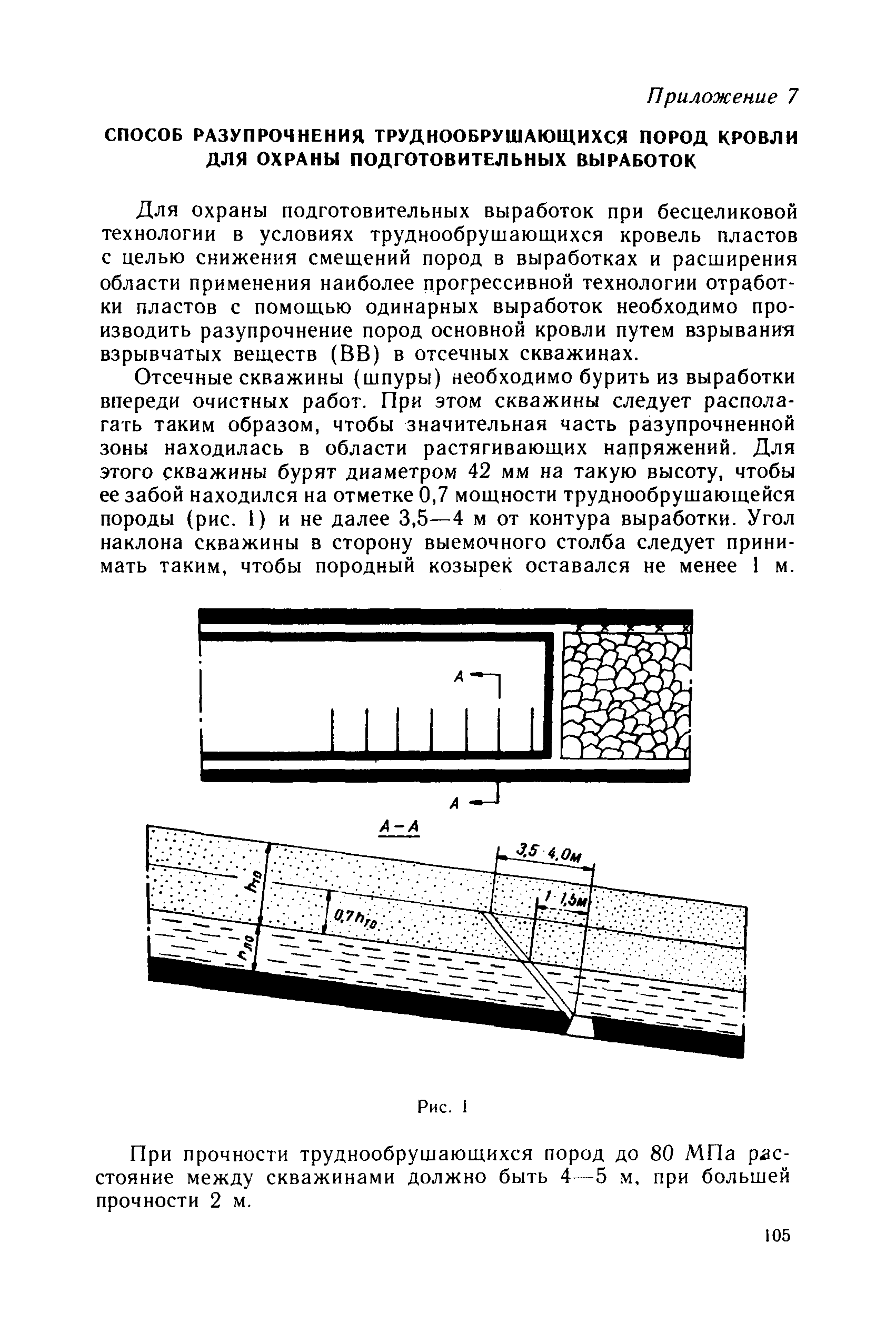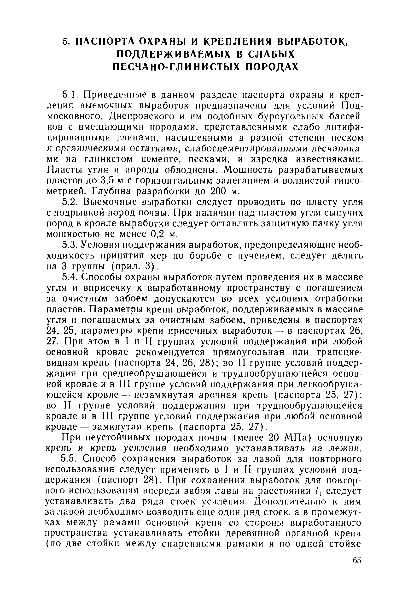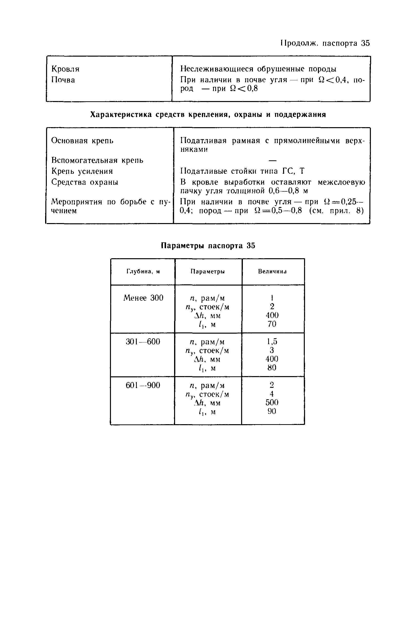 | Оглавление: | Введение 1. Паспорта охраны и крепления выработок, поддерживаемых в массиве угля впереди очистного забоя и погашаемых за лавой 2. Паспорта охраны и крепления повторно используемых выработок 3. Паспорта охраны и крепления присечных выработок 4. Паспорта охраны и крепления выработок, проводимых (оформляемых) позади очистного забоя в выработанном пространстве 5. Паспорта охраны и крепления выработок, поддерживаемых в слабых песчано-глинистых породах 6. Паспорта охраны и крепления подготовительных выработок при слоевой разработке мощных пологих пластов Приложение 1. Классификация пород кровли по устойчивости и обрушаемости Приложение 2. Определение расчетного сопротивления пород сжатию Приложение 3. Классификация пород буроугольных месторождений Приложение 4. Классификация условий поддержания выемочных выработок, требующих проведения специальных мероприятий по борьбе с пучением Приложение 5. Крепи подготовительных выработок Приложение 6. Способ упрочнения пород и угля вокруг выработок анкерной крепью Приложение 7. Способ разупрочнения труднообрушающихся пород кровли для охраны подготовительных выработок Приложение 8. Мероприятия по борьбе с пучением пород почвы |