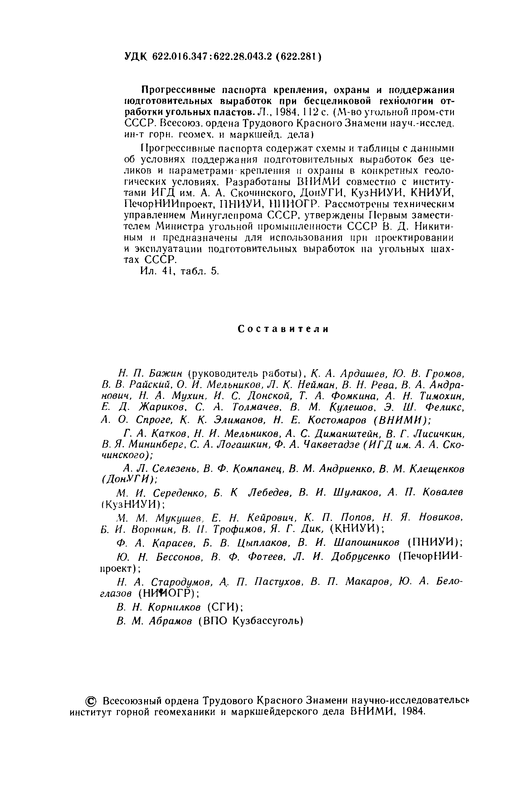 | Разработан: | ВНИМИ КНИУИ ПечорНИИпроект ДонУГИ ИГД им. А.А. Скочинского НИИОГР КузНИУИ ПНИУИ