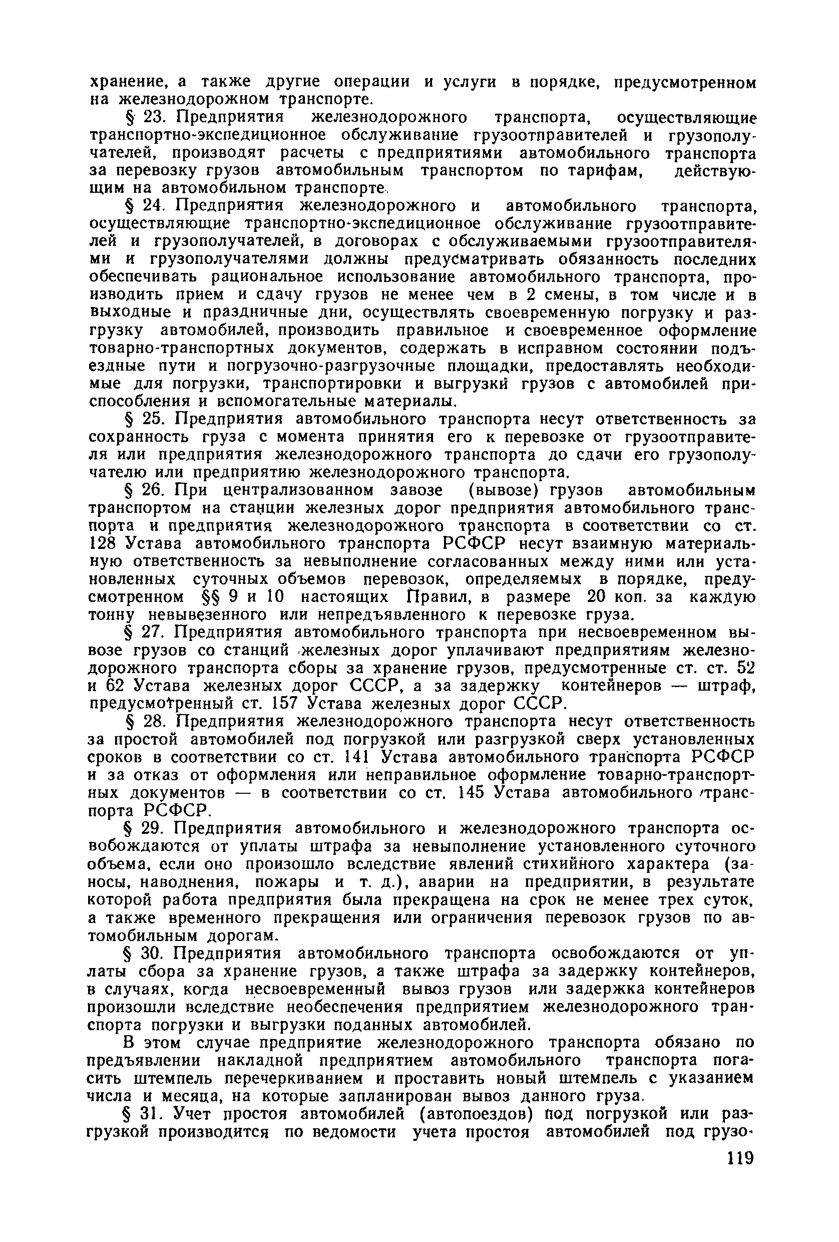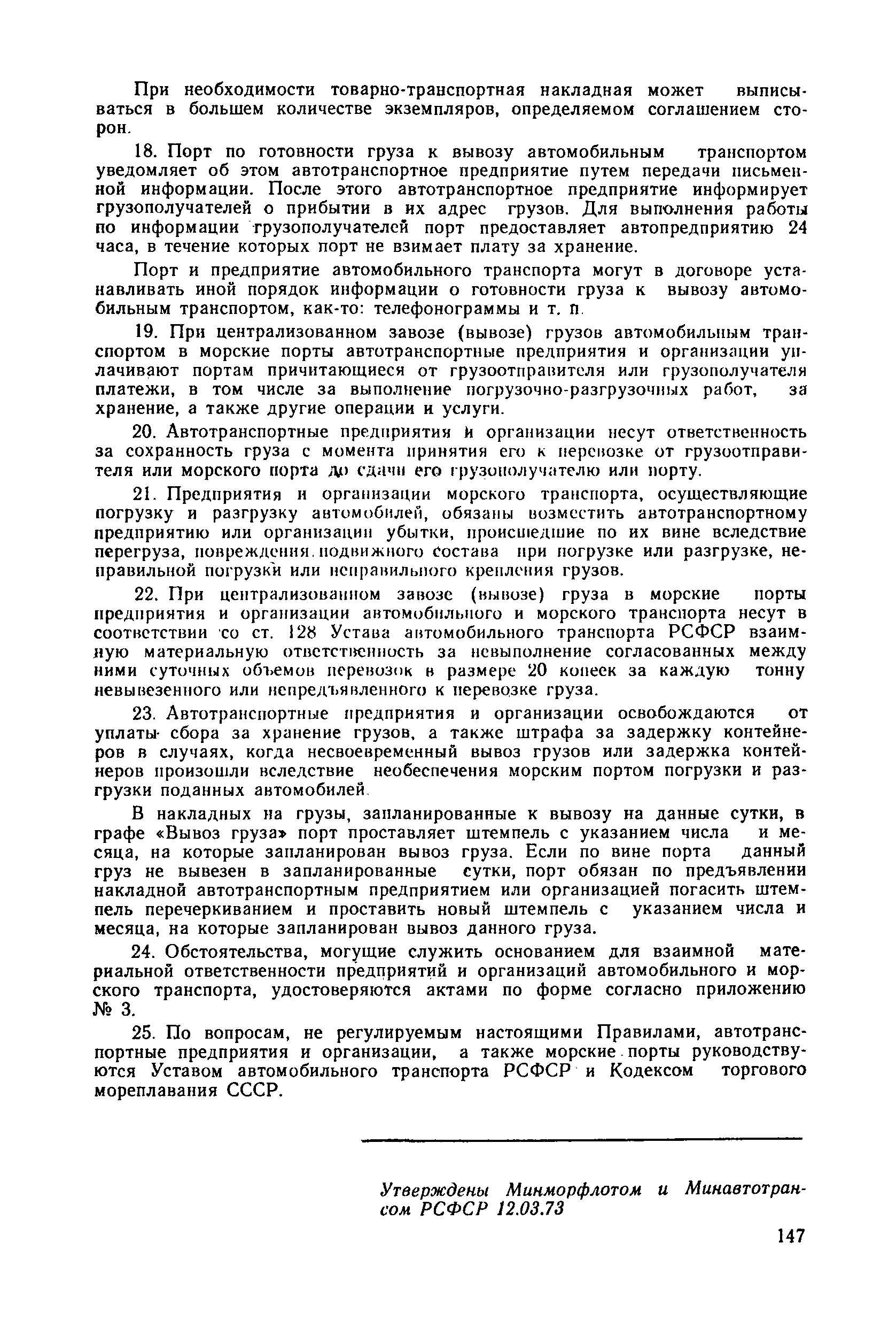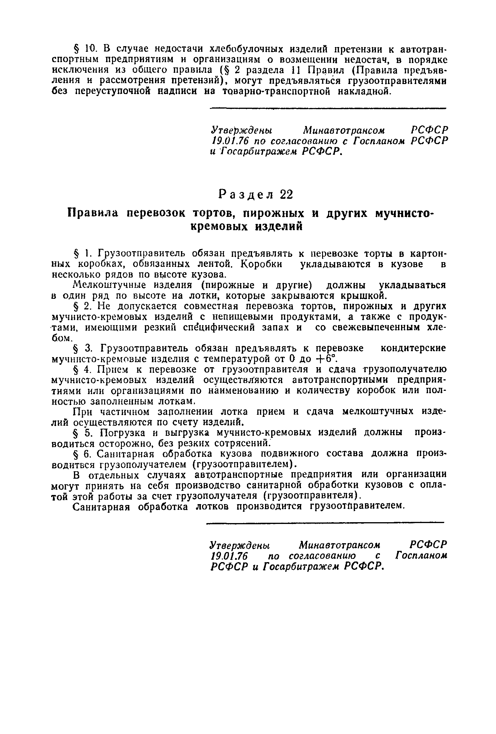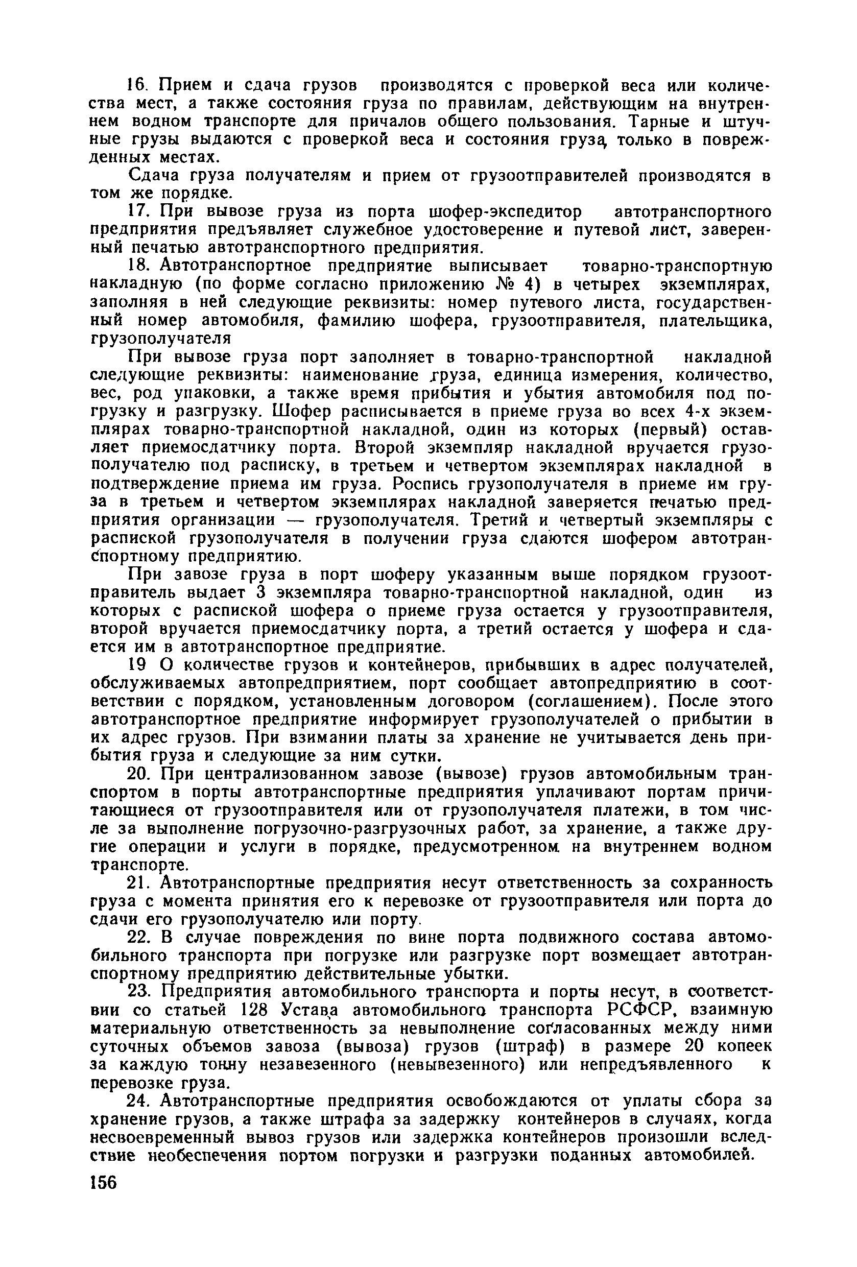 Правила перевозок грузов автомобильным транспортом| Статус: | справочные материалы, мп, тпр | | Название рус.: | Правила перевозок грузов автомобильным транспортом | | Дата добавления в базу: | 01.02.2020 | | Дата актуализации: | 01.01.2021 | | Оглавление: | Раздел 1 Правила заключения договоров на перевозку грузов автомобильным транспортом Раздел 2 Правила приема грузов к перевозке Раздел 3 Правила маркировки грузов Раздел 4 Плавира пломбирования и обандероливания грузов Раздел 5 Правила погрузки и разгрузки груза Раздел 6 Правила оформления перевозочных документов Раздел 7 Правила выдачи грузов Раздел 8 Правила переадресовки грузов Раздел 9 Расчеты за перевозки Раздел 10 Правила составления актов Раздел 11 Правила предъявления и рассмотрения претензий Раздел 12 Правила междугородных перевозок Раздел 13 Правила перевозок скоропортящихся грузов автомобильным транспортом в междугородном сообщении Раздел 14 Правила перевозок грузов в контейнерах автомобильным транспортом Раздел 15 Правила перевозок грузов пакетами Раздел 16 Правила перевозок шифера Раздел 17 Правила перевозок леса и пиломатериалов Раздел 18 Правила перевозок железобетонных изделий Раздел 19 Правила перевозок цемента Раздел 20 Правила перевозок молока и молочных продуктов Раздел 21 Правила перевозок хлебобулочных изделий Раздел 22 Правила перевозок тортов, пирожных и других мучнисто-кремовых изделий Раздел 23 Правила перевозок силосной массы Раздел 24 Правила перевозок зерна и сахарной свеклы Раздел 25 Правила перевозок животных и птиц Раздел 26 Правила перевозок грузов навалом Раздел 27 Правила транспортно-экспедиционного обслуживания предприятий, организаций и учреждений в РСФСР | | Утверждён: | Министерство автомобильного транспорта РСФСР