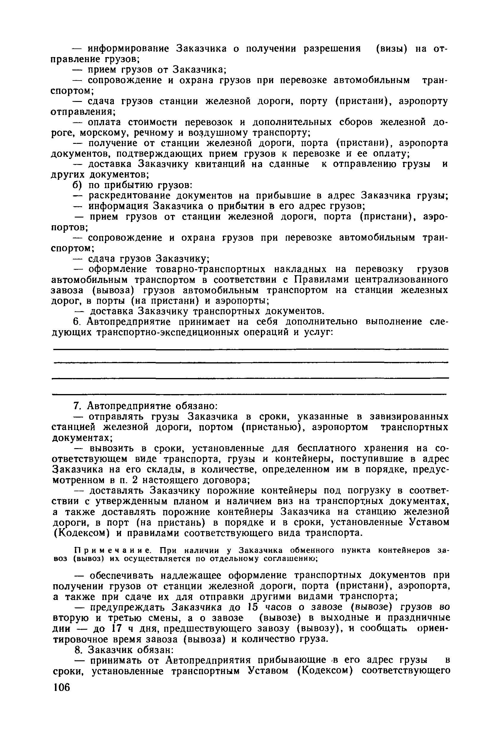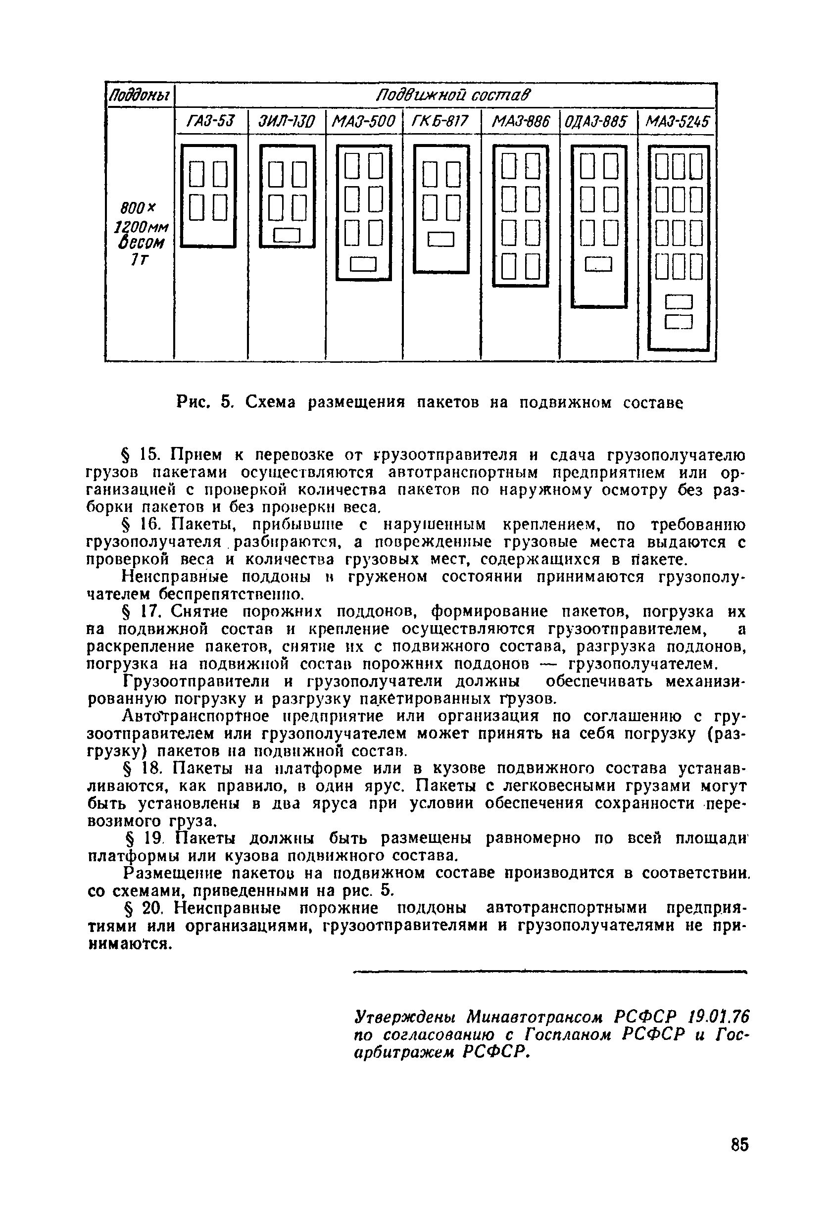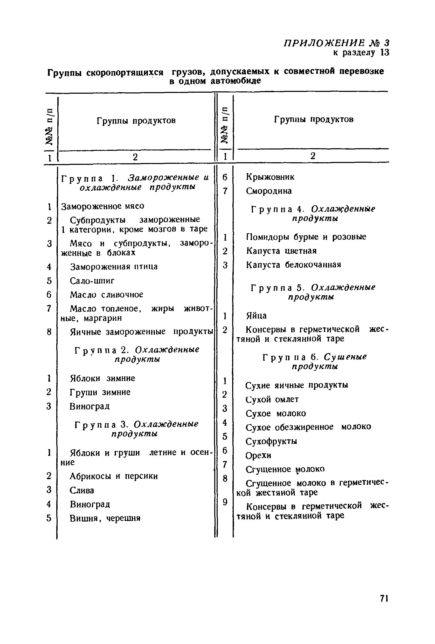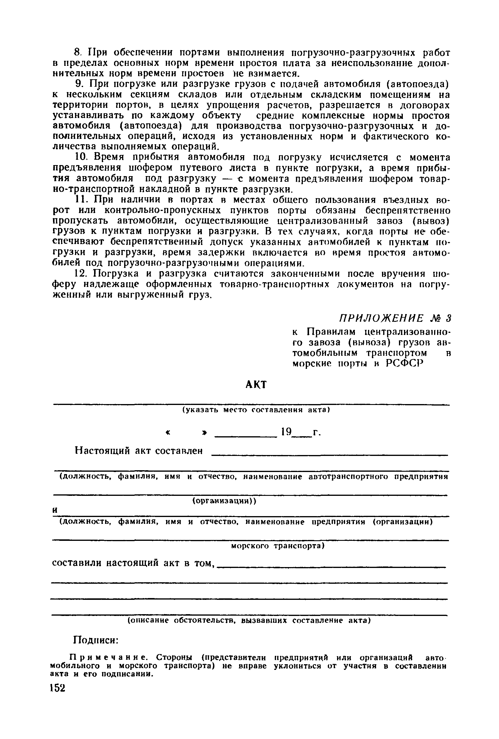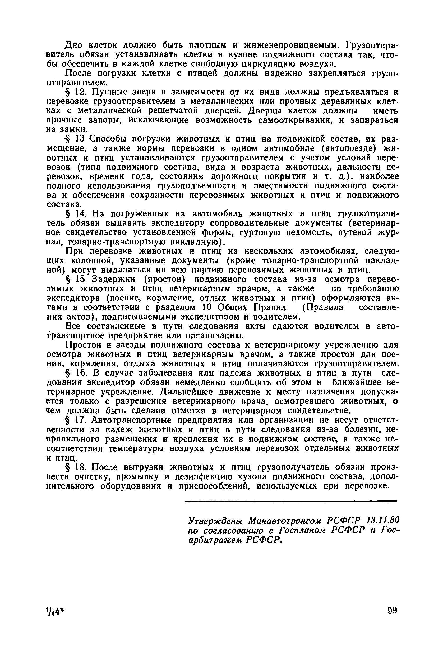 Правила перевозок грузов автомобильным транспортом| Статус: | справочные материалы, мп, тпр | | Название рус.: | Правила перевозок грузов автомобильным транспортом | | Дата добавления в базу: | 01.02.2020 | | Дата актуализации: | 01.01.2021 | | Оглавление: | Раздел 1 Правила заключения договоров на перевозку грузов автомобильным транспортом Раздел 2 Правила приема грузов к перевозке Раздел 3 Правила маркировки грузов Раздел 4 Плавира пломбирования и обандероливания грузов Раздел 5 Правила погрузки и разгрузки груза Раздел 6 Правила оформления перевозочных документов Раздел 7 Правила выдачи грузов Раздел 8 Правила переадресовки грузов Раздел 9 Расчеты за перевозки Раздел 10 Правила составления актов Раздел 11 Правила предъявления и рассмотрения претензий Раздел 12 Правила междугородных перевозок Раздел 13 Правила перевозок скоропортящихся грузов автомобильным транспортом в междугородном сообщении Раздел 14 Правила перевозок грузов в контейнерах автомобильным транспортом Раздел 15 Правила перевозок грузов пакетами Раздел 16 Правила перевозок шифера Раздел 17 Правила перевозок леса и пиломатериалов Раздел 18 Правила перевозок железобетонных изделий Раздел 19 Правила перевозок цемента Раздел 20 Правила перевозок молока и молочных продуктов Раздел 21 Правила перевозок хлебобулочных изделий Раздел 22 Правила перевозок тортов, пирожных и других мучнисто-кремовых изделий Раздел 23 Правила перевозок силосной массы Раздел 24 Правила перевозок зерна и сахарной свеклы Раздел 25 Правила перевозок животных и птиц Раздел 26 Правила перевозок грузов навалом Раздел 27 Правила транспортно-экспедиционного обслуживания предприятий, организаций и учреждений в РСФСР | | Утверждён: | Министерство автомобильного транспорта РСФСР