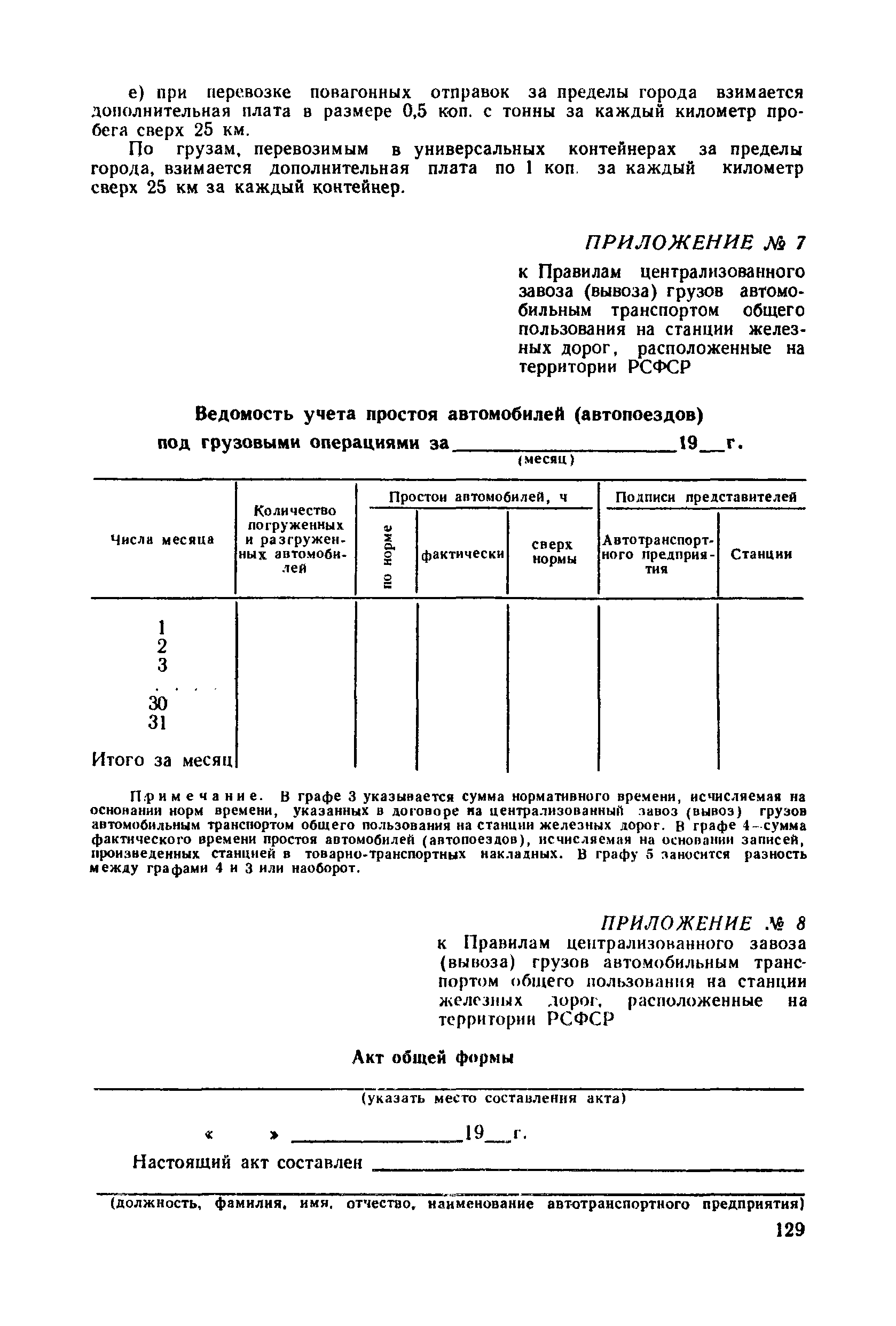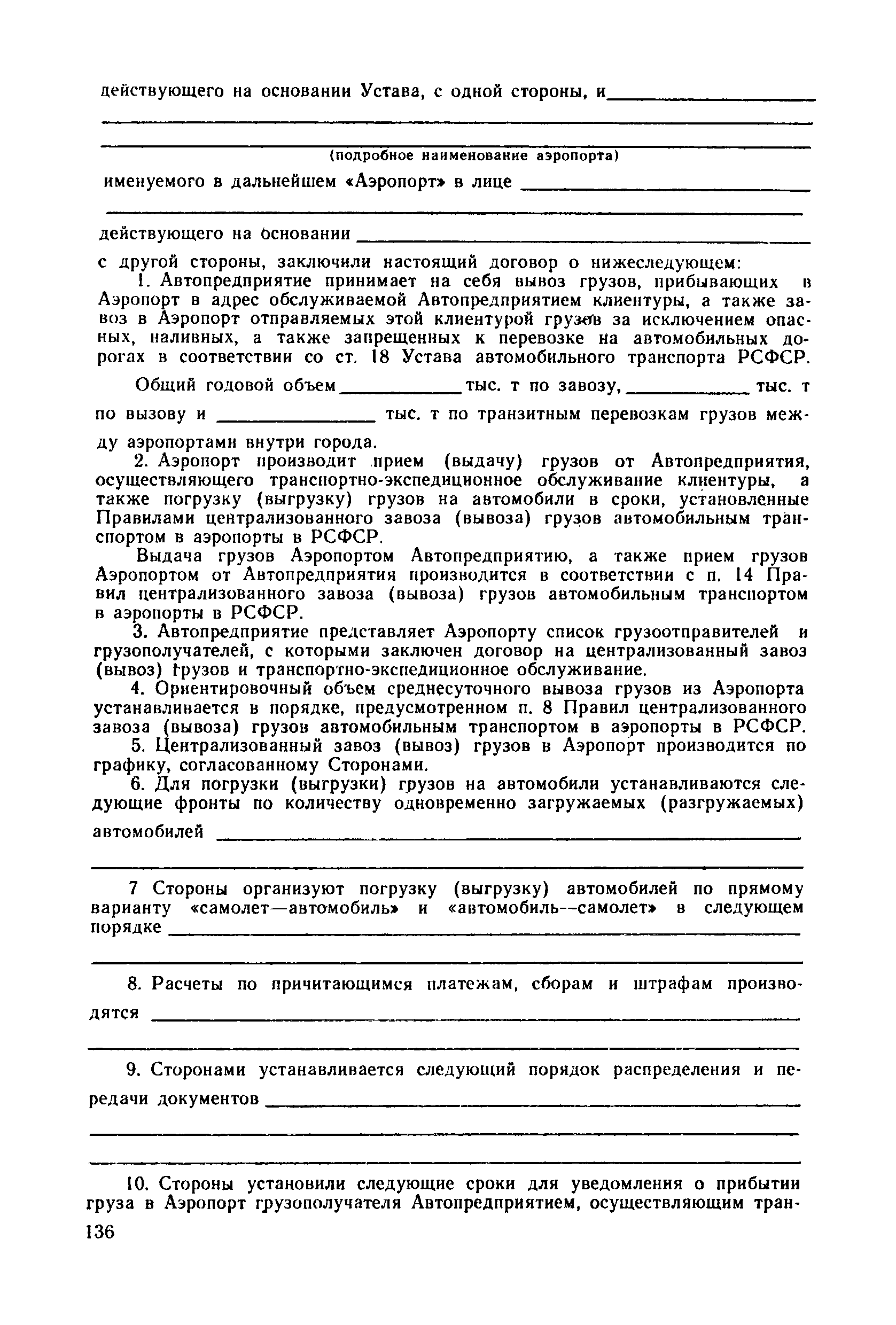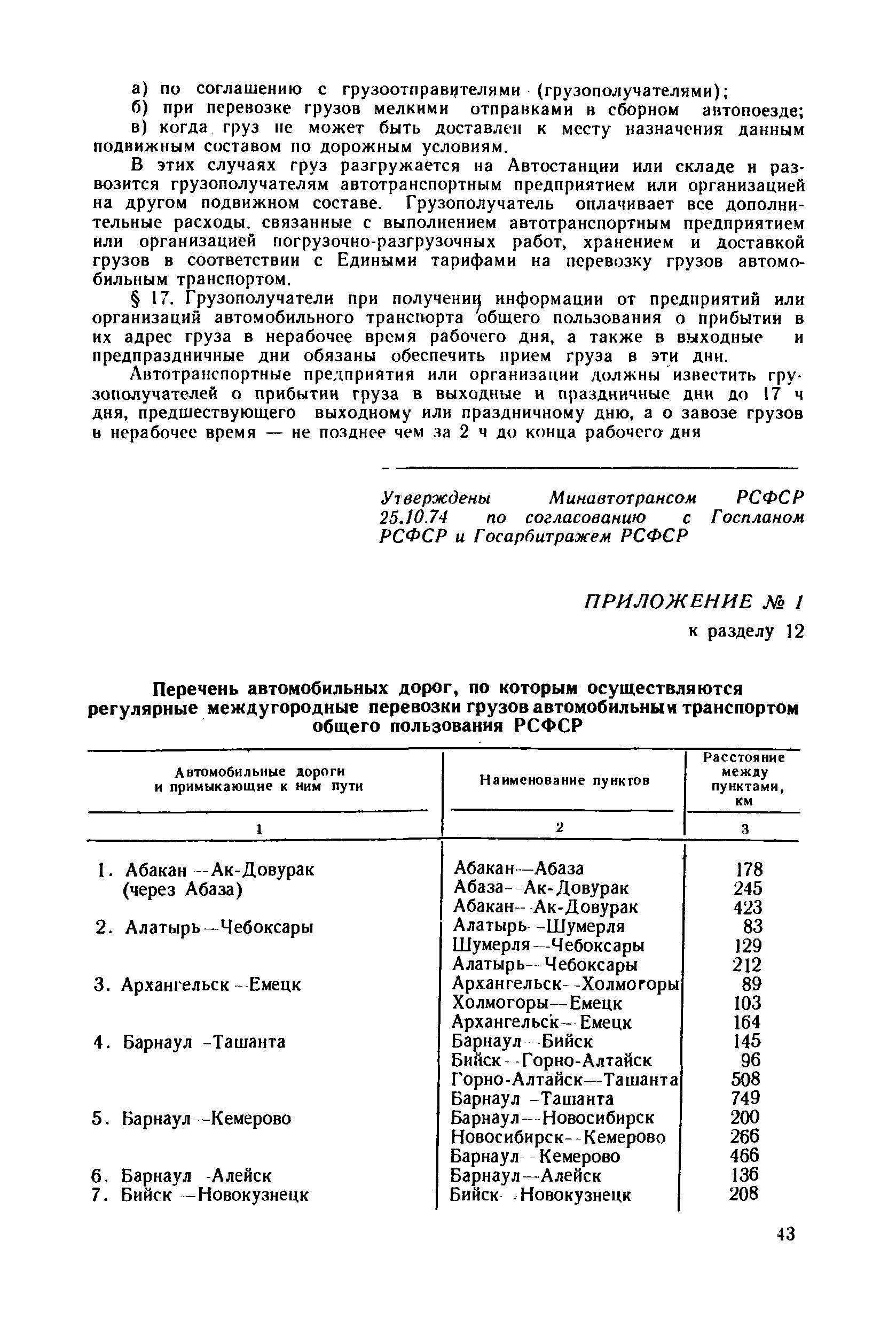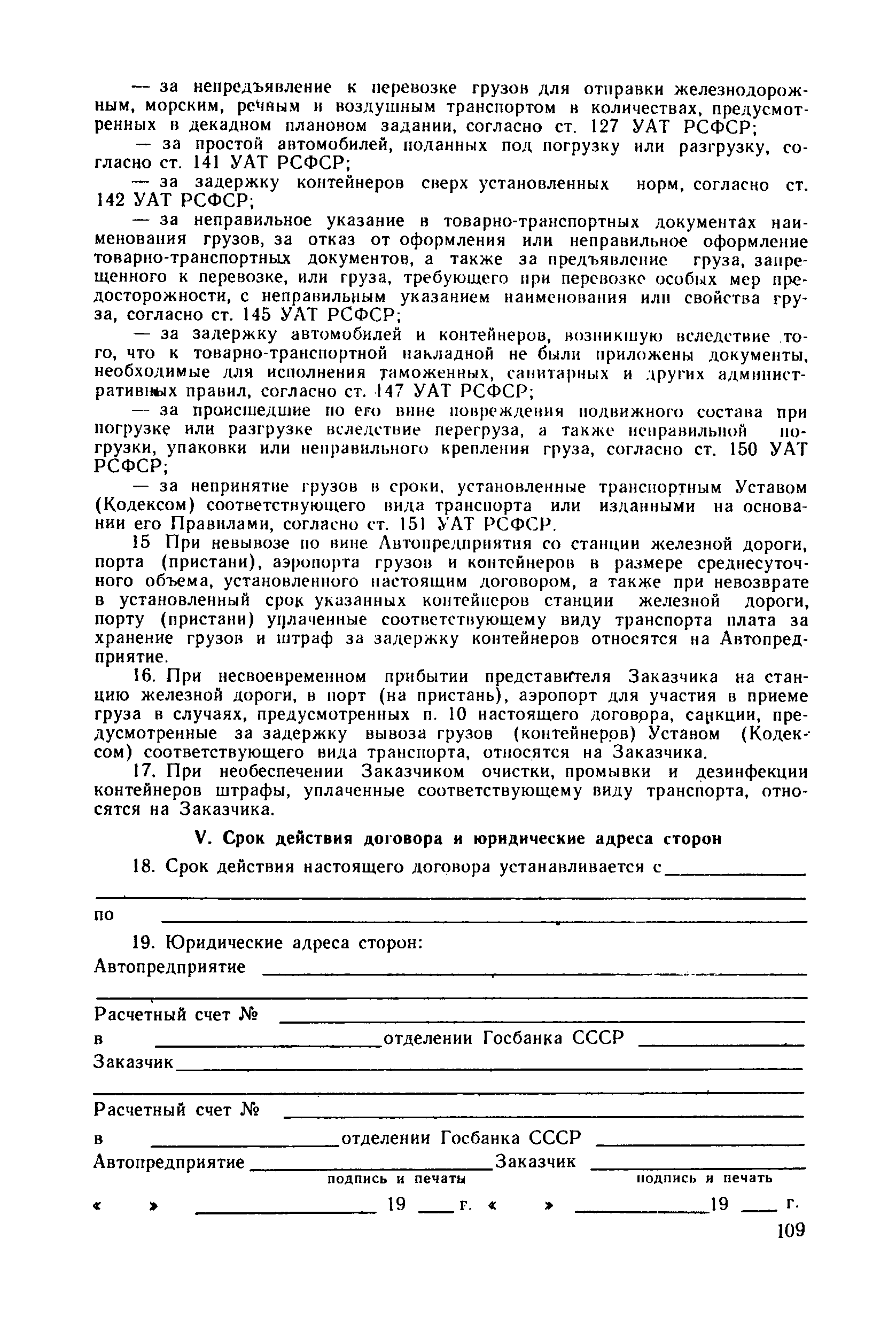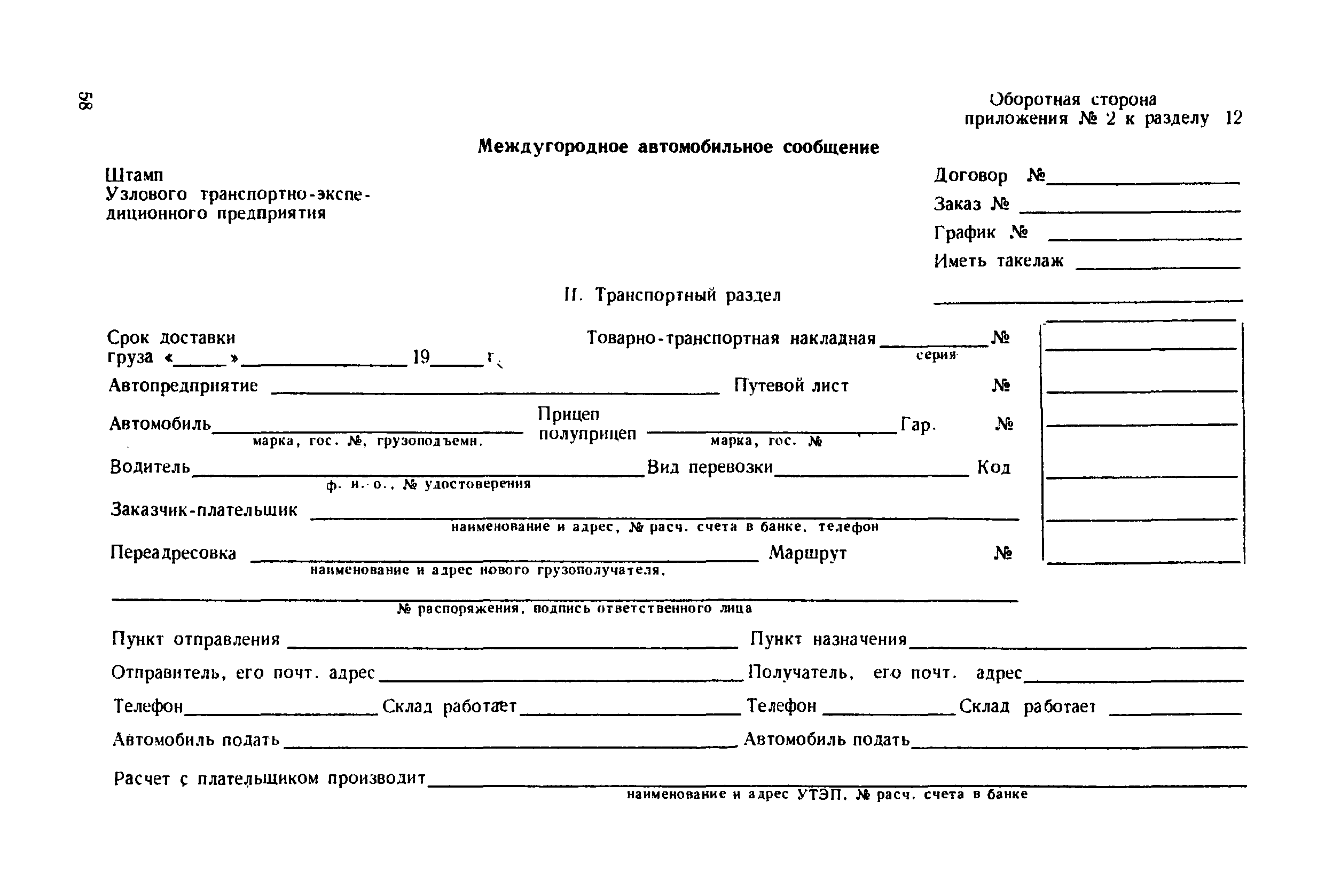 Правила перевозок грузов автомобильным транспортом| Статус: | справочные материалы, мп, тпр | | Название рус.: | Правила перевозок грузов автомобильным транспортом | | Дата добавления в базу: | 01.02.2020 | | Дата актуализации: | 01.01.2021 | | Оглавление: | Раздел 1 Правила заключения договоров на перевозку грузов автомобильным транспортом Раздел 2 Правила приема грузов к перевозке Раздел 3 Правила маркировки грузов Раздел 4 Плавира пломбирования и обандероливания грузов Раздел 5 Правила погрузки и разгрузки груза Раздел 6 Правила оформления перевозочных документов Раздел 7 Правила выдачи грузов Раздел 8 Правила переадресовки грузов Раздел 9 Расчеты за перевозки Раздел 10 Правила составления актов Раздел 11 Правила предъявления и рассмотрения претензий Раздел 12 Правила междугородных перевозок Раздел 13 Правила перевозок скоропортящихся грузов автомобильным транспортом в междугородном сообщении Раздел 14 Правила перевозок грузов в контейнерах автомобильным транспортом Раздел 15 Правила перевозок грузов пакетами Раздел 16 Правила перевозок шифера Раздел 17 Правила перевозок леса и пиломатериалов Раздел 18 Правила перевозок железобетонных изделий Раздел 19 Правила перевозок цемента Раздел 20 Правила перевозок молока и молочных продуктов Раздел 21 Правила перевозок хлебобулочных изделий Раздел 22 Правила перевозок тортов, пирожных и других мучнисто-кремовых изделий Раздел 23 Правила перевозок силосной массы Раздел 24 Правила перевозок зерна и сахарной свеклы Раздел 25 Правила перевозок животных и птиц Раздел 26 Правила перевозок грузов навалом Раздел 27 Правила транспортно-экспедиционного обслуживания предприятий, организаций и учреждений в РСФСР | | Утверждён: | Министерство автомобильного транспорта РСФСР