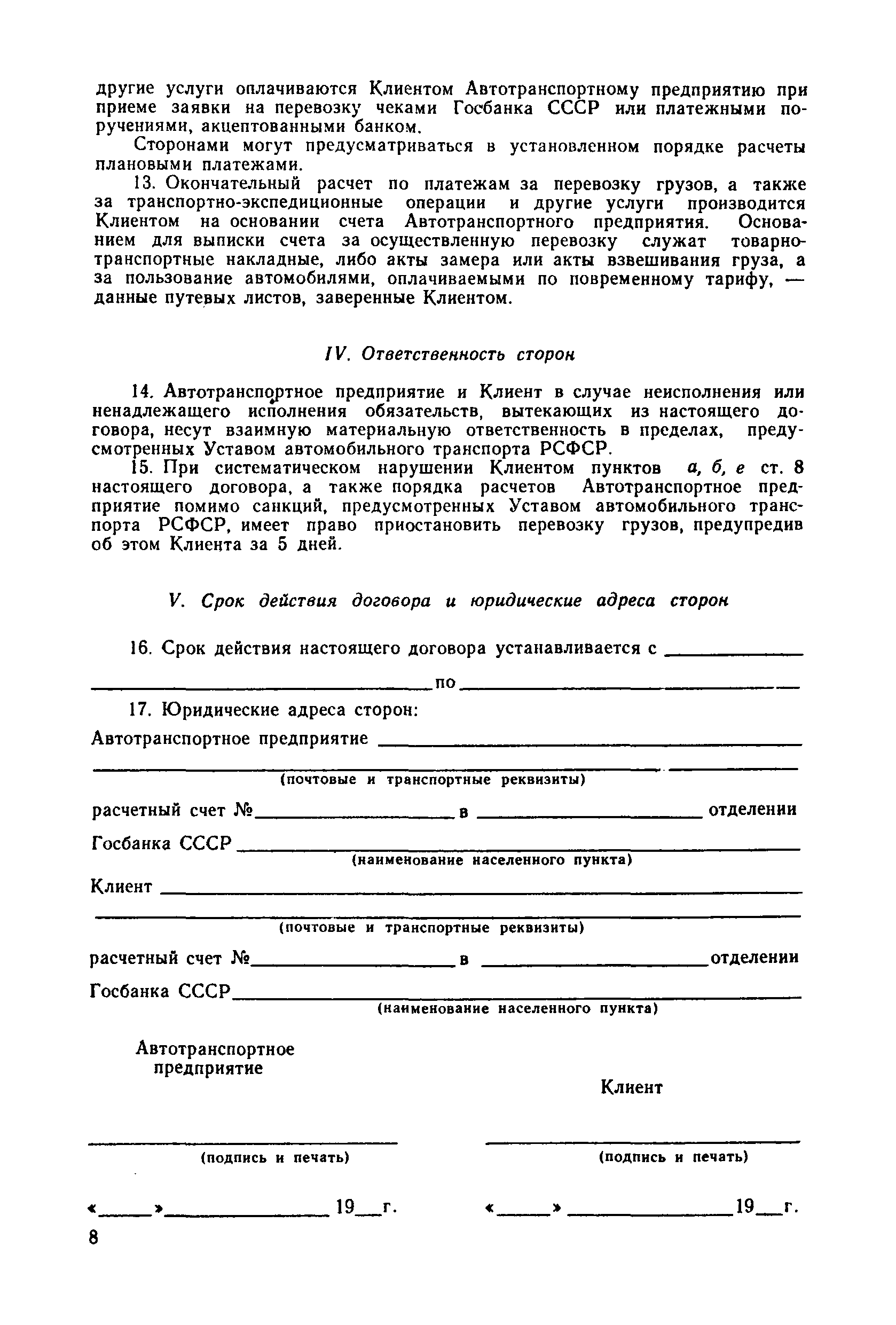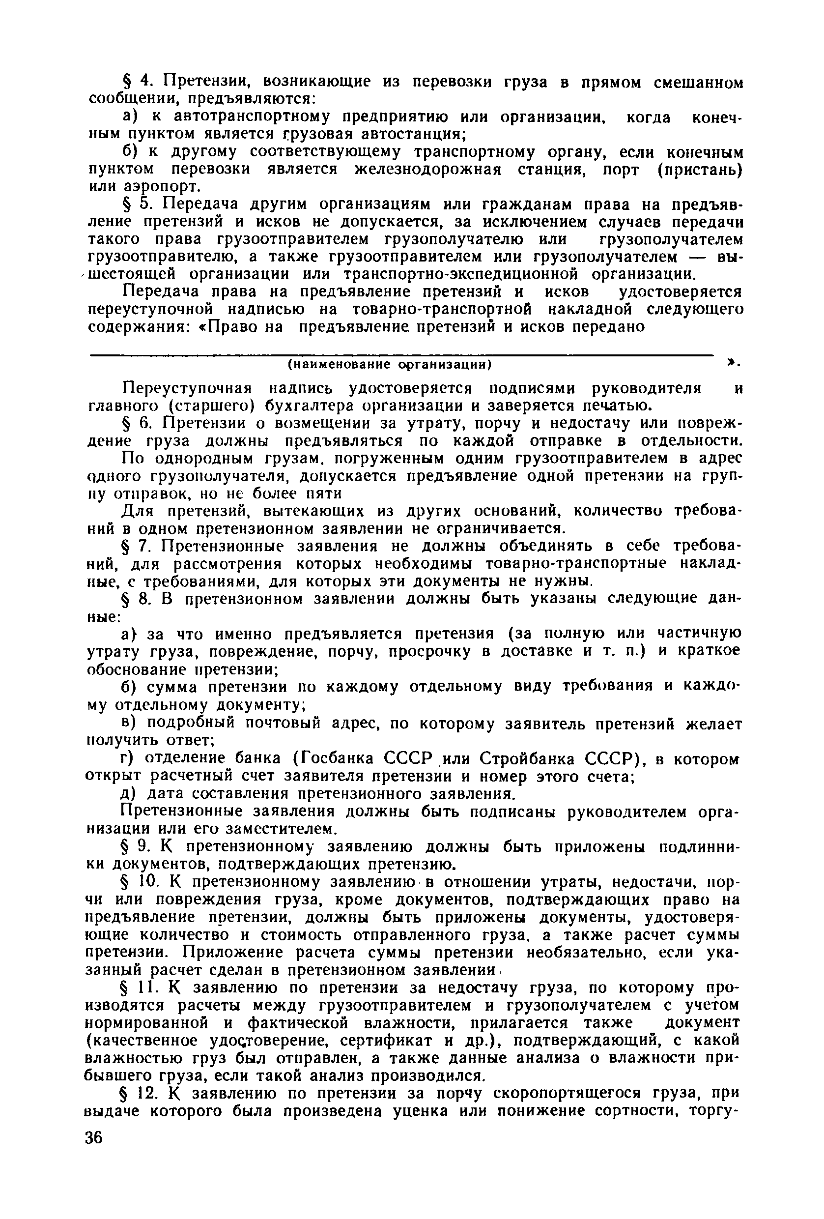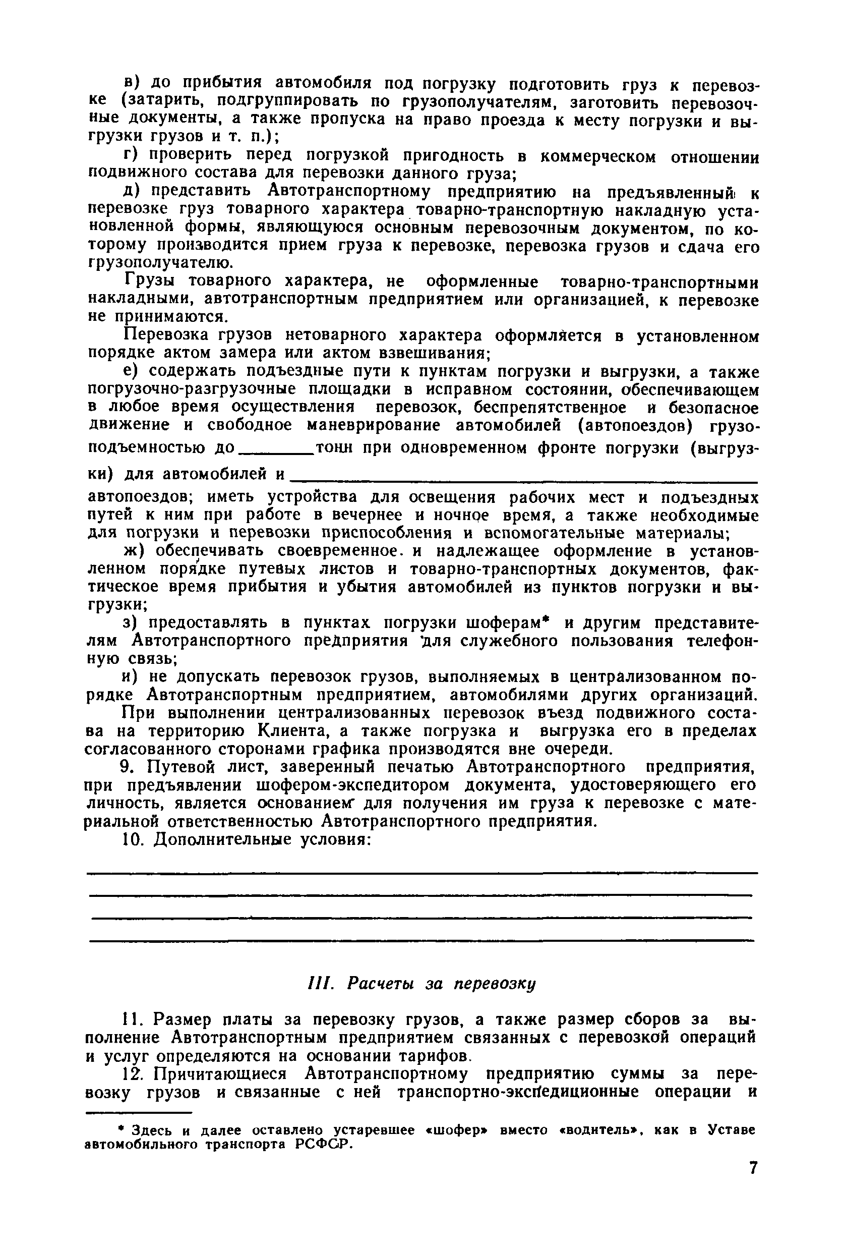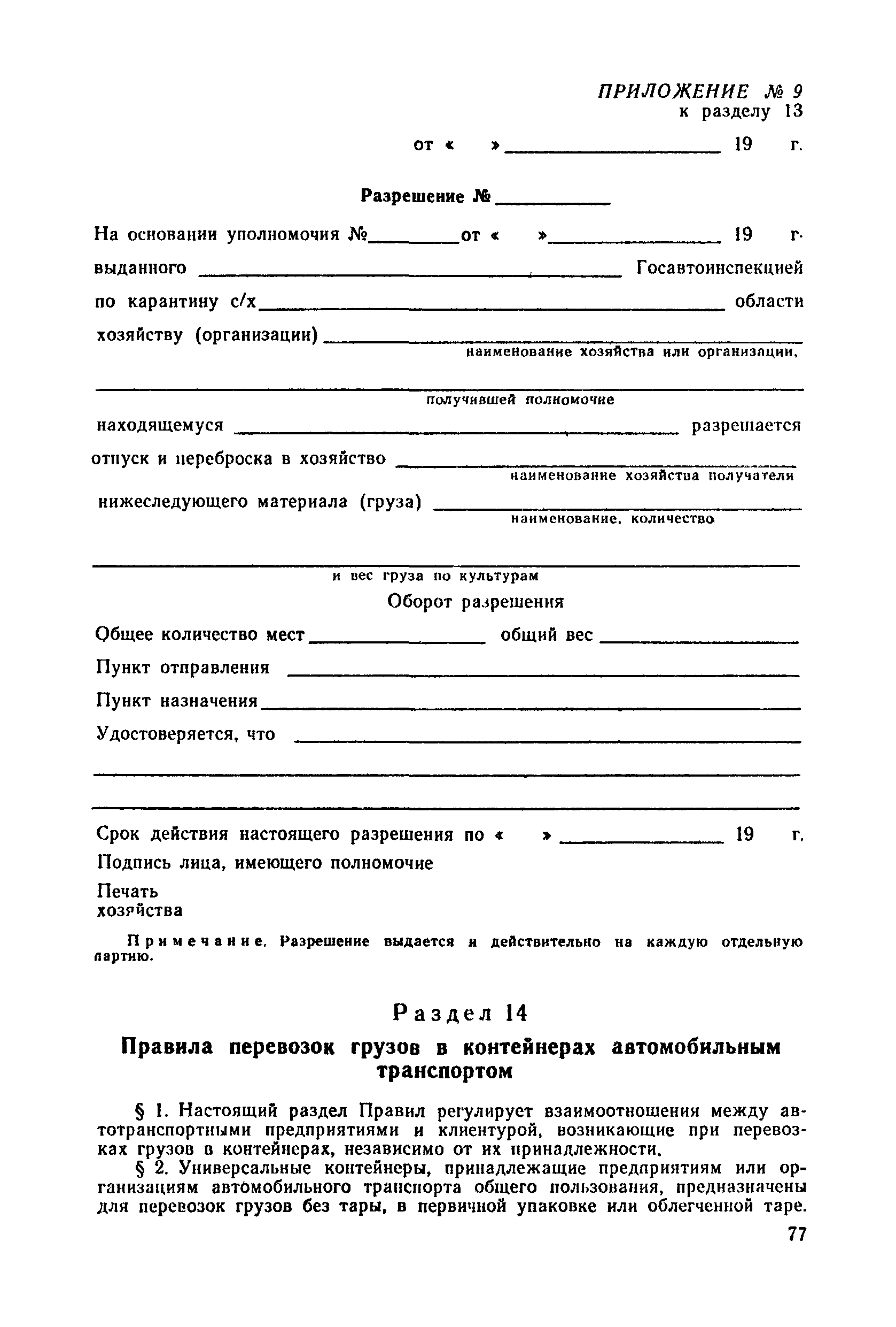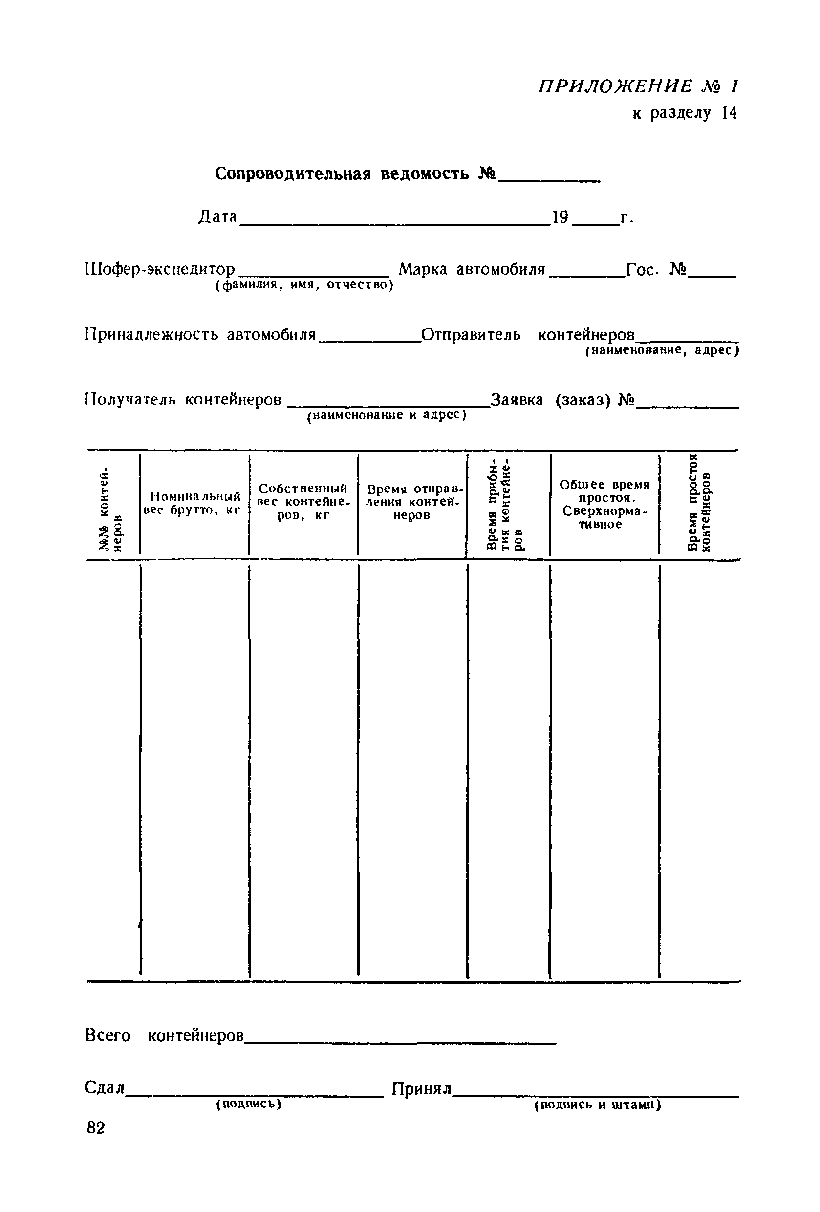 Правила перевозок грузов автомобильным транспортом| Статус: | справочные материалы, мп, тпр | | Название рус.: | Правила перевозок грузов автомобильным транспортом | | Дата добавления в базу: | 01.02.2020 | | Дата актуализации: | 01.01.2021 | | Оглавление: | Раздел 1 Правила заключения договоров на перевозку грузов автомобильным транспортом Раздел 2 Правила приема грузов к перевозке Раздел 3 Правила маркировки грузов Раздел 4 Плавира пломбирования и обандероливания грузов Раздел 5 Правила погрузки и разгрузки груза Раздел 6 Правила оформления перевозочных документов Раздел 7 Правила выдачи грузов Раздел 8 Правила переадресовки грузов Раздел 9 Расчеты за перевозки Раздел 10 Правила составления актов Раздел 11 Правила предъявления и рассмотрения претензий Раздел 12 Правила междугородных перевозок Раздел 13 Правила перевозок скоропортящихся грузов автомобильным транспортом в междугородном сообщении Раздел 14 Правила перевозок грузов в контейнерах автомобильным транспортом Раздел 15 Правила перевозок грузов пакетами Раздел 16 Правила перевозок шифера Раздел 17 Правила перевозок леса и пиломатериалов Раздел 18 Правила перевозок железобетонных изделий Раздел 19 Правила перевозок цемента Раздел 20 Правила перевозок молока и молочных продуктов Раздел 21 Правила перевозок хлебобулочных изделий Раздел 22 Правила перевозок тортов, пирожных и других мучнисто-кремовых изделий Раздел 23 Правила перевозок силосной массы Раздел 24 Правила перевозок зерна и сахарной свеклы Раздел 25 Правила перевозок животных и птиц Раздел 26 Правила перевозок грузов навалом Раздел 27 Правила транспортно-экспедиционного обслуживания предприятий, организаций и учреждений в РСФСР | | Утверждён: | Министерство автомобильного транспорта РСФСР