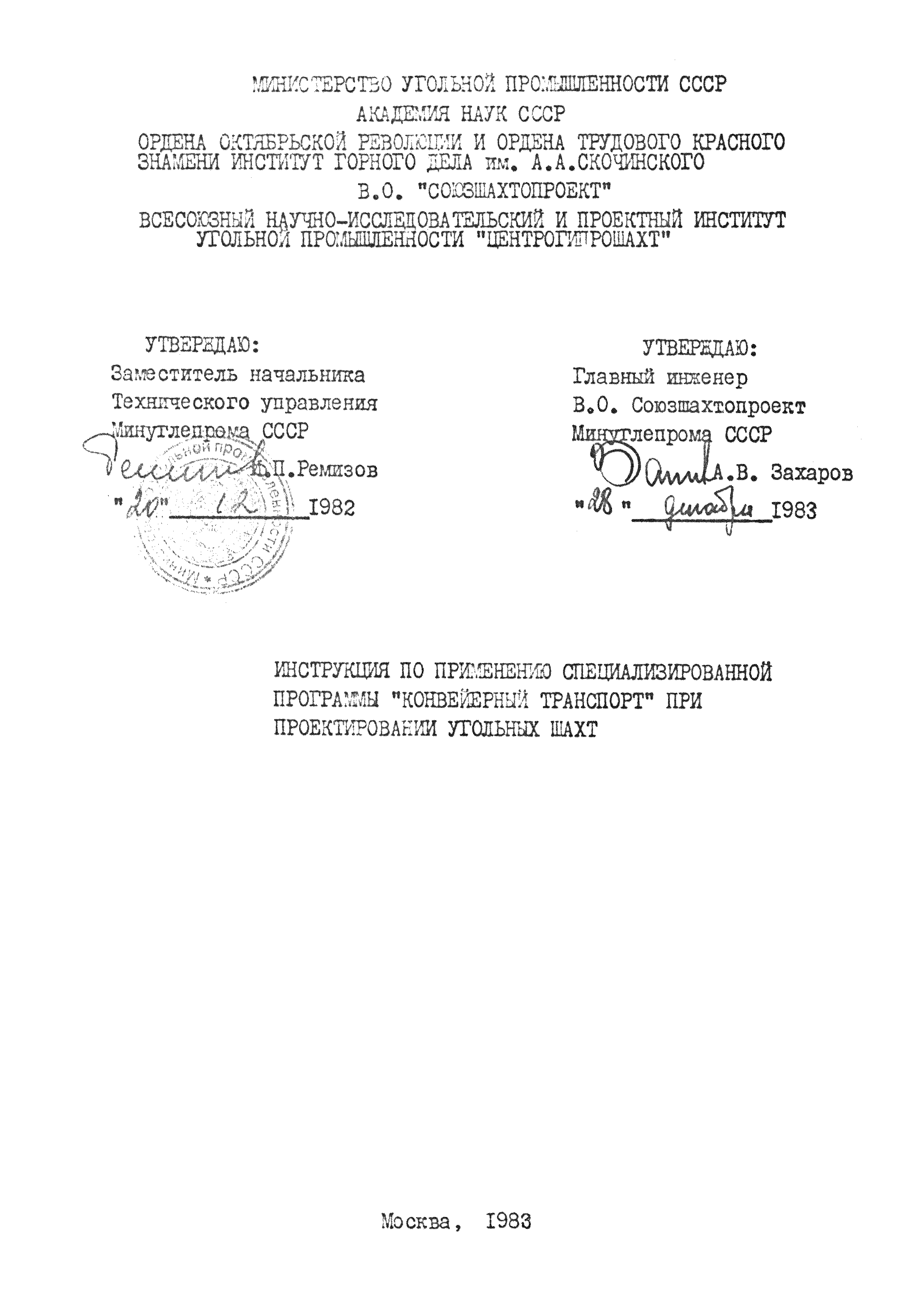 | Утверждён: | 20.12.1982 Министерство угольной промышленности СССР (USSR Ministry of the Coal Industry ) 28.12.1983 Союзшахтопроект