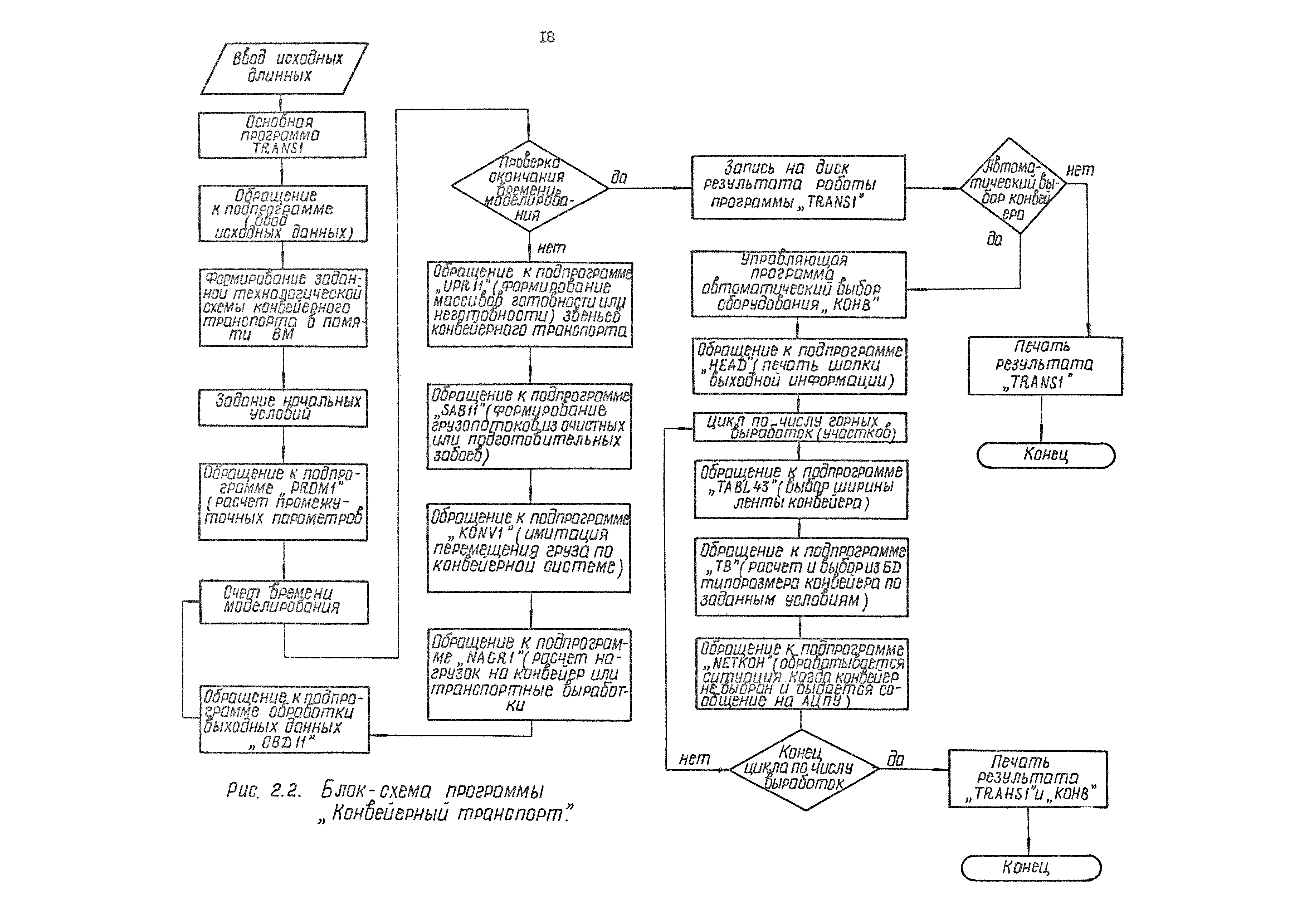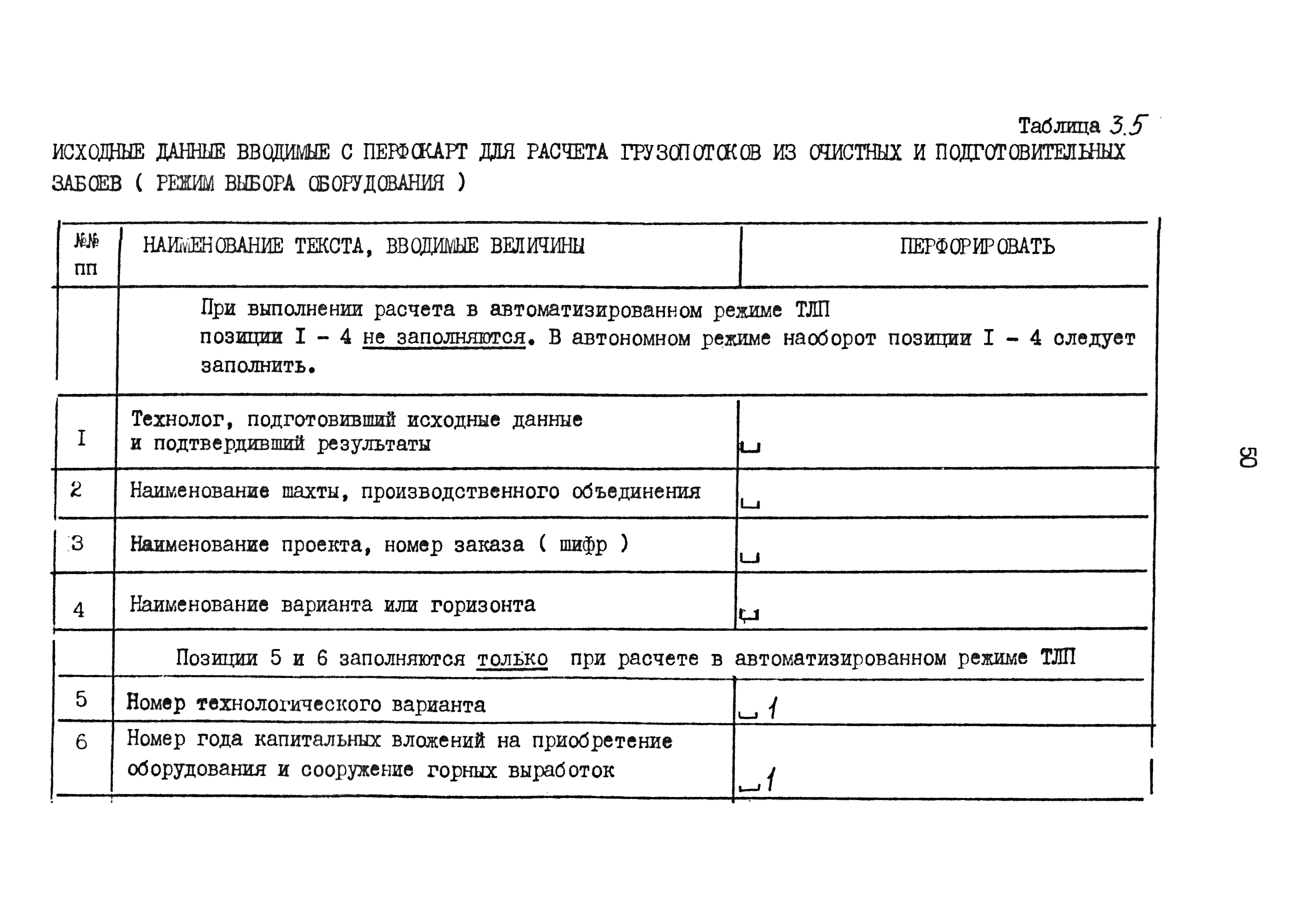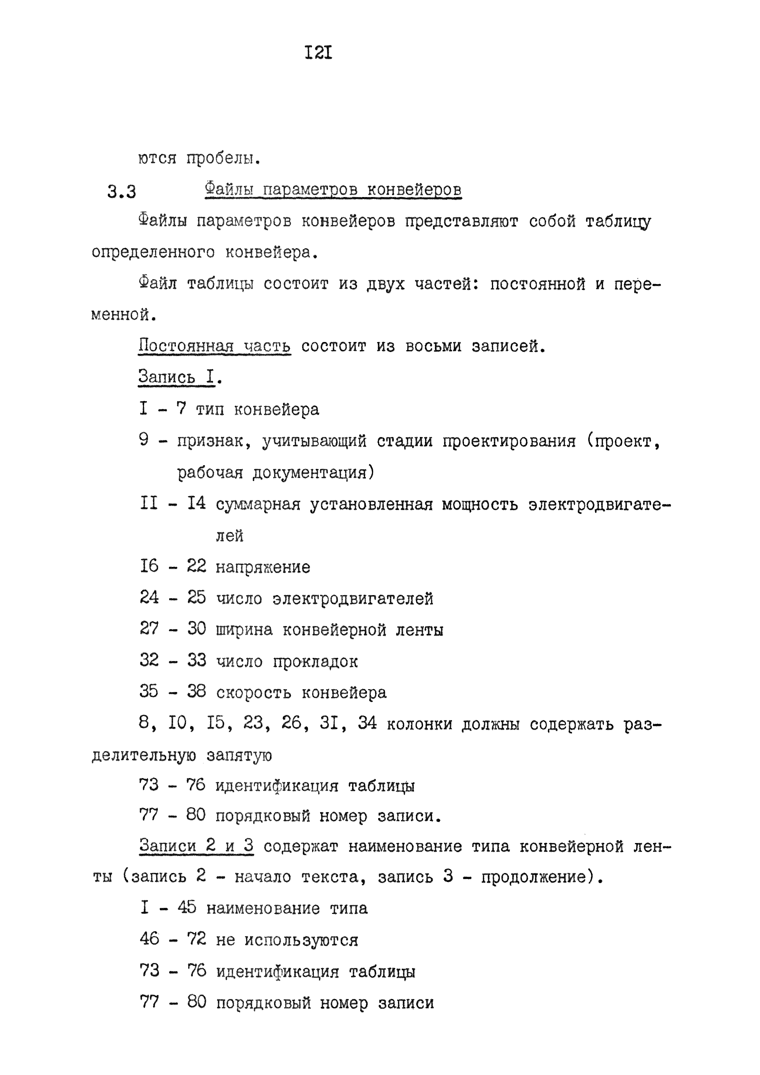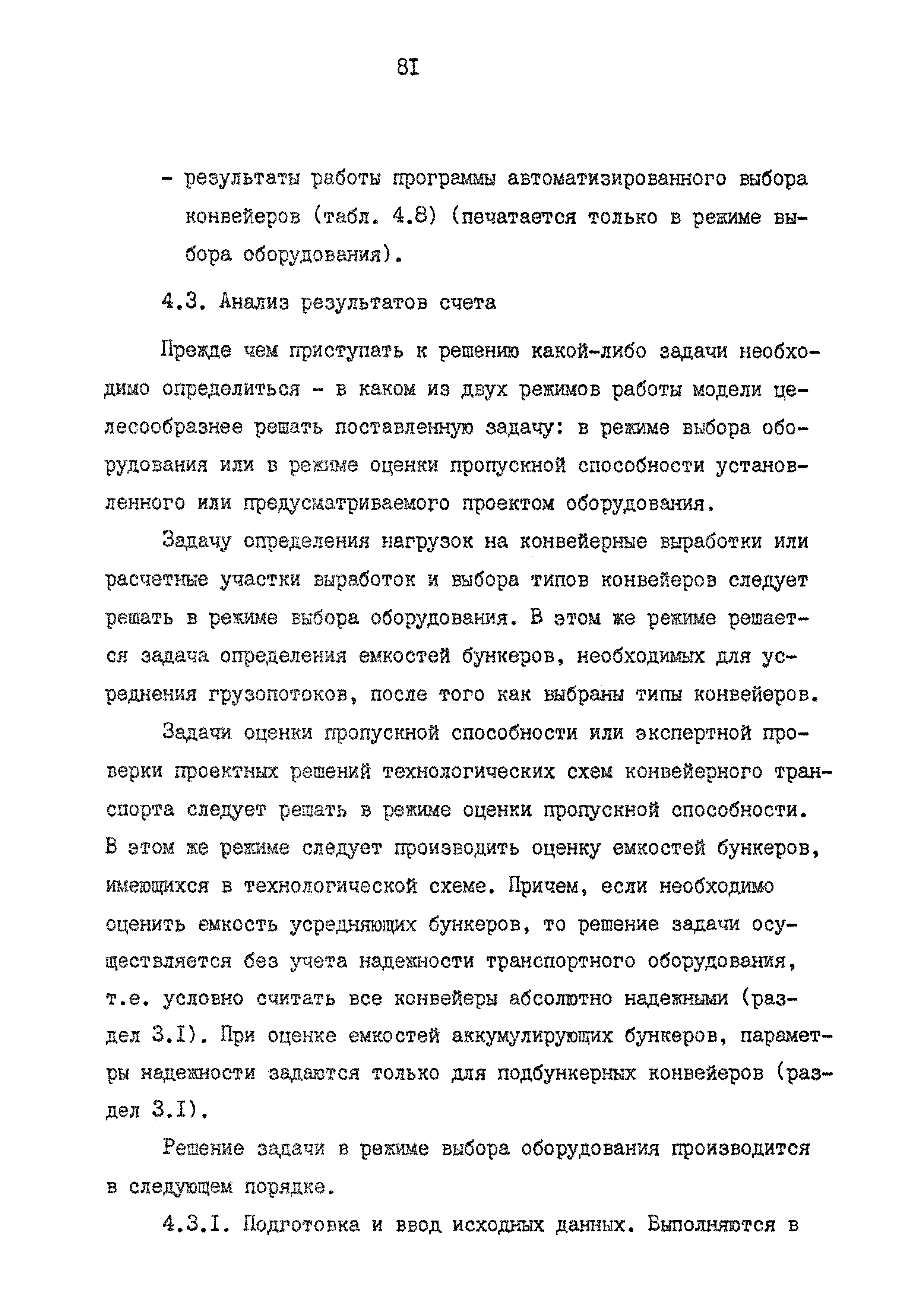 | Оглавление: | 1. Введение 2. Назначение и краткая характеристика специализированной программы "Конвейерный транспорт" 2.1. Назначение программы "Конвейерный транспорт" 2.2. Общая структура и основные принципы построения программы "Конвейерный транспорт" 2.3. Последовательность решения задач при помощи программы "Конвейерный транспорт" 3. Инструкция по подготовке исходных данных 3.1. Инструкция по заполнению входной документации в режиме выбора оборудования 3.2. Контрольный пример 3.3. Инструкция по заполнению входной документации в режиме оценки пропускной способности или экспертной оценки проектных решений 3.4. Контрольный пример 3.5. Инструкция по перфорации 4. Инструкция по эксплуатации программы 4.1. Прогон контрольных примеров 4.2. Результат счета 4.3. Анализ результата счета Приложение 1. Таблицы параметрического рада конвейеров Приложение 2. Тяговые характеристики параметрического рада конвейеров Приложение 3. Информационная база данных (БД) для автоматического выбора на ЭВМ типоразмеров и технологических параметров конвейеров 3.1 Структура БД 3.2 Файлы указателей 3.3 Файлы параметров конвейеров 3.4 Корректировка базы данных с дисплея |