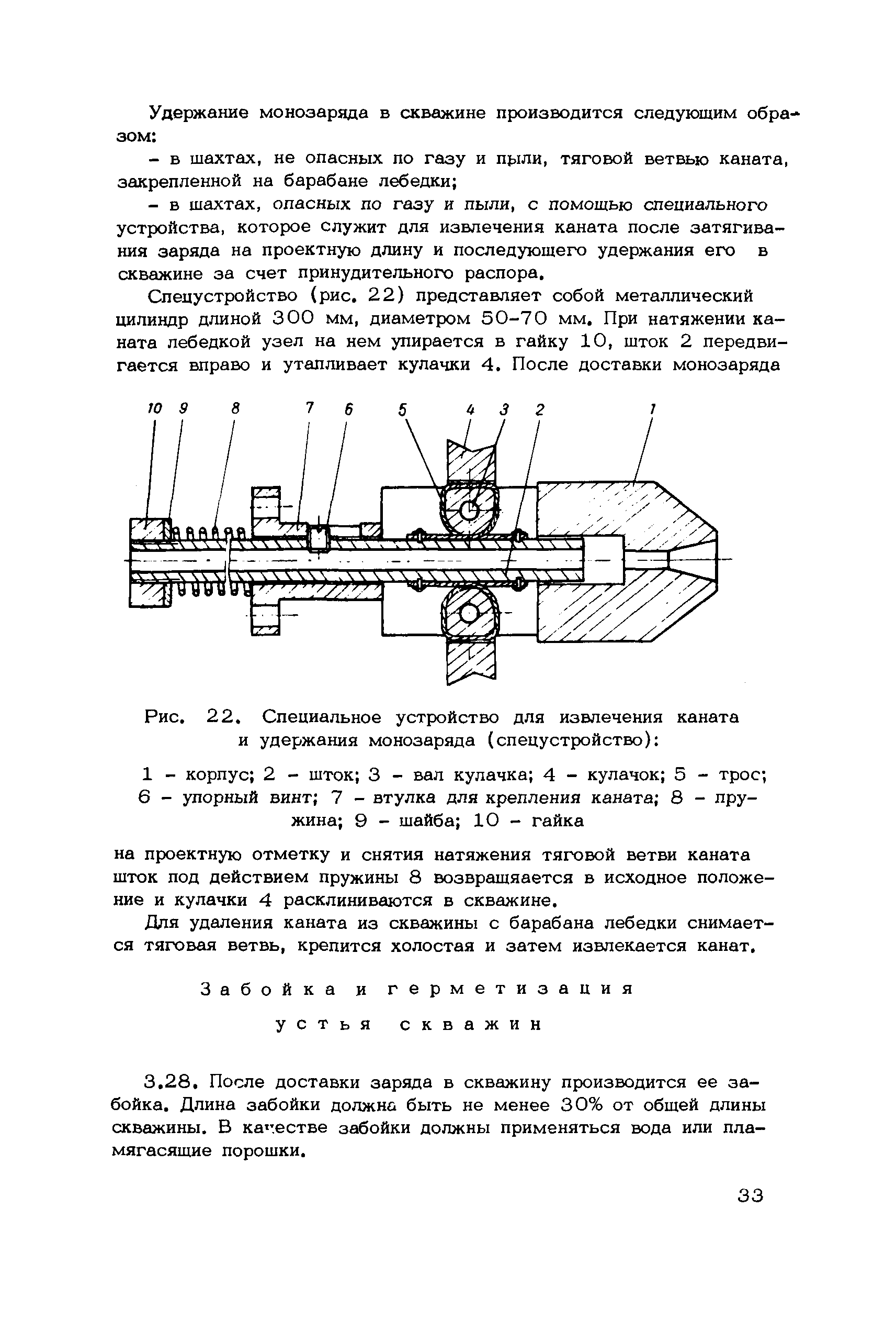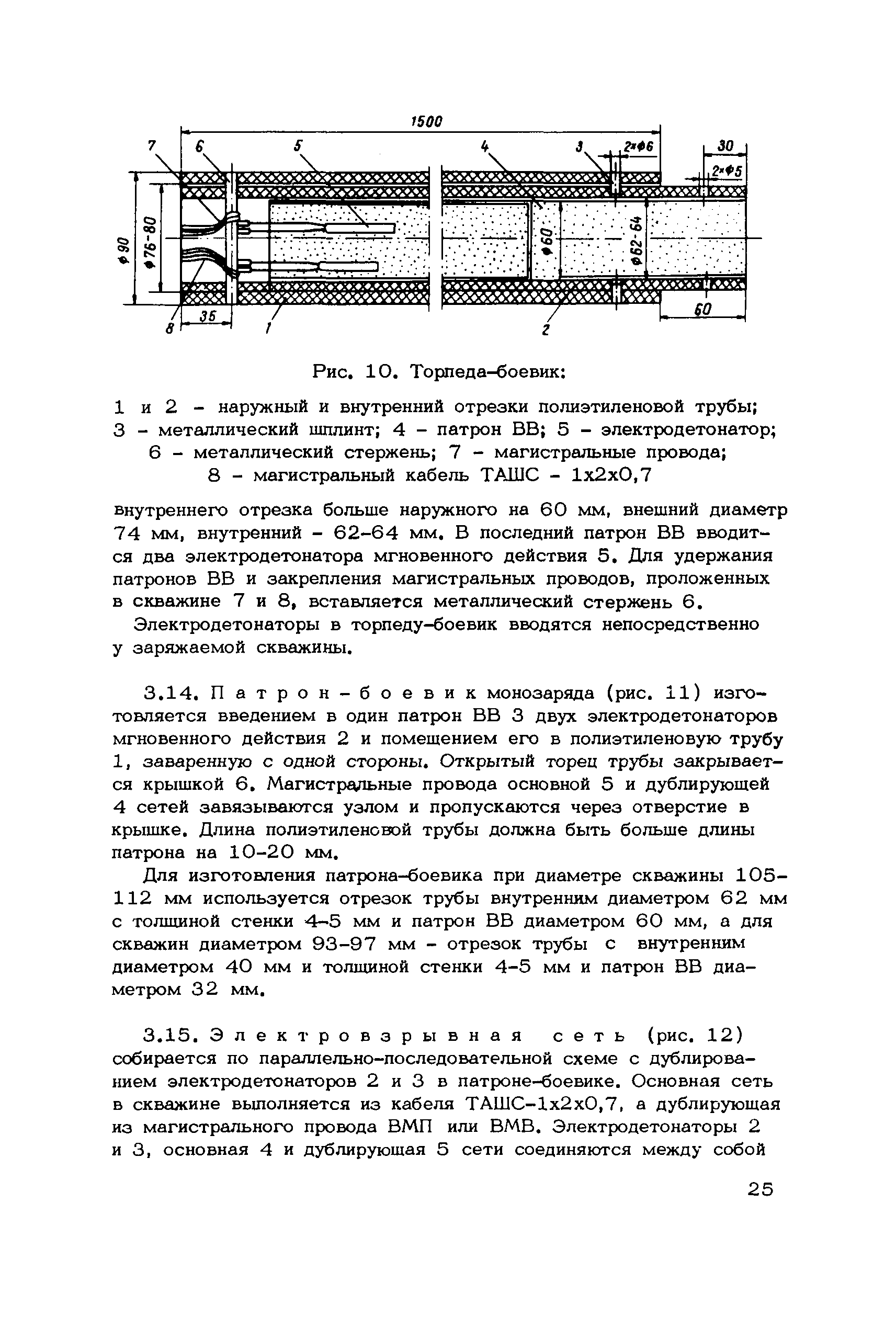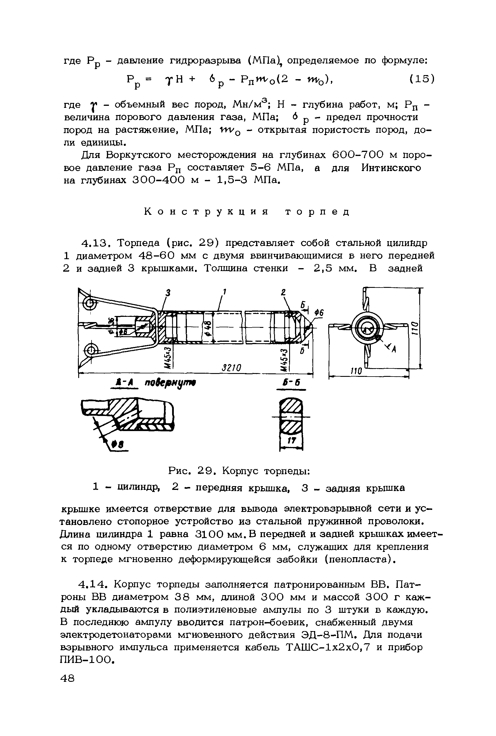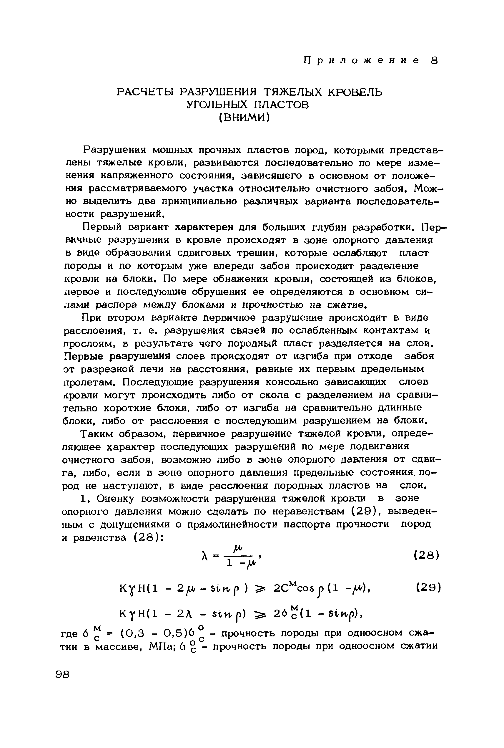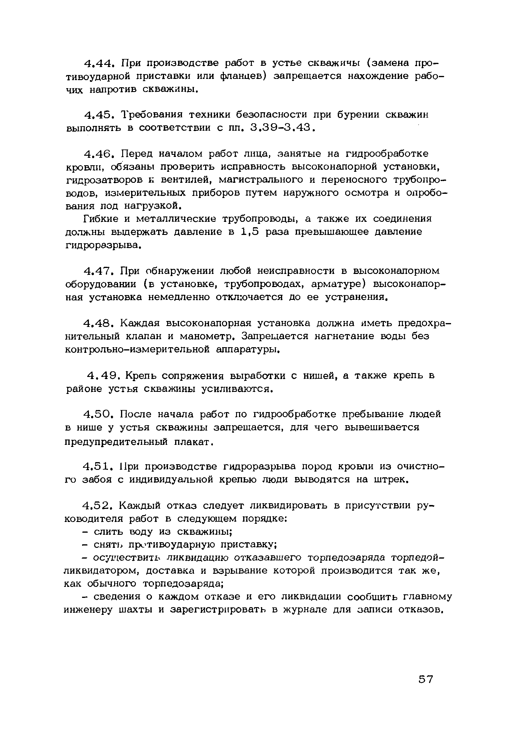 | Оглавление: | Введение 1. Общие положения 2. Сущность и выбор способа разупрочнения Сущность способов разупрочнения Схемы расположения скважин Выбор способа разупрочнения 3. Передовое торпедирование Параметры заложения скважин и зарядов при разупрочнении кровли на выемочных участках Параметры заложения скважин и зарядов для охраны подготовительных выработок при бесцеликовой технологии Конструкция торпед, торпедозарядов и монозарядов Заряжание скважин Забойка и герметизация устья скважин Мероприятия по обеспечению безопасности работ Требования техники безопасности при выполнении работ по бурению скважин Требования техники безопасности при выполнении работ по торпедированию Проектно-техническая документация 4. Гидромикроторпедирование Основные виды работ Параметры заложения скважин Масса заряда и расположение торпед в скважине Размеры зон гидрообработки Параметры нагнетания жидкости в скважины Конструкция торпед Заряжание скважин Герметизация скважин Технологическая схема работ по гидромикроторпедированию Мероприятия по обеспечению безопасности работ Проектно-техническая документация 5. Принудительная первичная посадка тяжелой кровли взрыванием скважинных зарядов Параметры заложения скважин и зарядов Бурение скважин Заряжание скважин Забойка скважин Мероприятия по обеспечению безопасности работ Проектно-техническая документация 6. Принудительное обрушение кровли взрыванием шпуровых зарядов Параметры заложения шпуров Технология работ Мероприятия по обеспечению безопасности работ Проектно-техническая документация 7. Взрывогидрообработка Параметры заложения скважин и зарядов Мероприятия по обеспечению безопасности работ Проектно-техническая документация Приложение 1. Расчет радиуса зоны трещинообразования Приложение 2. Контроль направленности бурения скважин Приложение 3. Требования к изученности состава, строения и механических свойств тяжелых кровель Приложение 4. Перечень и характеристики оборудования для бурения и герметизации скважин Приложение 5. Журнал по нагнетанию жидкости Приложение 6. Журнал по взрыванию скважинных зарядов Приложение 7. Журнал по учету первых и последующих аварийных обрушений тяжелой кровли Приложение 8. Расчеты разрушения тяжелых кровель угольных пластов Приложение 9. Оценка нагрузочных свойств тяжелой кровли |