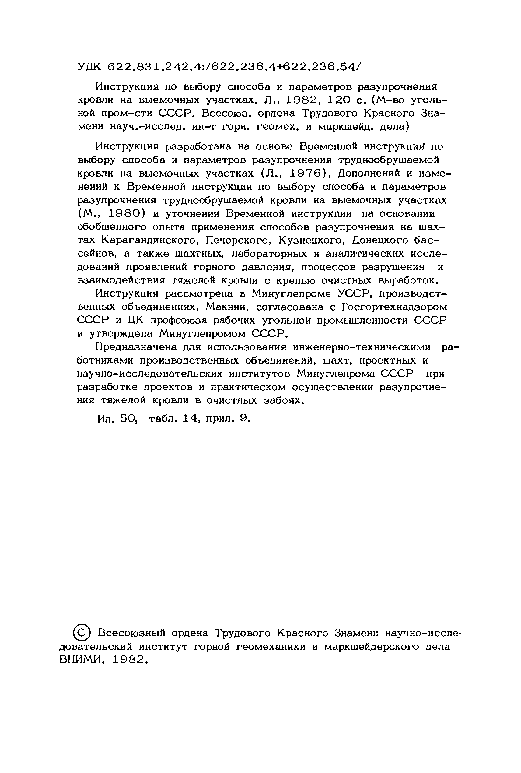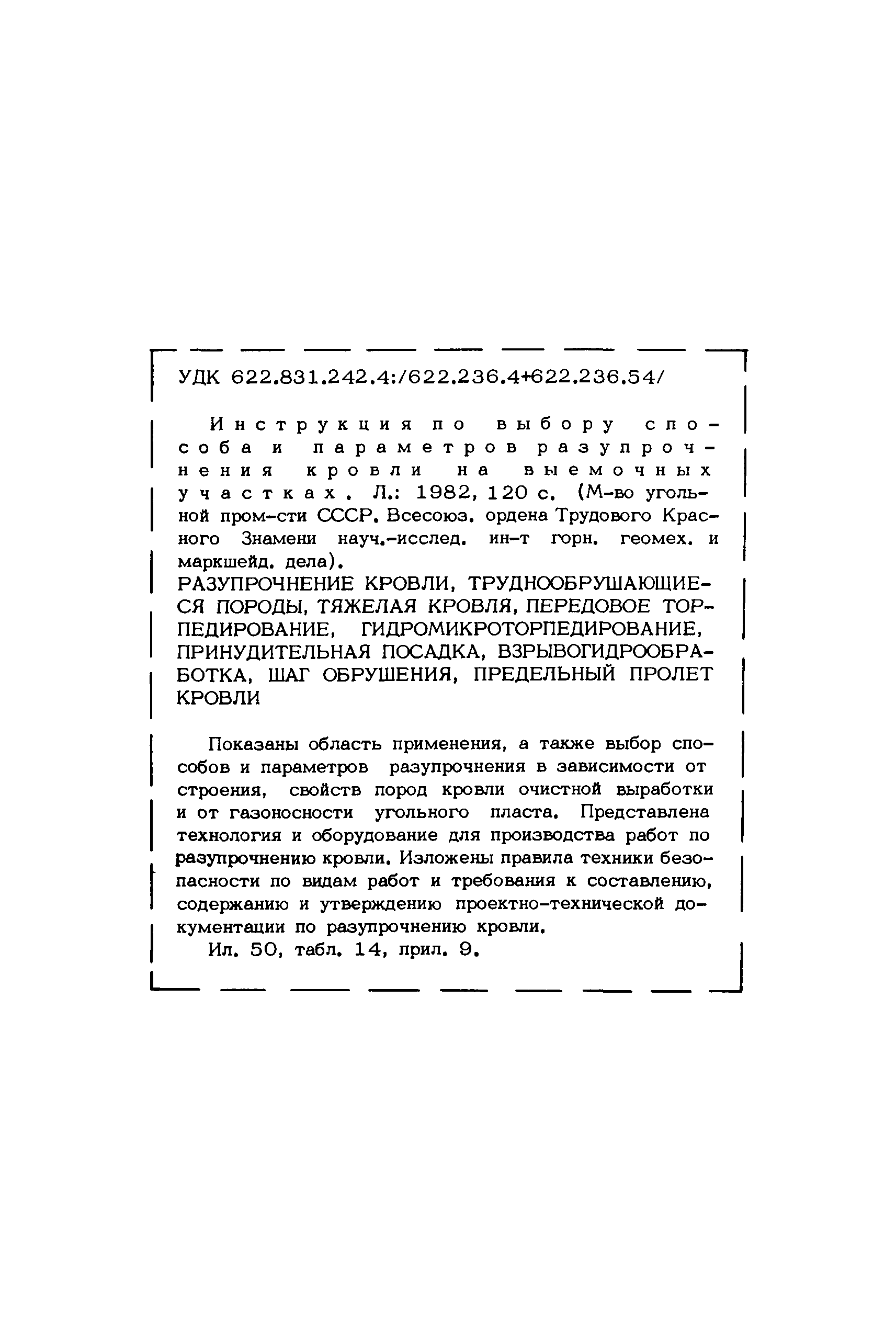 | Название рус.: | Инструкция по выбору способа и параметров разупрочнения кровли на выемочных участках |