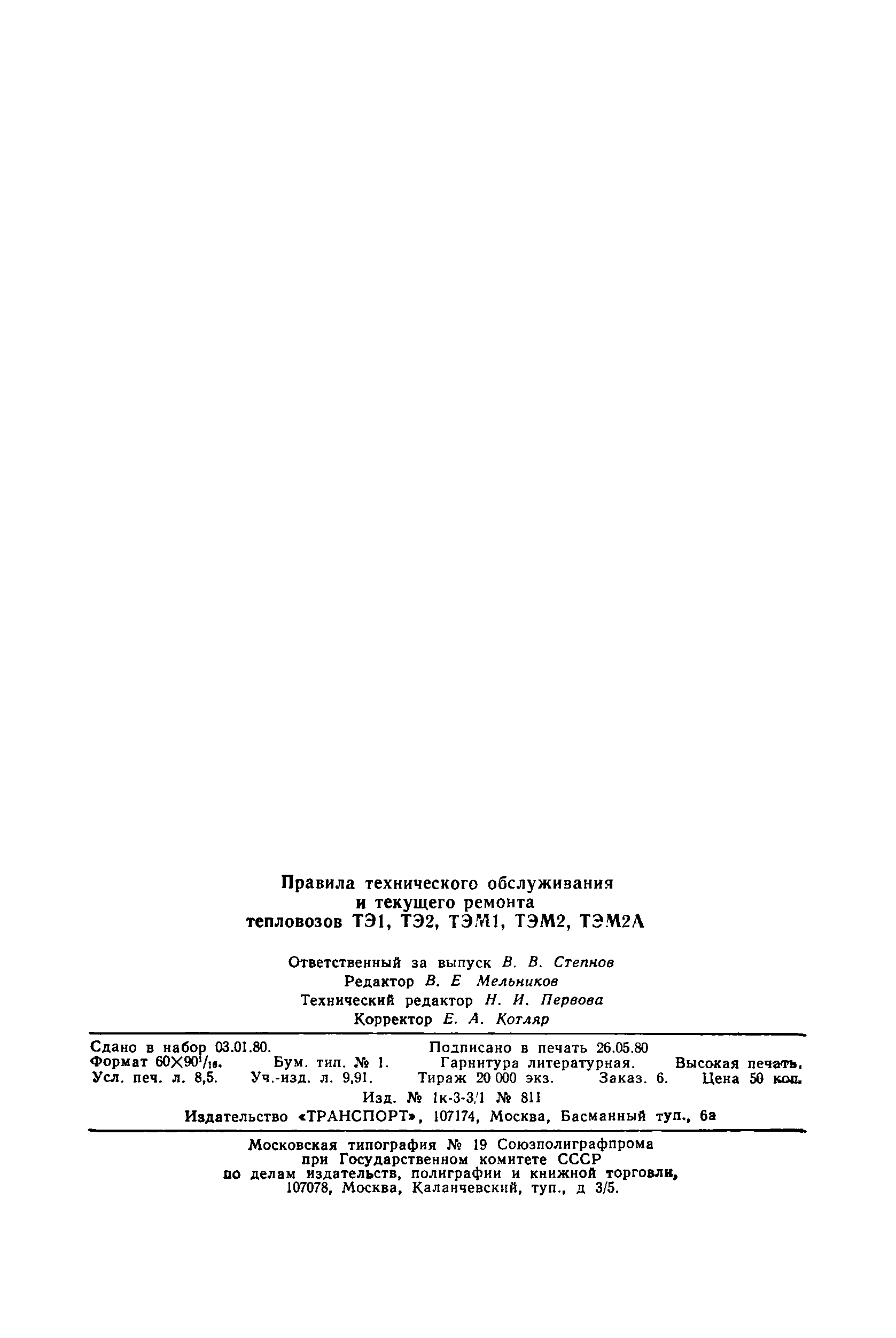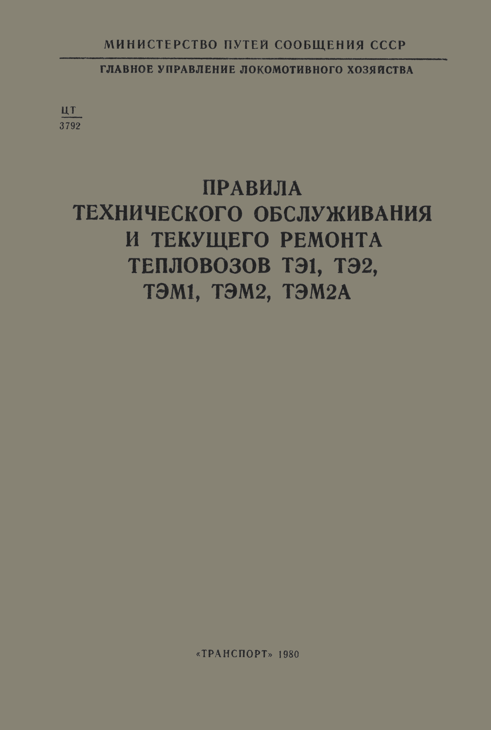 | Название рус.: | Правила технического обслуживания и текущего ремонта тепловозов ТЭ1, ТЭ2, ТЭМ1, ТЭМ2, ТЭМ2А |