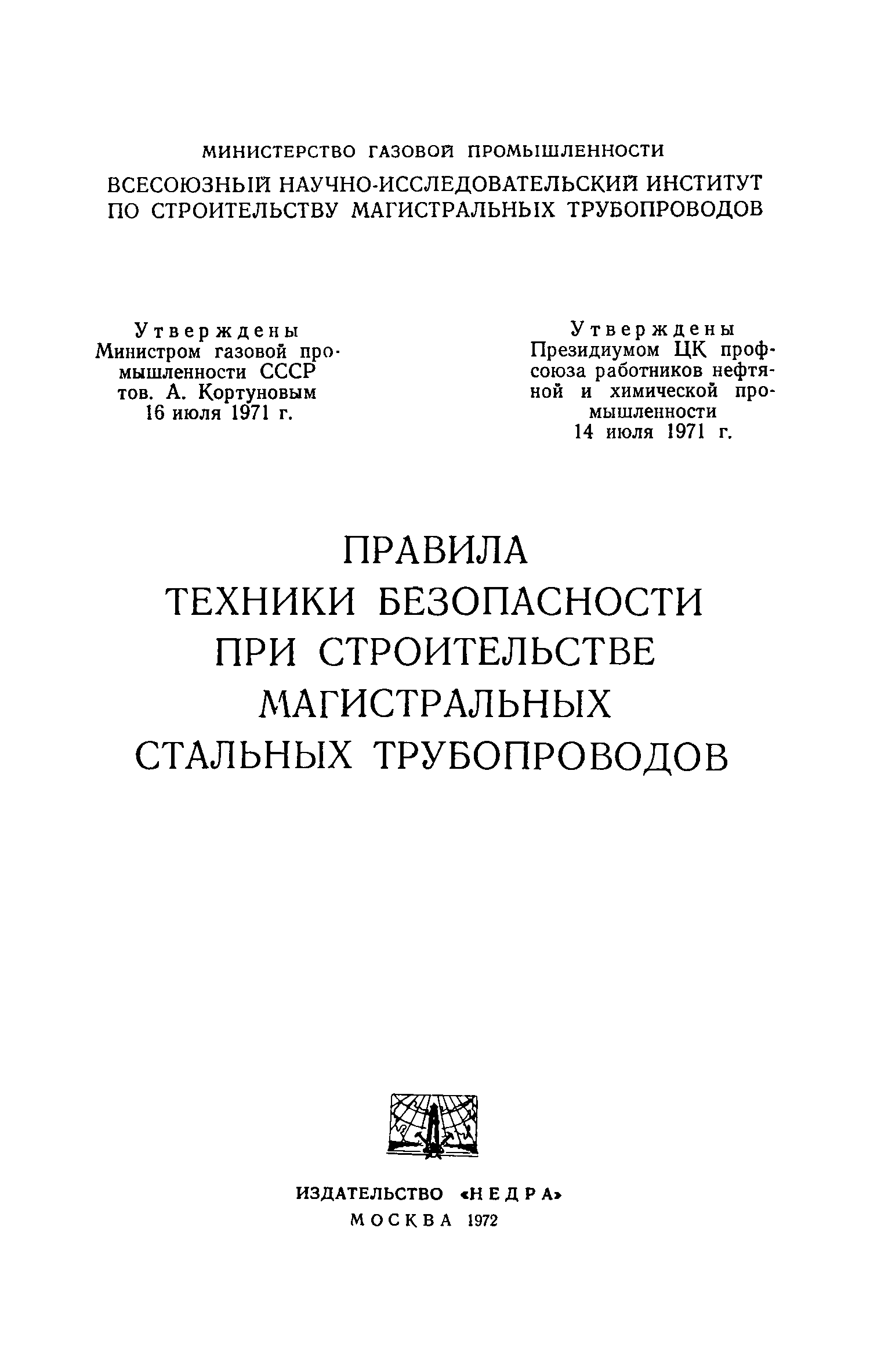 | Утверждён: | 16.07.1971 Министерство газовой промышленности СССР 14.07.1971 Президиум ЦК профсоюза работников нефтяной и химической промышленности |