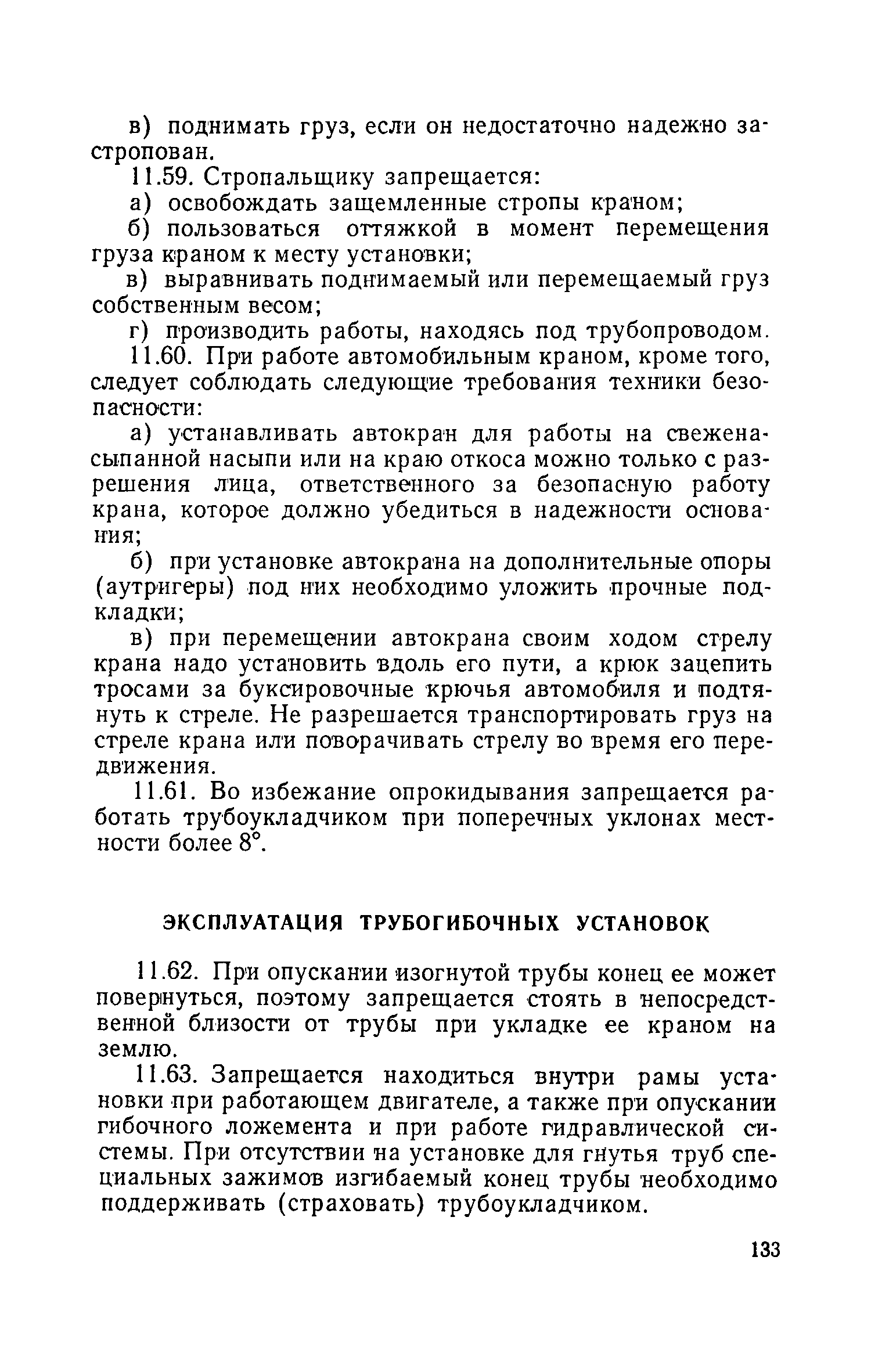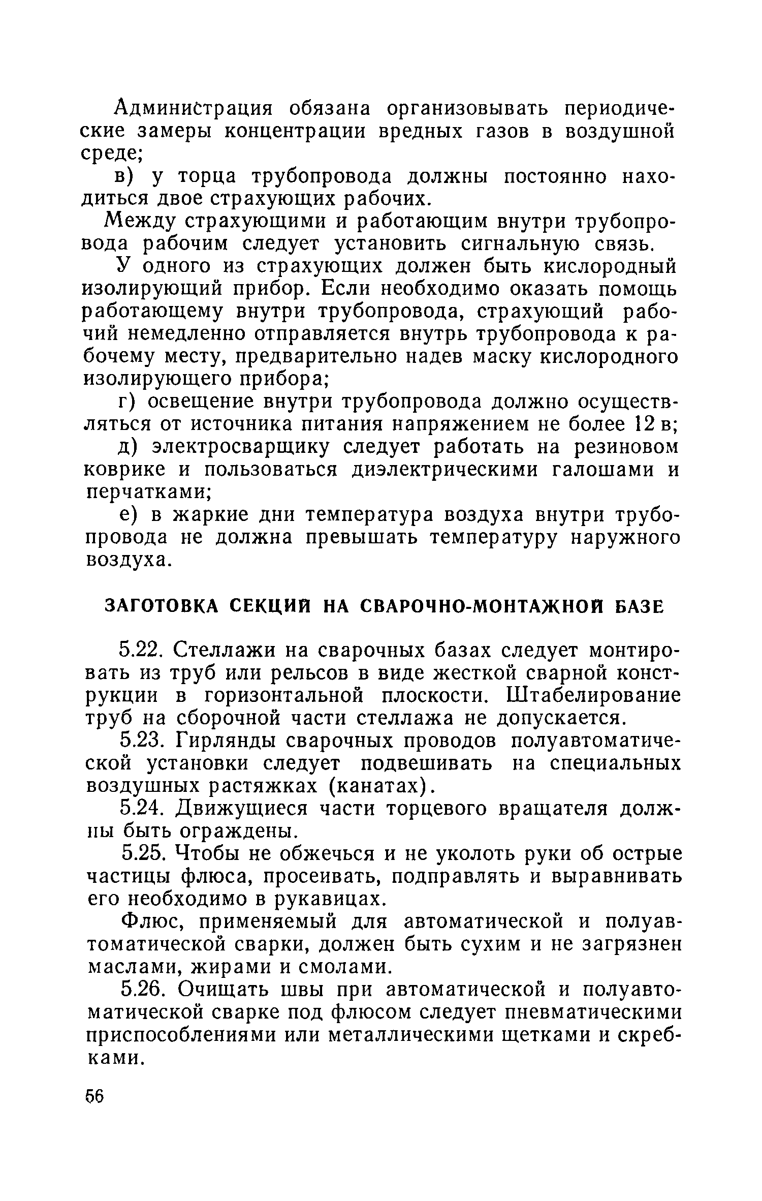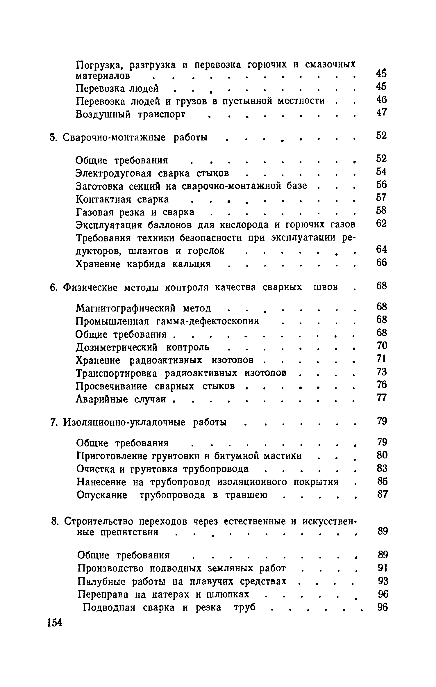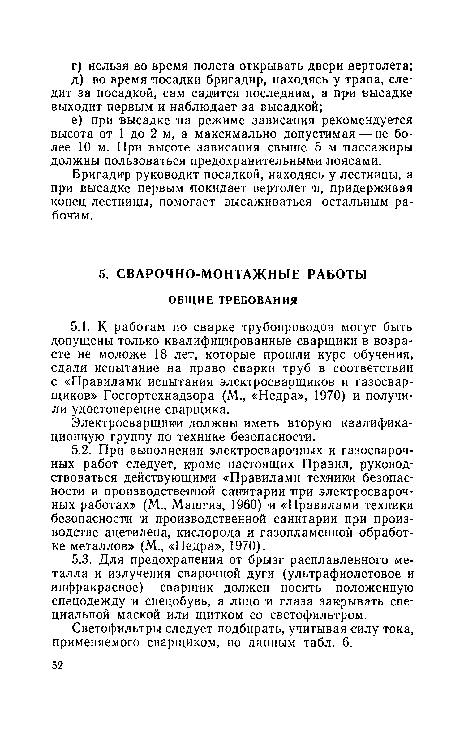 | Оглавление: | 1. Общие положения Основные организационно-технические требования Инструктаж и обучение правилам и нормам охраны труда Организация территории строительной площадки и рабочего места Устройство жилых полевых городков Работа в условиях Крайнего Севера и приравненных к нему районах 2. Подготовка трассы Общие требования Валка деревьев Обрубка сучьев и раскряжевка хлыстов Транспортировка леса 3. Земляные работы Общие требования Рытье траншей и котлованов без креплений Рытье траншей и котлованов с креплениями Работа в горных условиях Работа в карьерах (заготовка грунта) 4. Погрузочно-разгрузочные и транспортные работы Общие требования Железнодорожный транспорт Выгрузка труб из полувагонов Погрузка, разгрузка и перевозка секций труб Погрузка, разгрузка и перевозка горючих и смазочных материалов Перевозка людей Перевозка людей и грузов в пустынной местности Воздушный транспорт 5. Сварочно-монтажные работы Общие требования Электродуговая сварка стыков Заготовка секций на сварочно-монтажной базе Контактная сварка Газовая резка и сварка Эксплуатация баллонов для кислорода и горючих газов Требования техники безопасности при эксплуатации редукторов, шлангов и горелок Хранение карбида кальция 6. Физические методы контроля качества сварных швов Магнитографический метод Промышленная гамма-дефектоскопия Общие требования Дозиметрический контроль Хранение радиоактивных изотопов Транспортировка радиоактивных изотопов Просвечивание сварных стыков Аварийные случаи 7. Изоляционно-укладочные работы Общие требования Приготовление грунтовки и битумной мастики Очистка и грунтовка трубопровода Нанесение на трубопровод изоляционного покрытия Опускание трубопровода в траншею 8. Строительство переходов через естественные и искусственные препятствия Общие требования Производство подводных земляных работ Палубные работы на плавучих средствах Переправа на катерах и шлюпках Подводная сварка и резка труб Работы на льду Прокладка подводных трубопроводов Строительство переходов через железные и шоссейные дороги Строительство воздушных переходов Общие требования Свайные работы Сооружение пролетных строений 9. Электрозащита трубопроводов от коррозии Общие требования Электрические измерения Термитная сварка Работа с паяльной лампой 10. Очистка полости и испытание трубопроводов Общие требования Очистка полости трубопроводов Испытание трубопроводов на прочность 11. Эксплуатация машин и механизмов Общие требования Эксплуатация одноковшовых экскаваторов Эксплуатация бульдозера Эксплуатация грузоподъемных кранов Эксплуатация трубогибочных установок Эксплуатация передвижных компрессоров Эксплуатация полевой автосварочной установки (ПАУ-1001) Эксплуатация механизированной трубосварочной линии (МТЛ-141) Эксплуатация полустационарной трубосварочной контактной установки (ТКУС) Эксплуатация роторного траншейного экскаватора Эксплуатация инструмента 12. Изыскания при трубопроводном строительстве Общие требования Работа в пустынях и полупустынях Работа в горных условиях Передвижение по болотам и воде Приложение 1. Наименование работ и сроки периодических медицинских осмотров Приложение 2. Единая оценка волнения на морях, озерах и крупных водохранилищах |