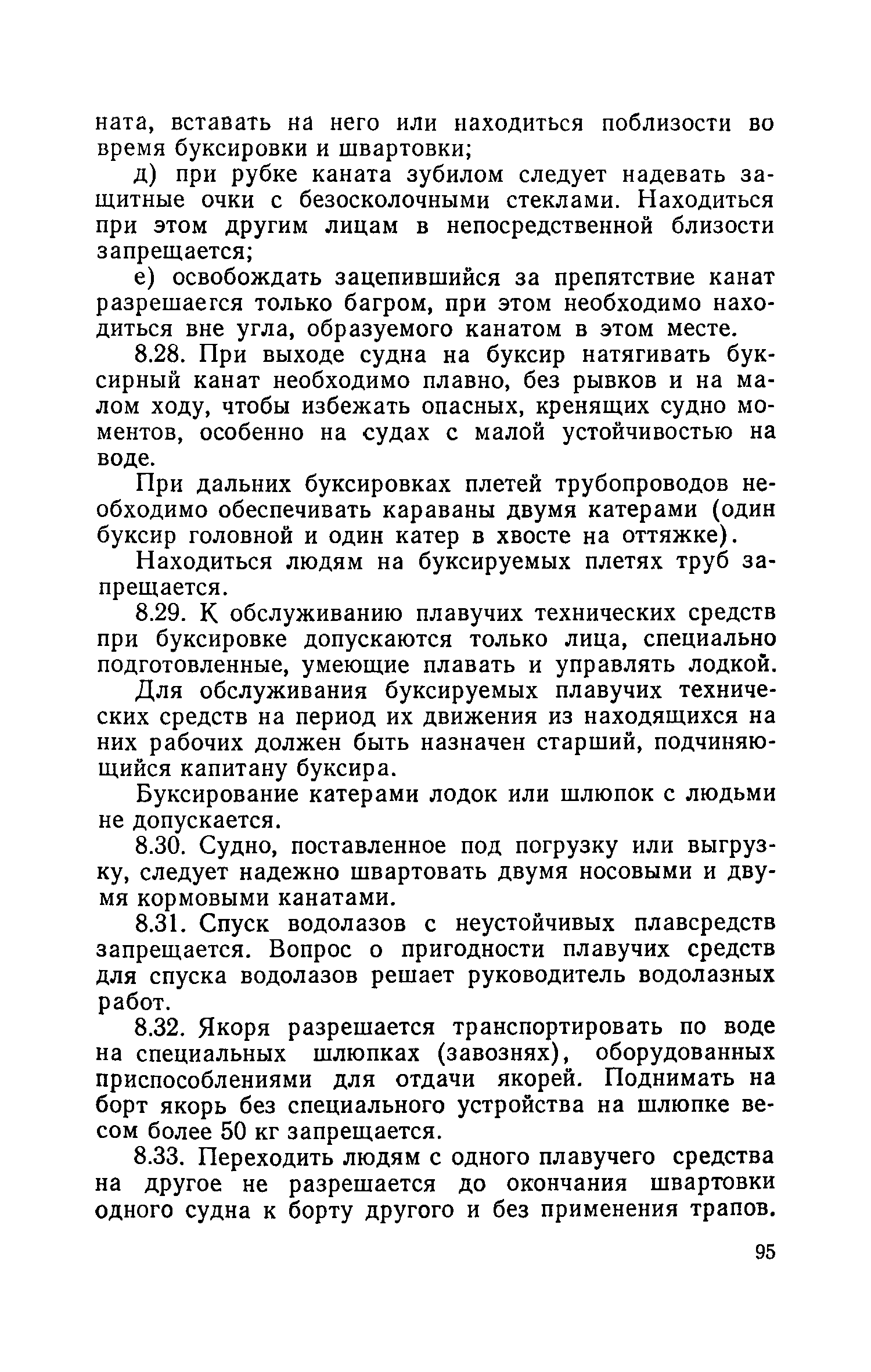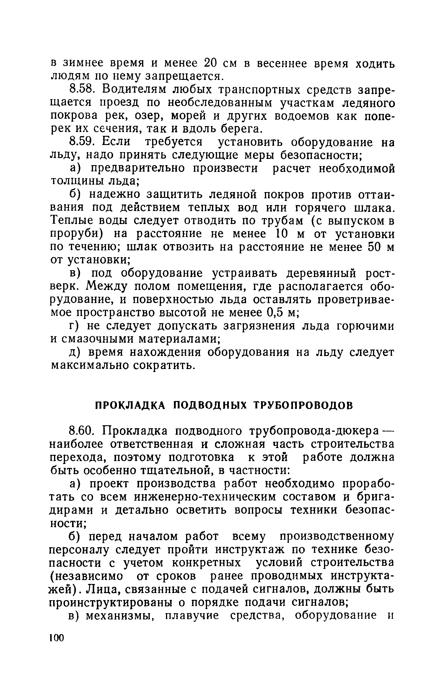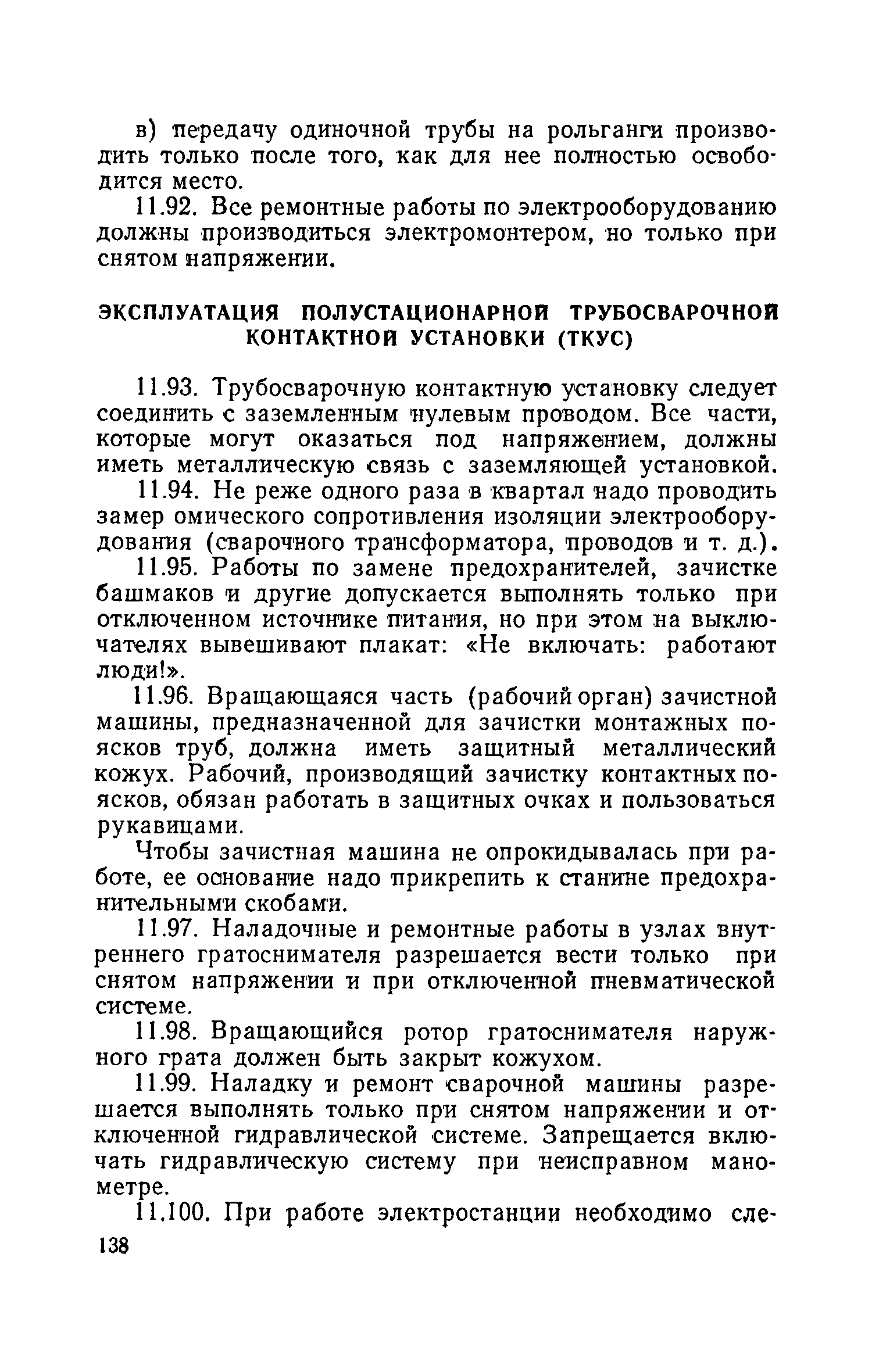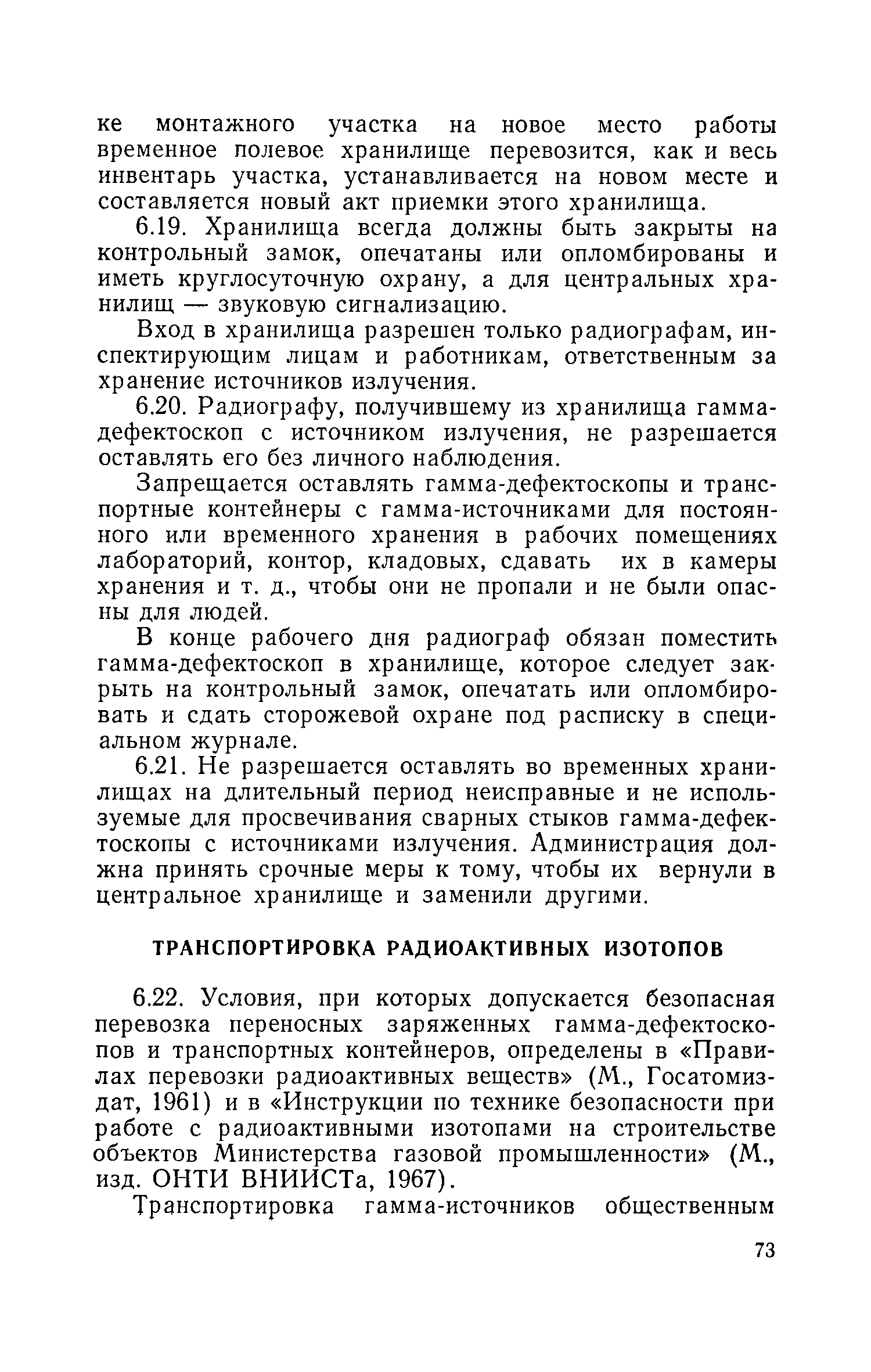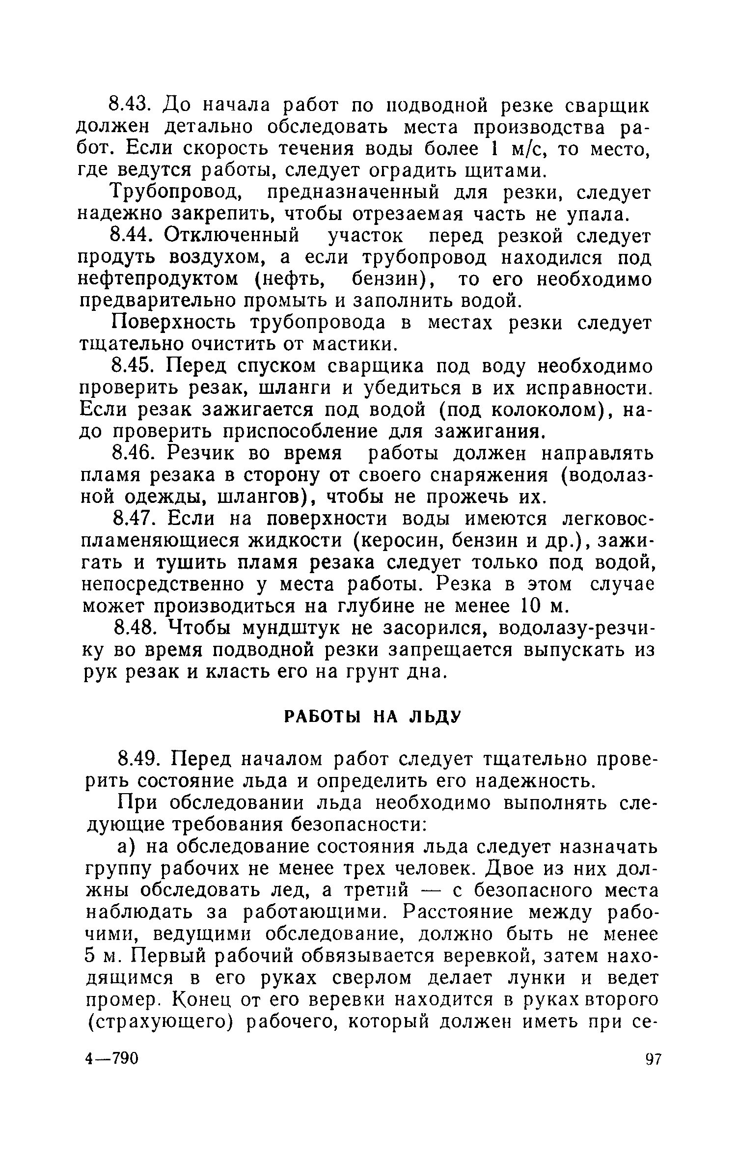 | Оглавление: | 1. Общие положения Основные организационно-технические требования Инструктаж и обучение правилам и нормам охраны труда Организация территории строительной площадки и рабочего места Устройство жилых полевых городков Работа в условиях Крайнего Севера и приравненных к нему районах 2. Подготовка трассы Общие требования Валка деревьев Обрубка сучьев и раскряжевка хлыстов Транспортировка леса 3. Земляные работы Общие требования Рытье траншей и котлованов без креплений Рытье траншей и котлованов с креплениями Работа в горных условиях Работа в карьерах (заготовка грунта) 4. Погрузочно-разгрузочные и транспортные работы Общие требования Железнодорожный транспорт Выгрузка труб из полувагонов Погрузка, разгрузка и перевозка секций труб Погрузка, разгрузка и перевозка горючих и смазочных материалов Перевозка людей Перевозка людей и грузов в пустынной местности Воздушный транспорт 5. Сварочно-монтажные работы Общие требования Электродуговая сварка стыков Заготовка секций на сварочно-монтажной базе Контактная сварка Газовая резка и сварка Эксплуатация баллонов для кислорода и горючих газов Требования техники безопасности при эксплуатации редукторов, шлангов и горелок Хранение карбида кальция 6. Физические методы контроля качества сварных швов Магнитографический метод Промышленная гамма-дефектоскопия Общие требования Дозиметрический контроль Хранение радиоактивных изотопов Транспортировка радиоактивных изотопов Просвечивание сварных стыков Аварийные случаи 7. Изоляционно-укладочные работы Общие требования Приготовление грунтовки и битумной мастики Очистка и грунтовка трубопровода Нанесение на трубопровод изоляционного покрытия Опускание трубопровода в траншею 8. Строительство переходов через естественные и искусственные препятствия Общие требования Производство подводных земляных работ Палубные работы на плавучих средствах Переправа на катерах и шлюпках Подводная сварка и резка труб Работы на льду Прокладка подводных трубопроводов Строительство переходов через железные и шоссейные дороги Строительство воздушных переходов Общие требования Свайные работы Сооружение пролетных строений 9. Электрозащита трубопроводов от коррозии Общие требования Электрические измерения Термитная сварка Работа с паяльной лампой 10. Очистка полости и испытание трубопроводов Общие требования Очистка полости трубопроводов Испытание трубопроводов на прочность 11. Эксплуатация машин и механизмов Общие требования Эксплуатация одноковшовых экскаваторов Эксплуатация бульдозера Эксплуатация грузоподъемных кранов Эксплуатация трубогибочных установок Эксплуатация передвижных компрессоров Эксплуатация полевой автосварочной установки (ПАУ-1001) Эксплуатация механизированной трубосварочной линии (МТЛ-141) Эксплуатация полустационарной трубосварочной контактной установки (ТКУС) Эксплуатация роторного траншейного экскаватора Эксплуатация инструмента 12. Изыскания при трубопроводном строительстве Общие требования Работа в пустынях и полупустынях Работа в горных условиях Передвижение по болотам и воде Приложение 1. Наименование работ и сроки периодических медицинских осмотров Приложение 2. Единая оценка волнения на морях, озерах и крупных водохранилищах |