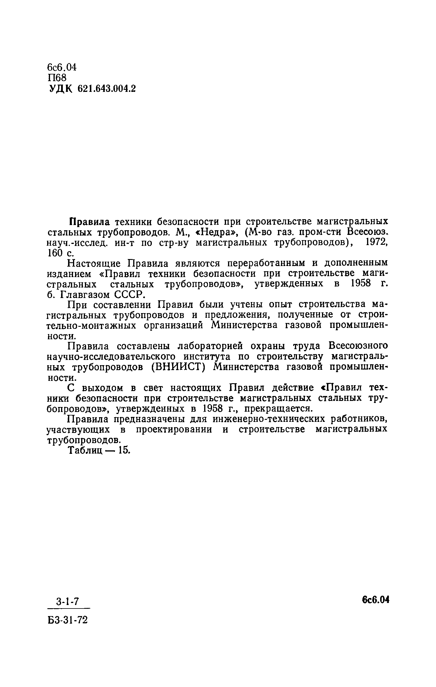 | Область применения: | Правила предназначены для инженерно-технических работников, участвующих в проектировании и строительстве магистральных трубопроводов. Правила распространяются на все строительно-монтажные и специальные работы при сооружении линейной части магистральных стальных трубопроводов |