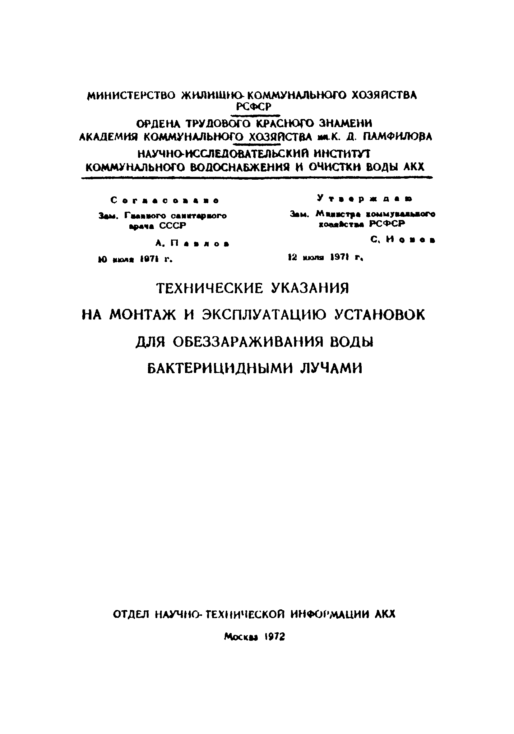 | Утверждён: | 12.07.1971 Министерство жилищно-коммунального хозяйства РСФСР
