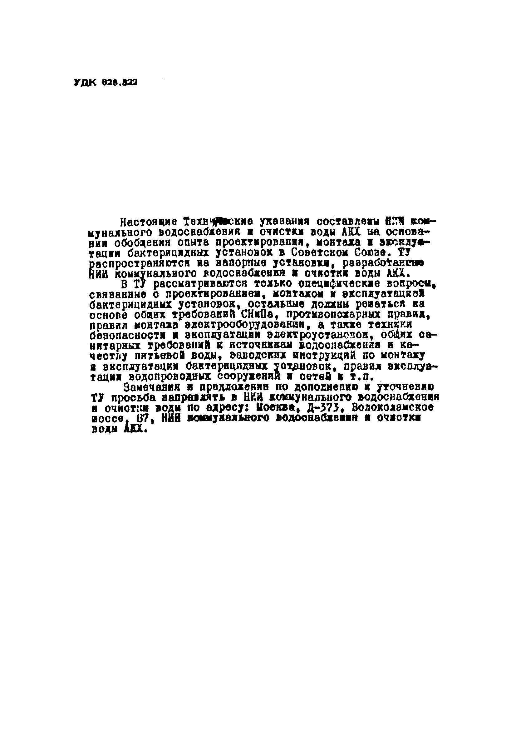| Название рус.: | Технические указания на монтаж и эксплуатацию установок для обеззараживания воды бактерицидными лучами |