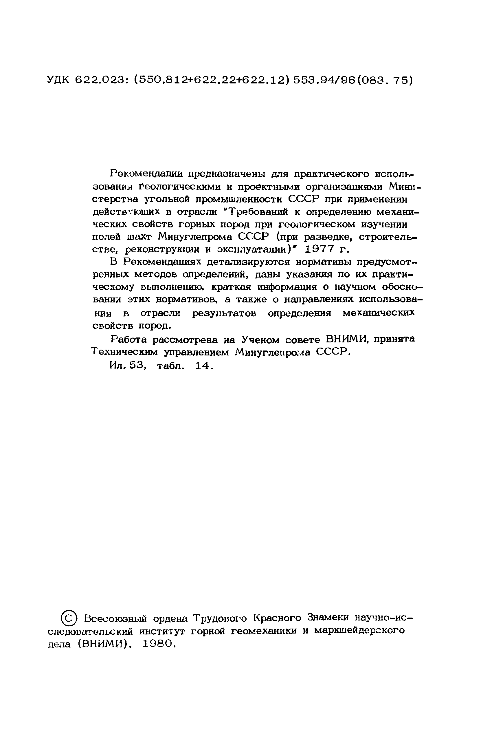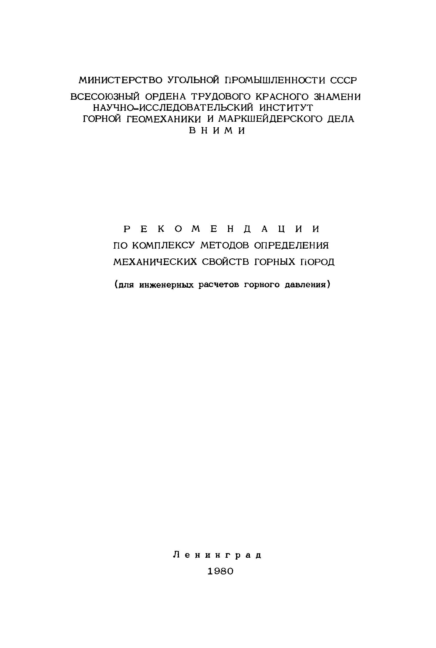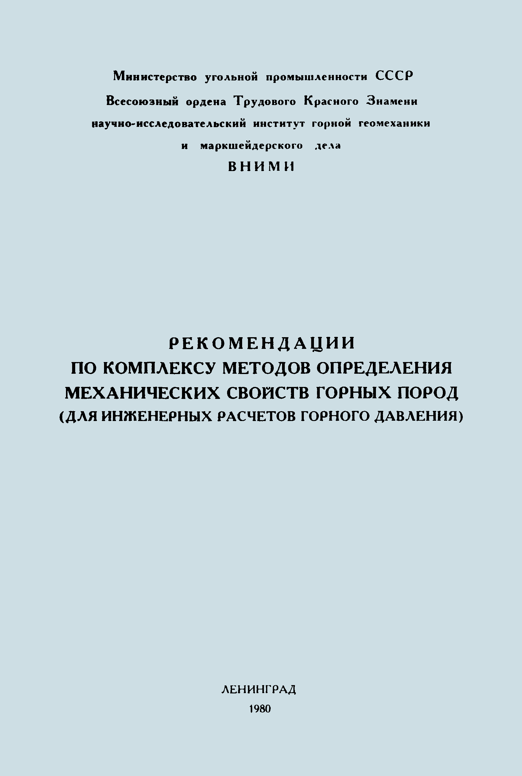 | Название рус.: | Рекомендации по комплексу методов определения механических свойств горных пород (для инженерных расчетов горного давления) |
