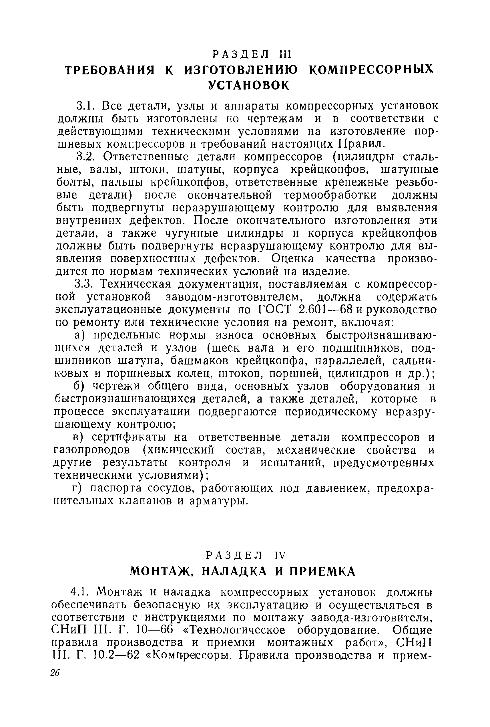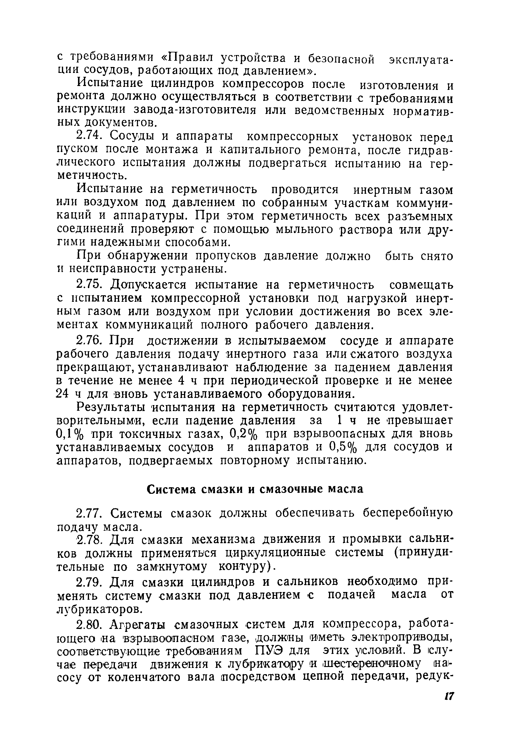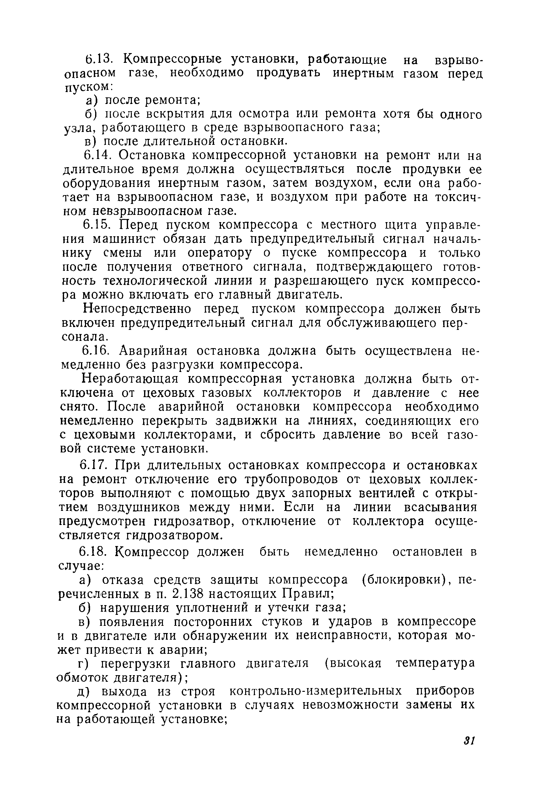 | Оглавление: | Предисловие Раздел 1. Общие положения Раздел 2. Основные требования к компрессорным установкам Общие требования Размещение оборудования компрессорных установок Механизация управления и обслуживания Требования к герметичности Требования к продувке инертным газом Требования по снижению уровня шумов и вибрации Материалы, арматура и трубопроводы Сосуды и аппараты компрессорных установок, работающие под давлением Система смазки и смазочные масла Система охлаждения Предохранительные устройства Предохранительные ограждения Контрольно-измерительные приборы Система автоматизации Раздел 3. Требования к изготовлению компрессорных установок Раздел 4. Монтаж, наладка и приемка Раздел 5. Испытания компрессоров Раздел 6. Эксплуатация и ремонт Раздел 7. Ответственность за нарушение Правил Приложение 1. Акт на сдачу трубопроводов в ремонт и для испытаний Приложение 2. Акт на ремонт, ревизию и испытание трубопроводов, транспортирующих токсичные и взрывоопасные продукты Приложение 3. Акт испытания арматуры Приложение 4. Журнал учета работы компрессора (примерная форма) Приложение 5. Акт на сдачу в капитальный ремонт изделия Приложение 6. Акт на выдачу из капитального ремонта |