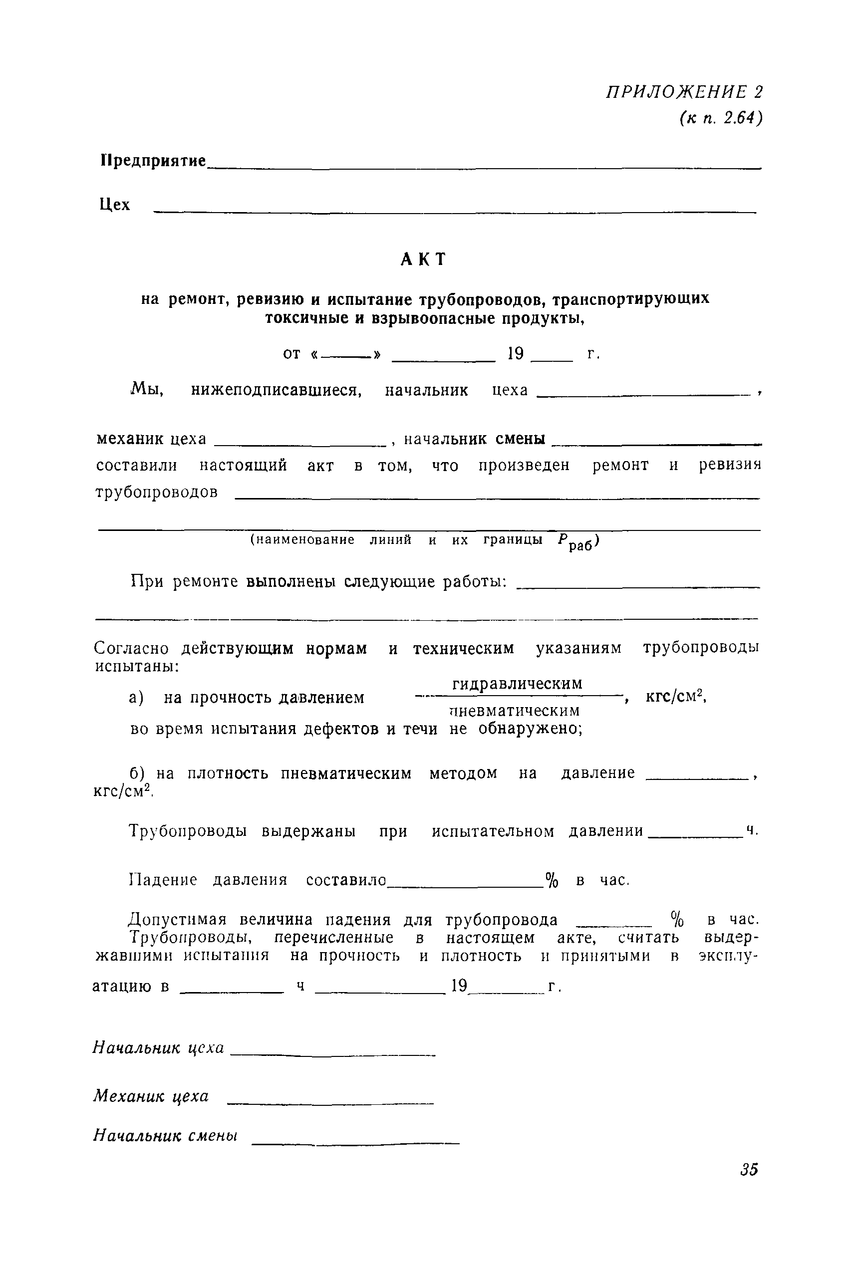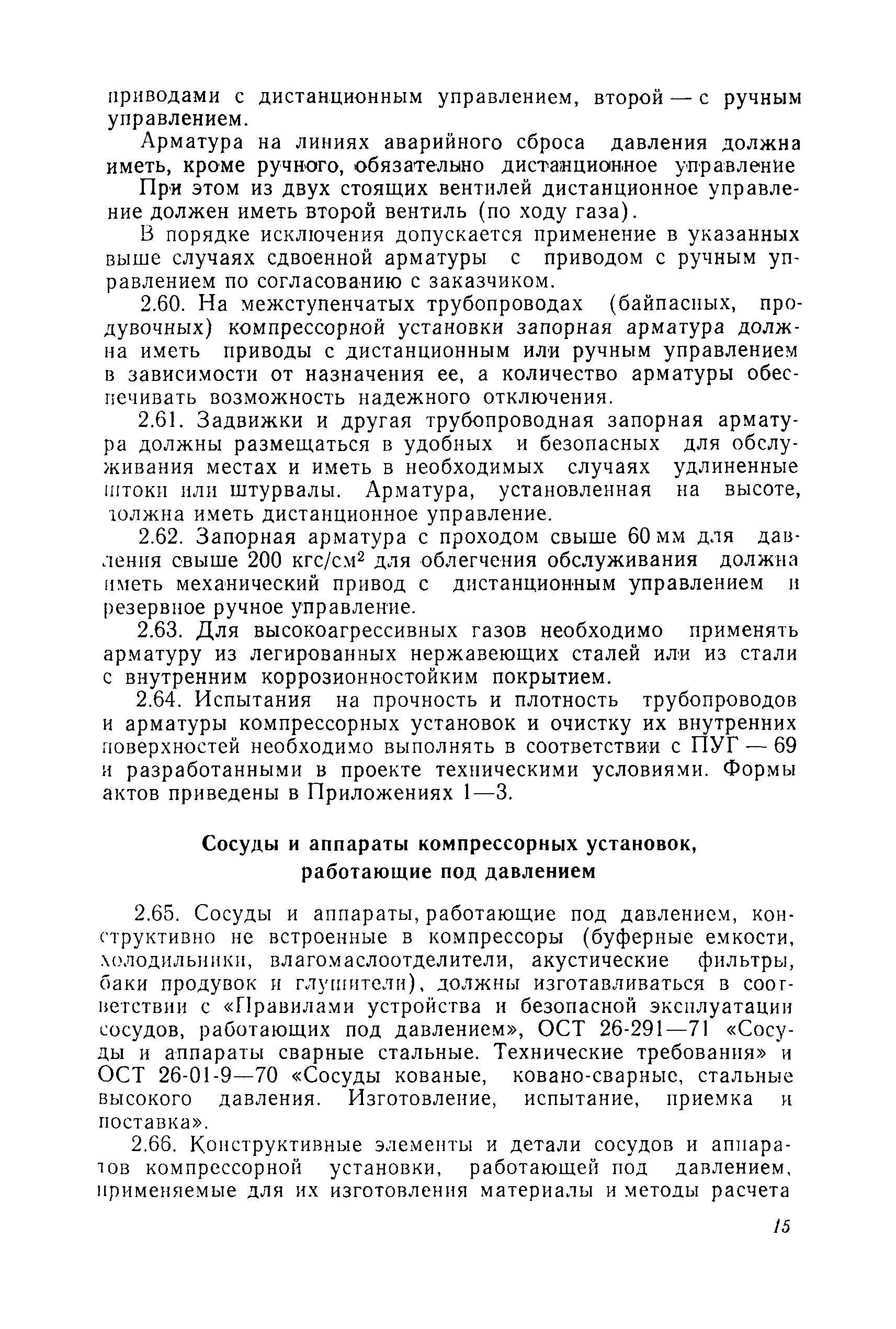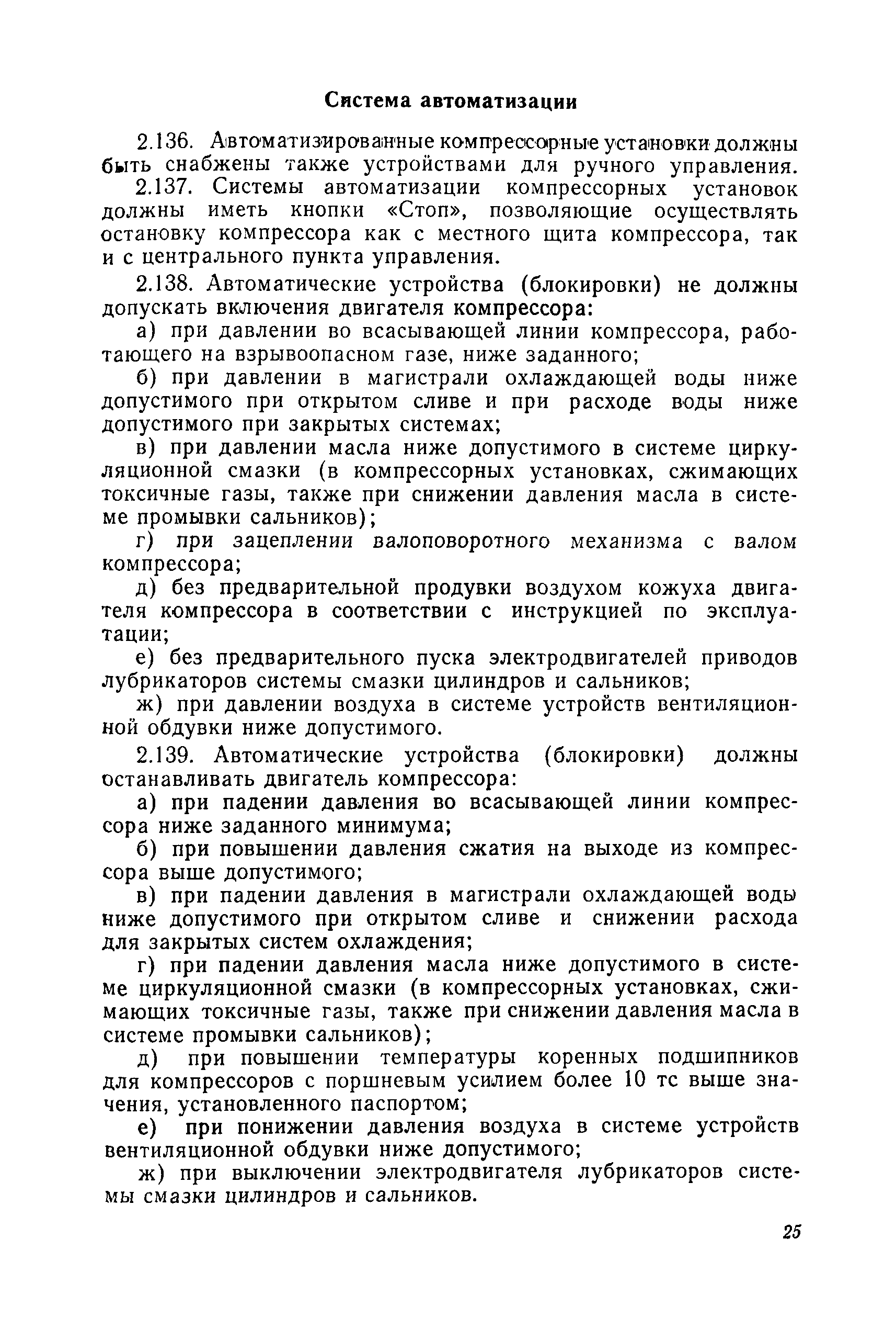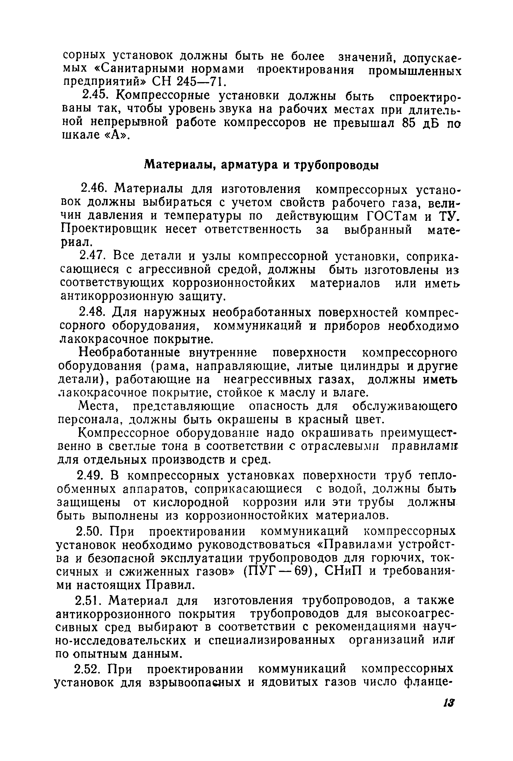 | Оглавление: | Предисловие Раздел 1. Общие положения Раздел 2. Основные требования к компрессорным установкам Общие требования Размещение оборудования компрессорных установок Механизация управления и обслуживания Требования к герметичности Требования к продувке инертным газом Требования по снижению уровня шумов и вибрации Материалы, арматура и трубопроводы Сосуды и аппараты компрессорных установок, работающие под давлением Система смазки и смазочные масла Система охлаждения Предохранительные устройства Предохранительные ограждения Контрольно-измерительные приборы Система автоматизации Раздел 3. Требования к изготовлению компрессорных установок Раздел 4. Монтаж, наладка и приемка Раздел 5. Испытания компрессоров Раздел 6. Эксплуатация и ремонт Раздел 7. Ответственность за нарушение Правил Приложение 1. Акт на сдачу трубопроводов в ремонт и для испытаний Приложение 2. Акт на ремонт, ревизию и испытание трубопроводов, транспортирующих токсичные и взрывоопасные продукты Приложение 3. Акт испытания арматуры Приложение 4. Журнал учета работы компрессора (примерная форма) Приложение 5. Акт на сдачу в капитальный ремонт изделия Приложение 6. Акт на выдачу из капитального ремонта |