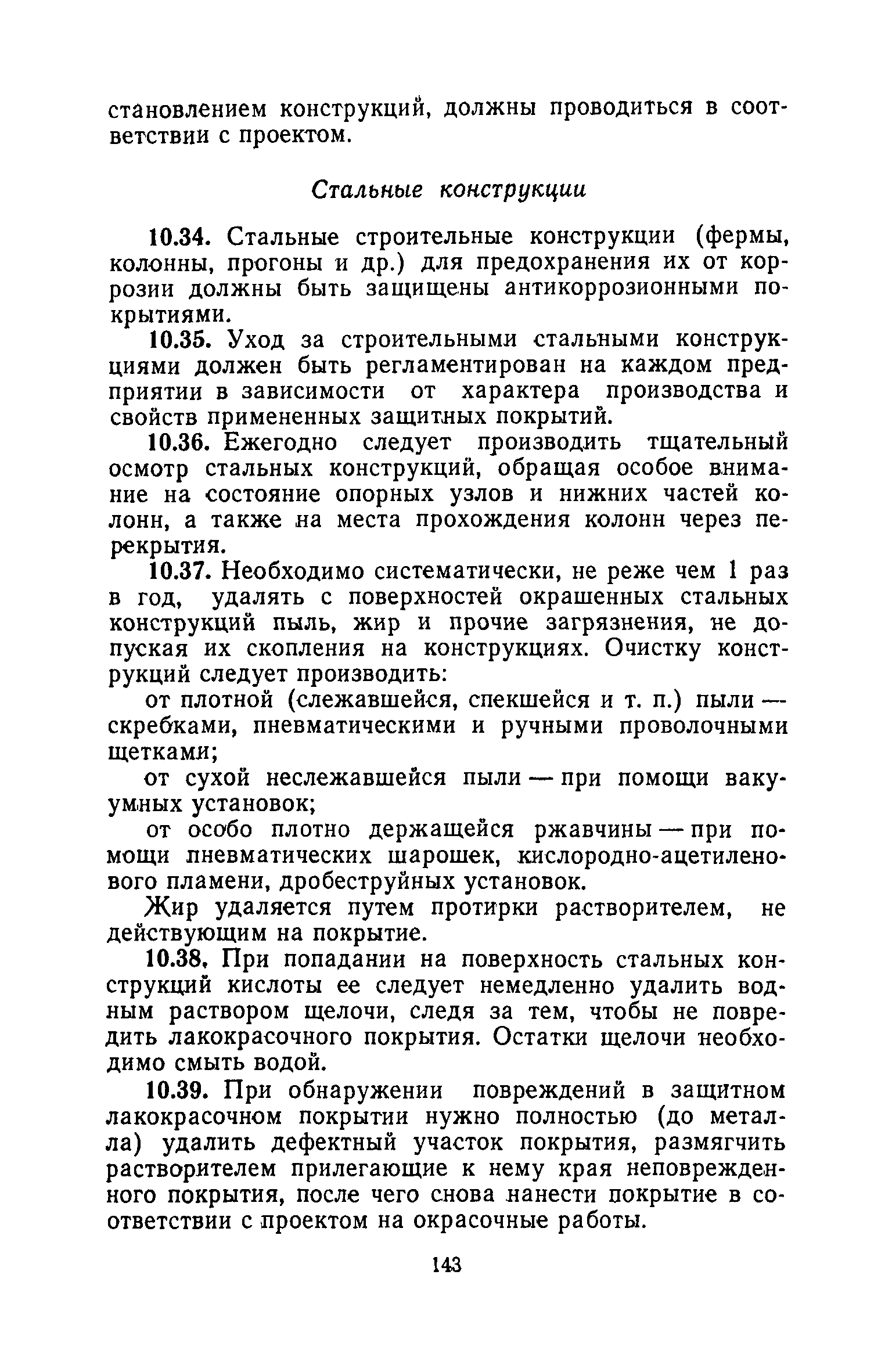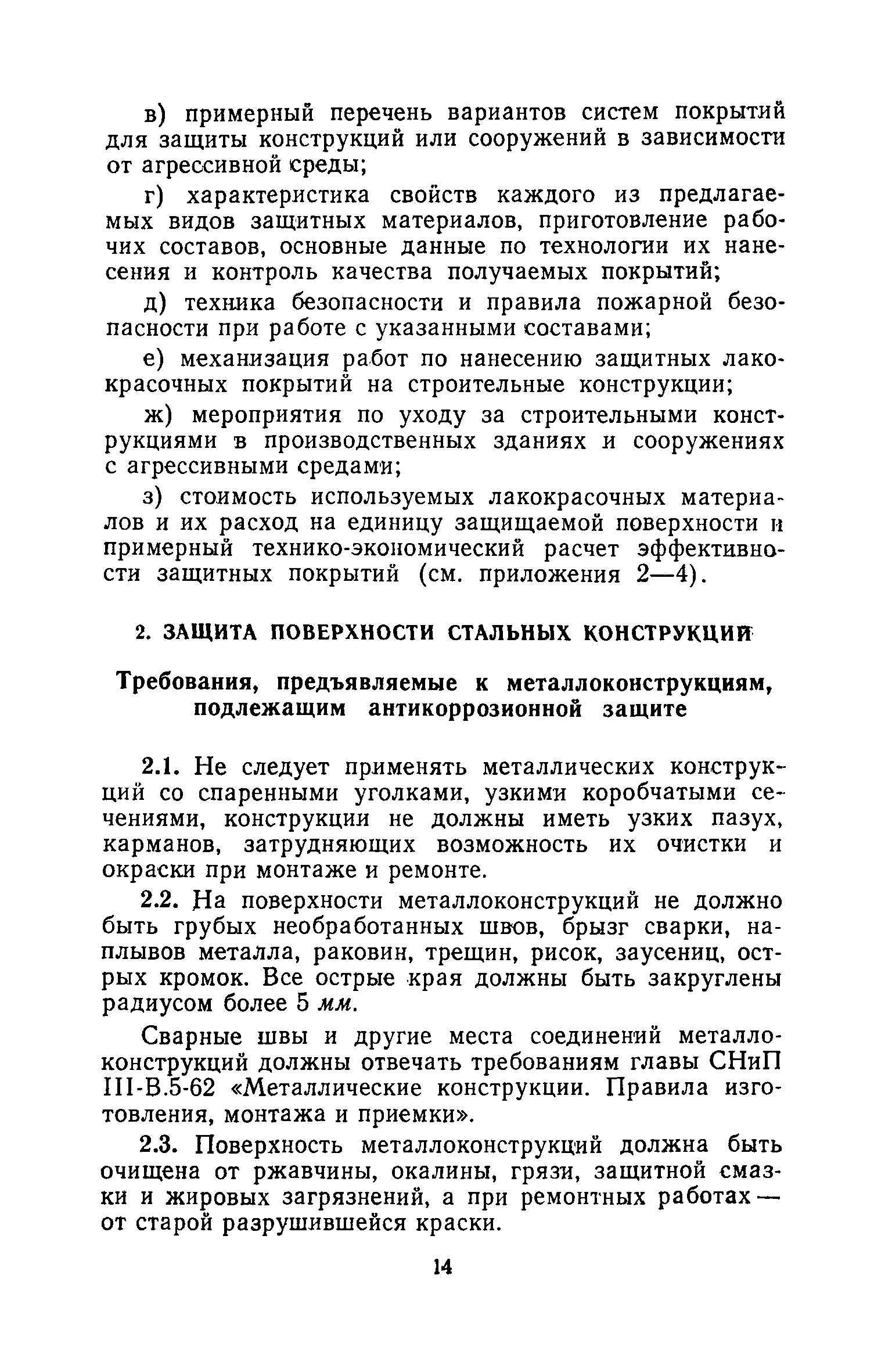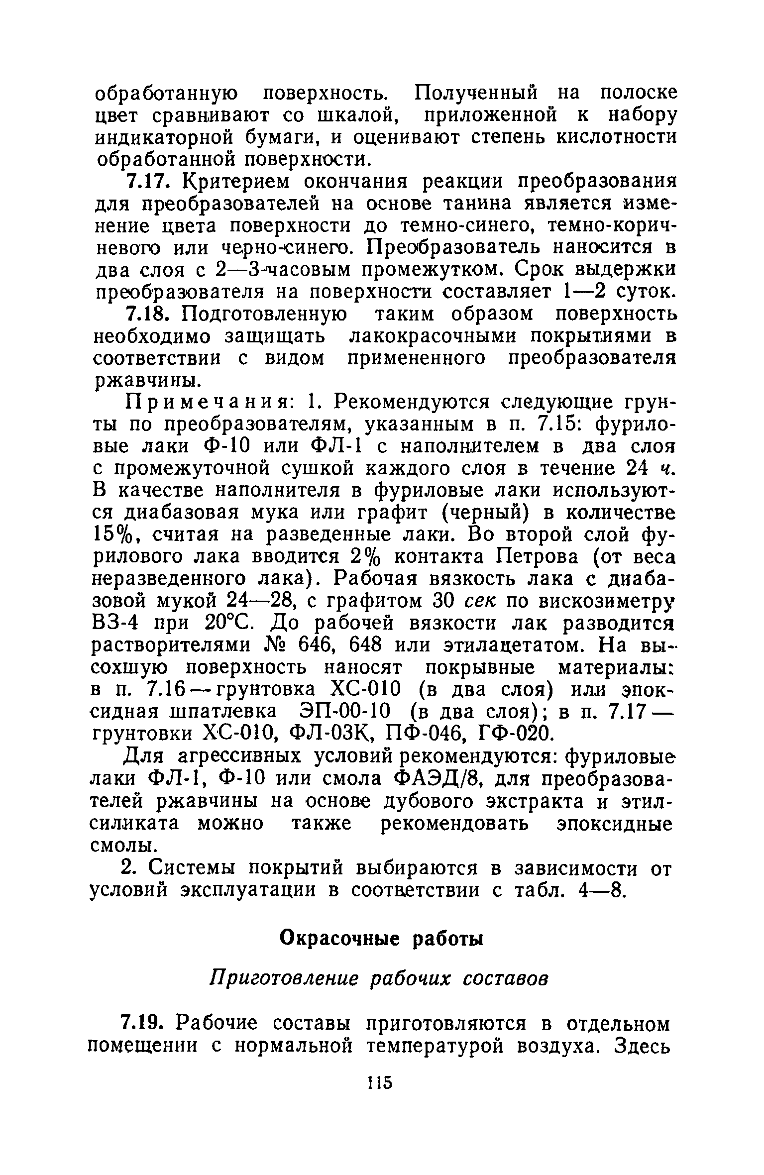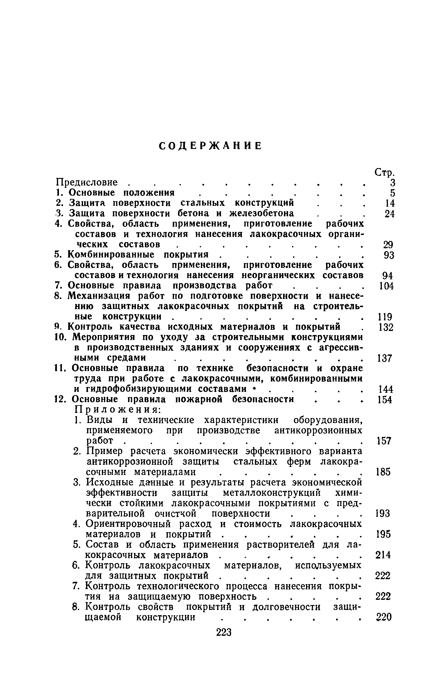 | Оглавление: | 1. Основные положения 2. Защита поверхности стальных конструкций З. Защита поверхности бетона и железобетона 4. Свойства, область применения, приготовление рабочих составов и технология нанесения лакокрасочных органических составов 5. Комбинированные покрытия 6. Свойства, область применения, приготовление рабочих составов и технология нанесения неорганических составов 7. Основные правила производства работ 8. Механизация работ по подготовке поверхности и нанесению защитных лакокрасочных покрытий на строительные конструкции 9. Контроль качества исходных материалов и покрытий 10. Мероприятия по уходу за строительными конструкциями в производственных зданиях и сооружениях с агрессивными средами 11. Основные правила по технике безопасности и охране труда при работе с лакокрасочными, комбинированными и гидрофобизирующими составами 12. Основные правила пожарной безопасности Приложение 1. Виды и технические характеристики оборудования, применяемого при производстве антикоррозионных работ Приложение 2. Пример расчета экономически эффективного варианта антикоррозионной защиты стальных ферм лакокрасочными материалами Приложение 3. Исходные данные и результаты расчета экономической эффективности защиты металлоконструкций химически стойкими лакокрасочными покрытиями с предварительной очисткой поверхности Приложение 4. Ориентировочный расход и стоимость лакокрасочных материалов и покрытий Приложение 5. Состав и область применения растворителей для лакокрасочных материалов Приложение 6. Контроль лакокрасочных материалов, используемых для защитных покрытий Приложение 7. Контроль технологического процесса нанесения покрытия на защищаемую поверхность Приложение 8. Контроль свойств покрытий и долговечности защищаемой конструкции |